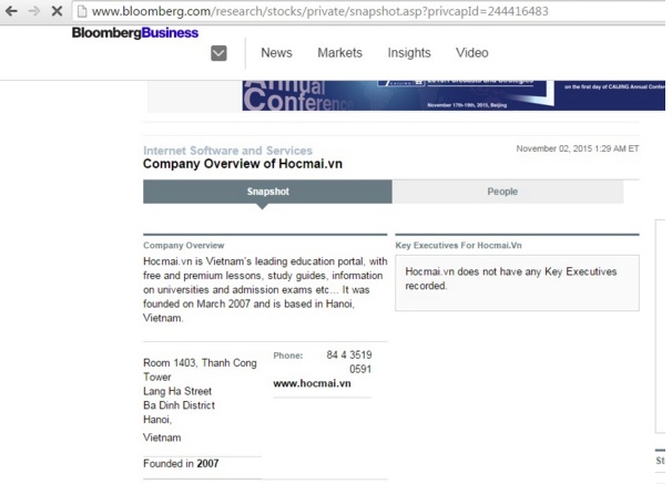 “Hocmai.vn là hệ thống giáo dục hàng đầu tại Việt Nam”. Đây là thông tin được Hãng tin tài chính uy tín thế giới Bloomberg L.P nhận định trên trang web thông tin tài chính của hãng này.