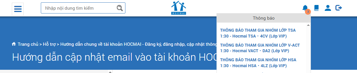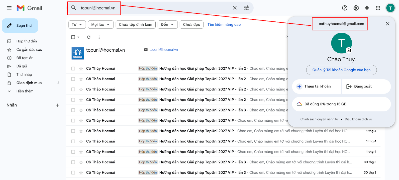 Cách 2: Lấy thông tin vào nhóm từ email đã gắn với tài khoản HOCMAI
