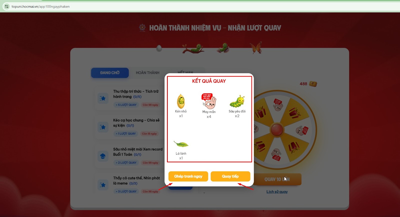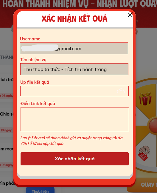 5. Thực hiện nhiệm vụ để nhận lượt quay