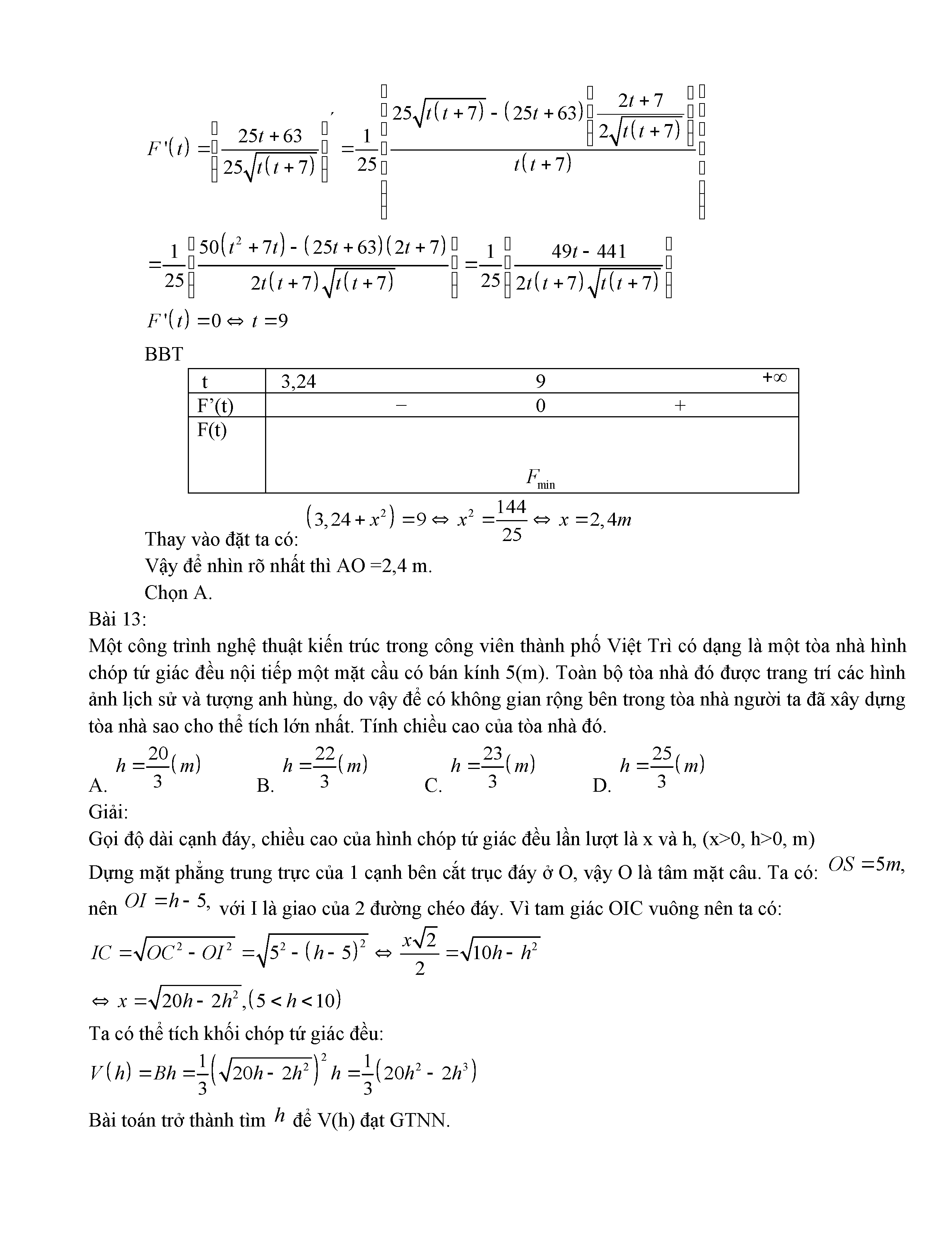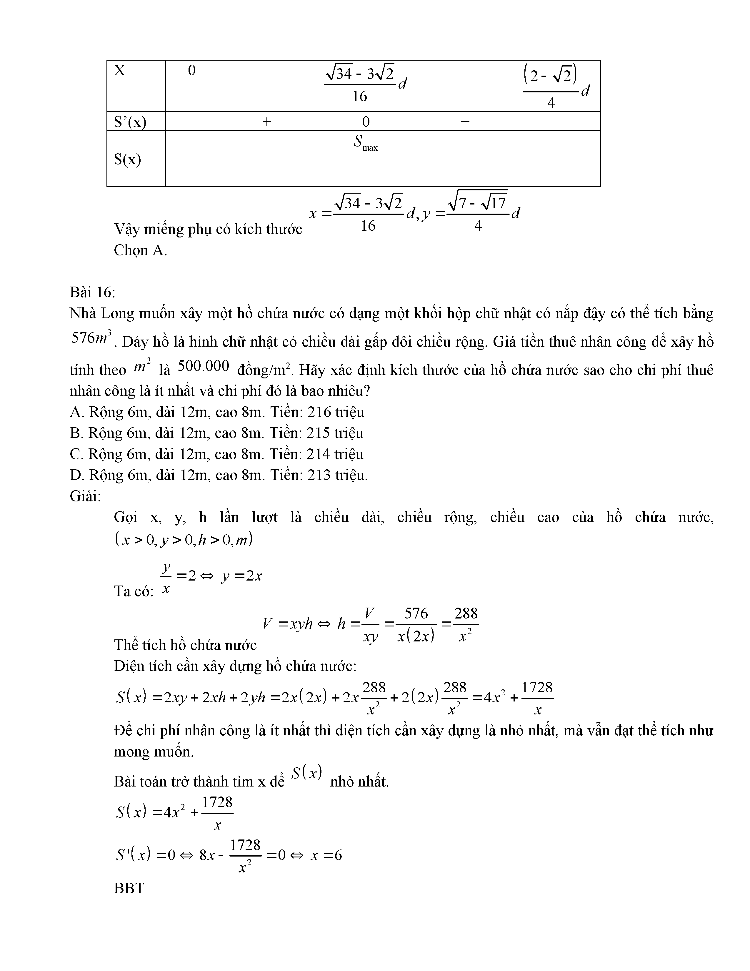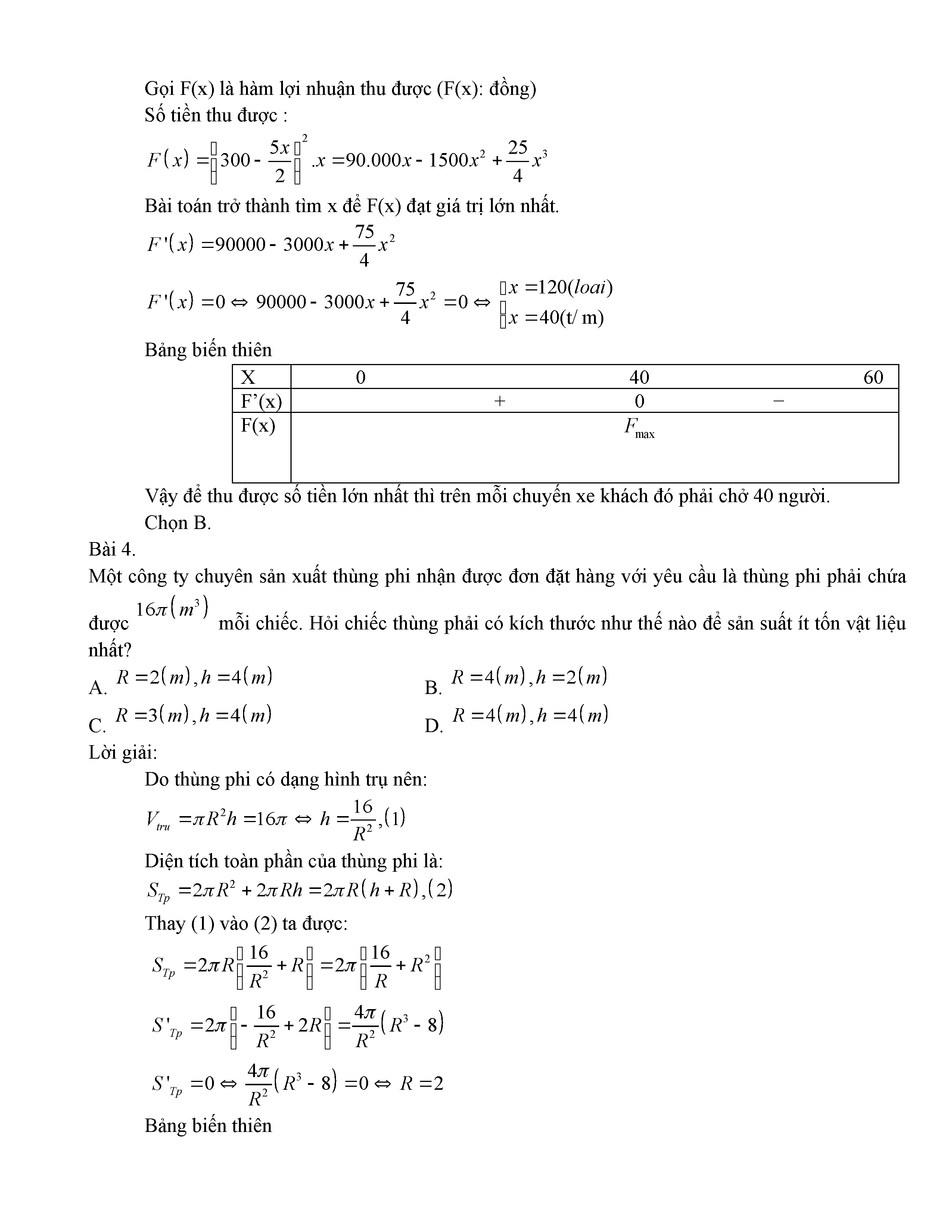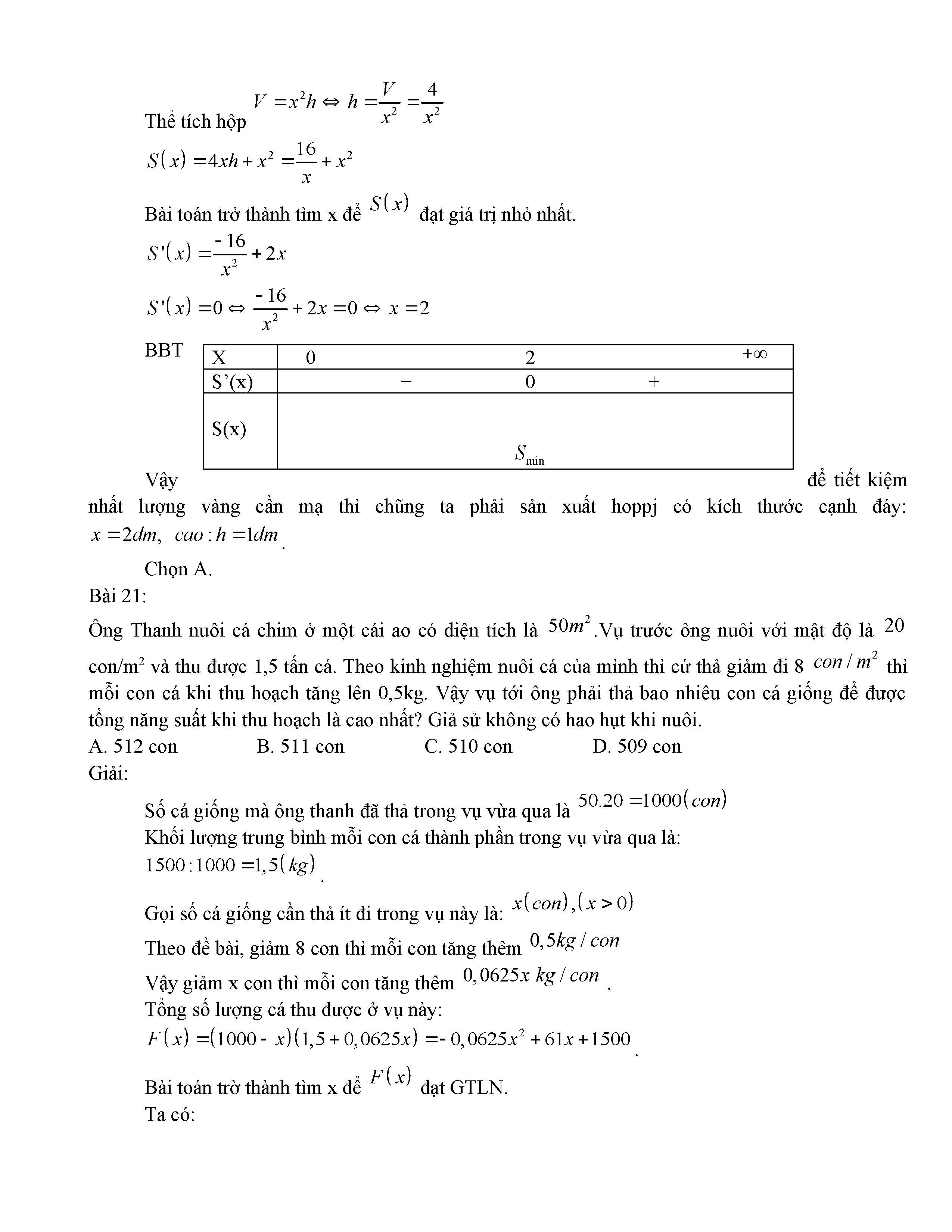 BÀI TOÁN VẬN DỤNG CAO CHUYÊN ĐỀ ỨNG DỤNG ĐẠO HÀM - CHỦ ĐỀ 1: CÁC BÀI TOÁN THỰC TẾ ỨNG DỤNG ĐẠO HÀM ĐỂ GIẢI