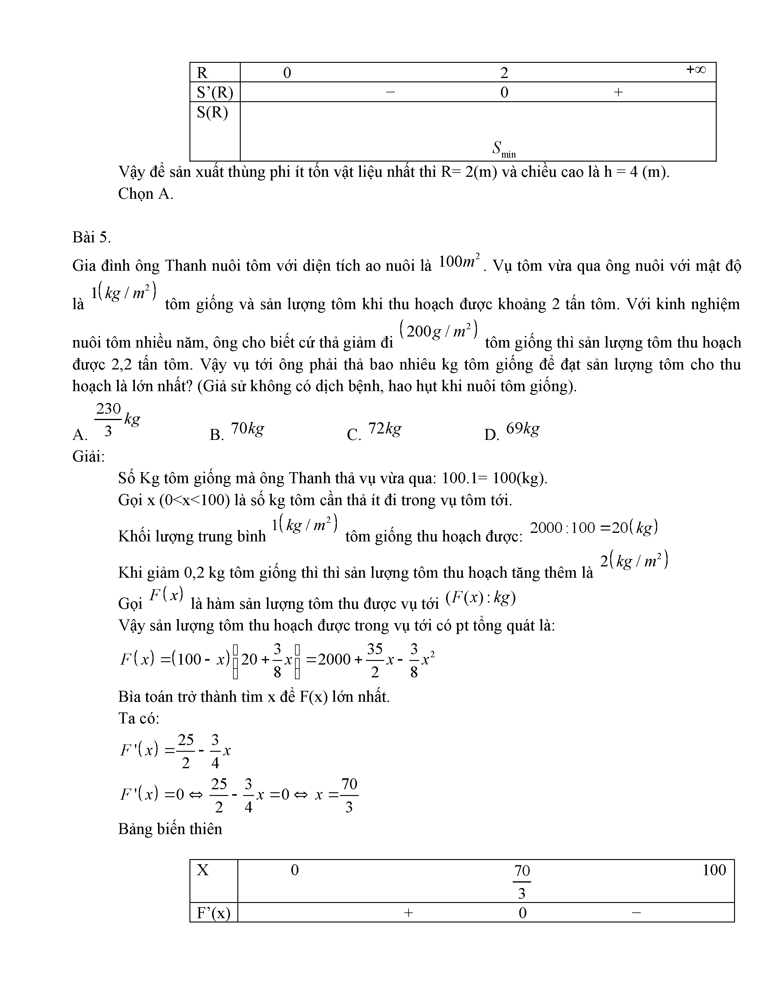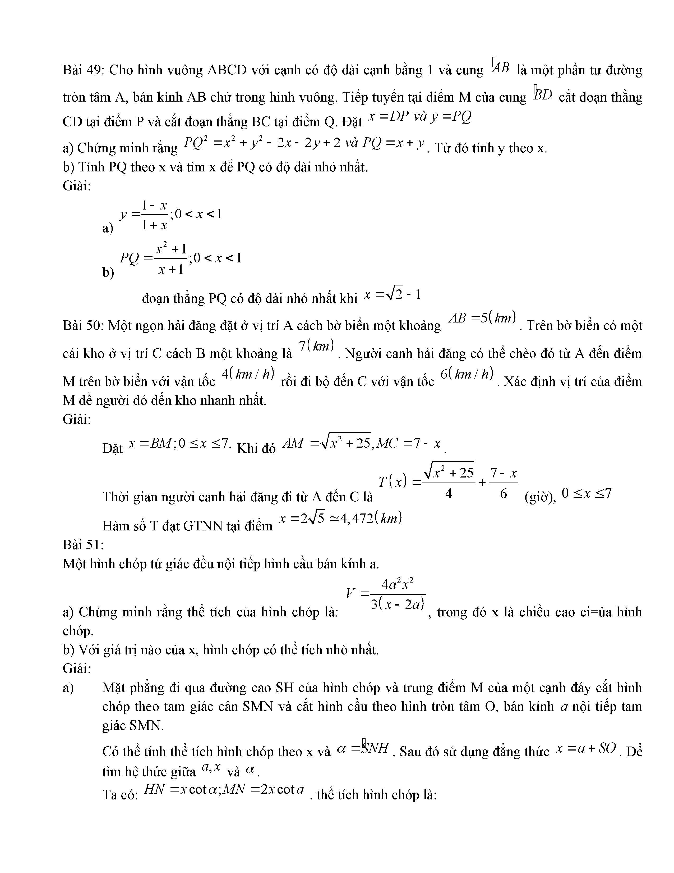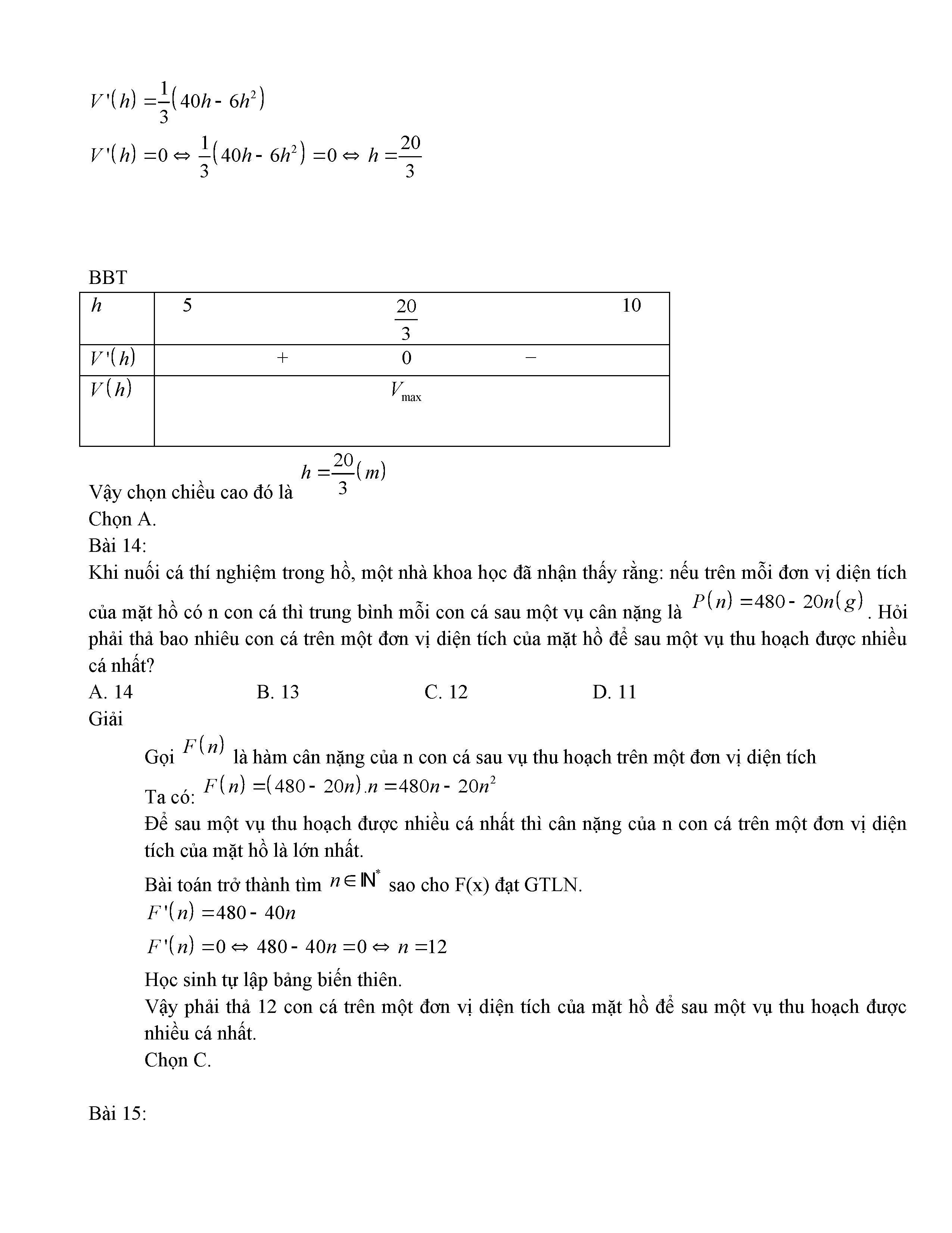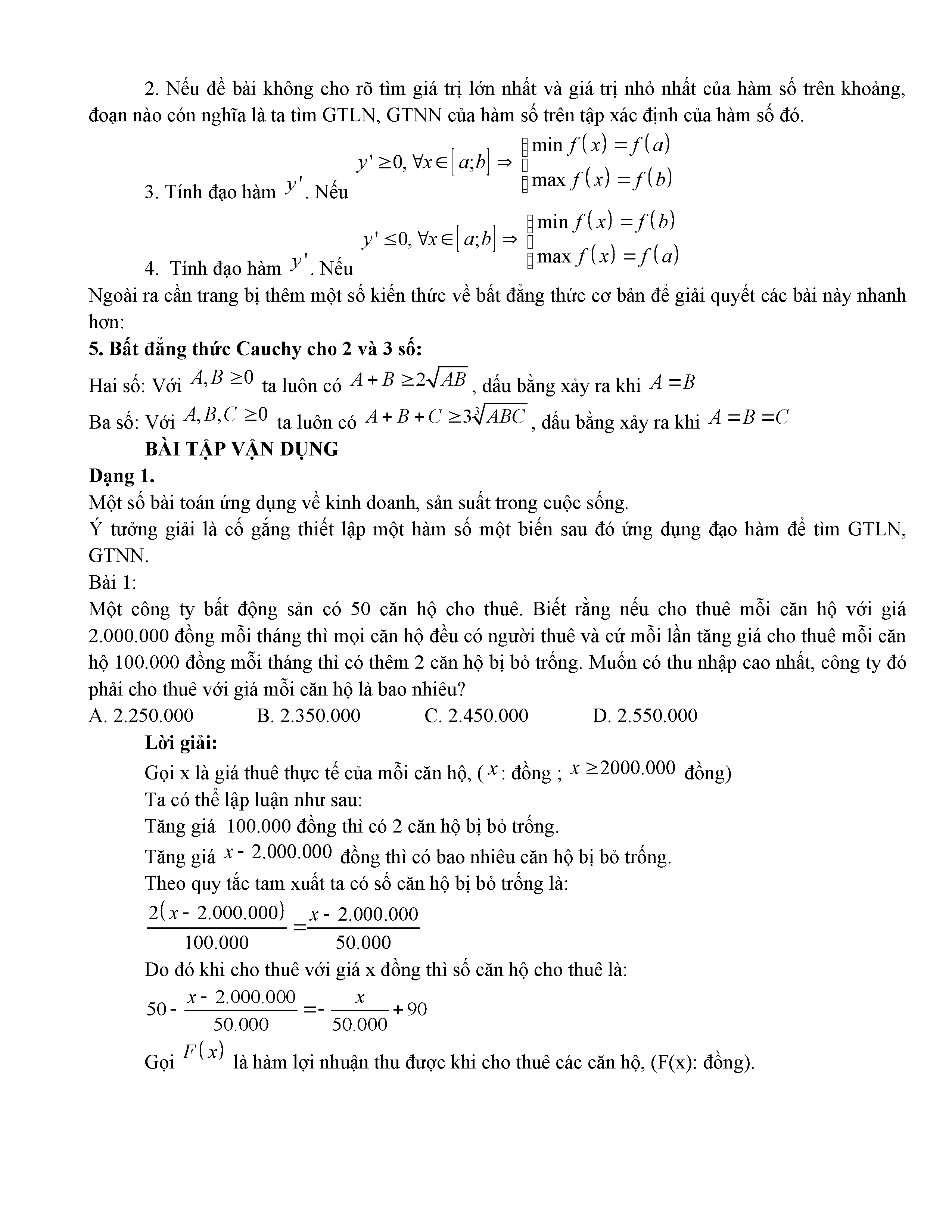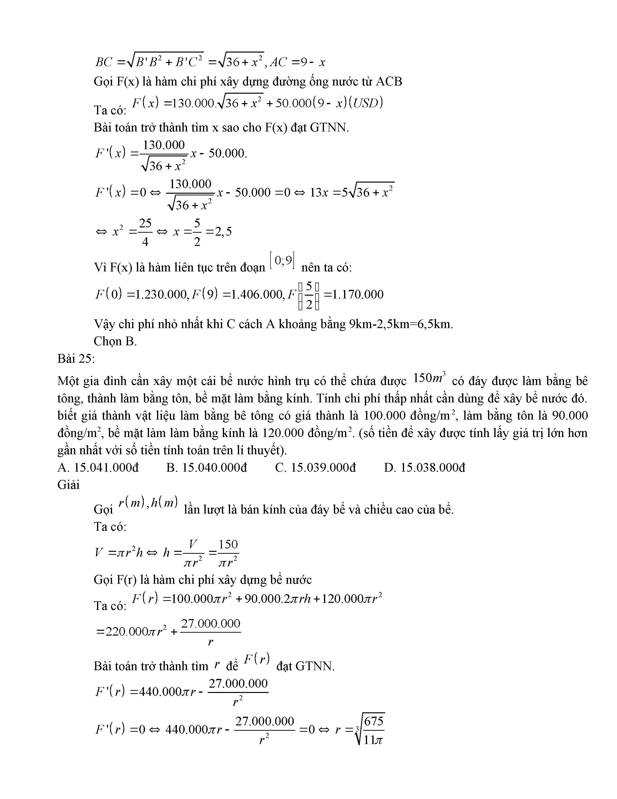 BÀI TOÁN VẬN DỤNG CAO CHUYÊN ĐỀ ỨNG DỤNG ĐẠO HÀM - CHỦ ĐỀ 1: CÁC BÀI TOÁN THỰC TẾ ỨNG DỤNG ĐẠO HÀM ĐỂ GIẢI
