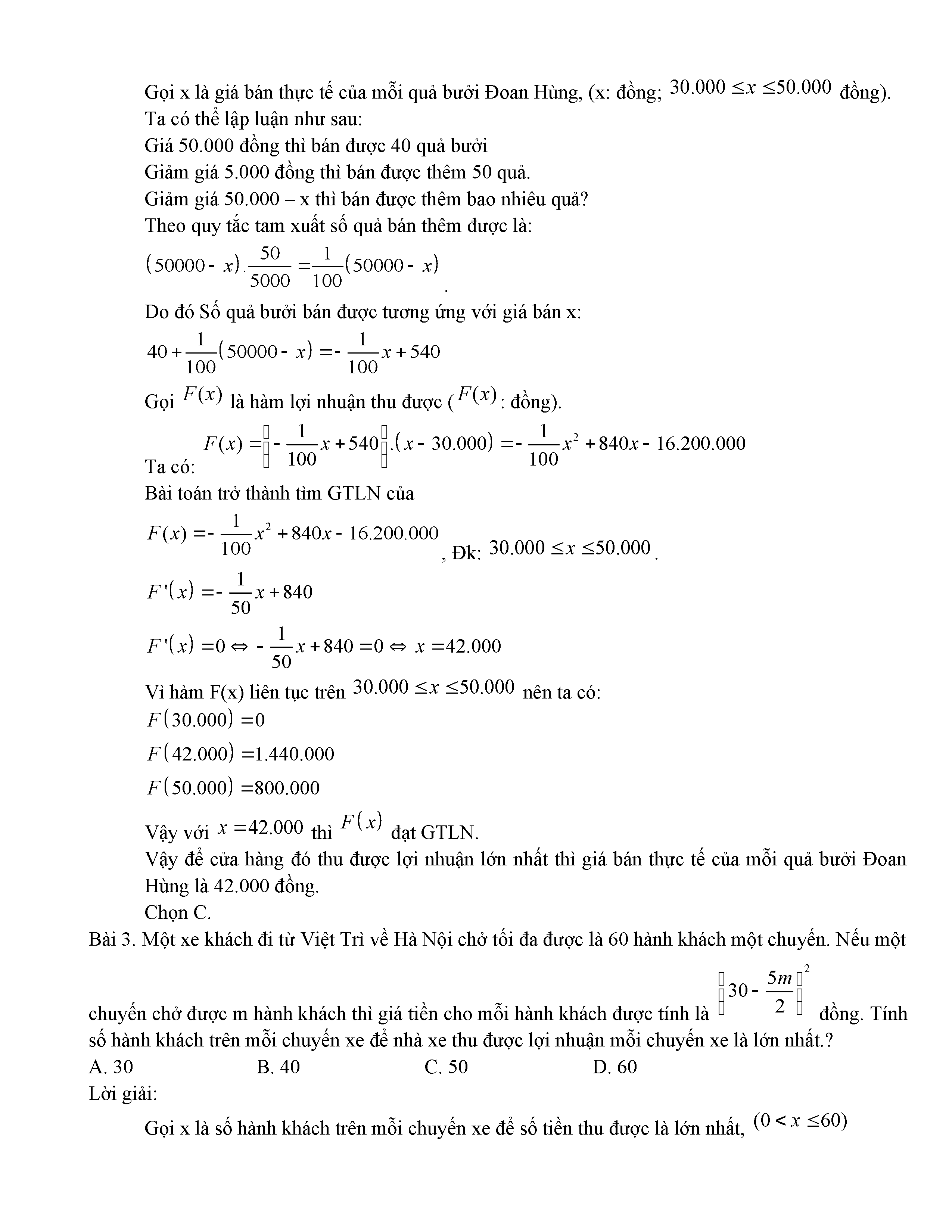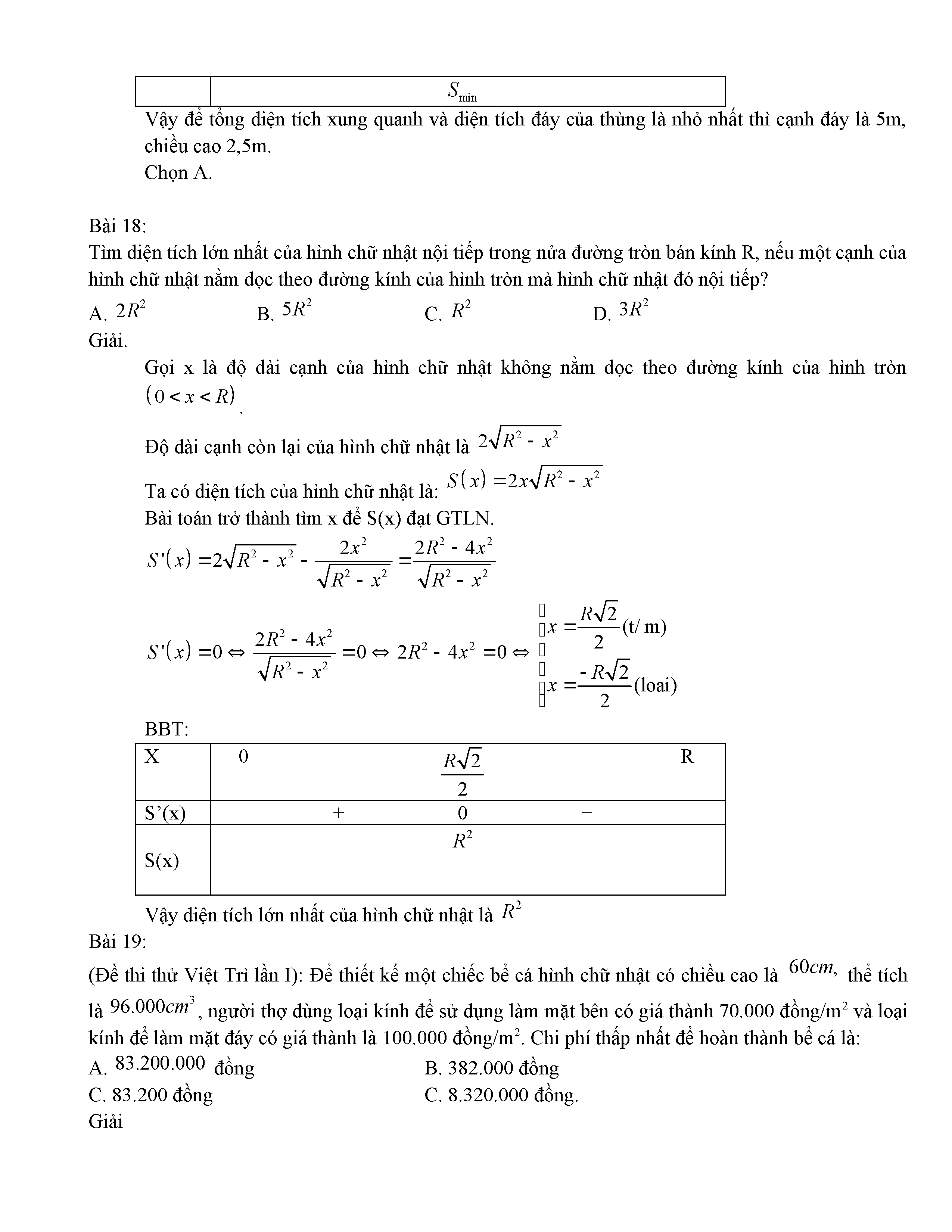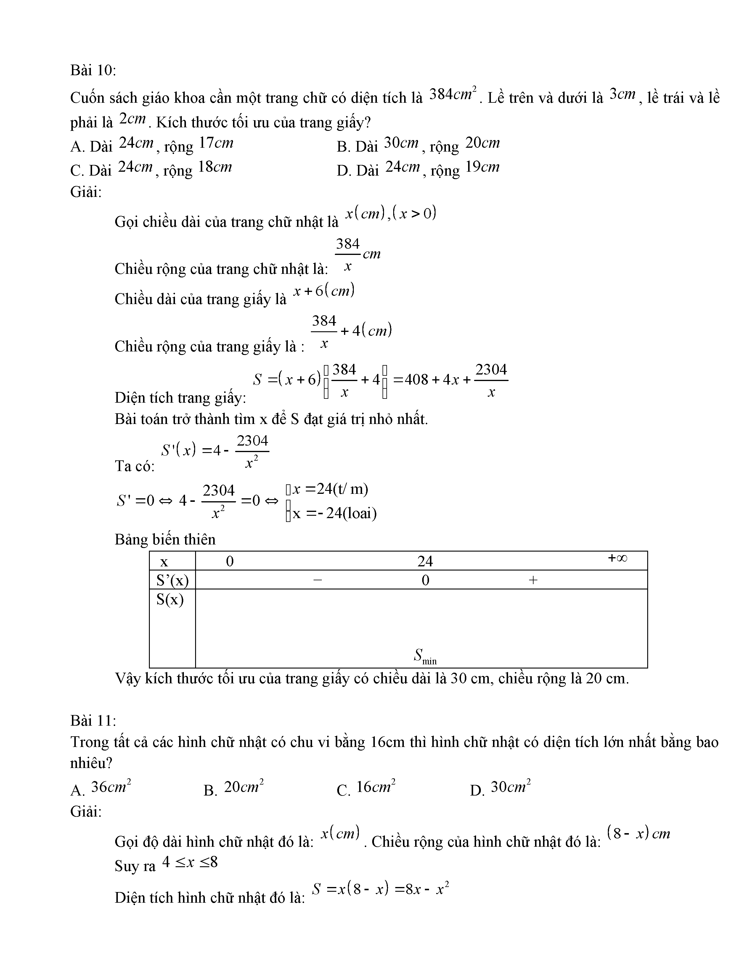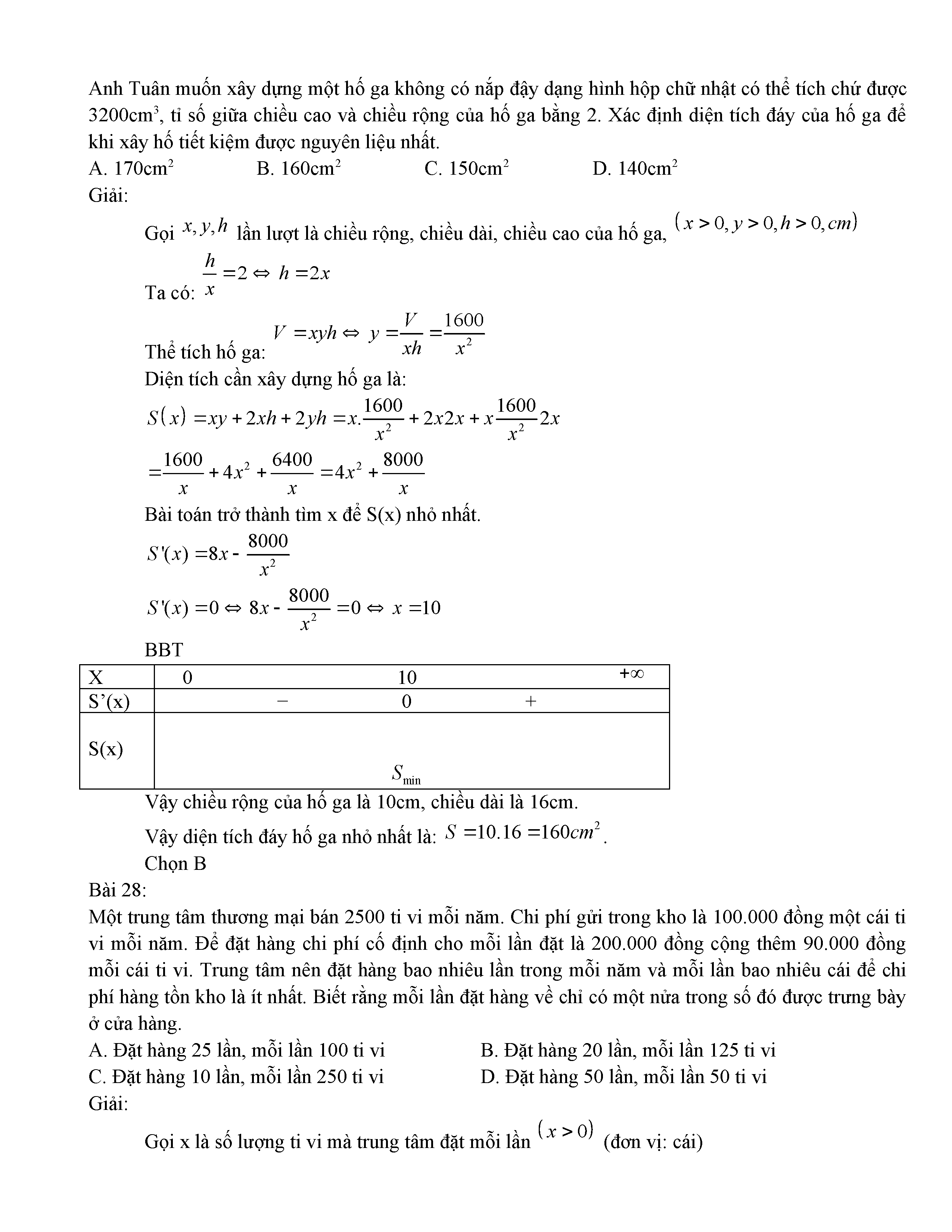 BÀI TOÁN VẬN DỤNG CAO CHUYÊN ĐỀ ỨNG DỤNG ĐẠO HÀM - CHỦ ĐỀ 1: CÁC BÀI TOÁN THỰC TẾ ỨNG DỤNG ĐẠO HÀM ĐỂ GIẢI