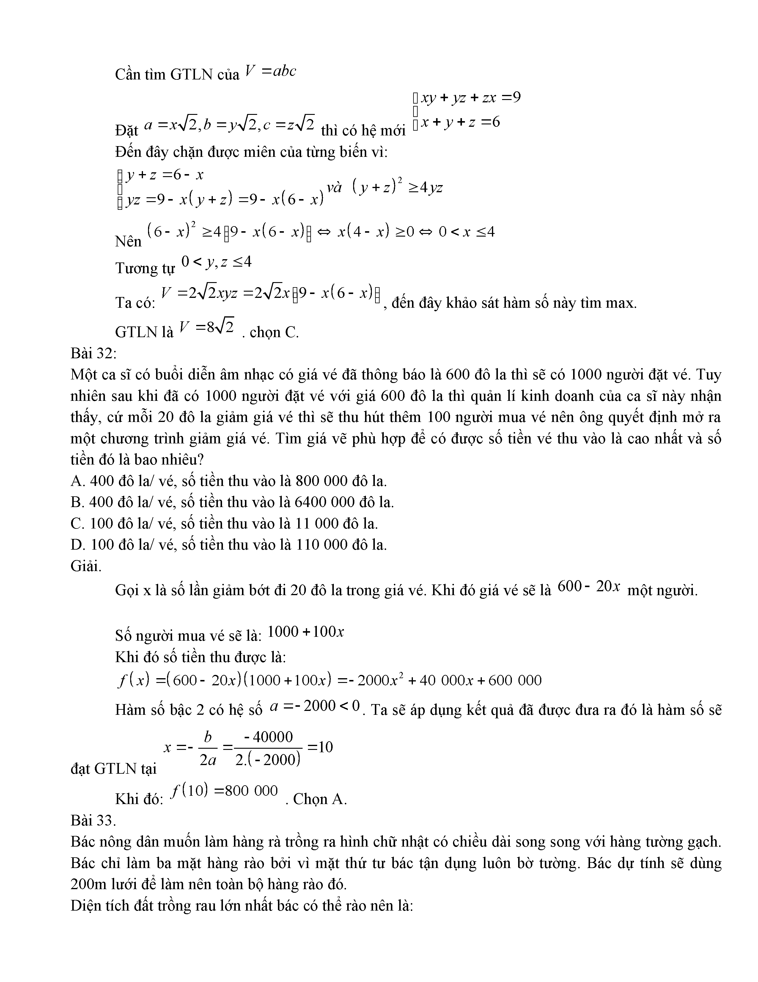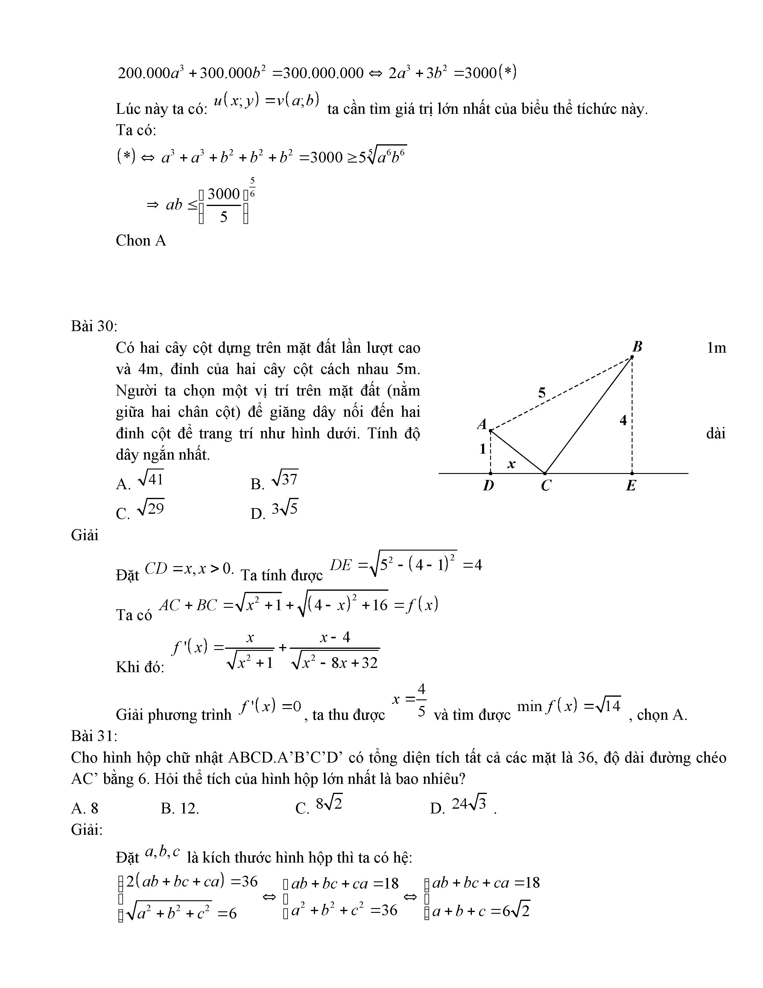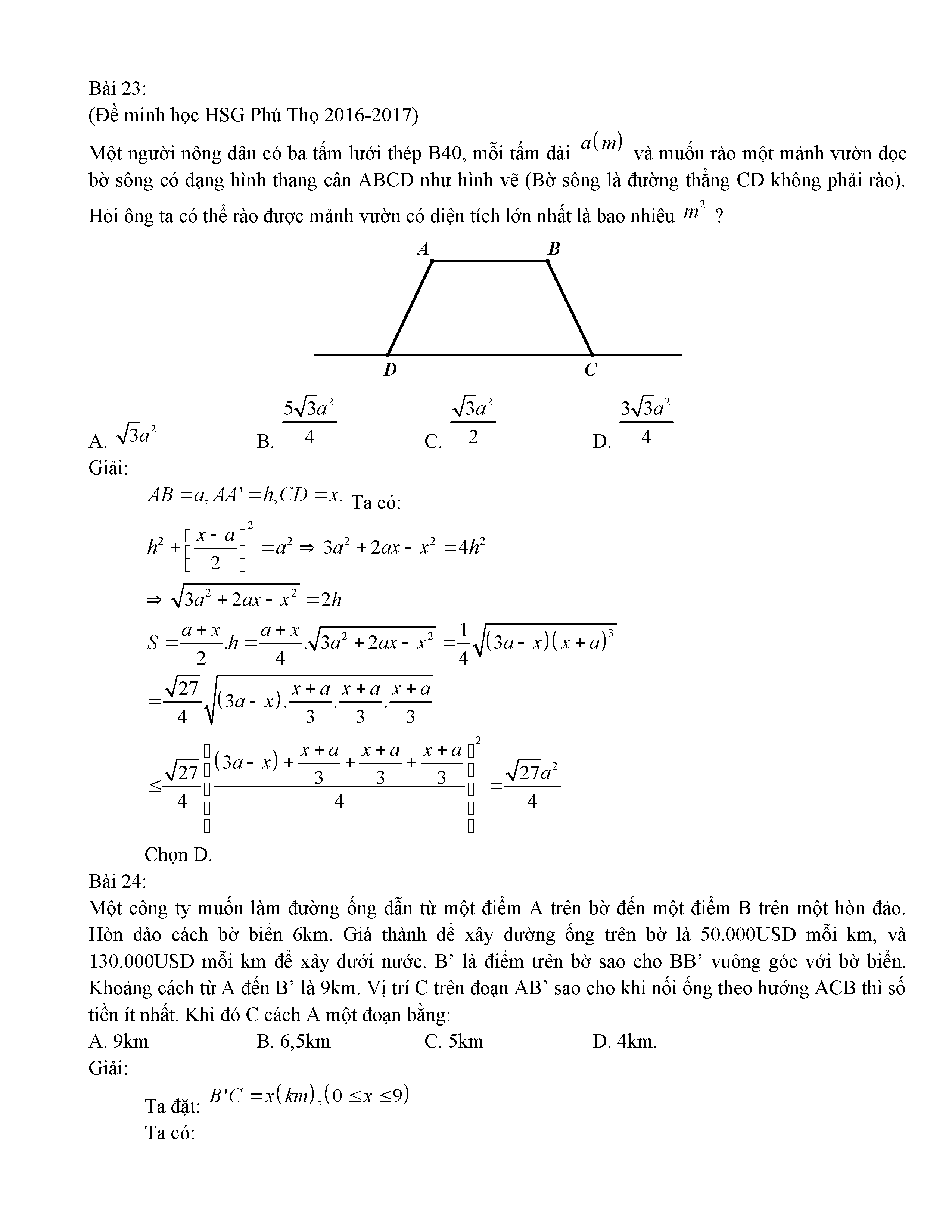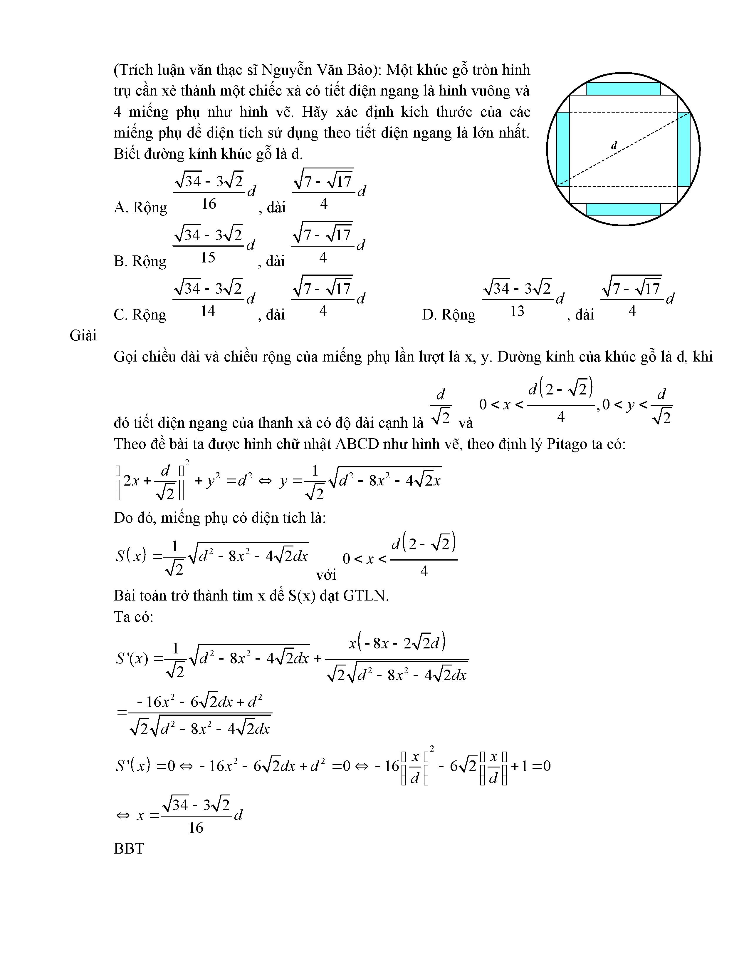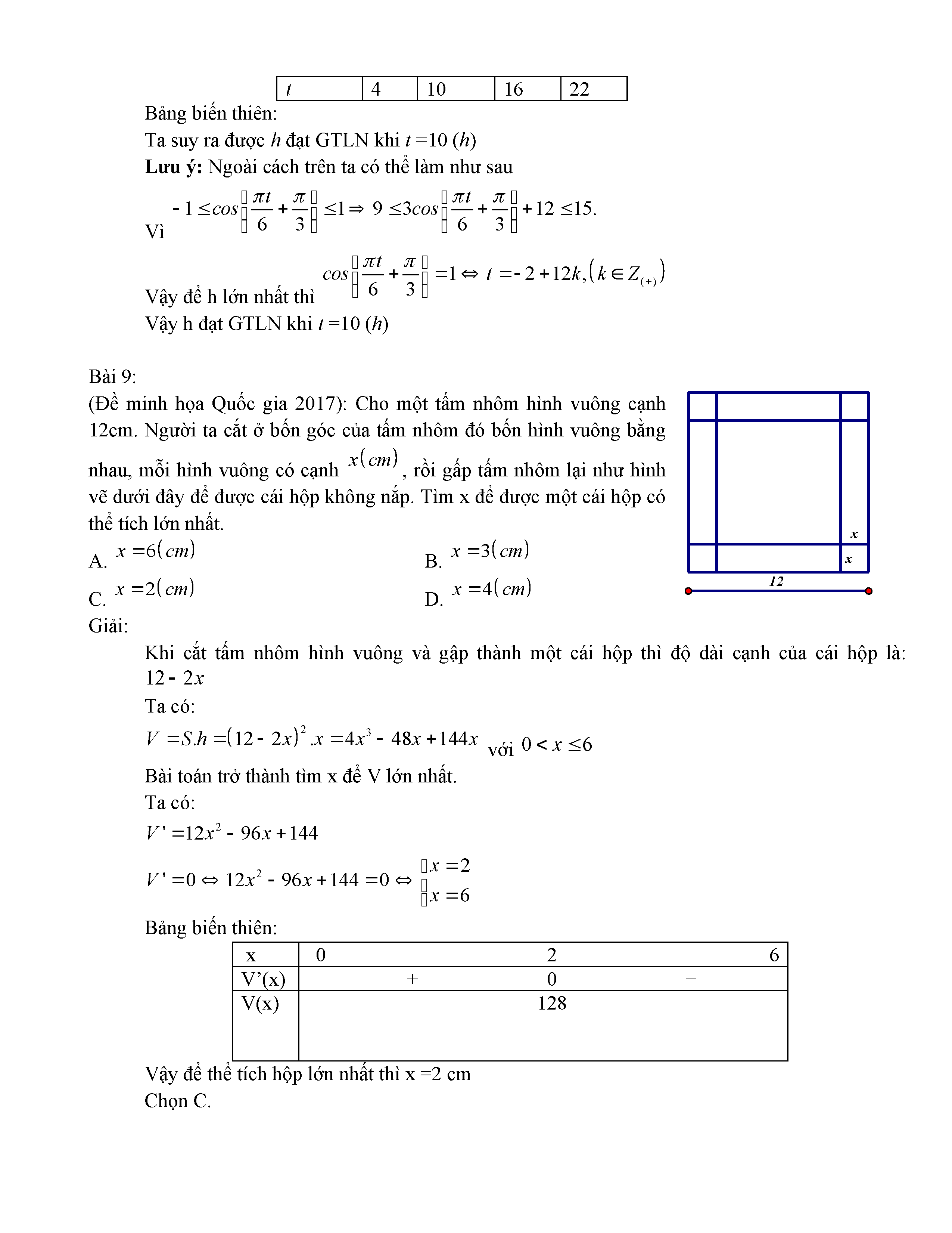 BÀI TOÁN VẬN DỤNG CAO CHUYÊN ĐỀ ỨNG DỤNG ĐẠO HÀM - CHỦ ĐỀ 1: CÁC BÀI TOÁN THỰC TẾ ỨNG DỤNG ĐẠO HÀM ĐỂ GIẢI