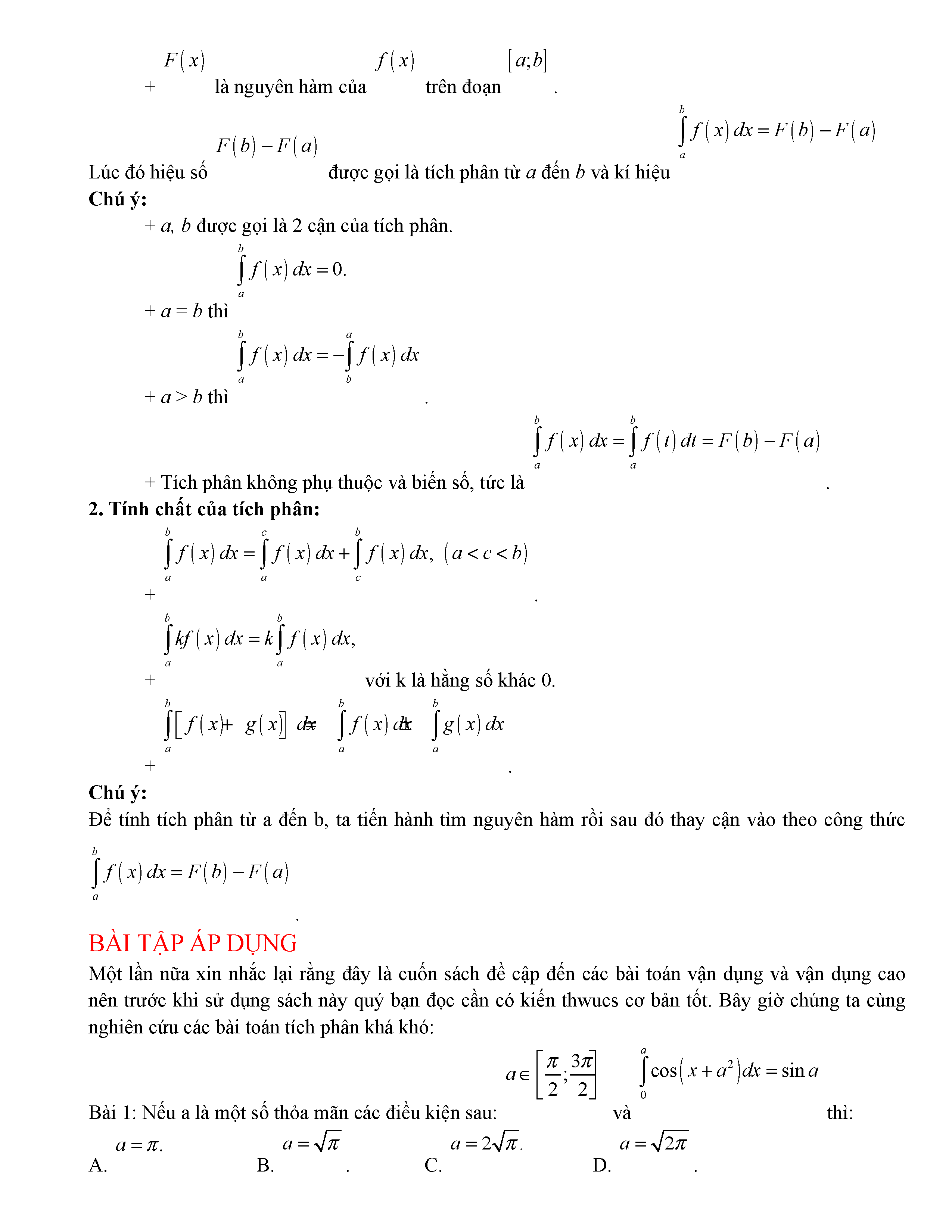 BÀI TOÁN VẬN DỤNG CAO - CHỦ ĐỀ 3: CHUYÊN ĐỀ NGUYÊN HÀM, TÍCH PHÂN