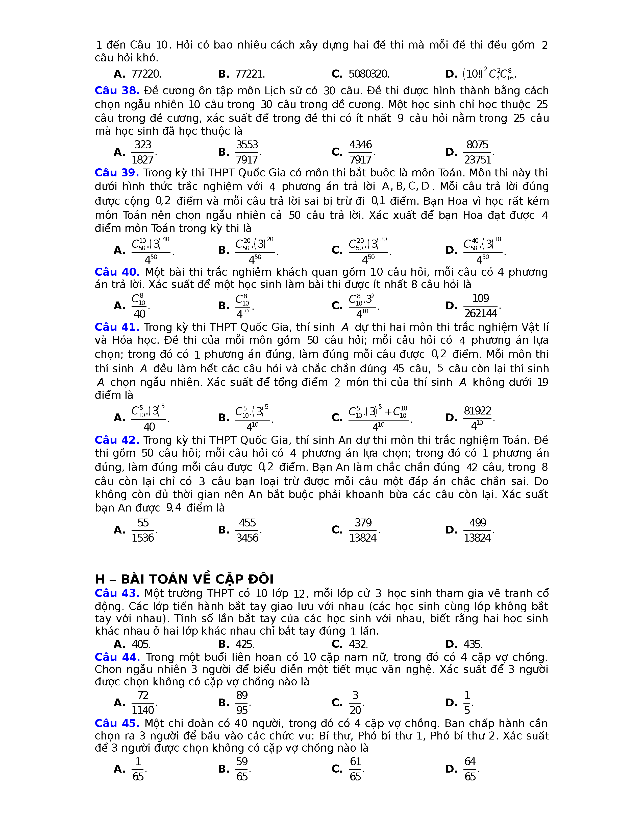 60 bài tập Vận dụng cao Xác Suất 2018 có lời giải