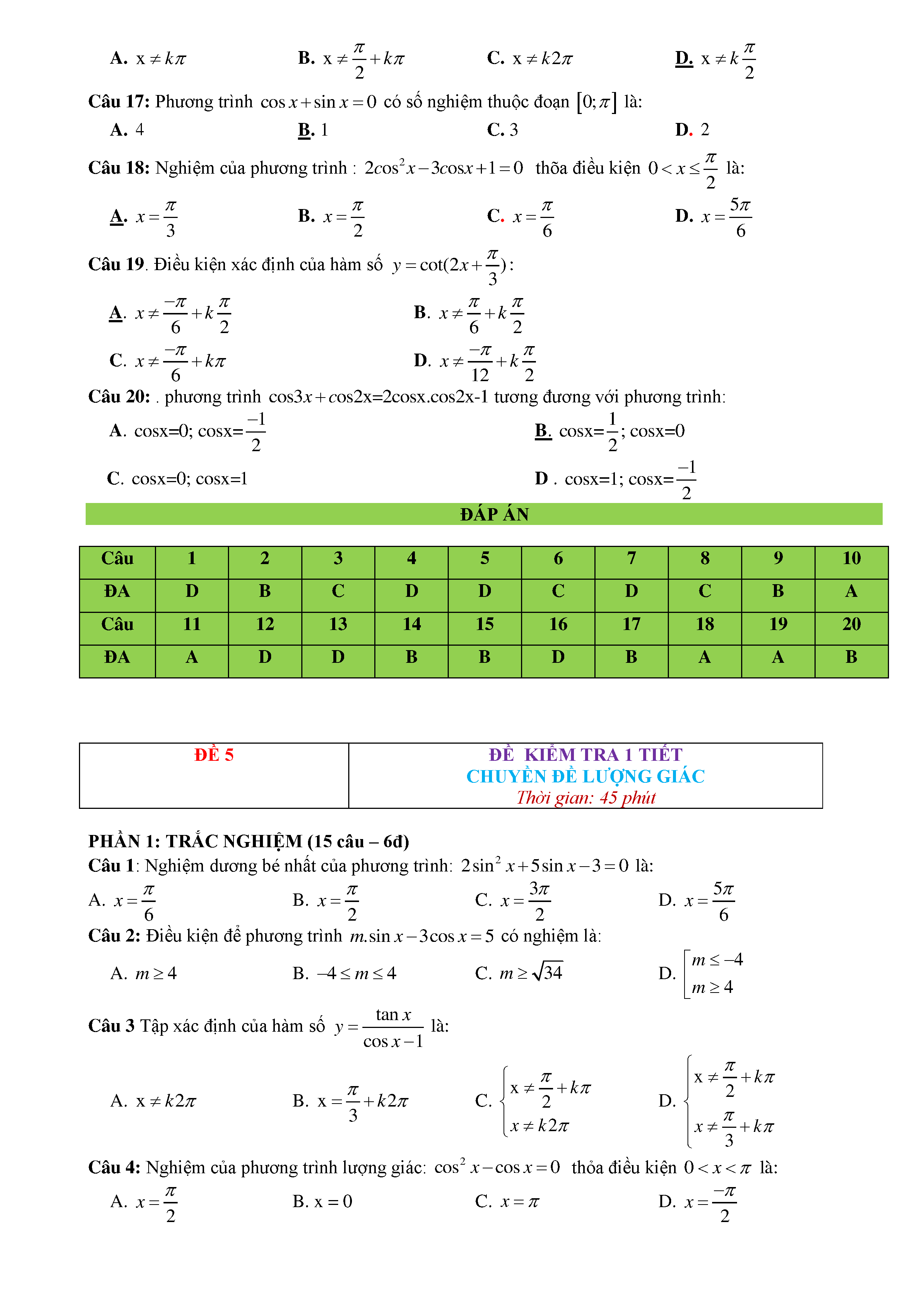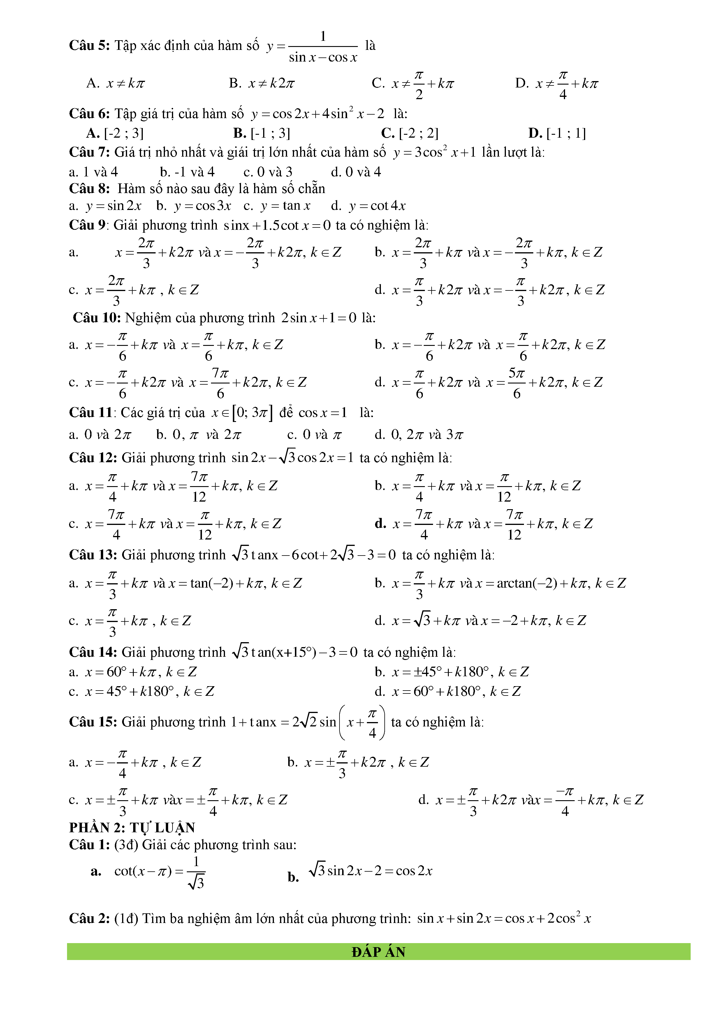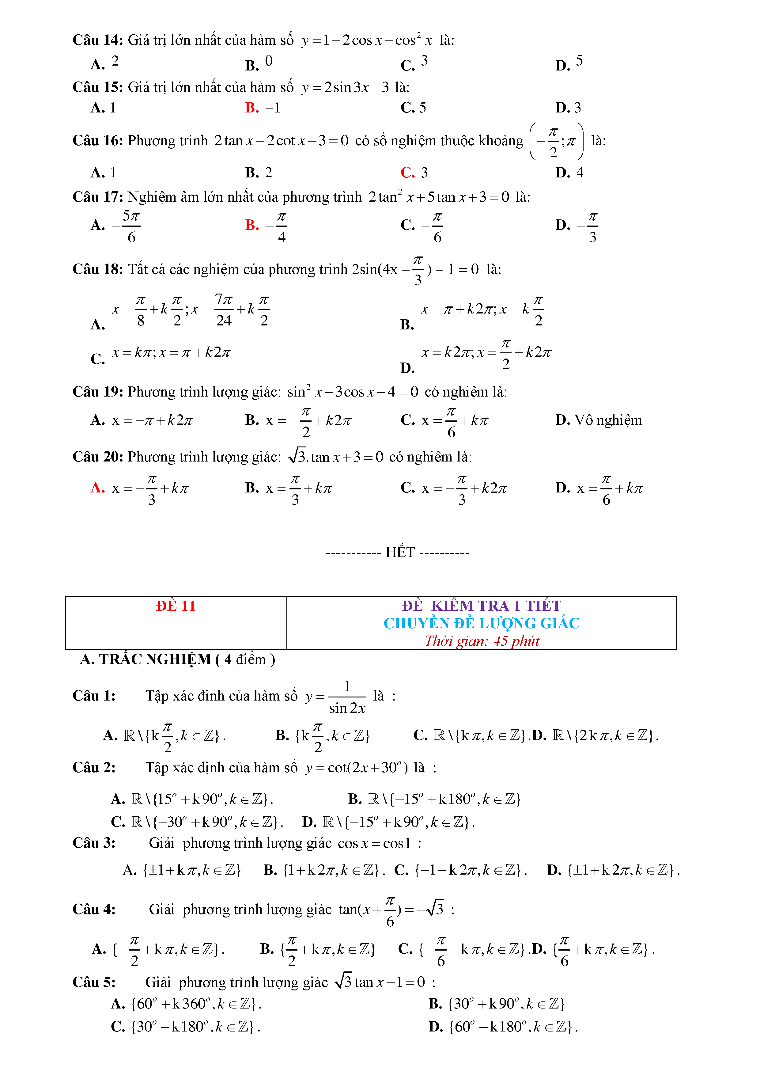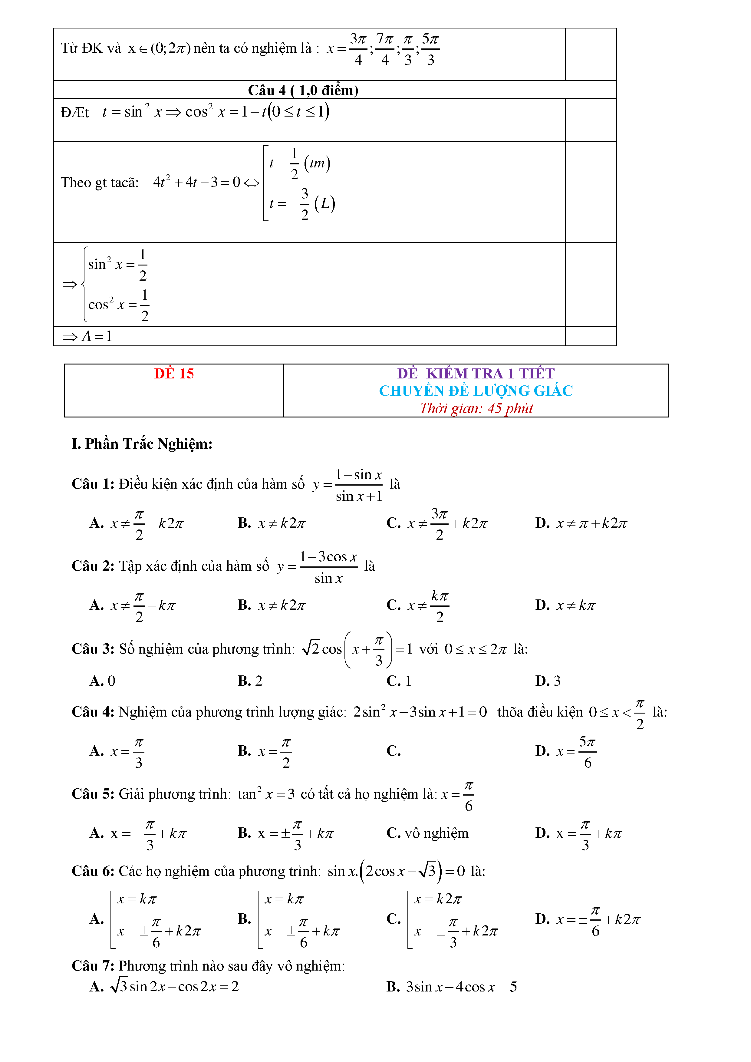 15 Đề kiểm tra Chuyên đề Lượng giác 2019 có lời giải