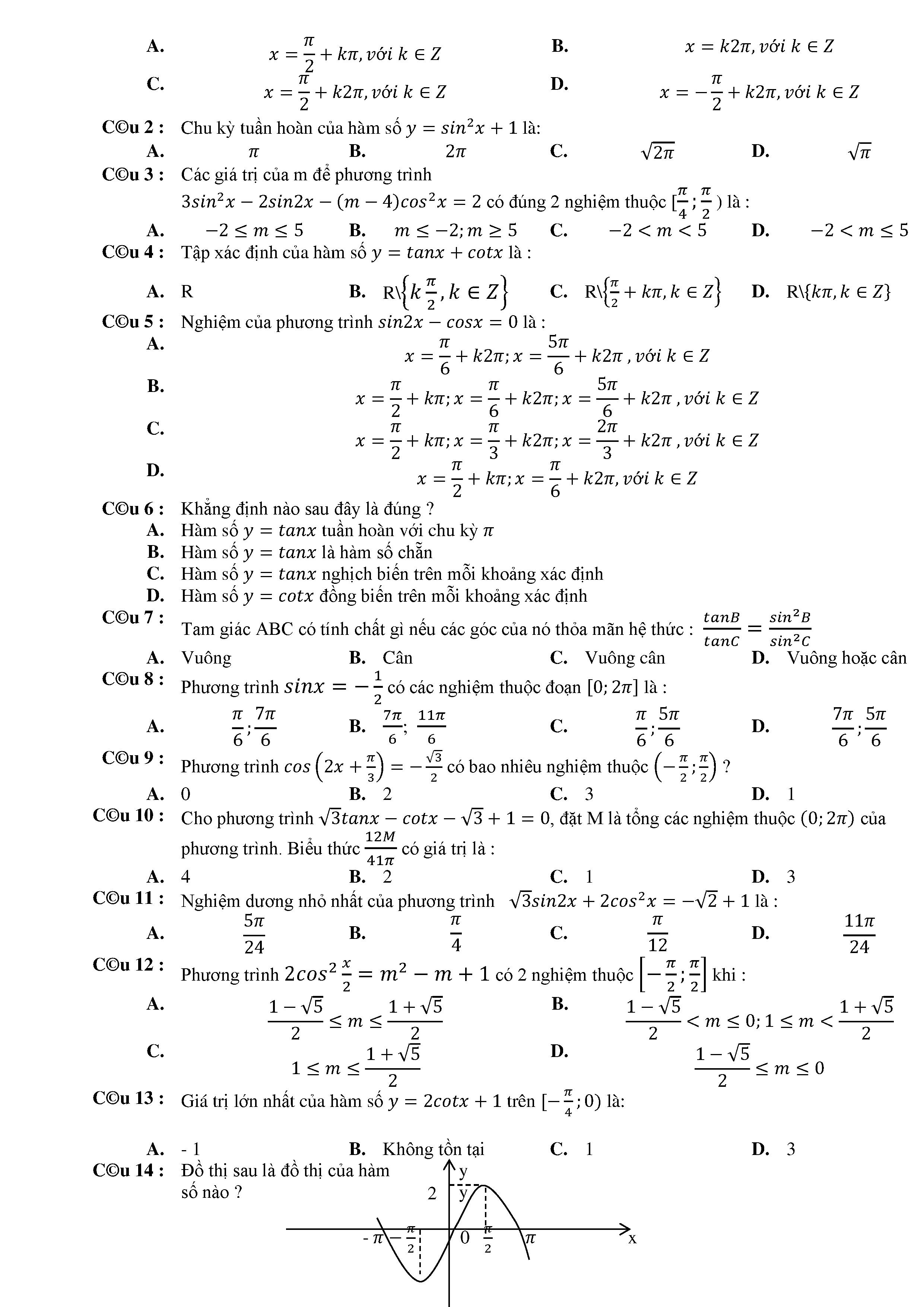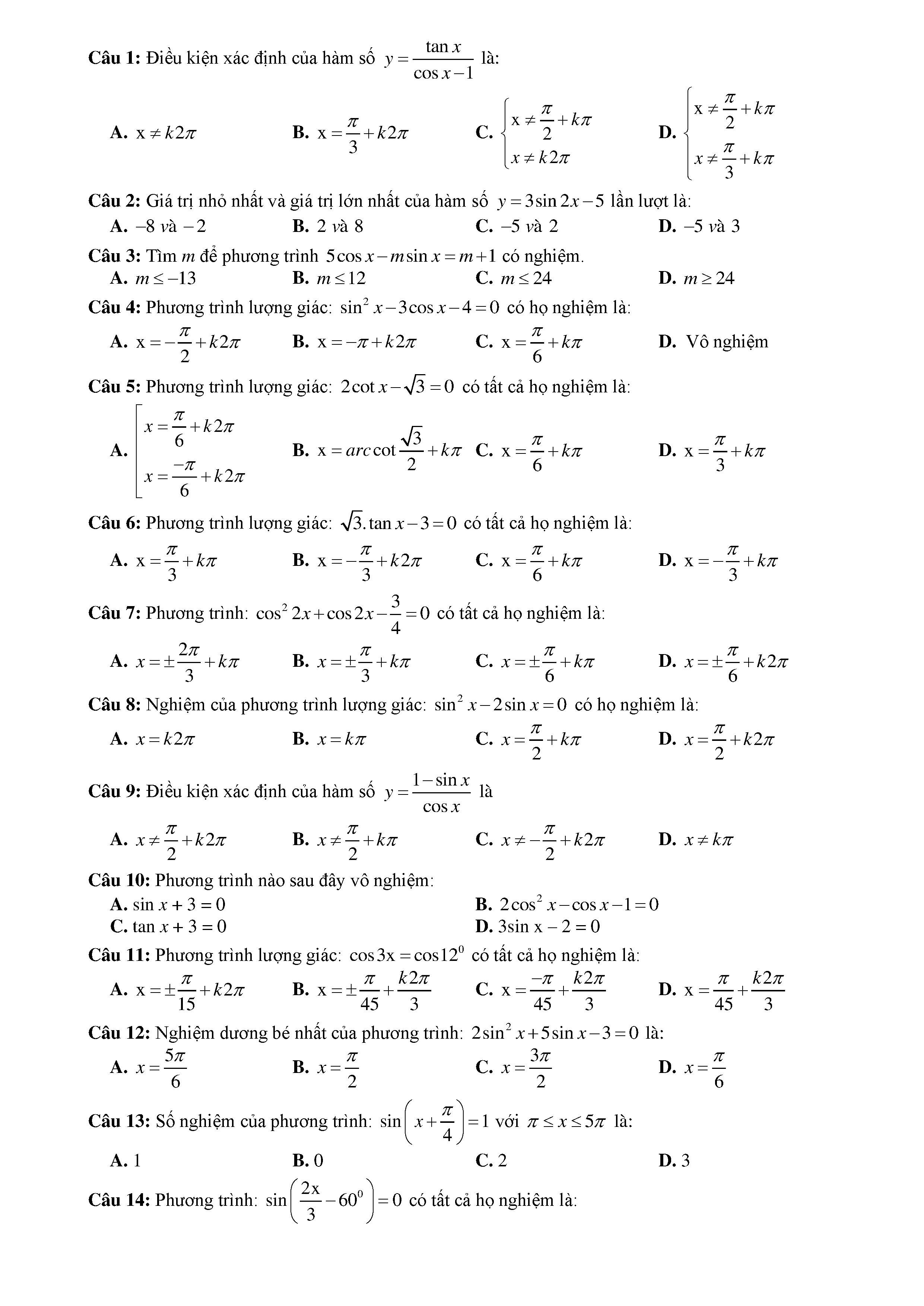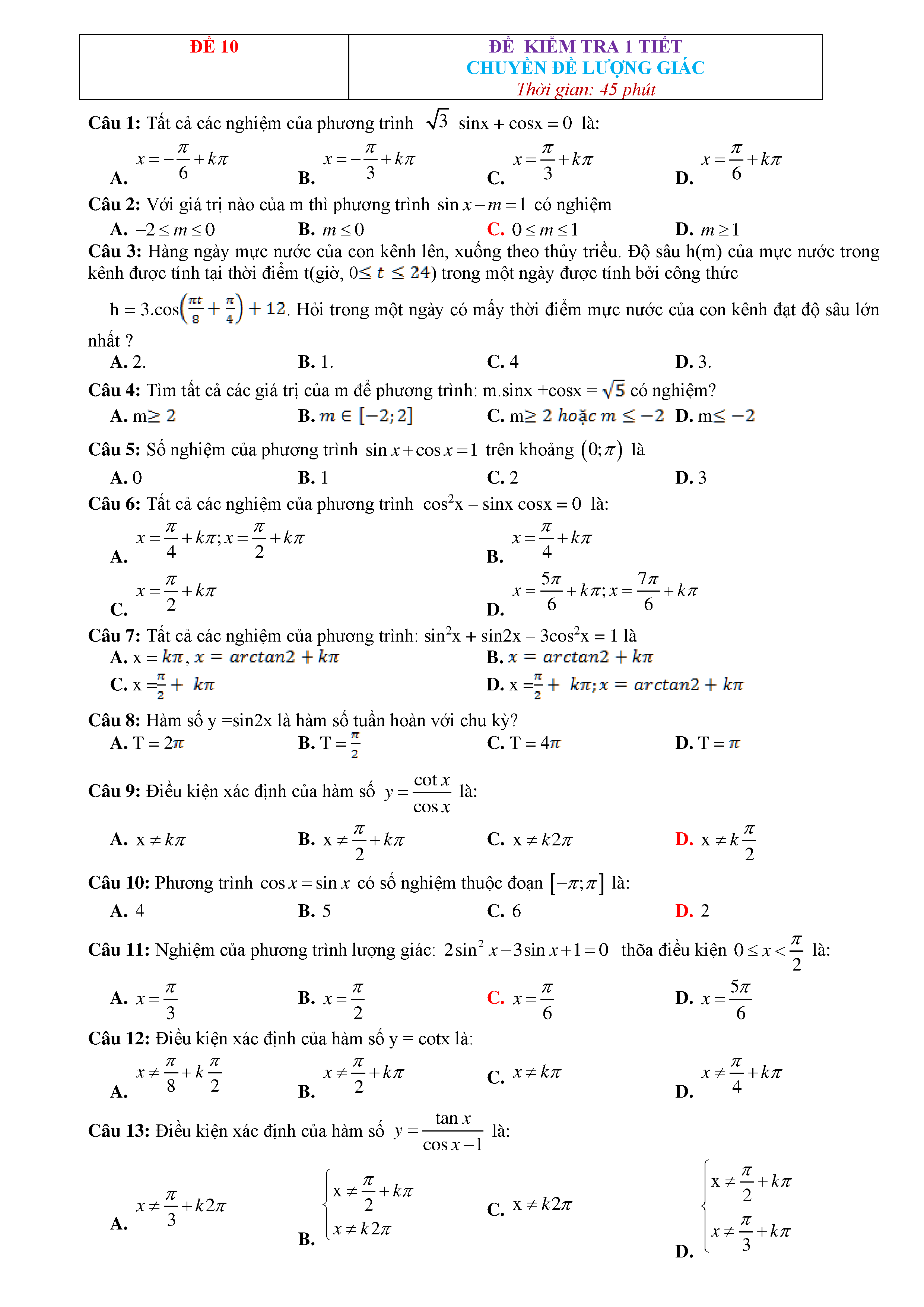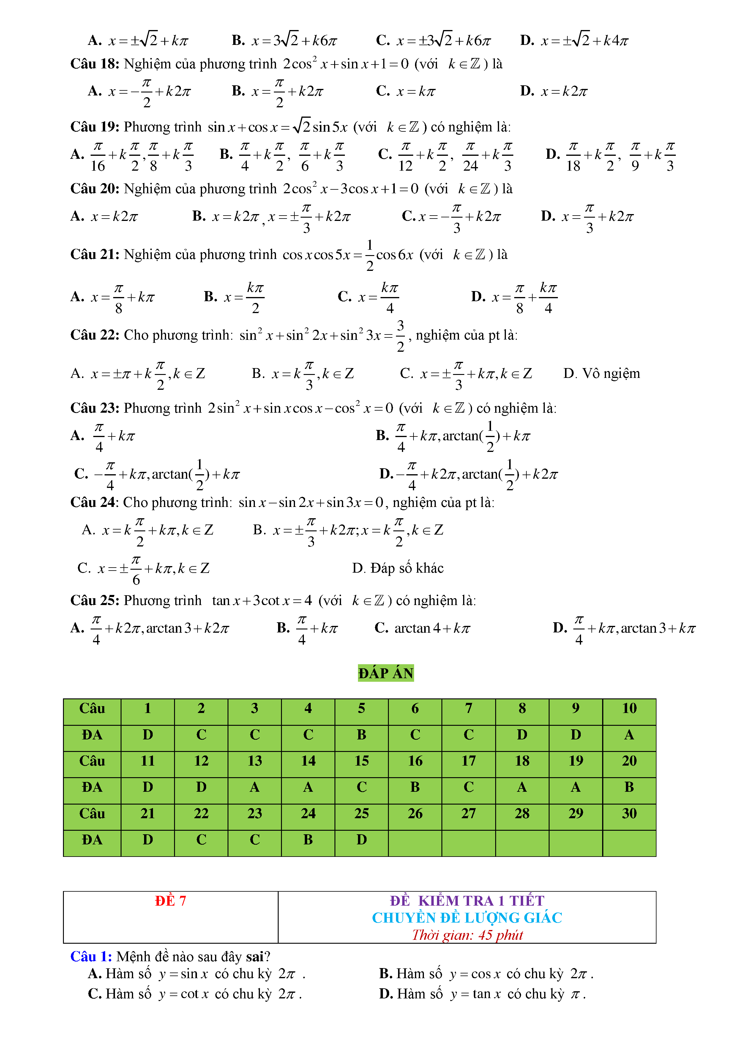 15 Đề kiểm tra Chuyên đề Lượng giác 2019 có lời giải