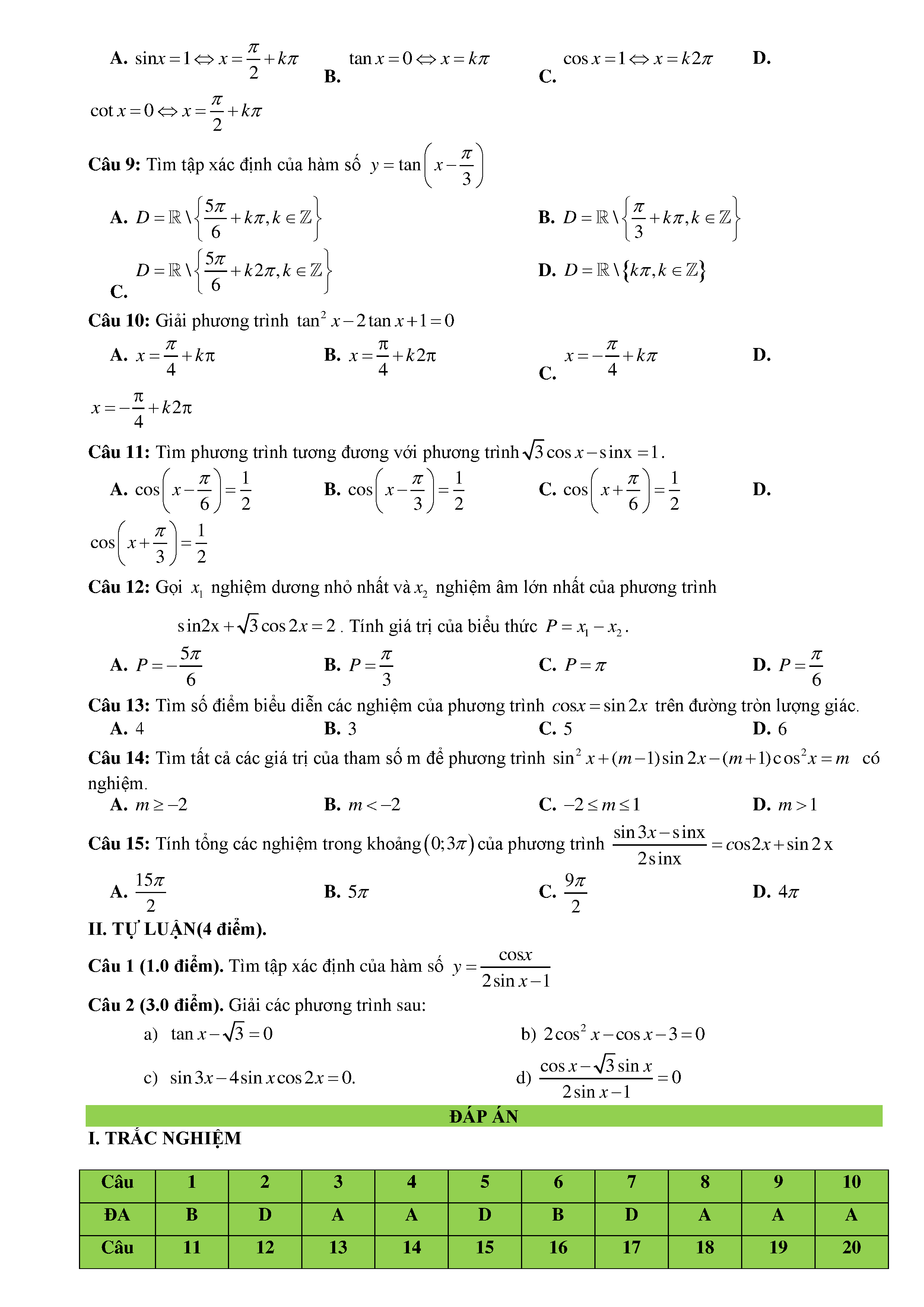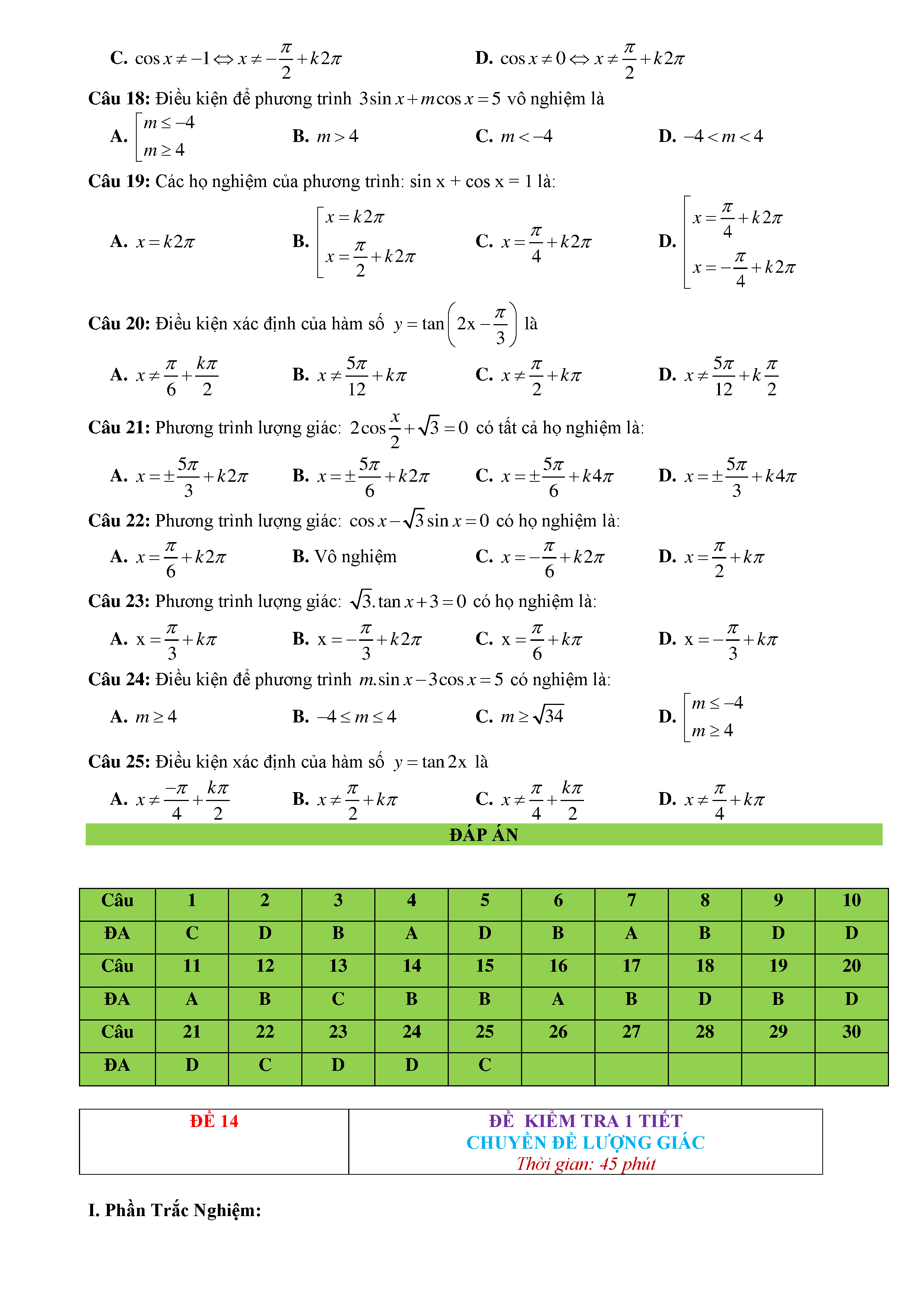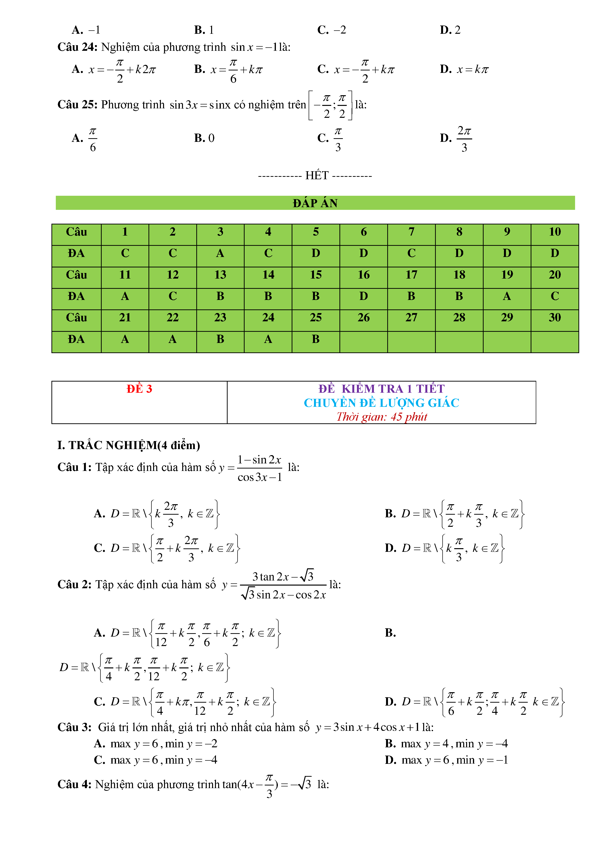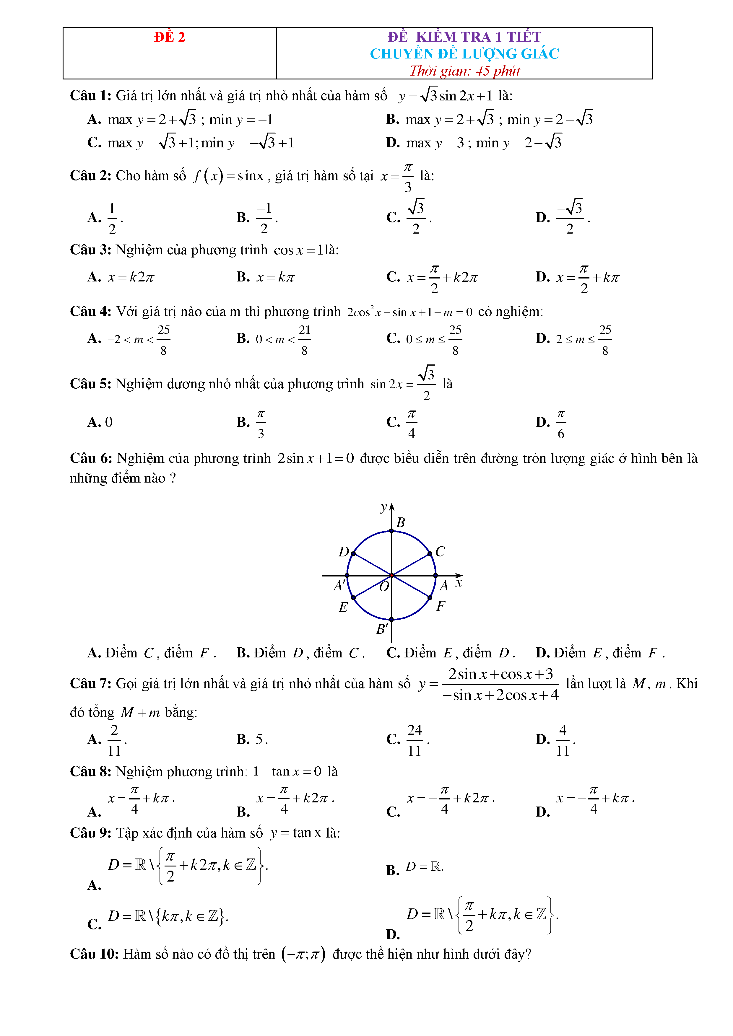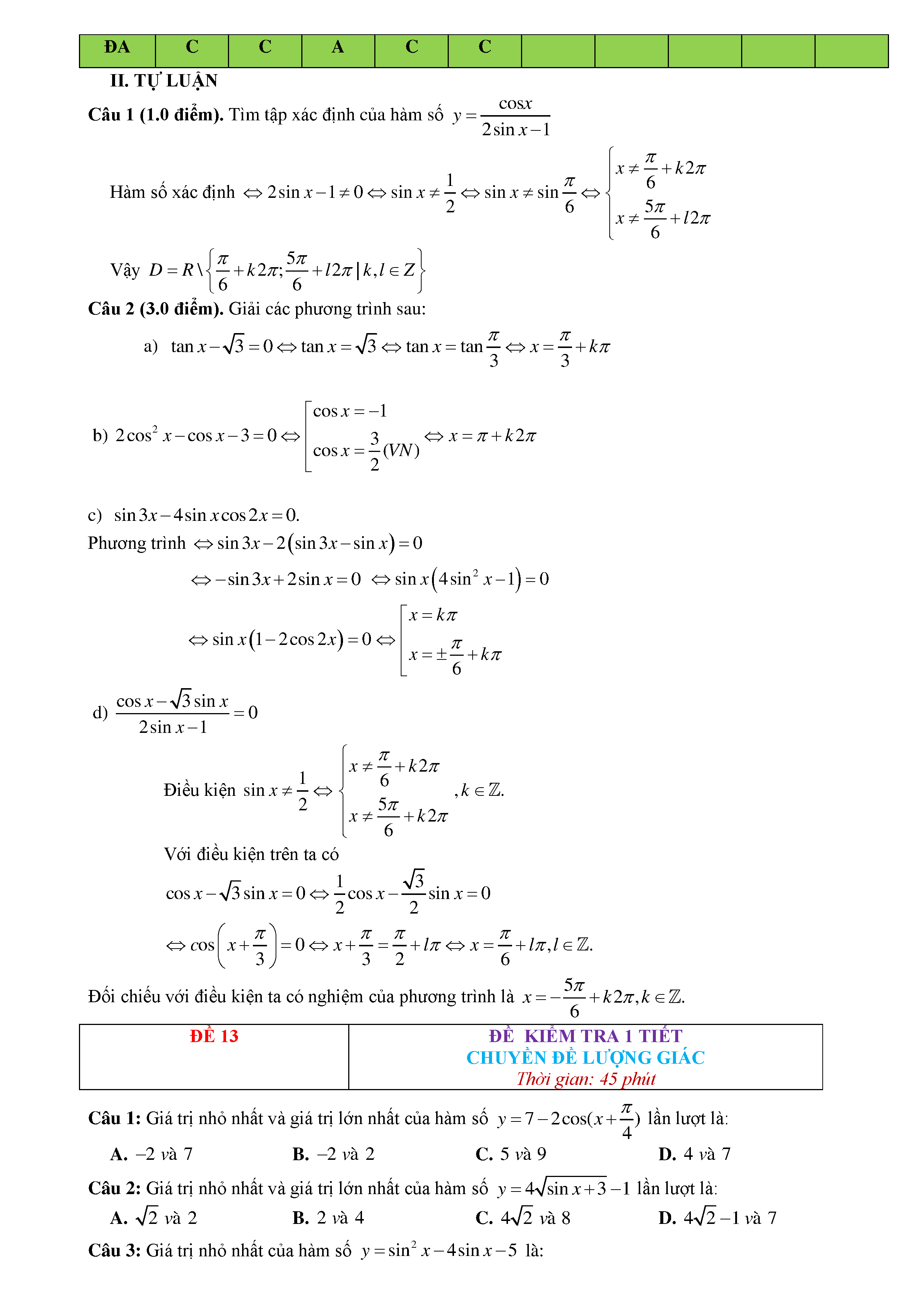 15 Đề kiểm tra Chuyên đề Lượng giác 2019 có lời giải