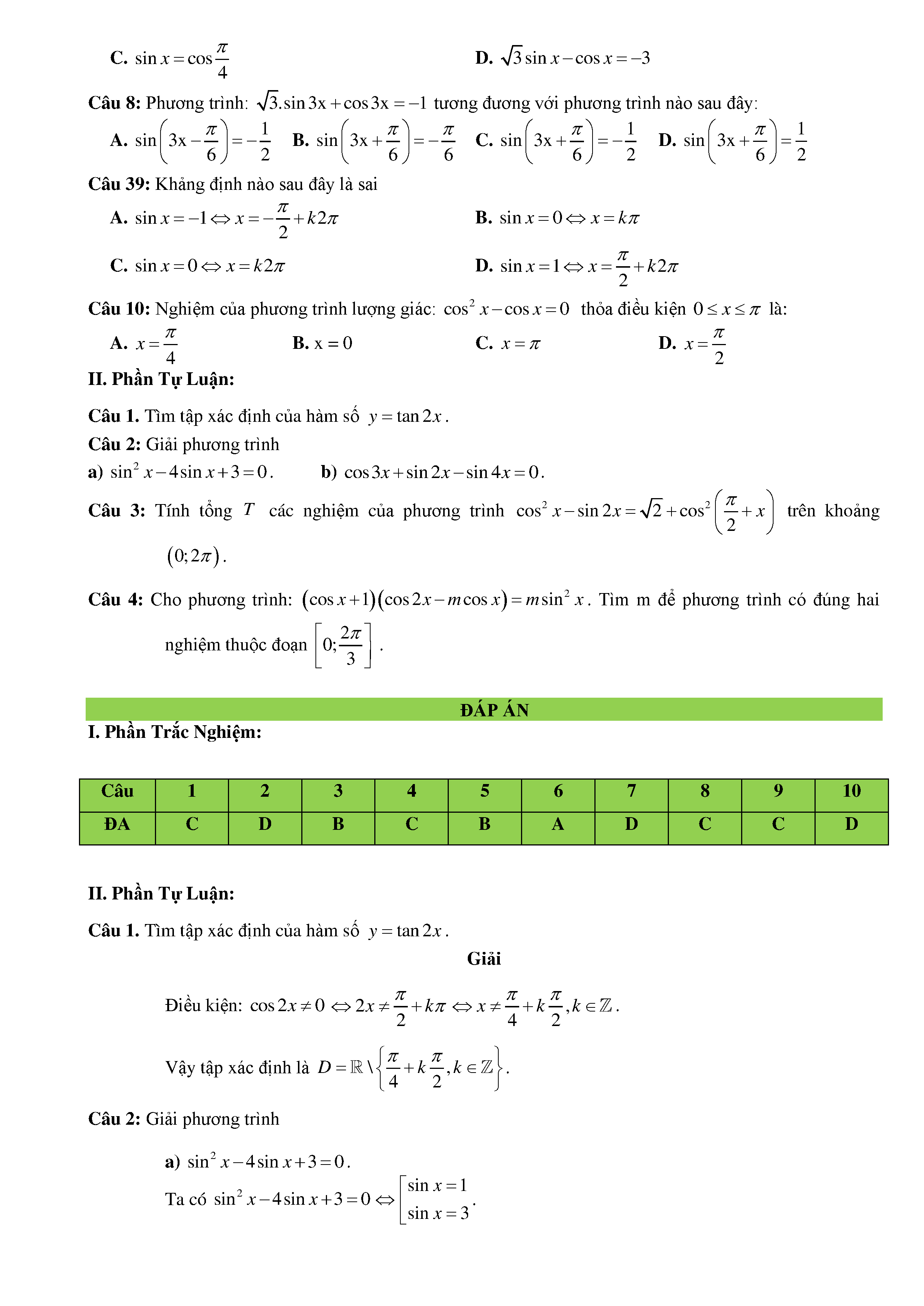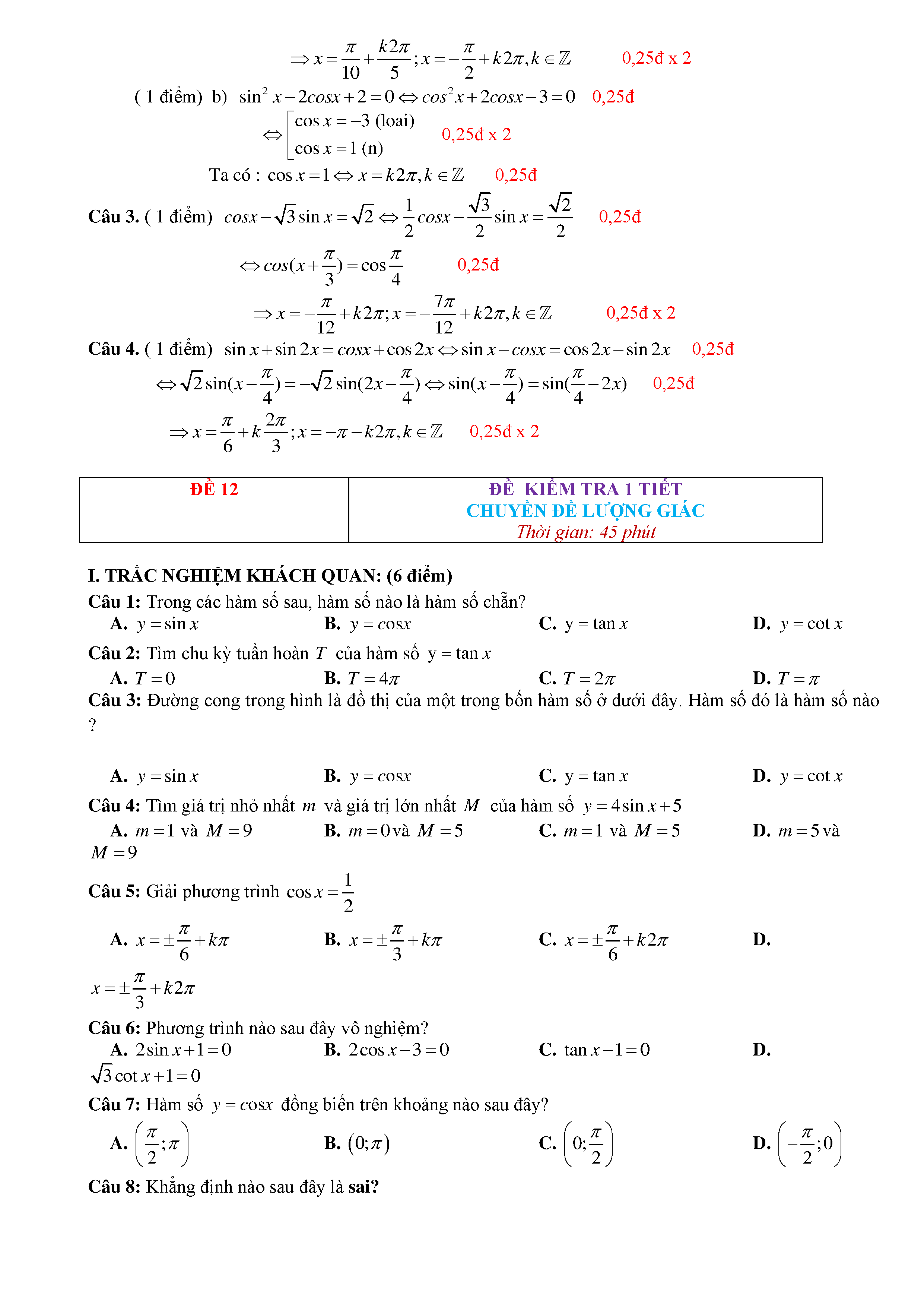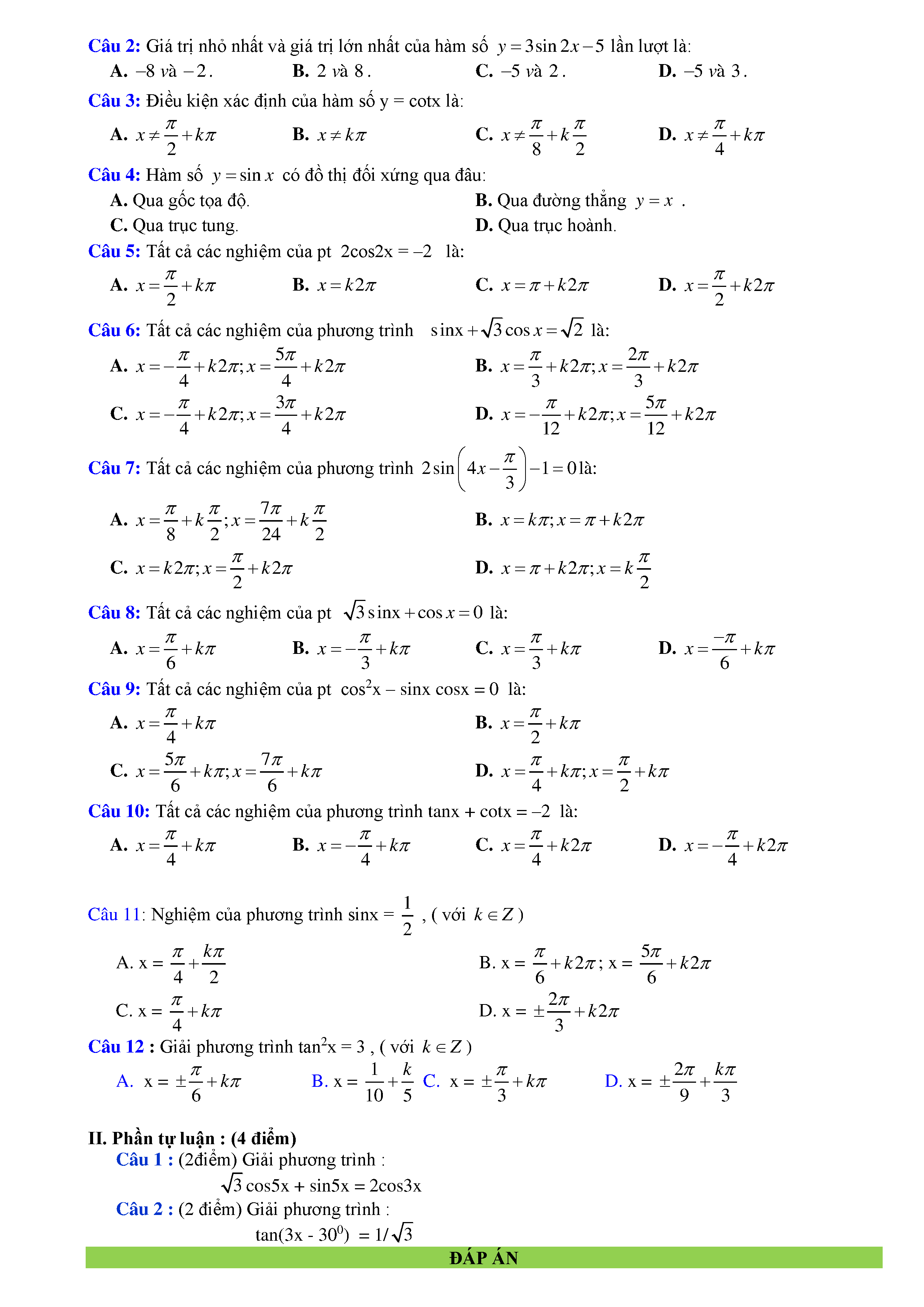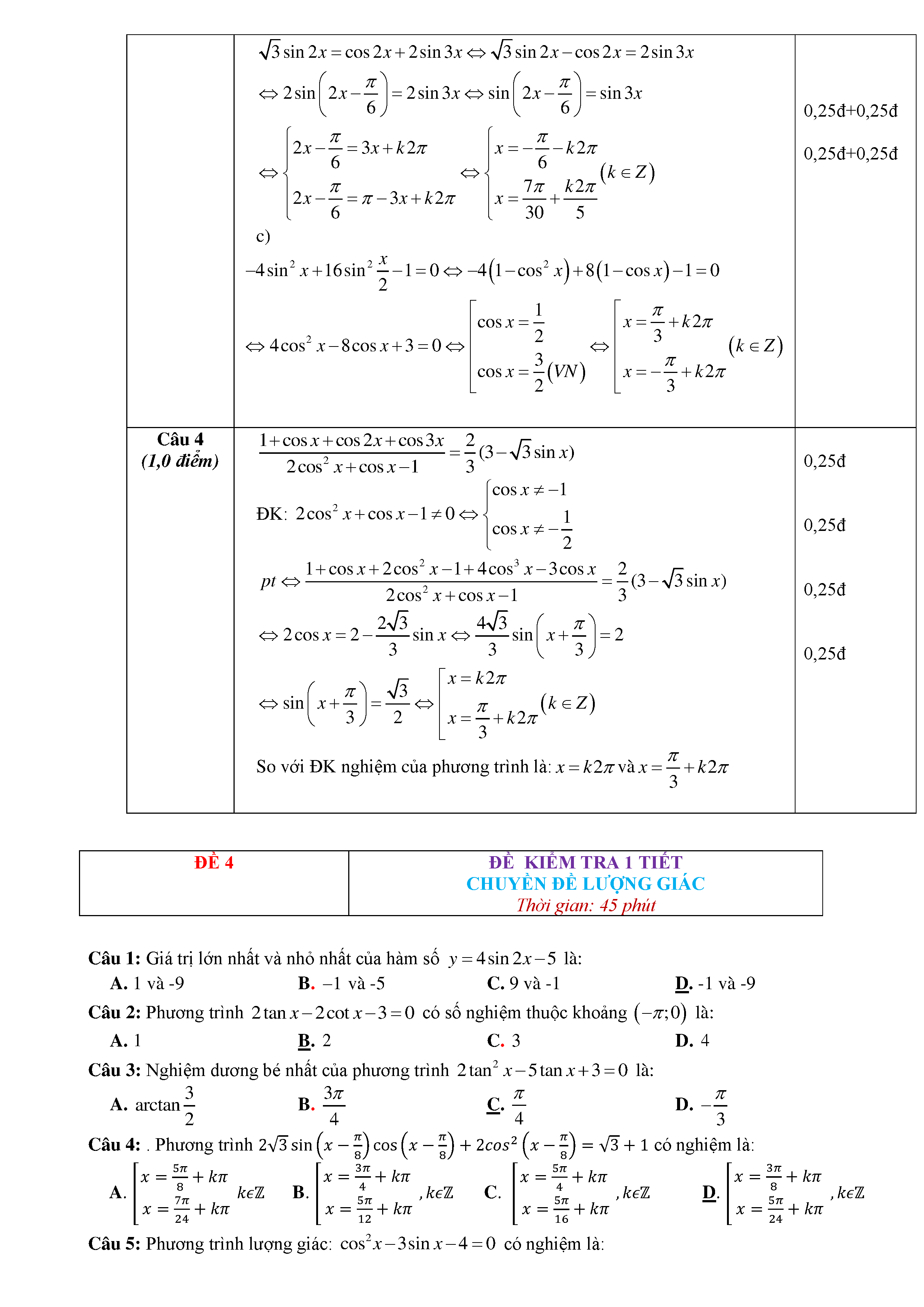 15 Đề kiểm tra Chuyên đề Lượng giác 2019 có lời giải