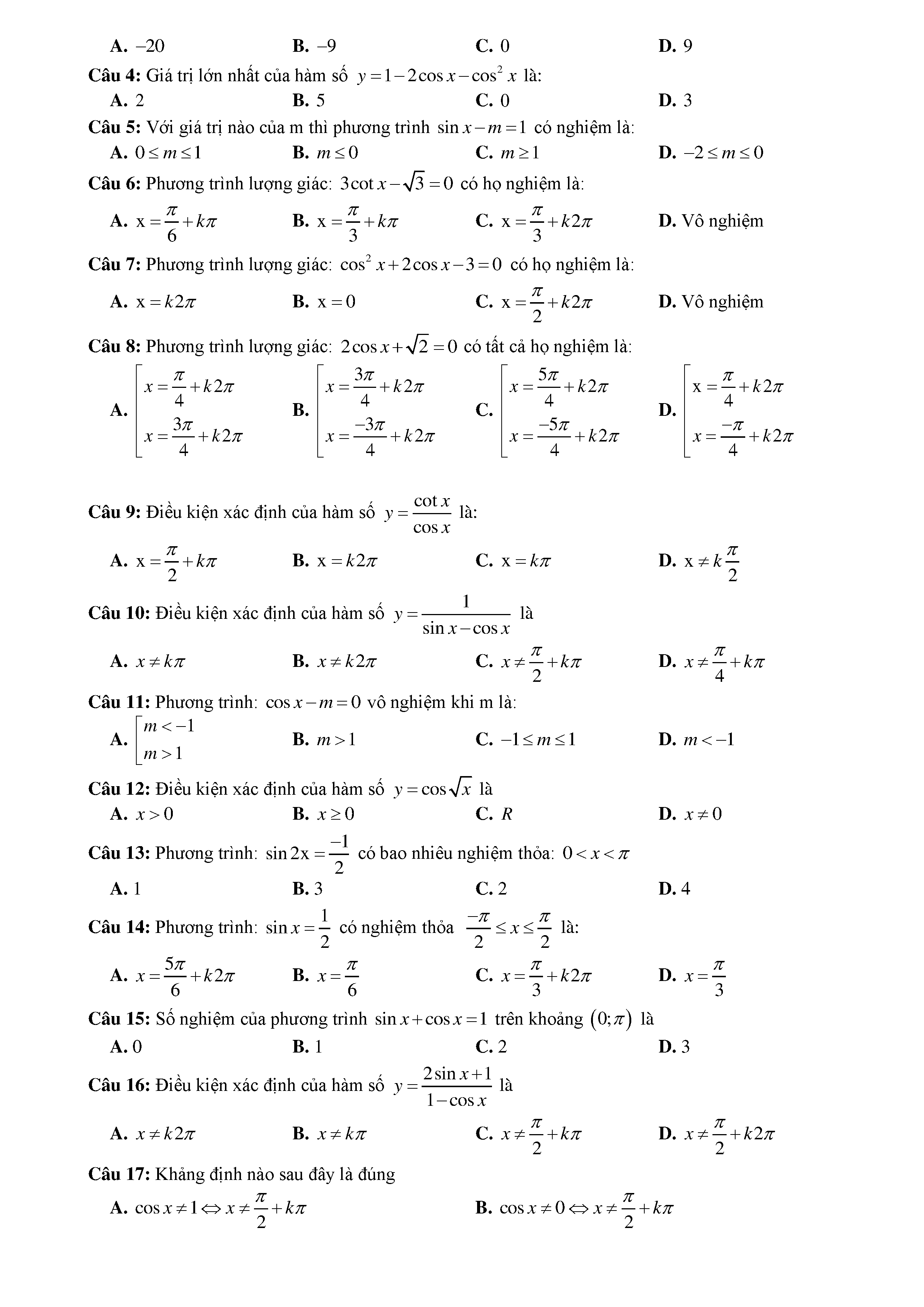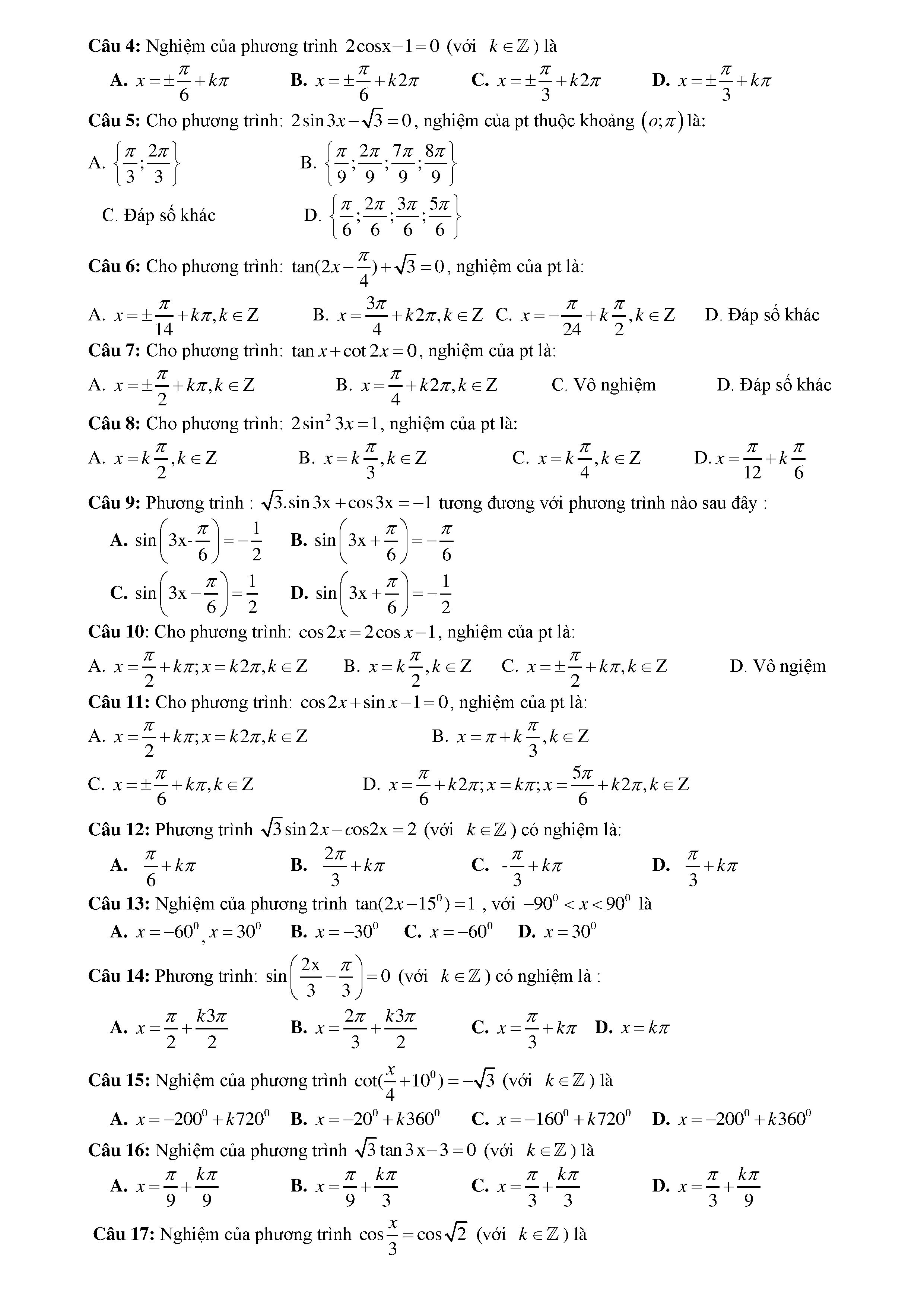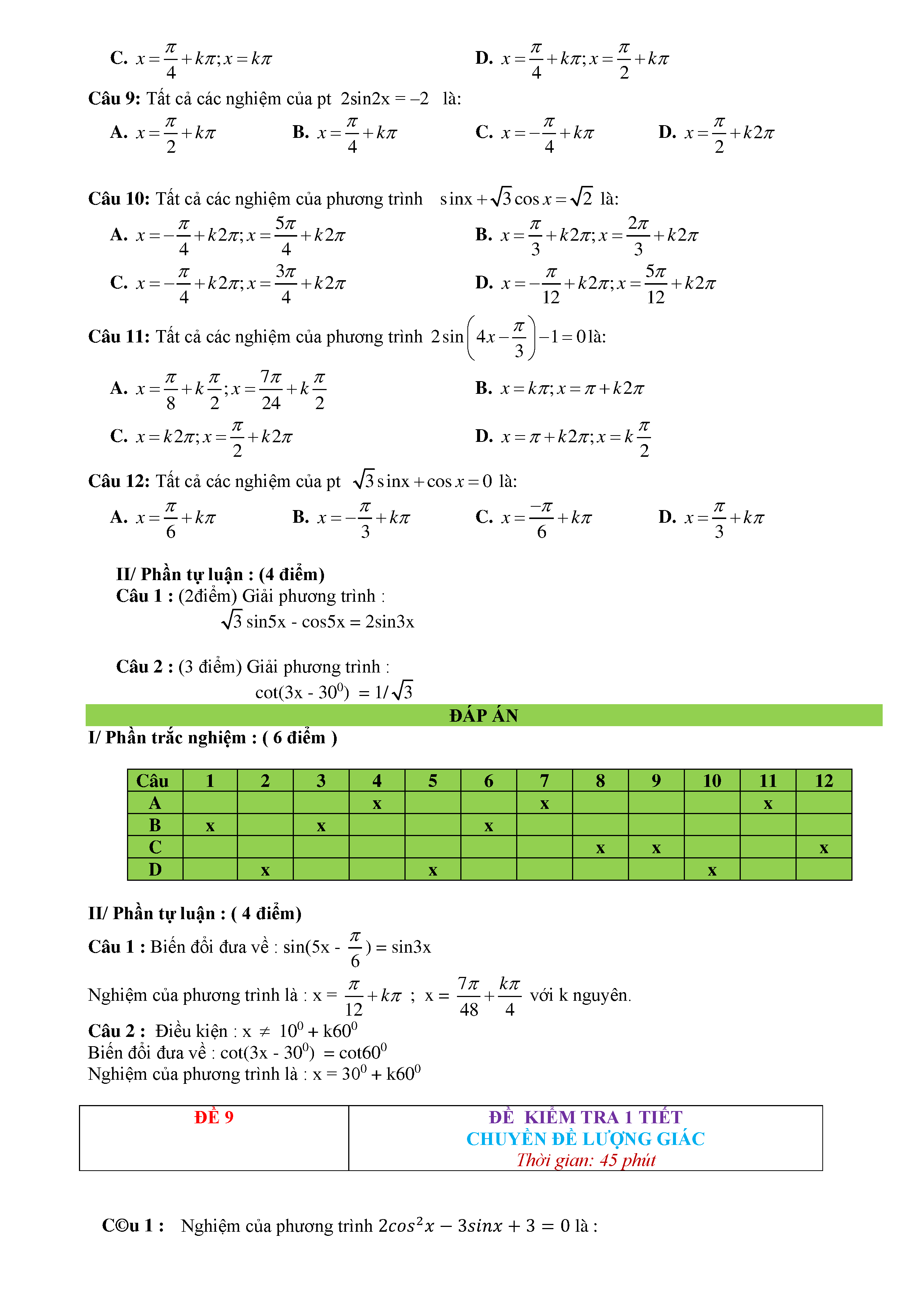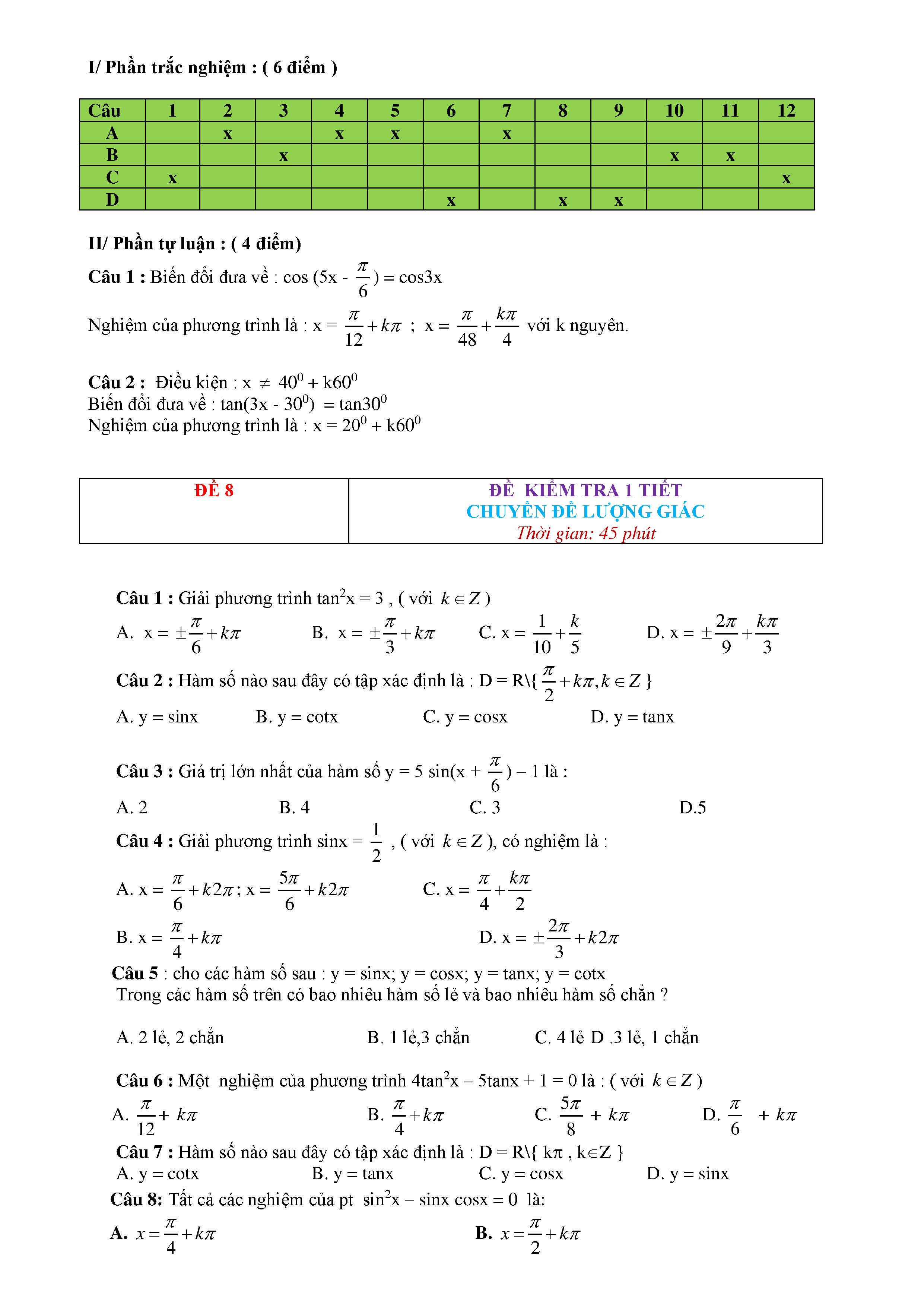 15 Đề kiểm tra Chuyên đề Lượng giác 2019 có lời giải