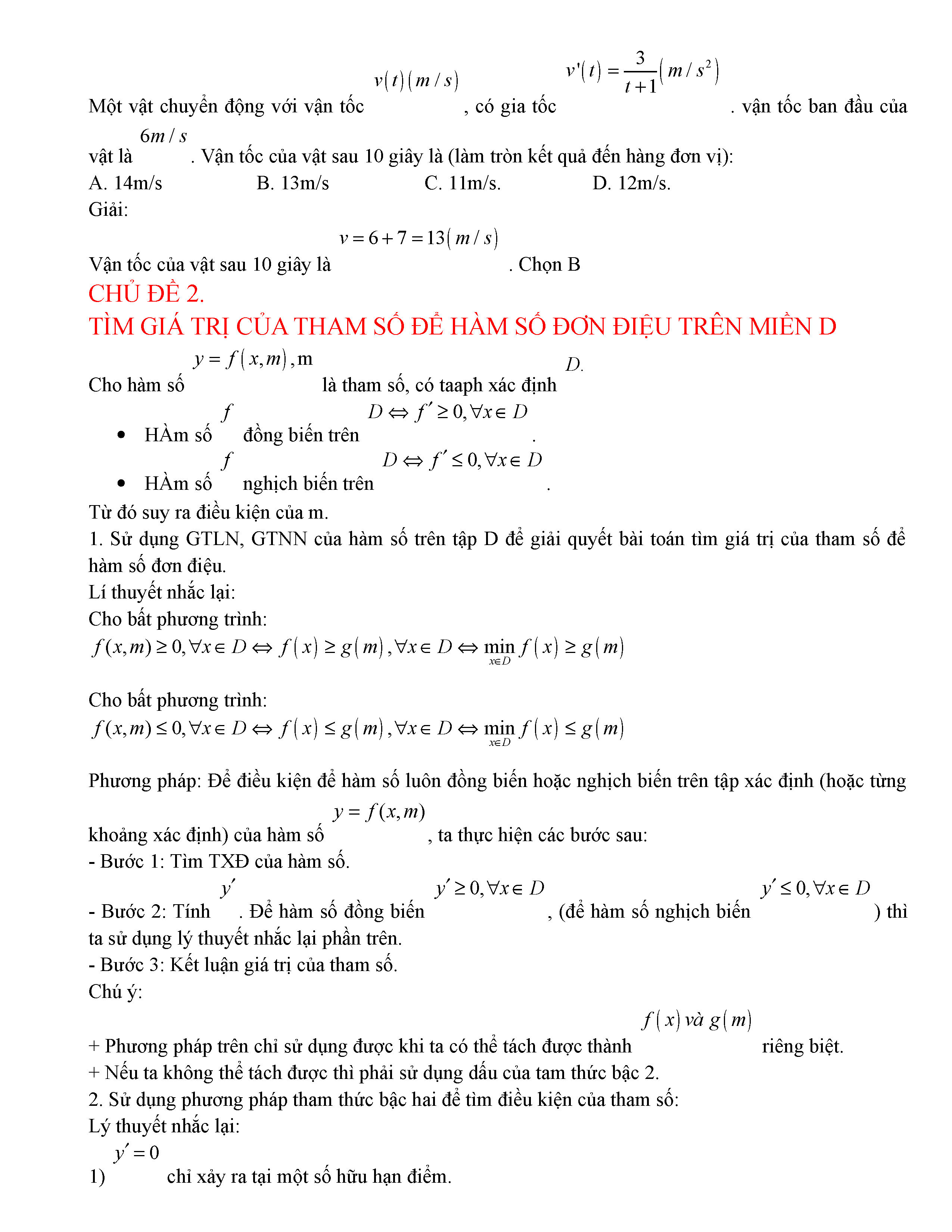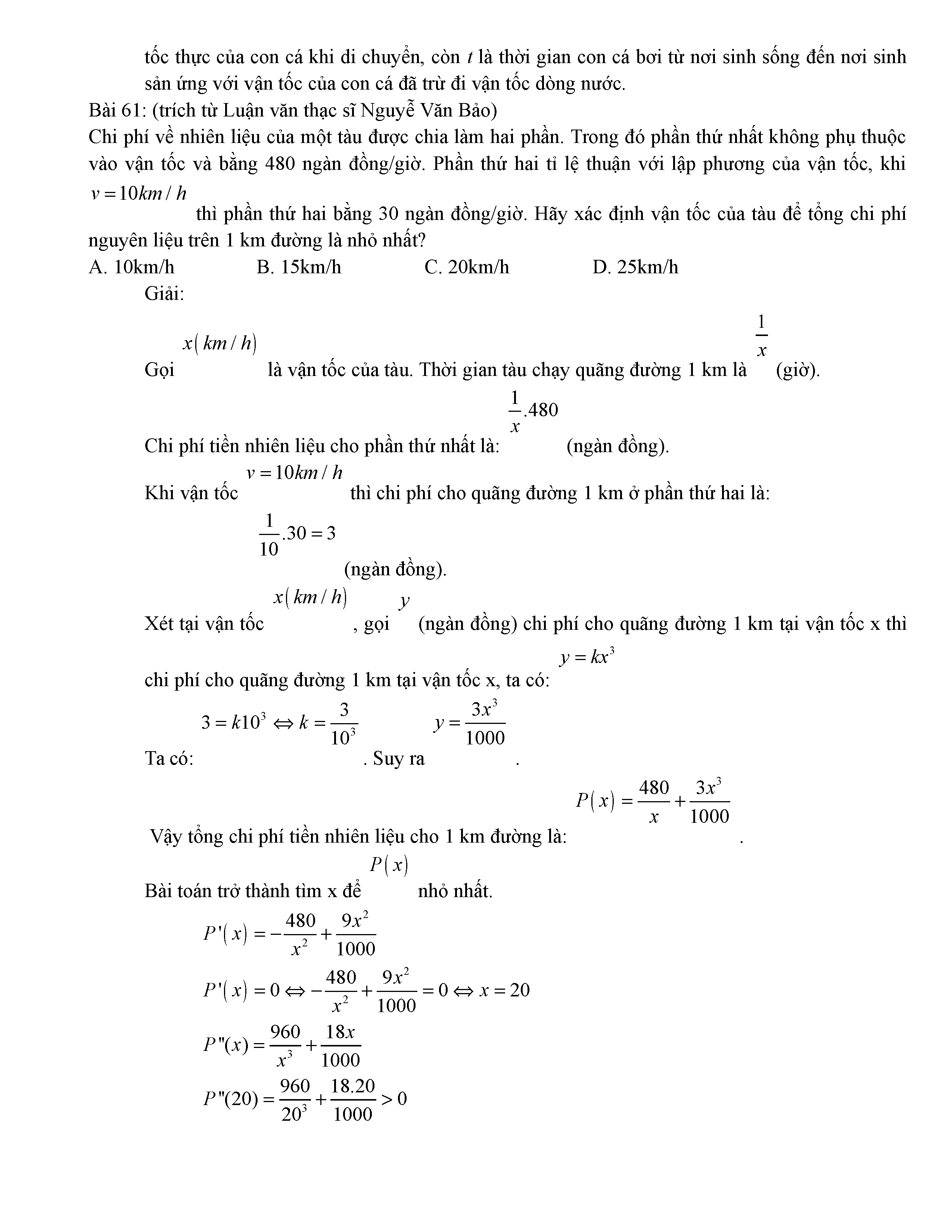 BÀI TOÁN VẬN DỤNG CAO CHUYÊN ĐỀ ỨNG DỤNG ĐẠO HÀM - CHỦ ĐỀ 1: CÁC BÀI TOÁN THỰC TẾ ỨNG DỤNG ĐẠO HÀM ĐỂ GIẢI (PHẦN 2)