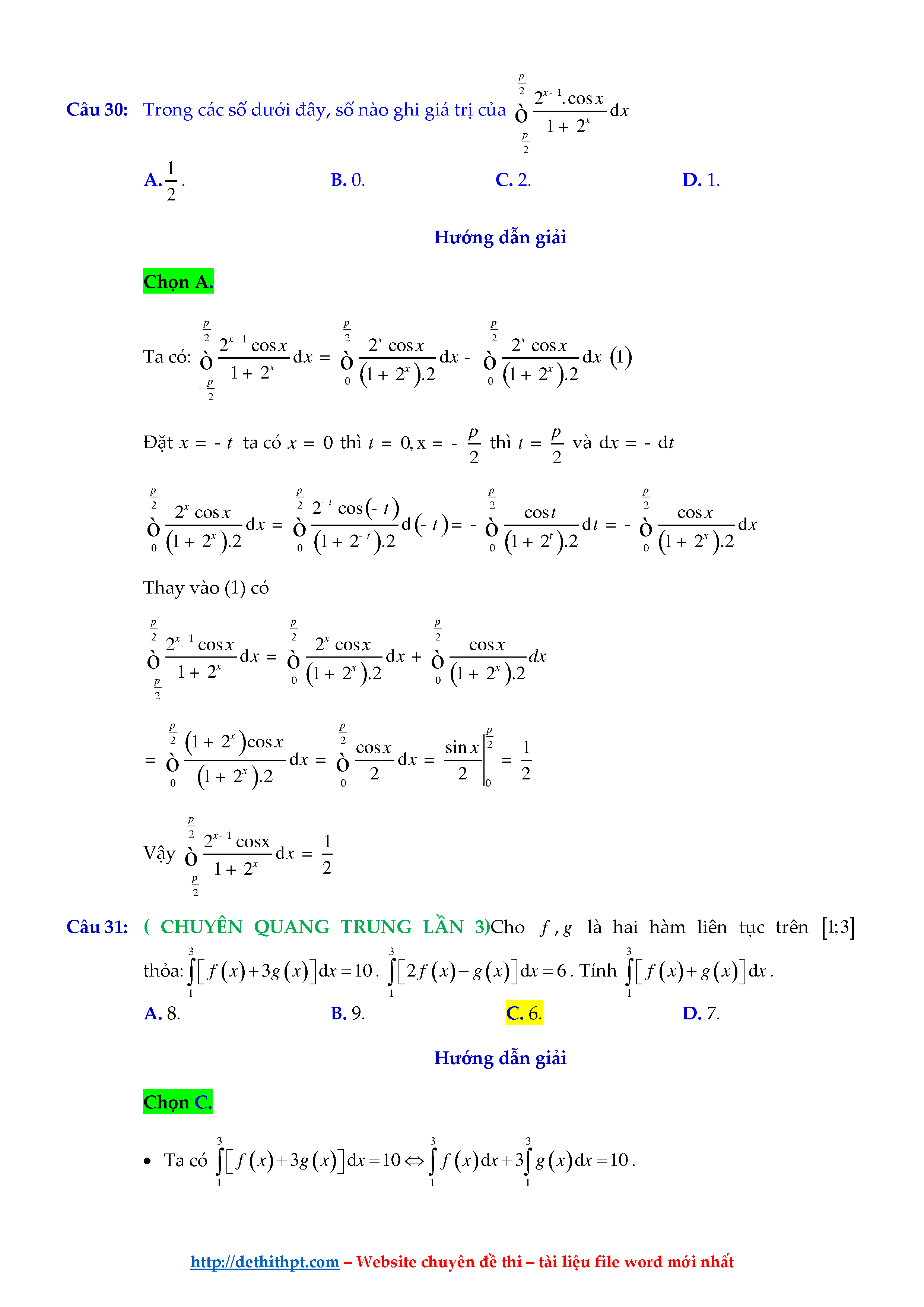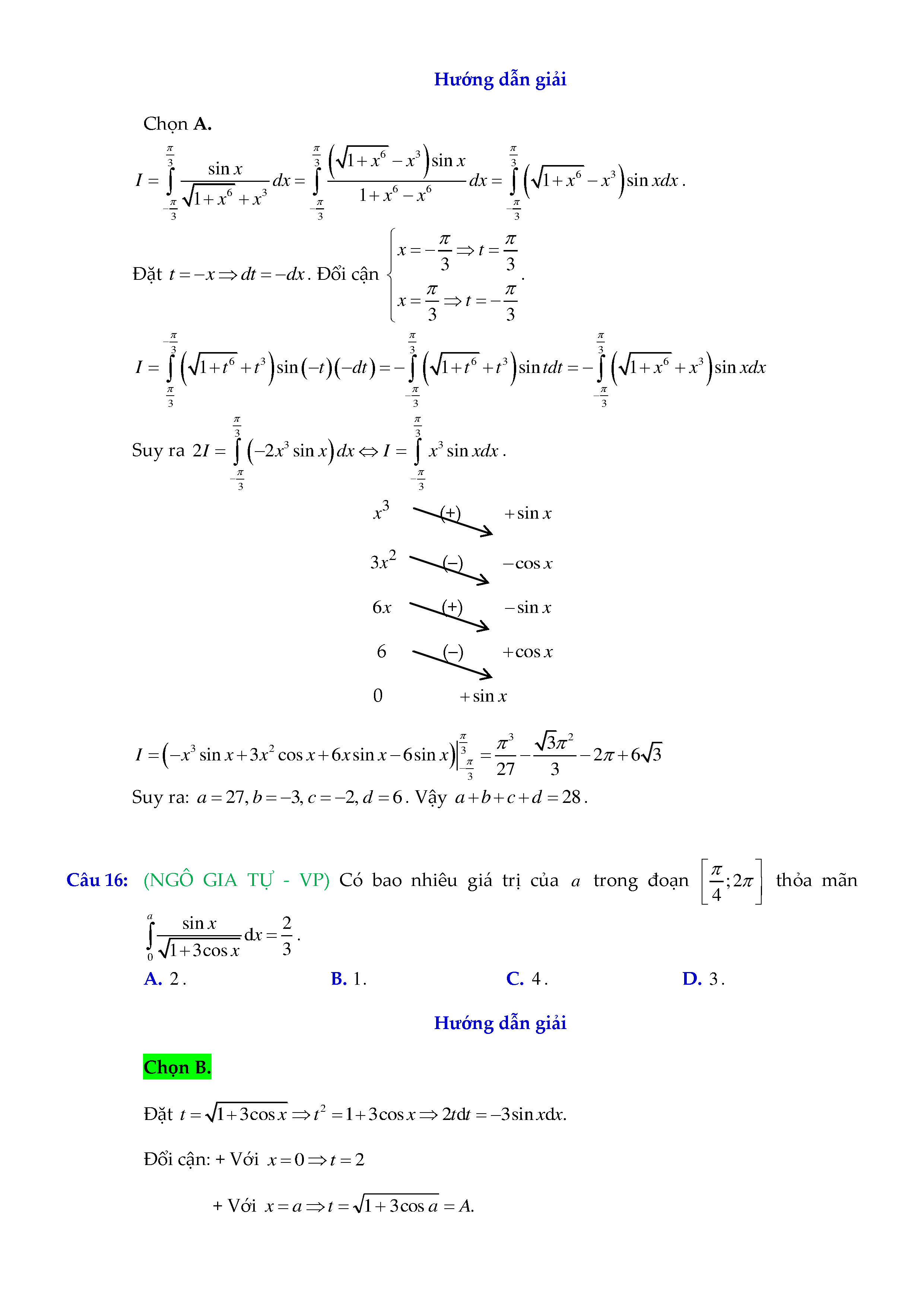 BÀI TOÁN VẬN DỤNG CAO - CHỦ ĐỀ 3: CHUYÊN ĐỀ NGUYÊN HÀM, TÍCH PHÂN (PHẦN CUỐI)