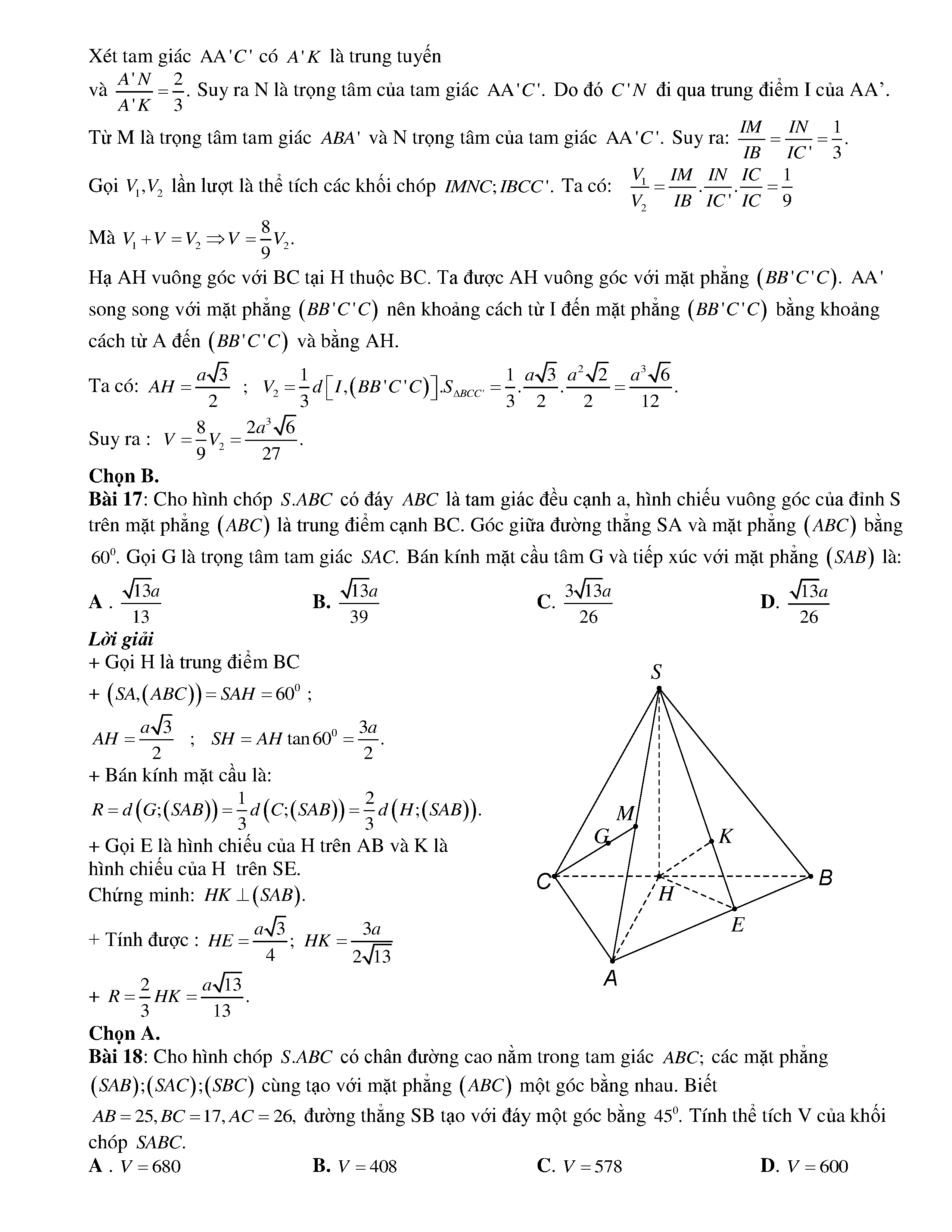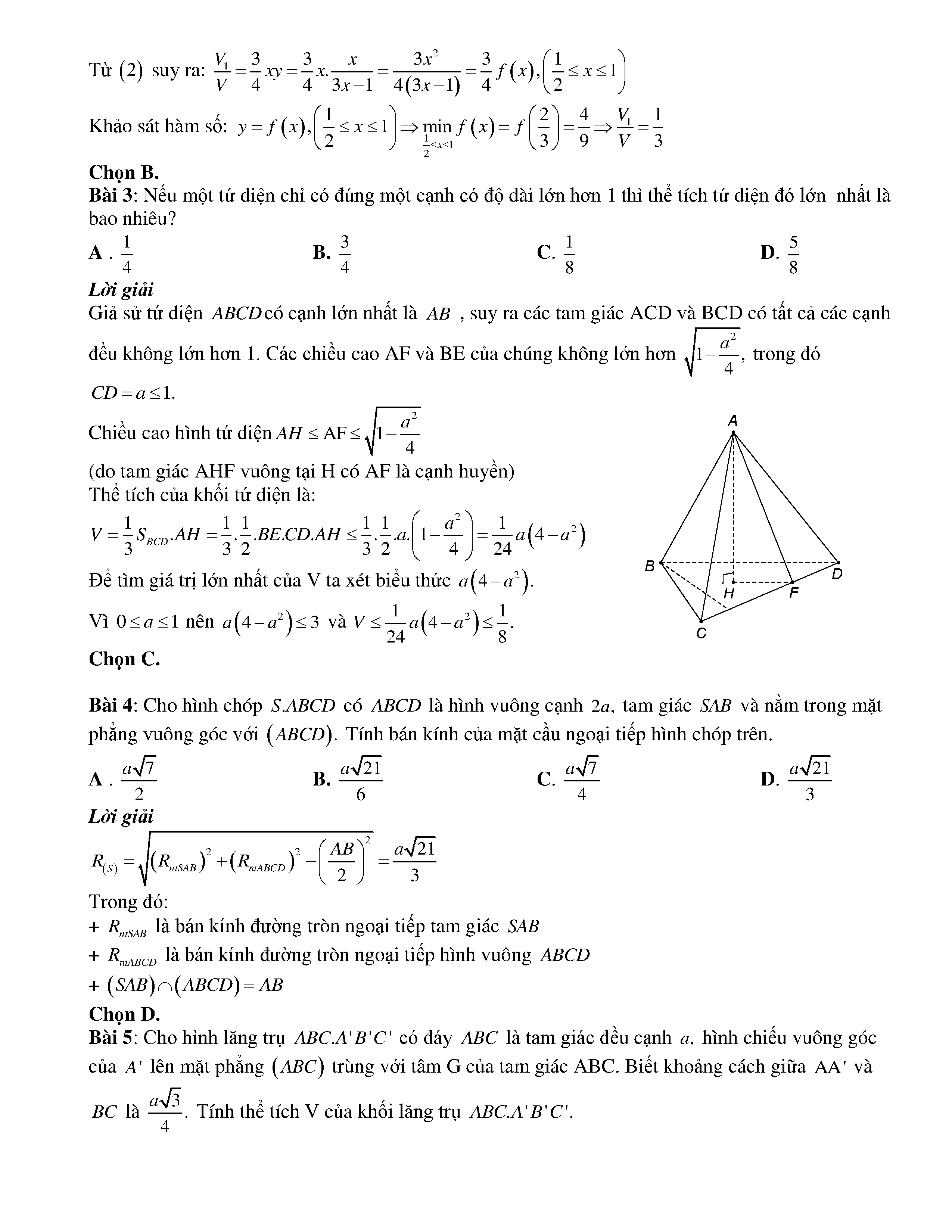 BÀI TOÁN VẬN DỤNG CAO CHỦ ĐỀ 5: HÌNH HỌC KHÔNG GIAN (PHẦN 6)