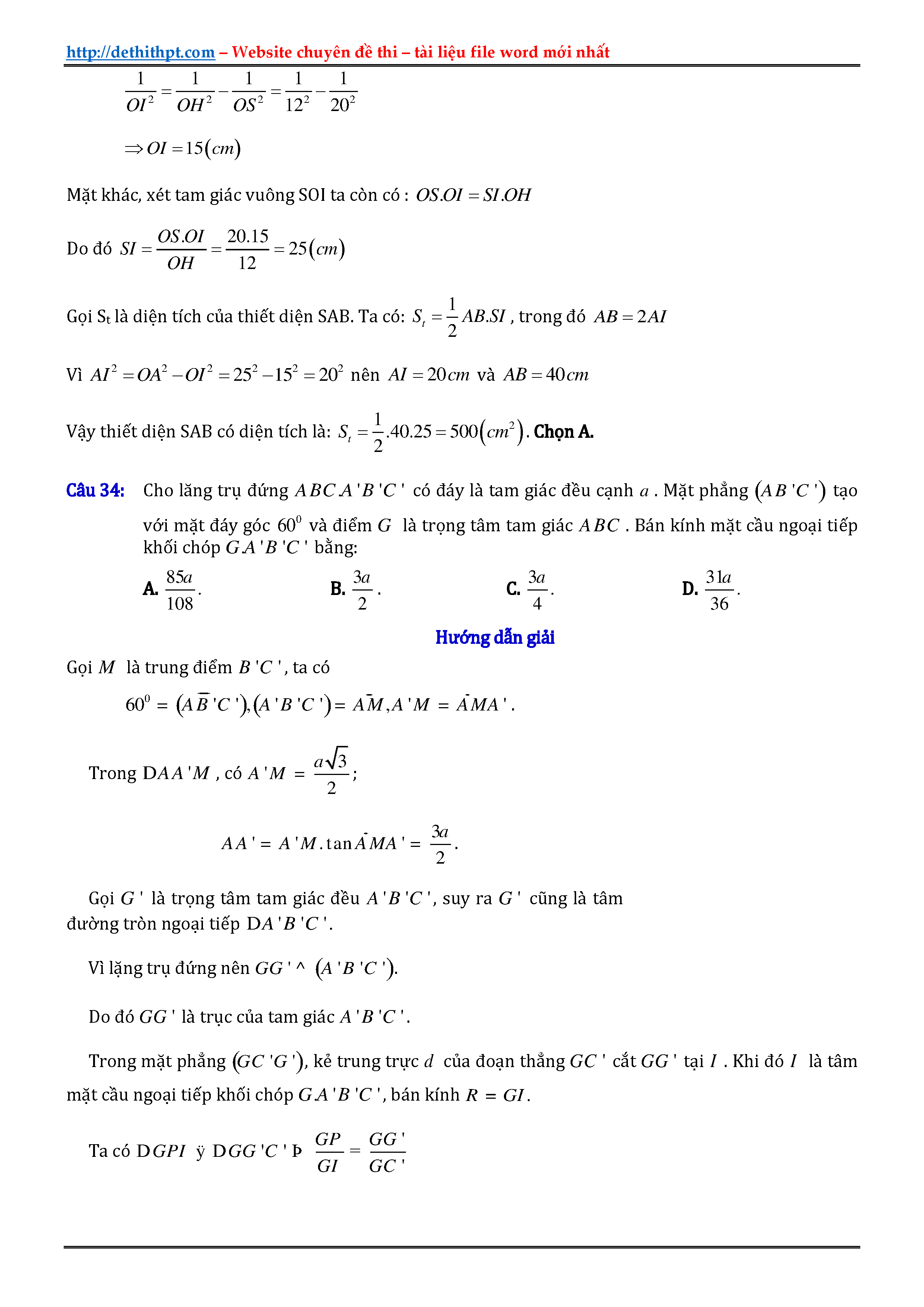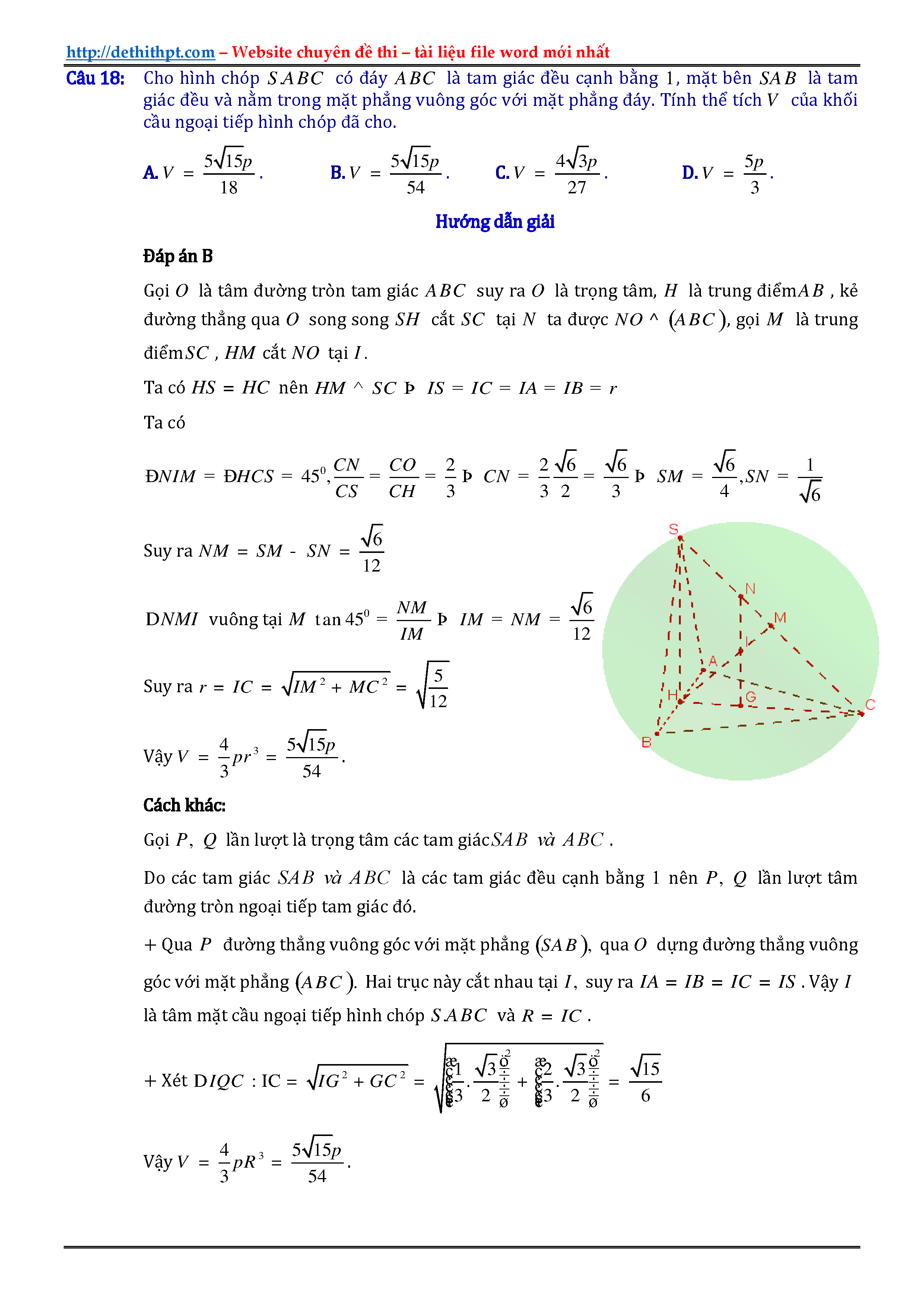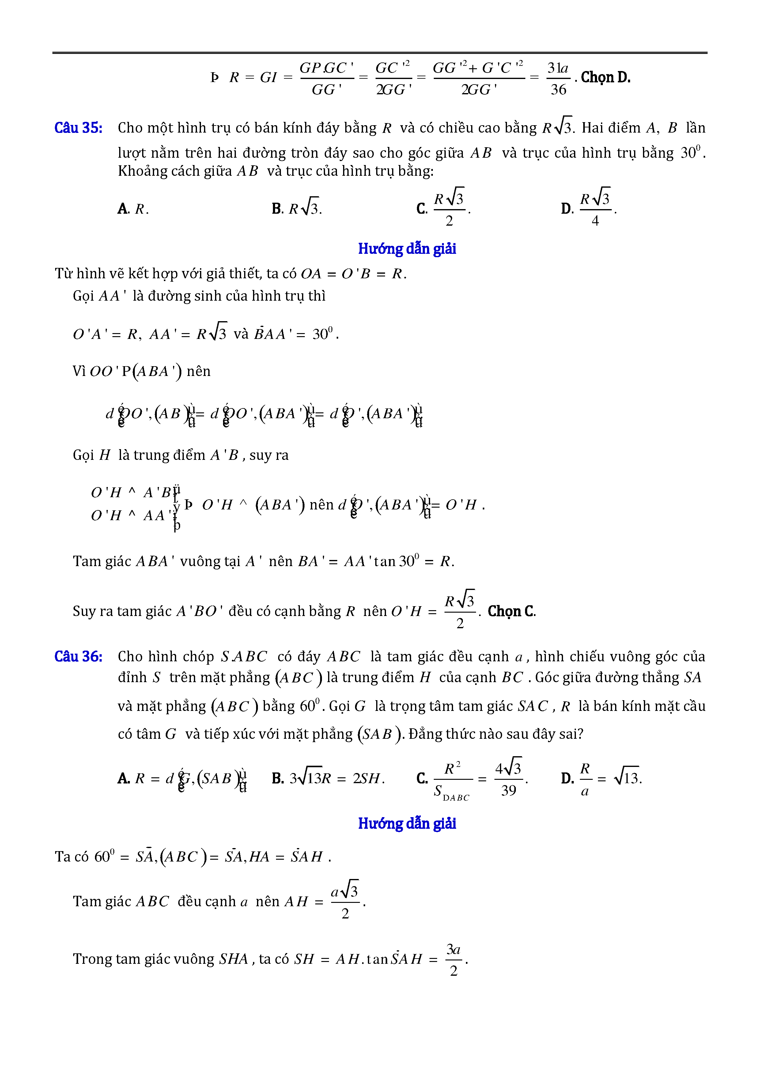 BÀI TOÁN VẬN DỤNG CAO CHỦ ĐỀ 5: HÌNH HỌC KHÔNG GIAN (PHẦN 8)