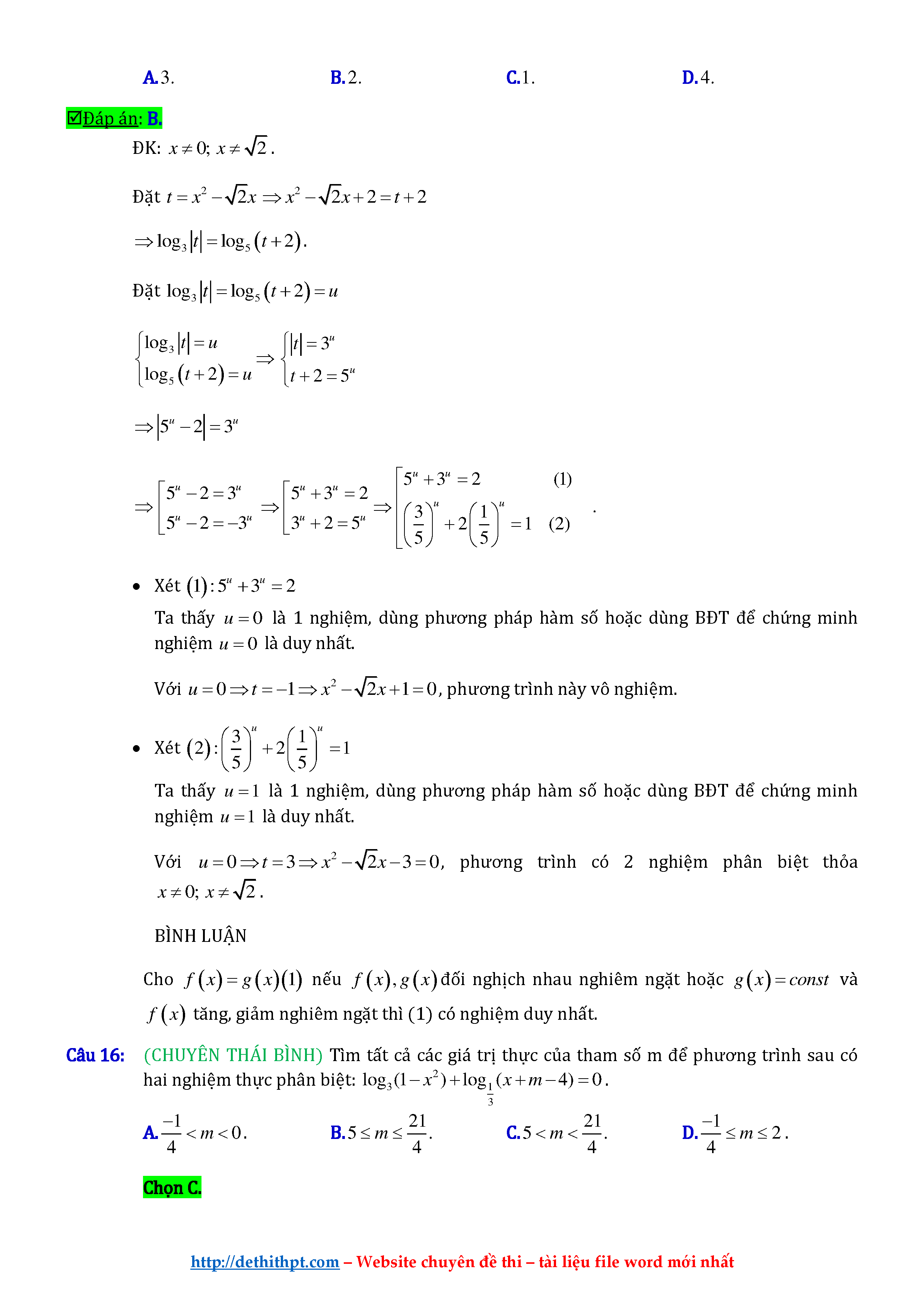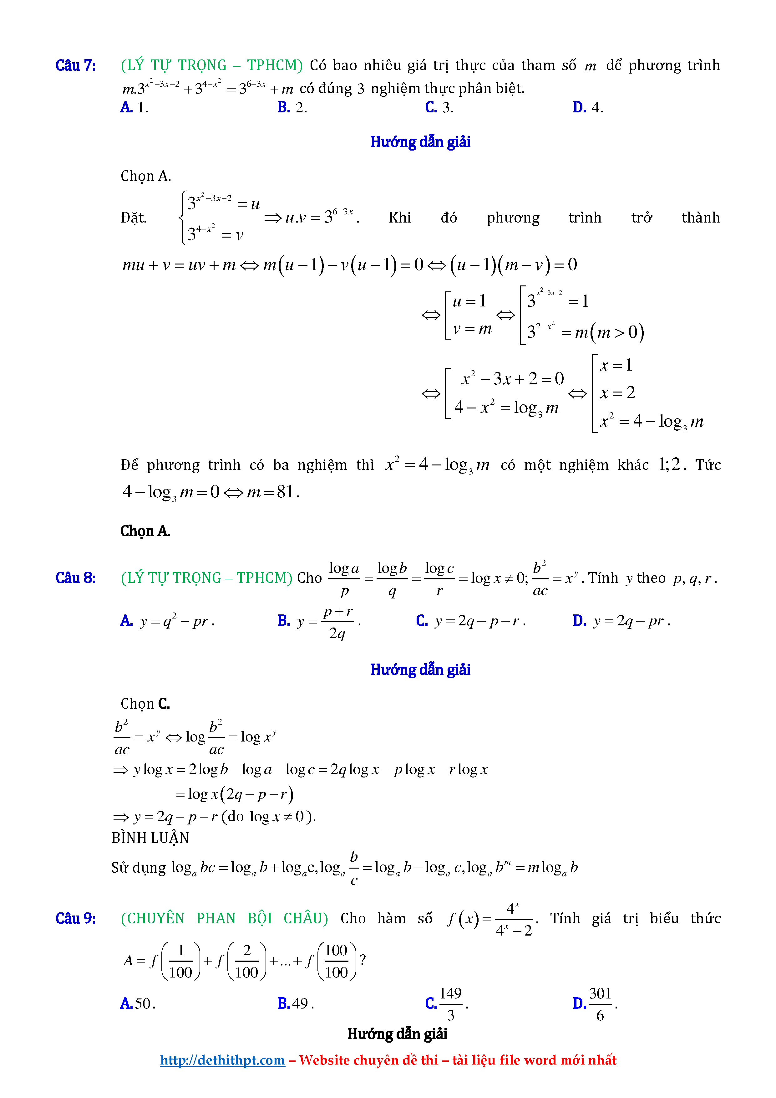 BÀI TOÁN VẬN DỤNG CAO - CHỦ ĐỀ 2: CHUYÊN ĐỀ HÀM SỐ MŨ, LÔGARIT (PHẦN CUỐI)