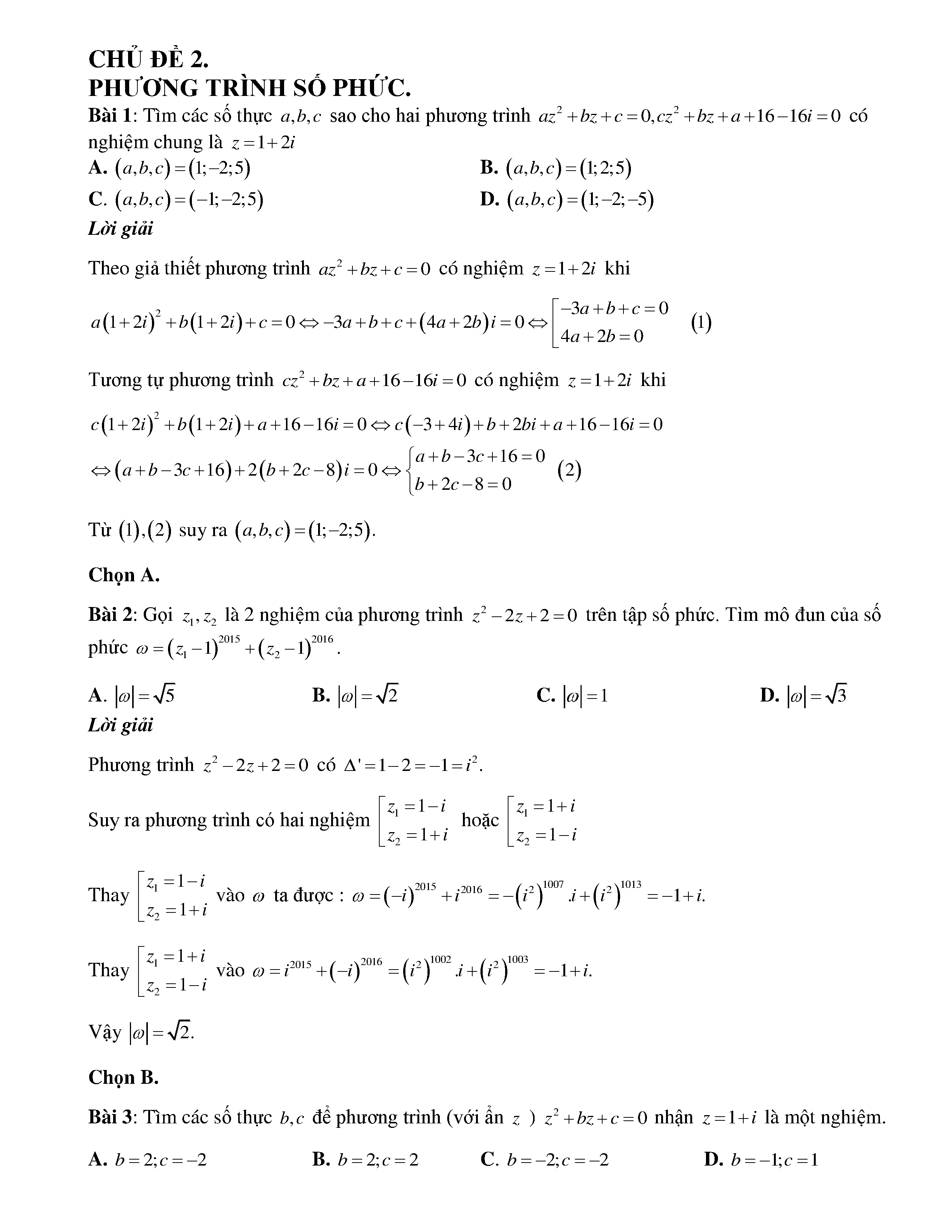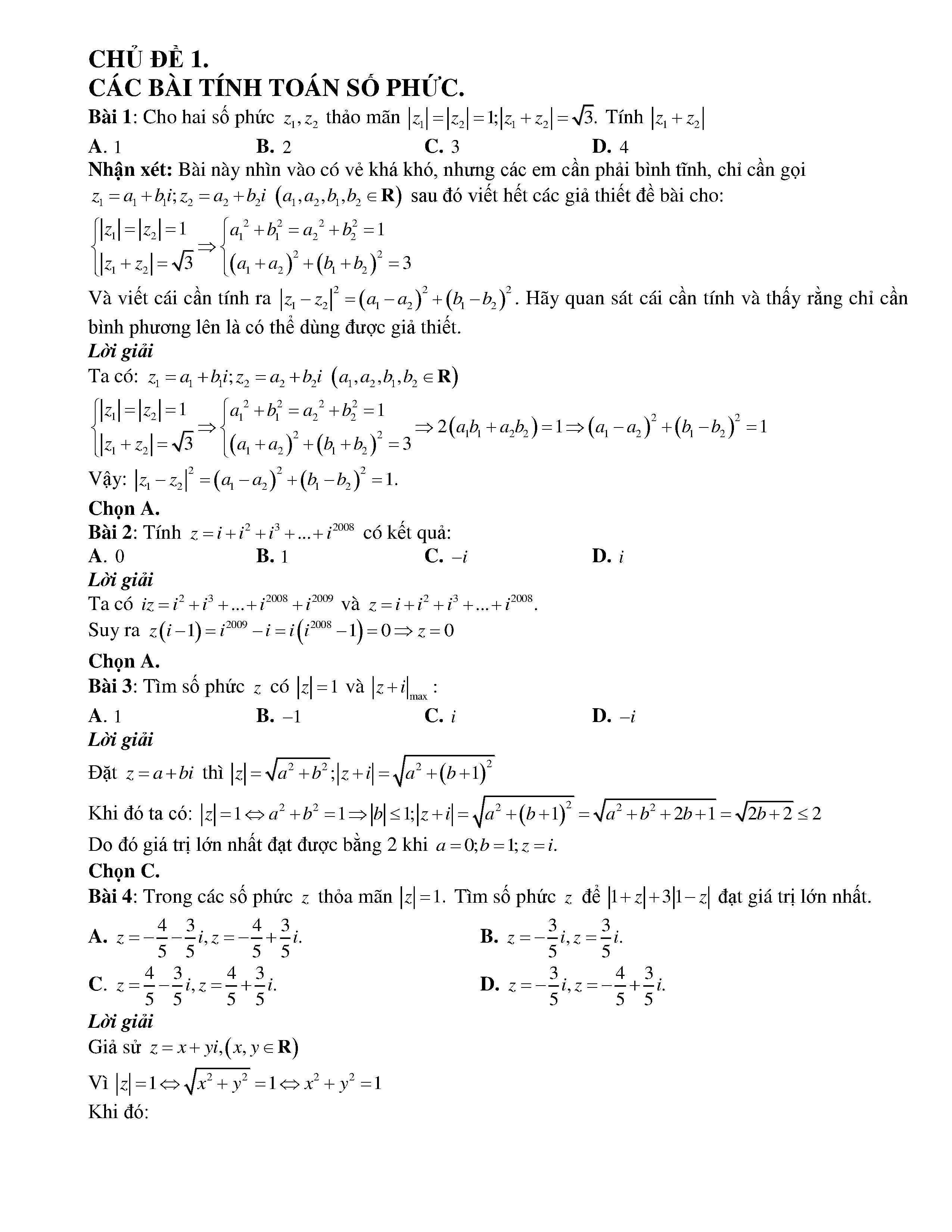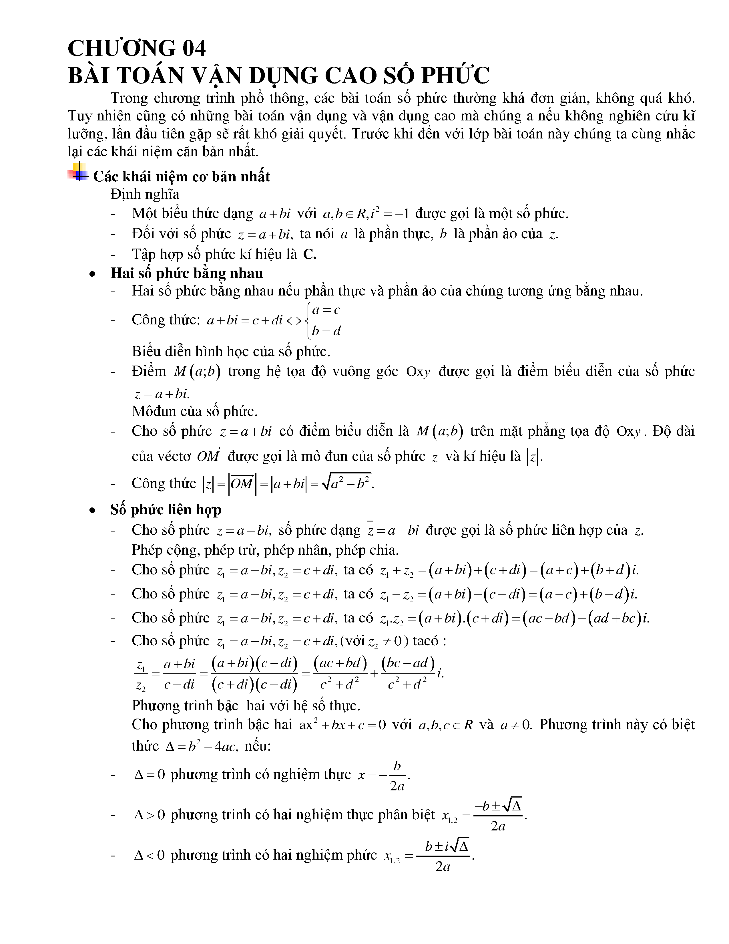 BÀI TOÁN VẬN DỤNG CAO - CHỦ ĐỀ 4: SỐ PHỨC (PHẦN 1)