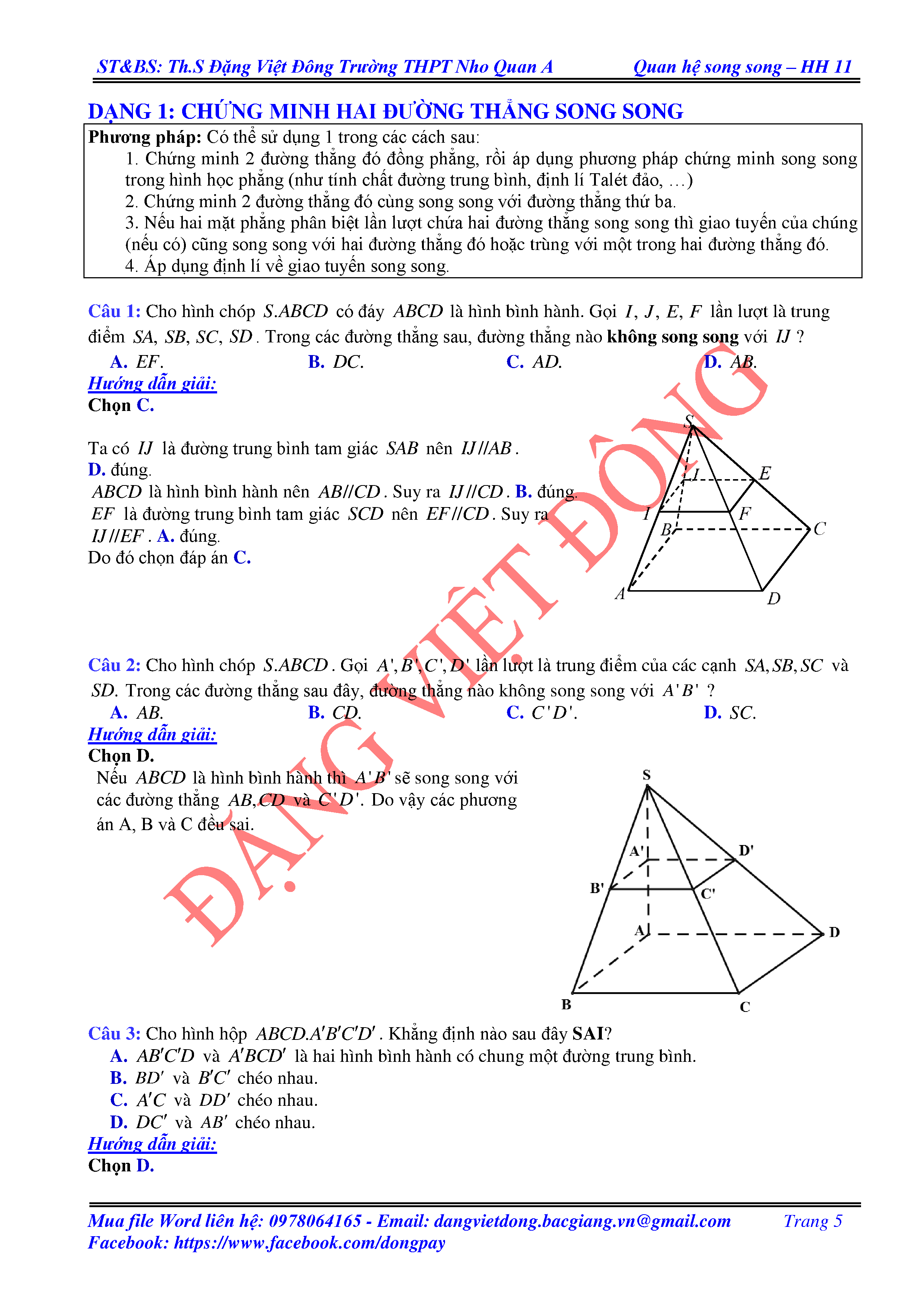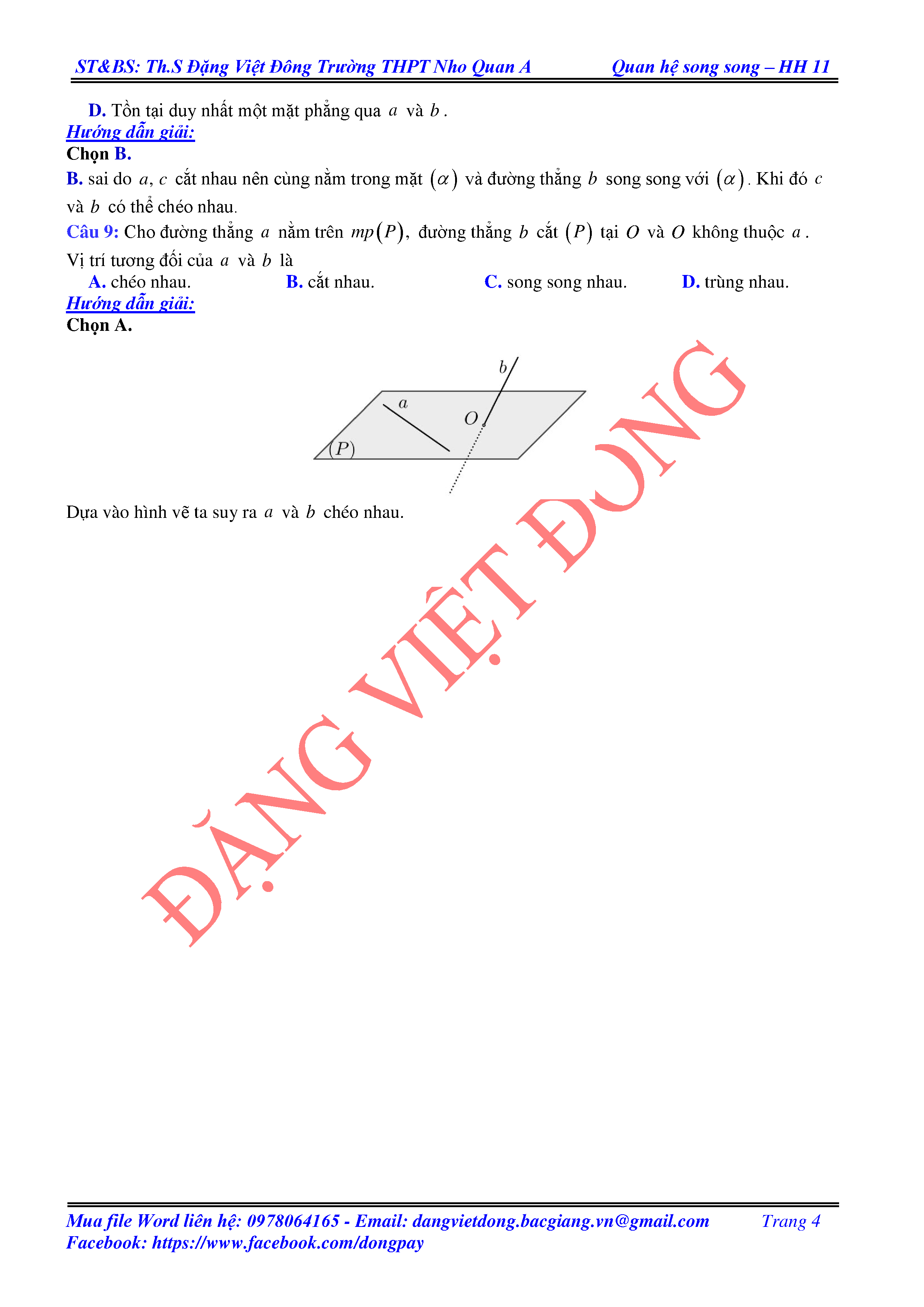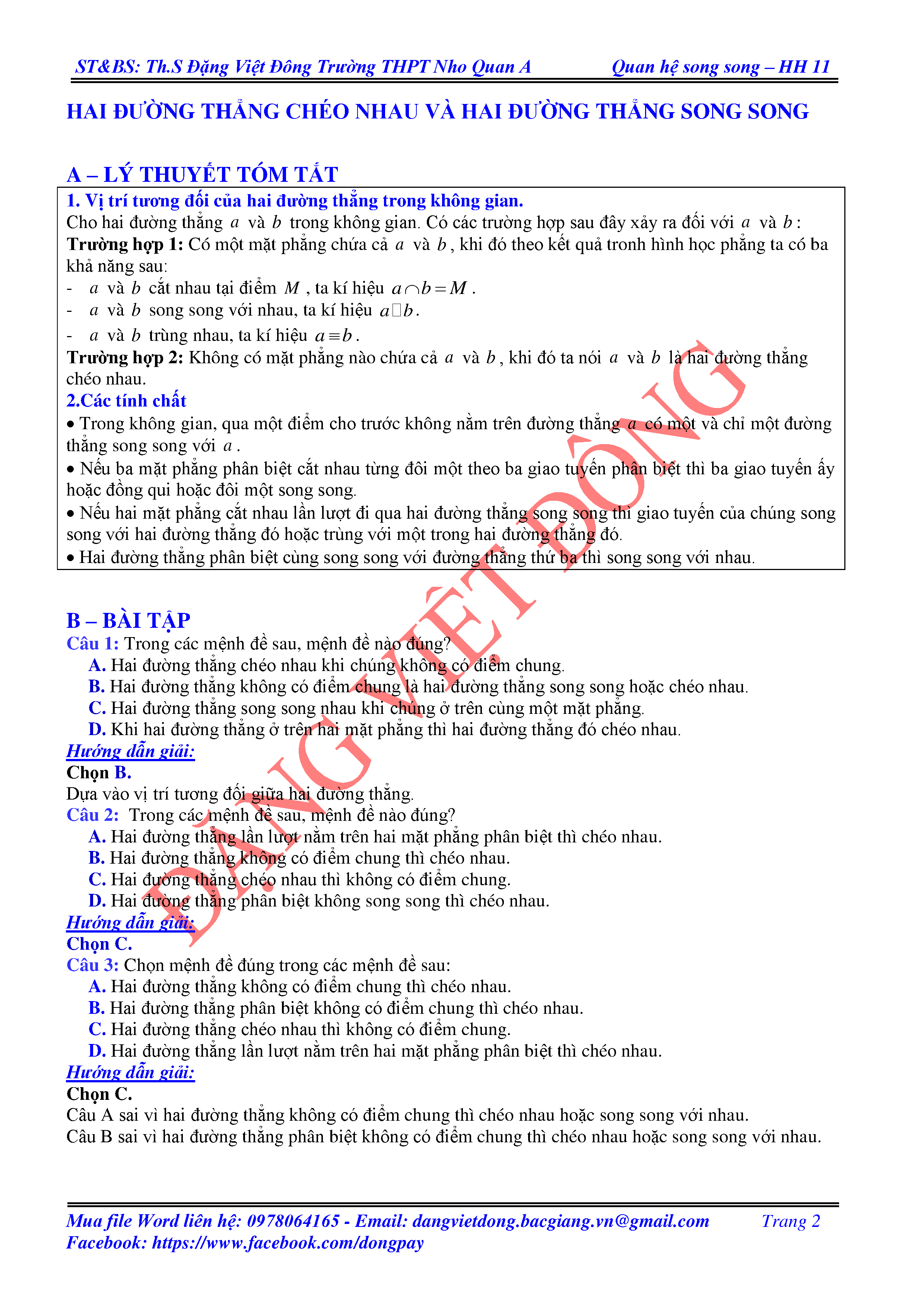HAI ĐƯỜNG THẲNG CHÉO NHAU VÀ HAI ĐƯỜNG THẲNG SONG SONG - HÌNH HỌC 11