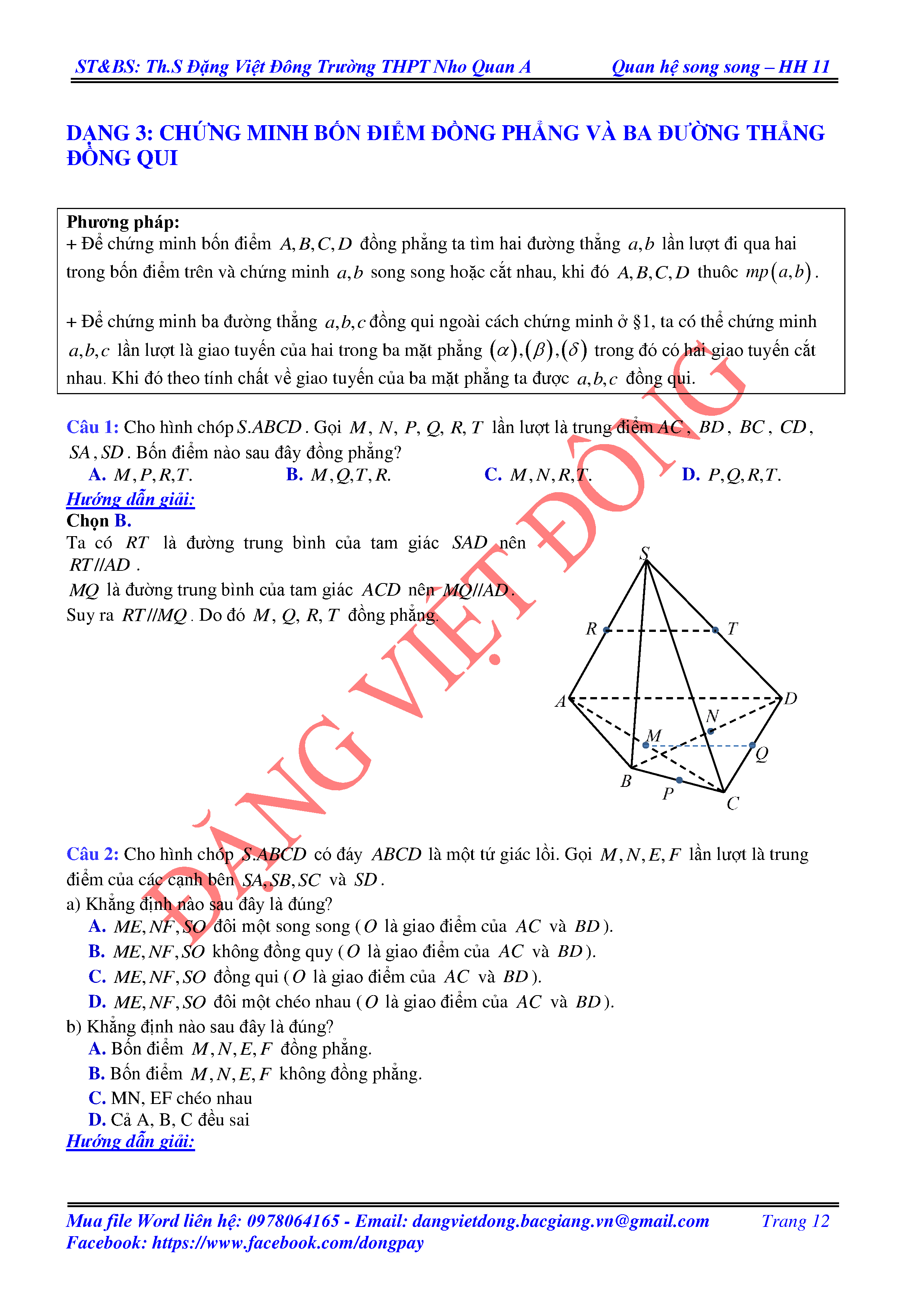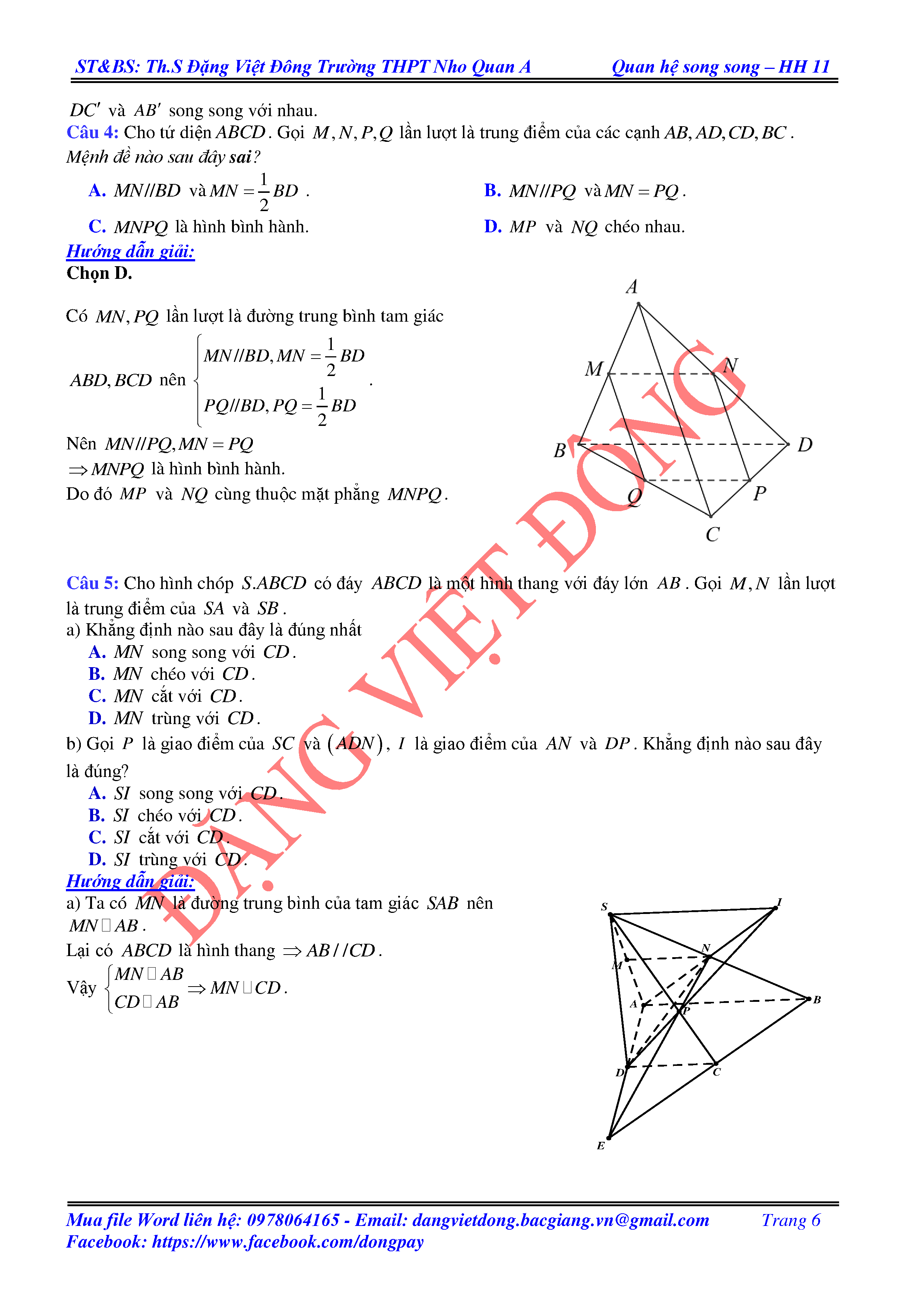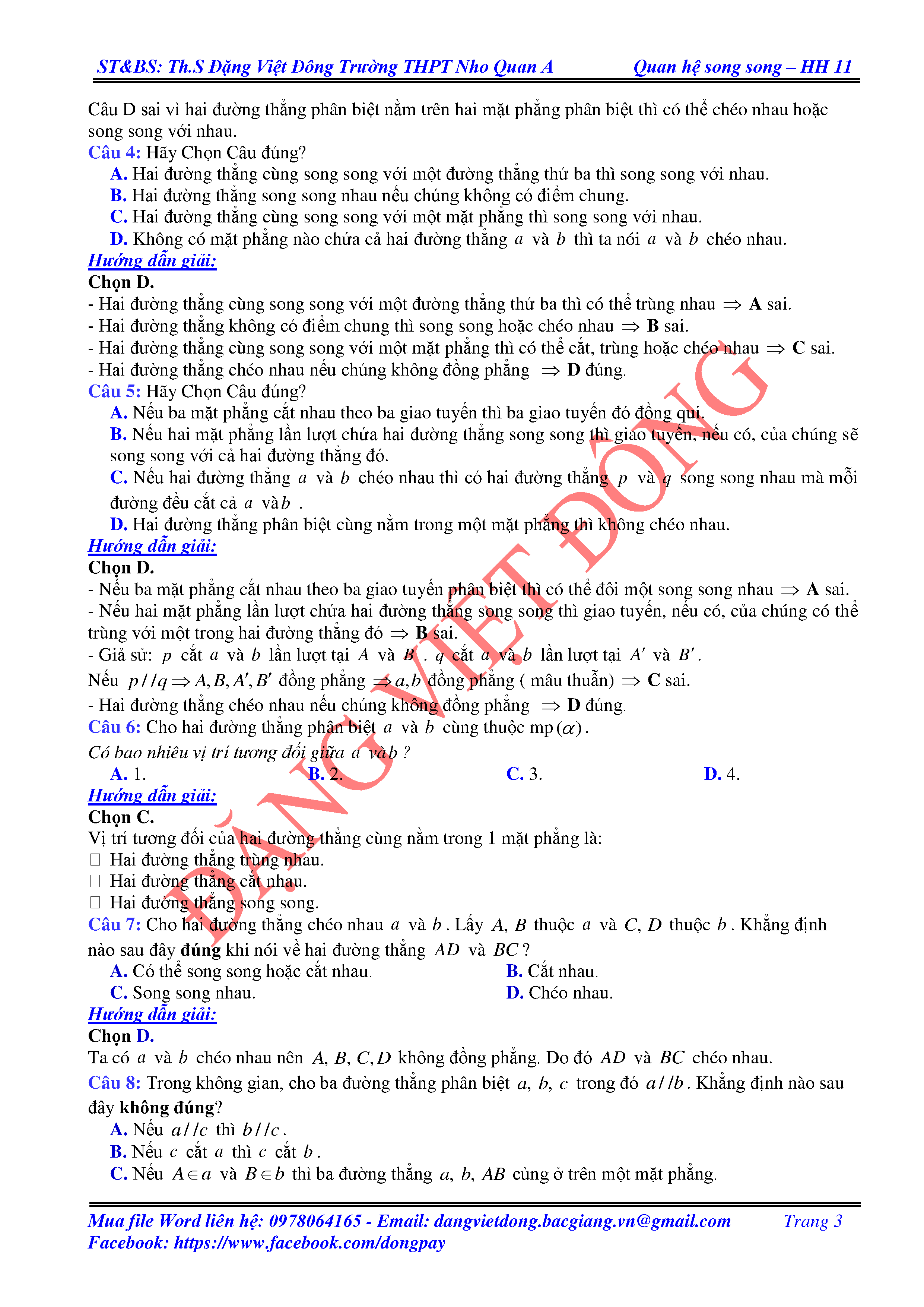 HAI ĐƯỜNG THẲNG CHÉO NHAU VÀ HAI ĐƯỜNG THẲNG SONG SONG - HÌNH HỌC 11