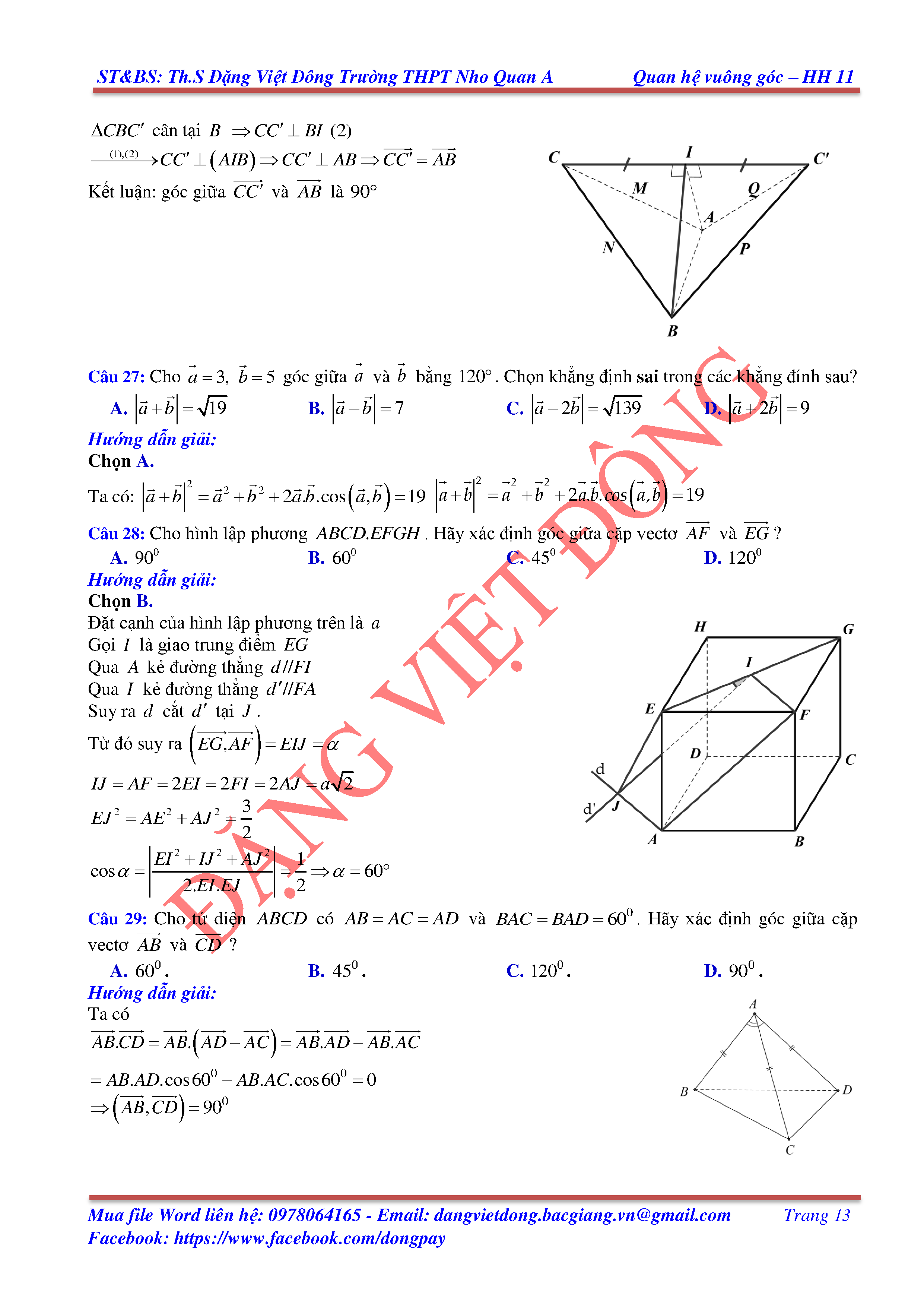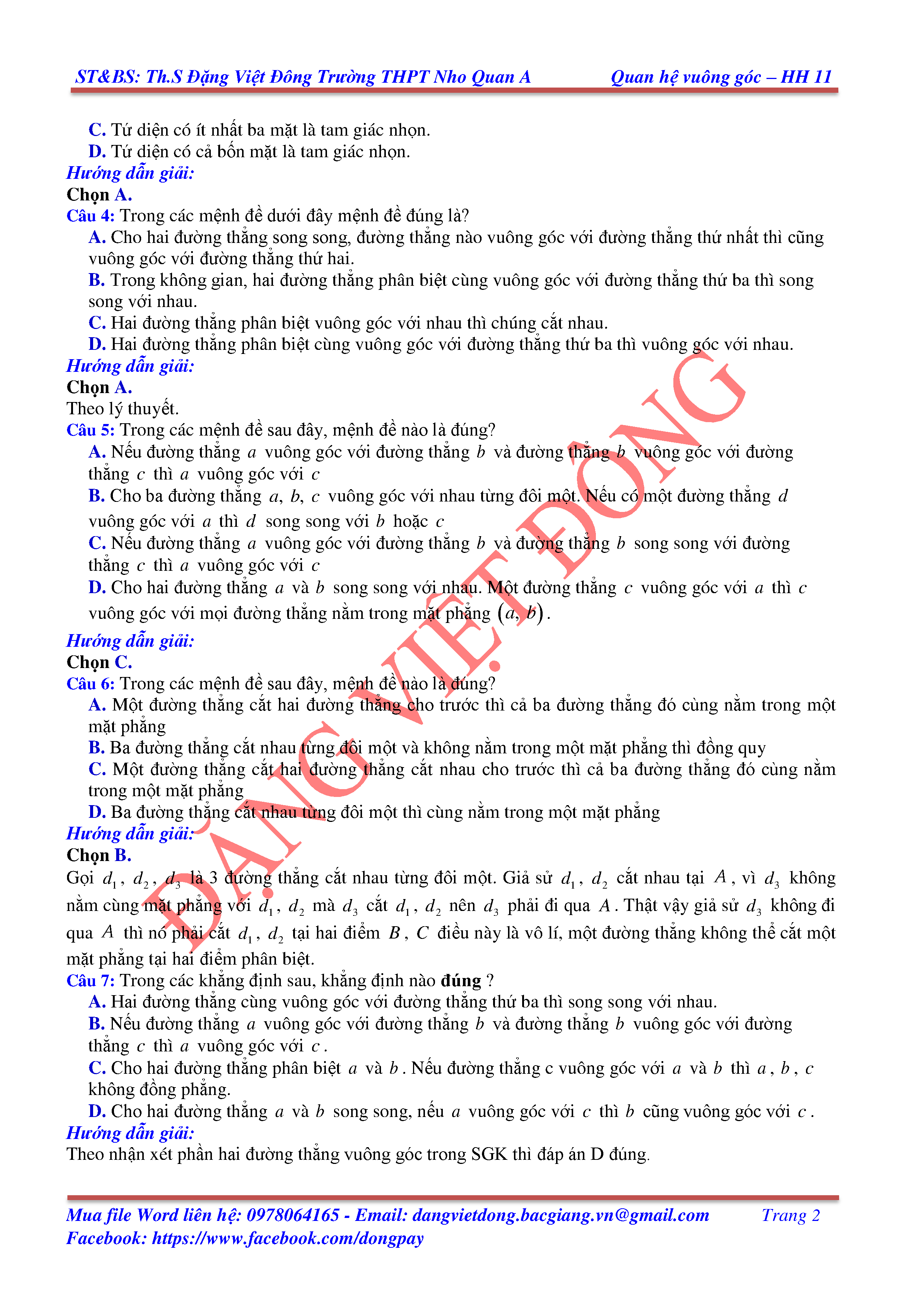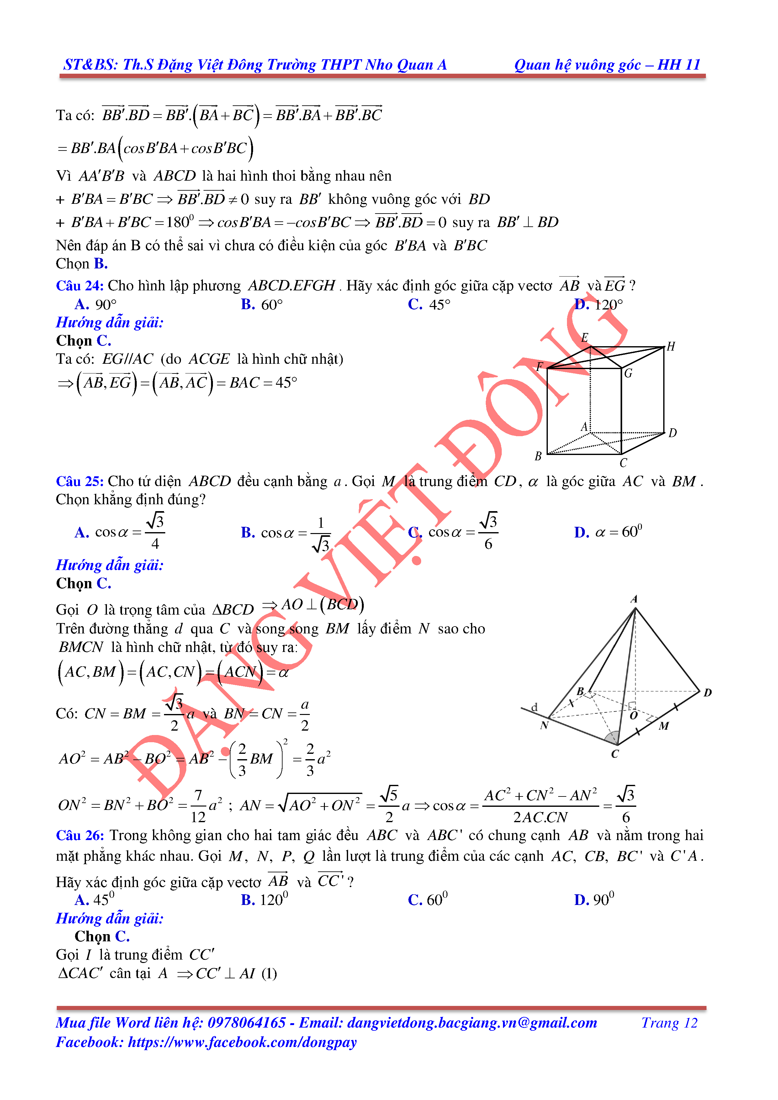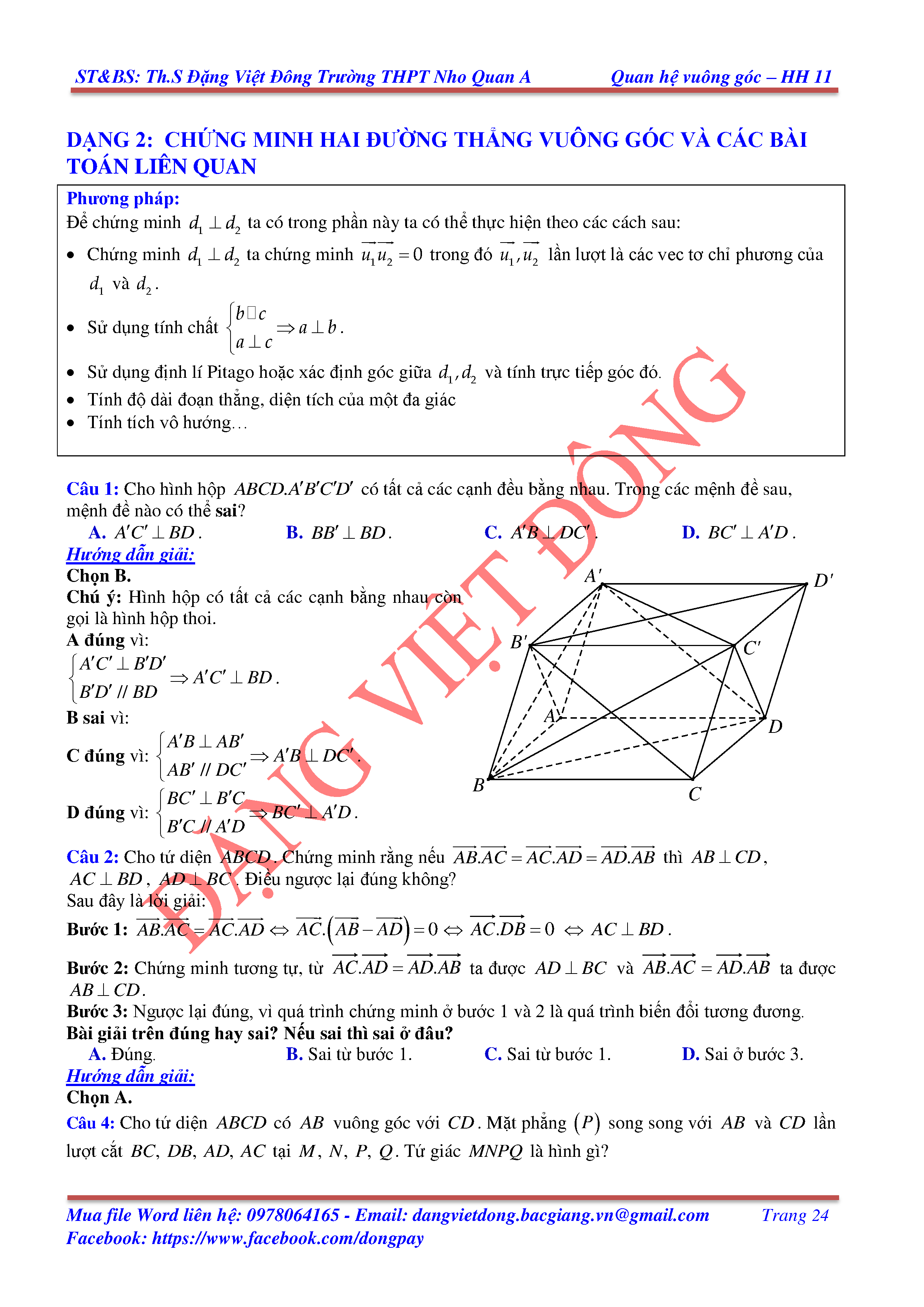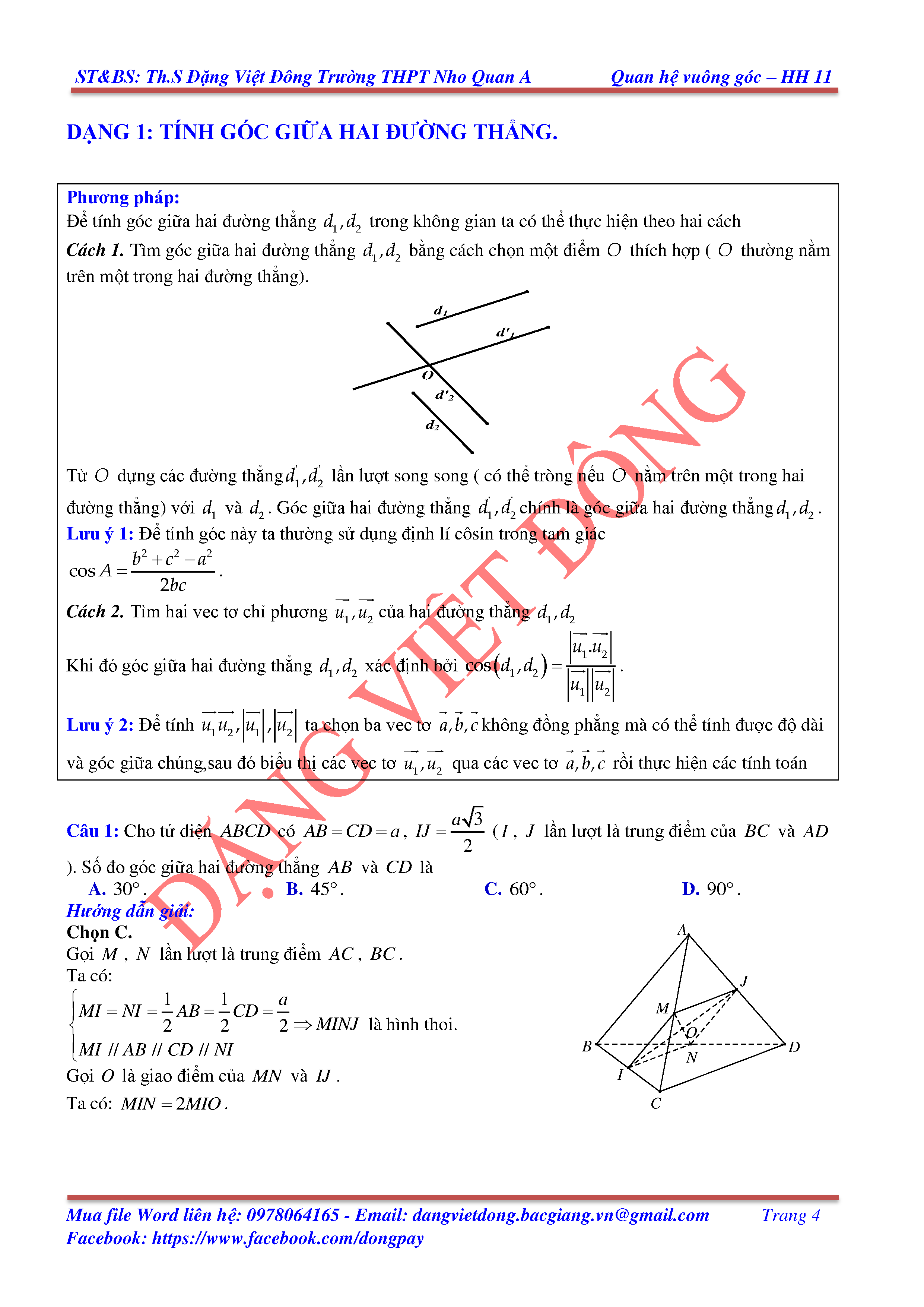 HAI ĐƯỜNG THẲNG VUÔNG GÓC - HÌNH HỌC 11