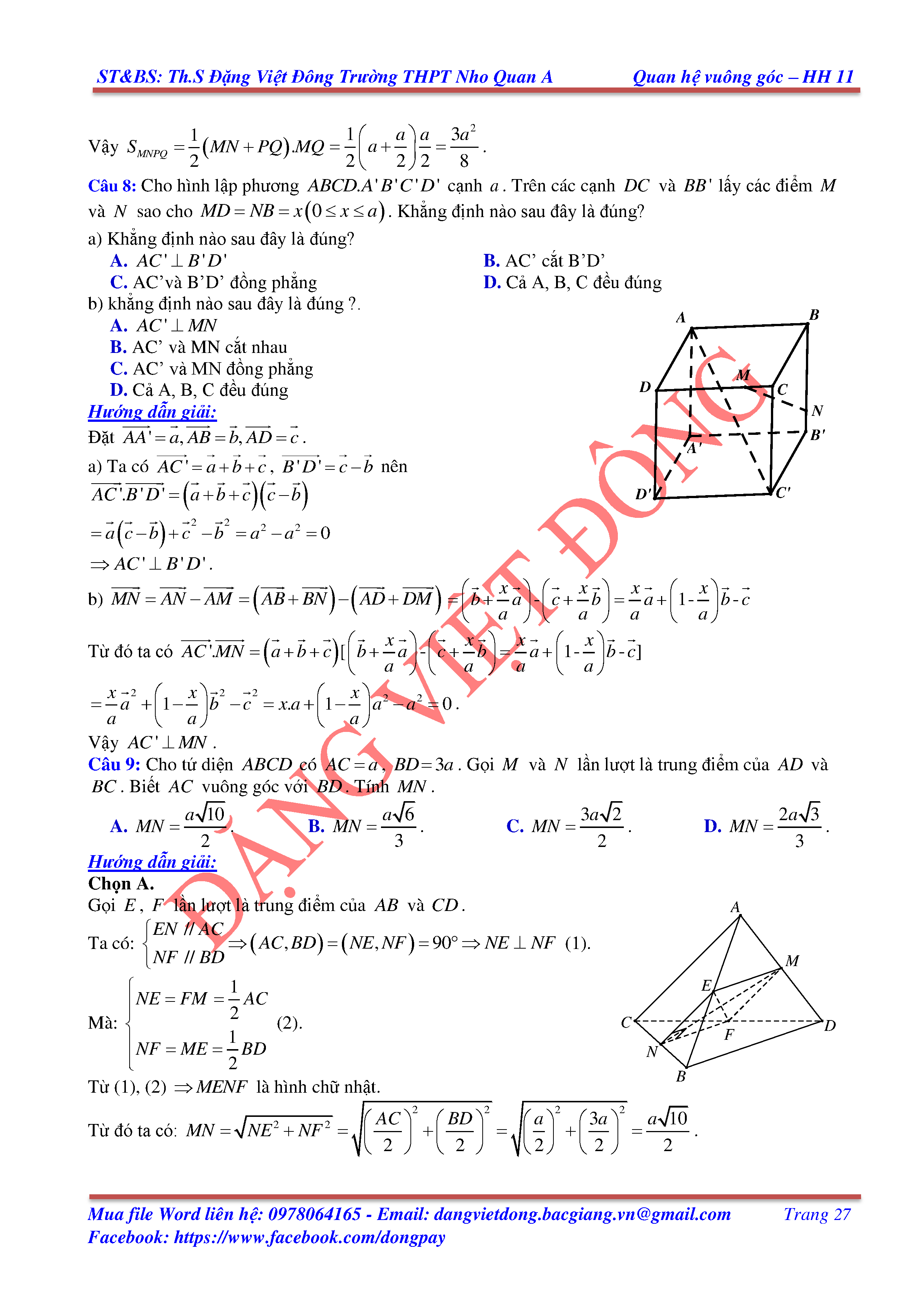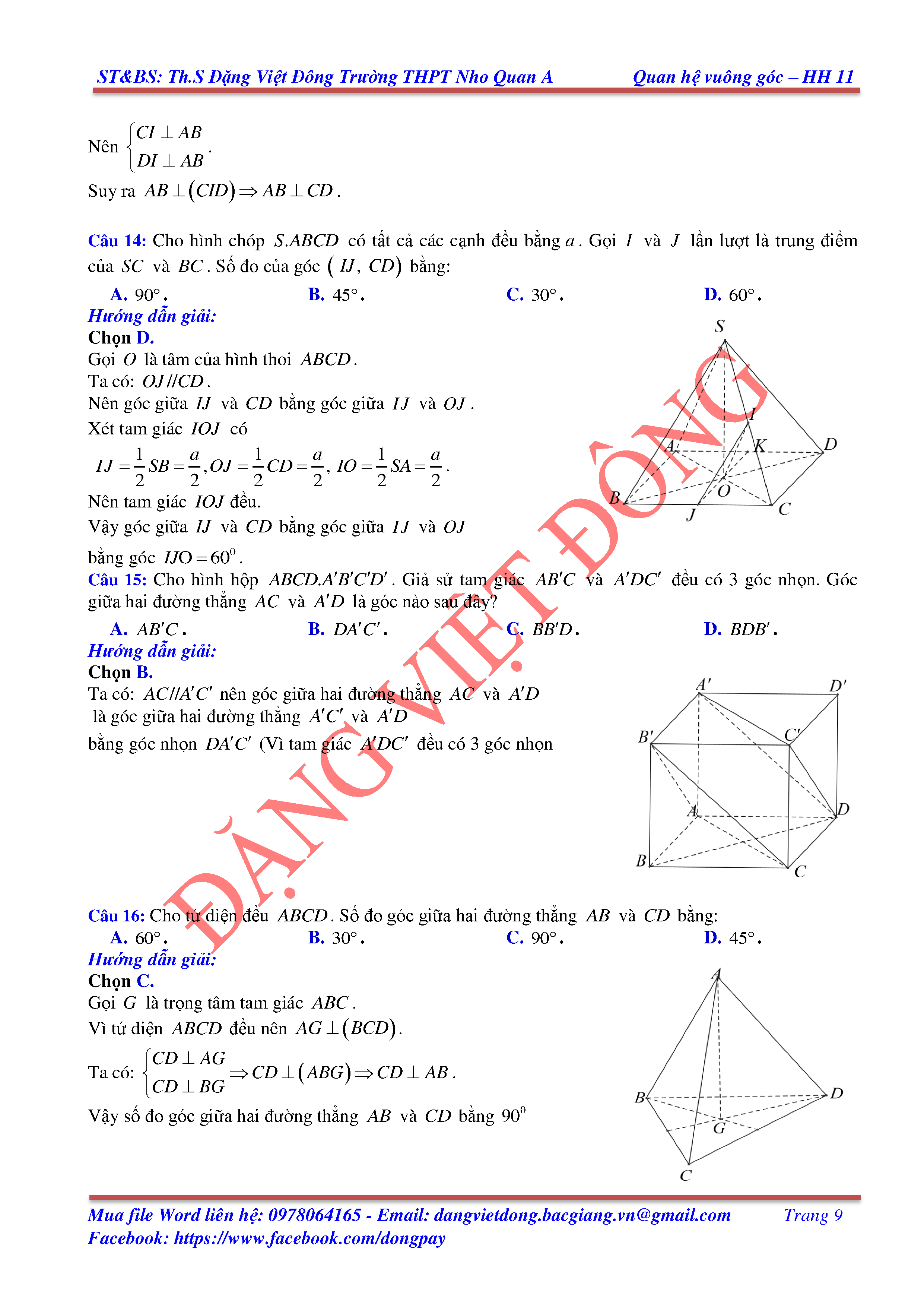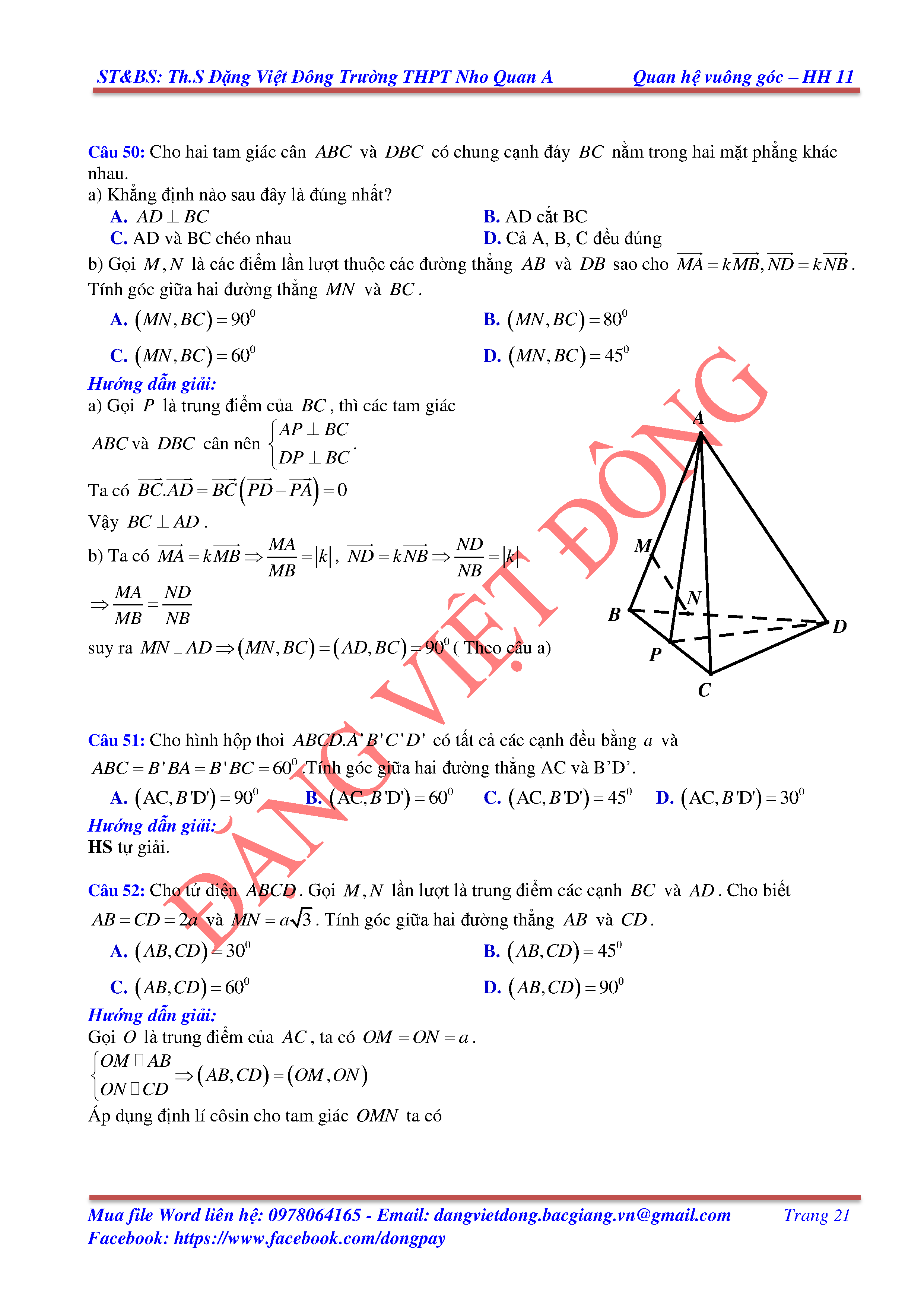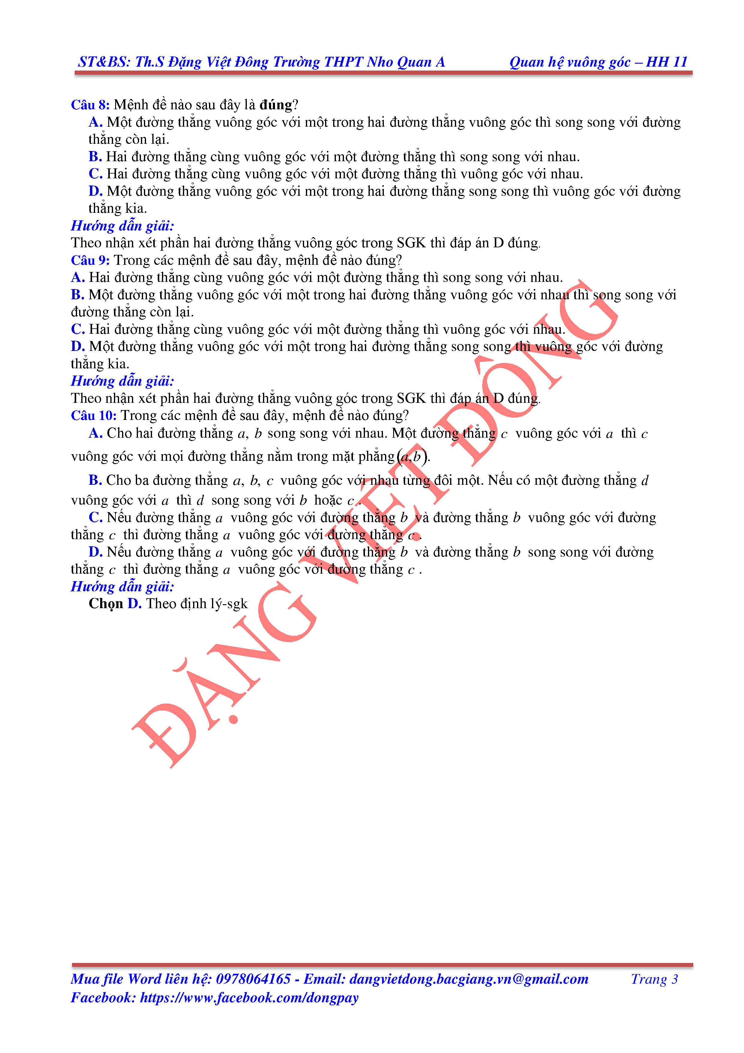 HAI ĐƯỜNG THẲNG VUÔNG GÓC - HÌNH HỌC 11