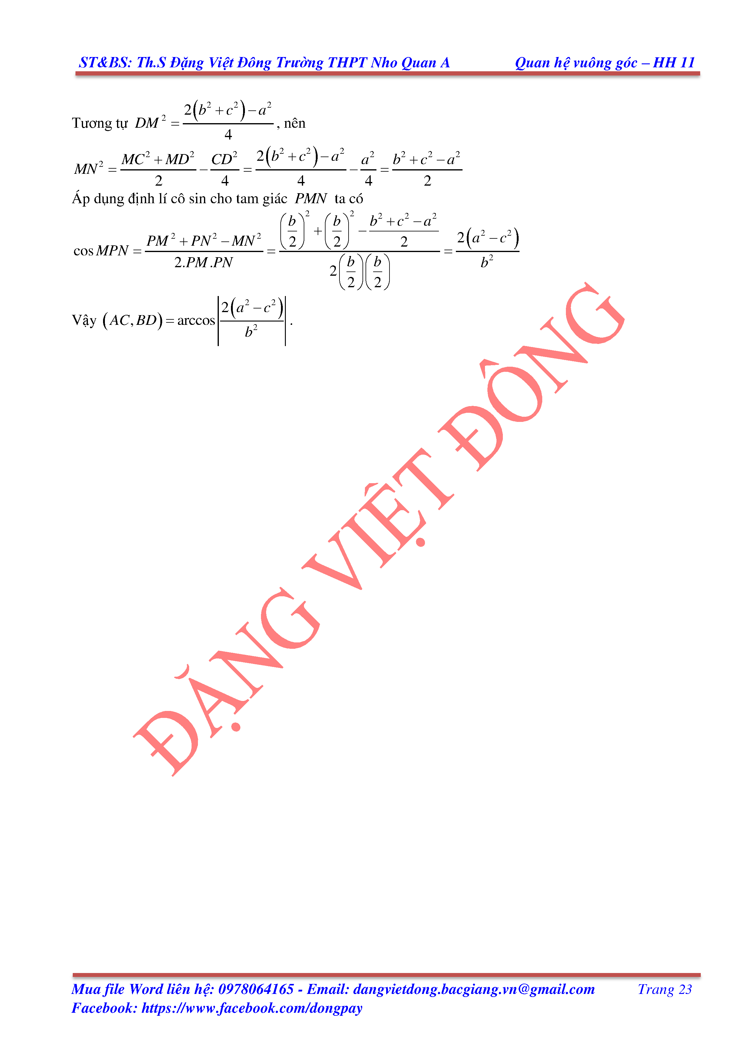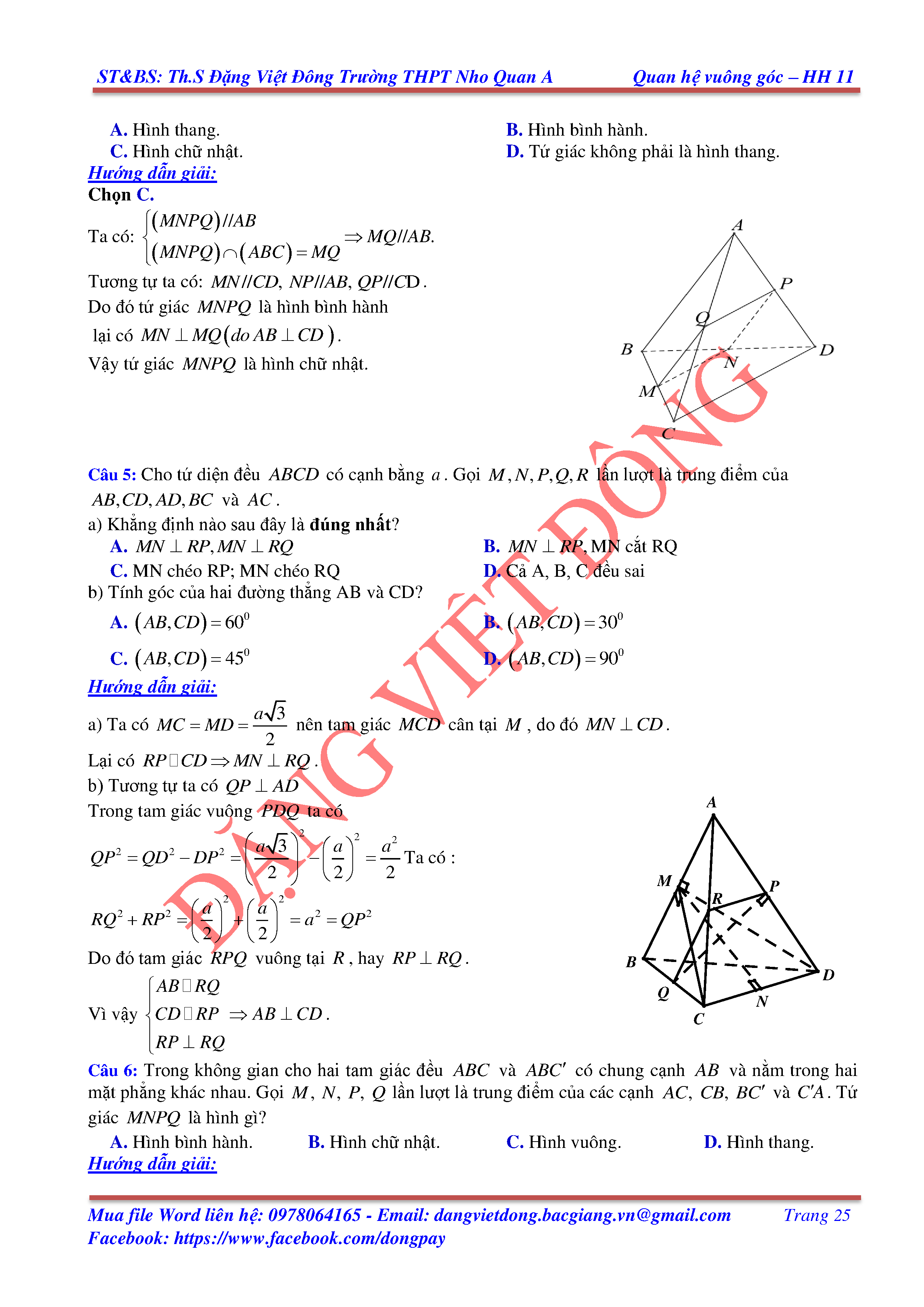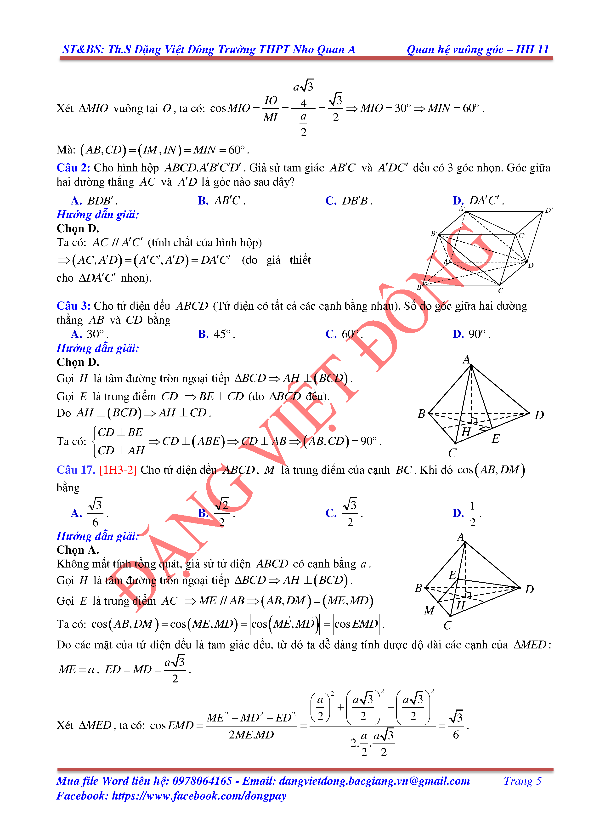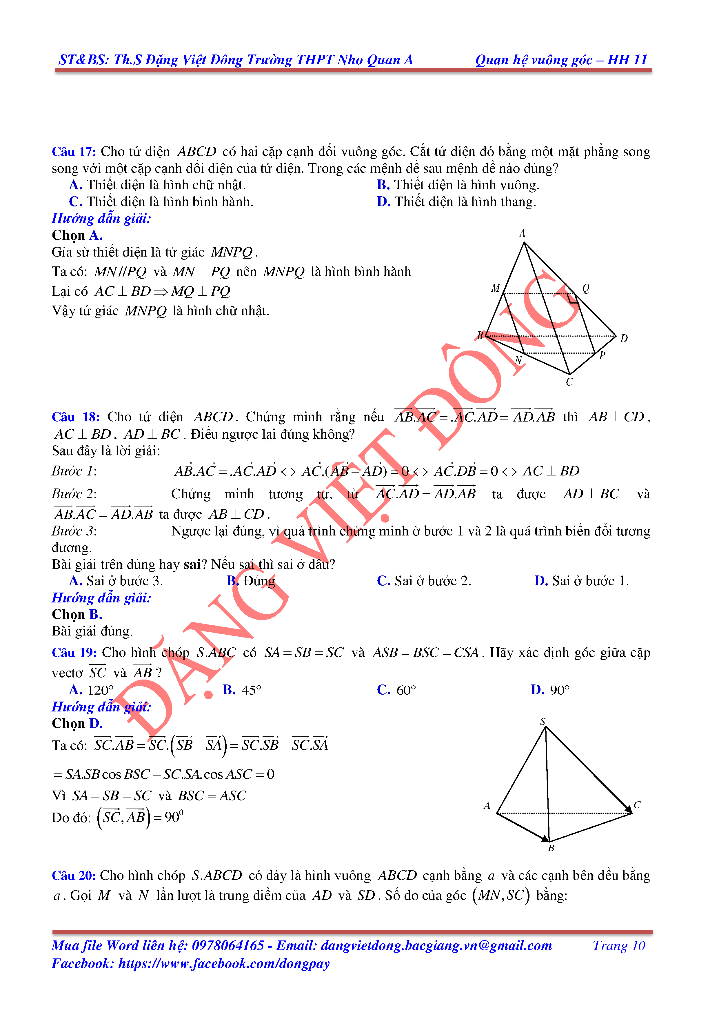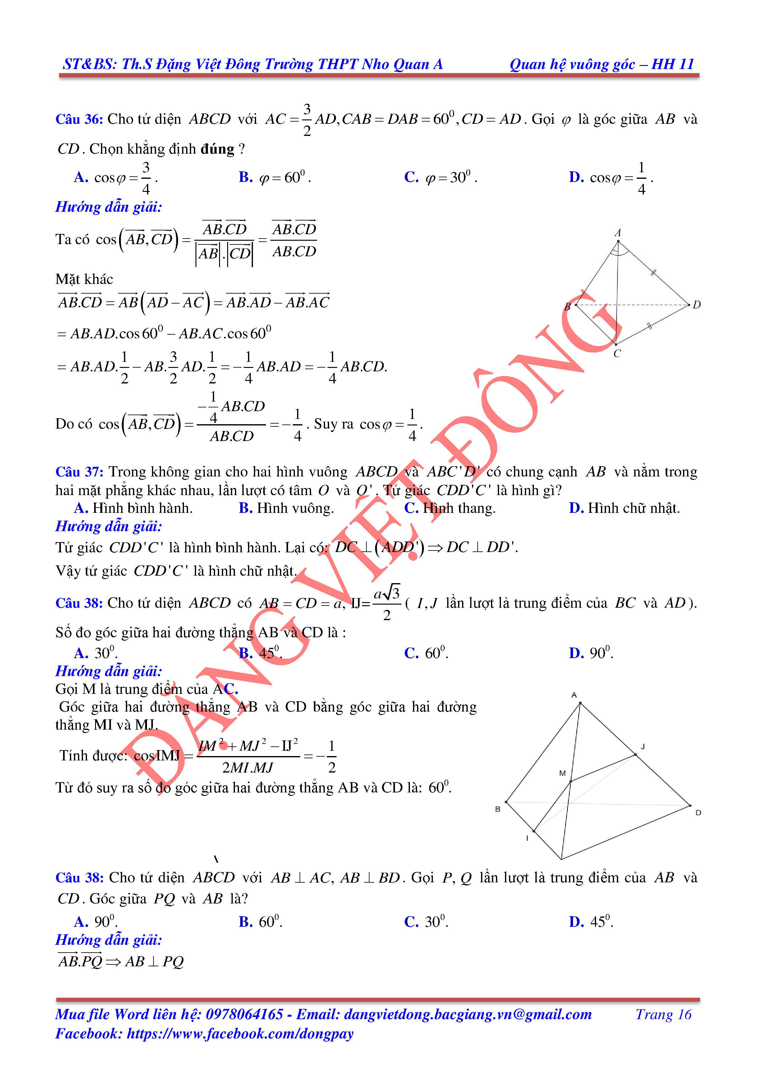 HAI ĐƯỜNG THẲNG VUÔNG GÓC - HÌNH HỌC 11