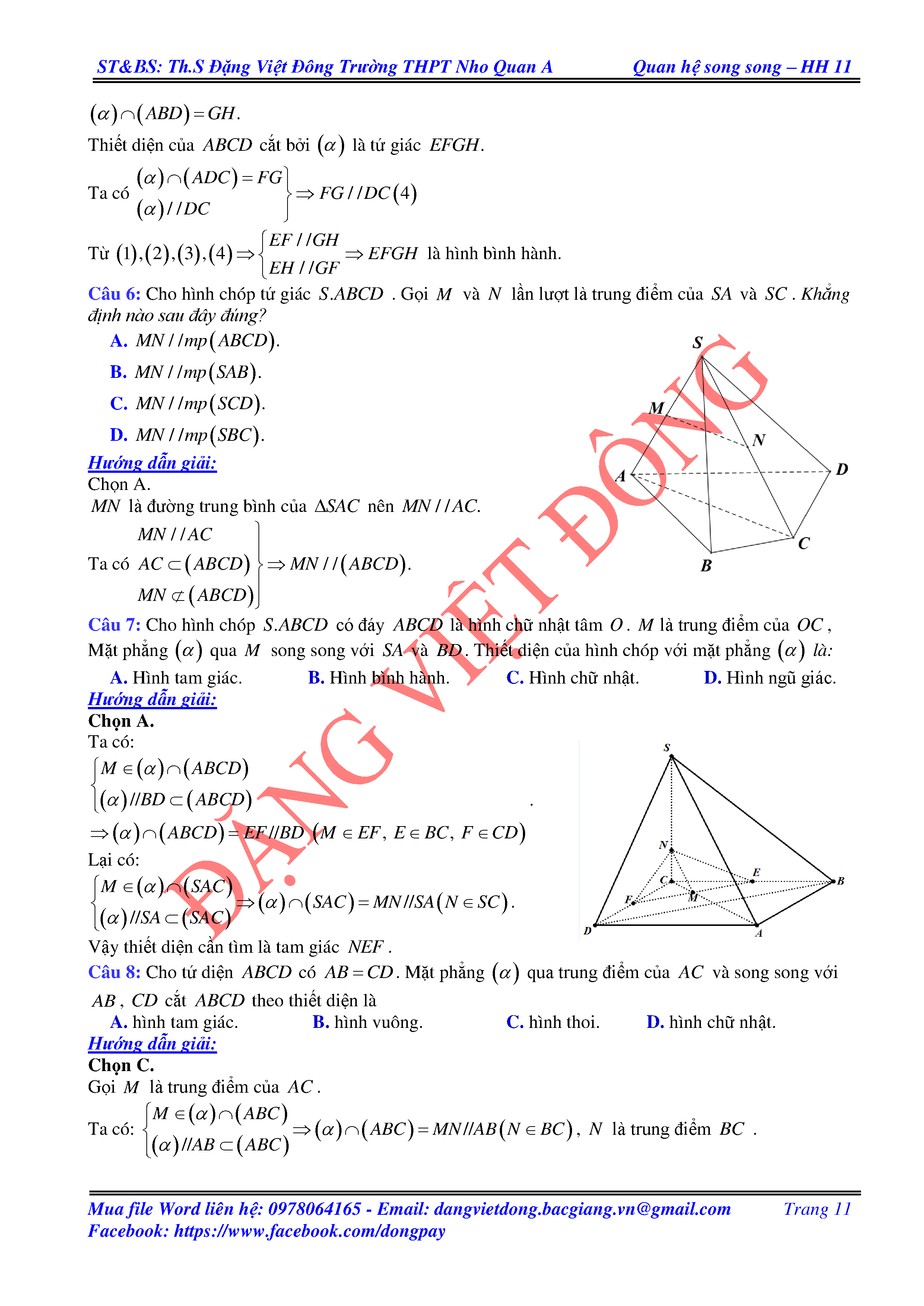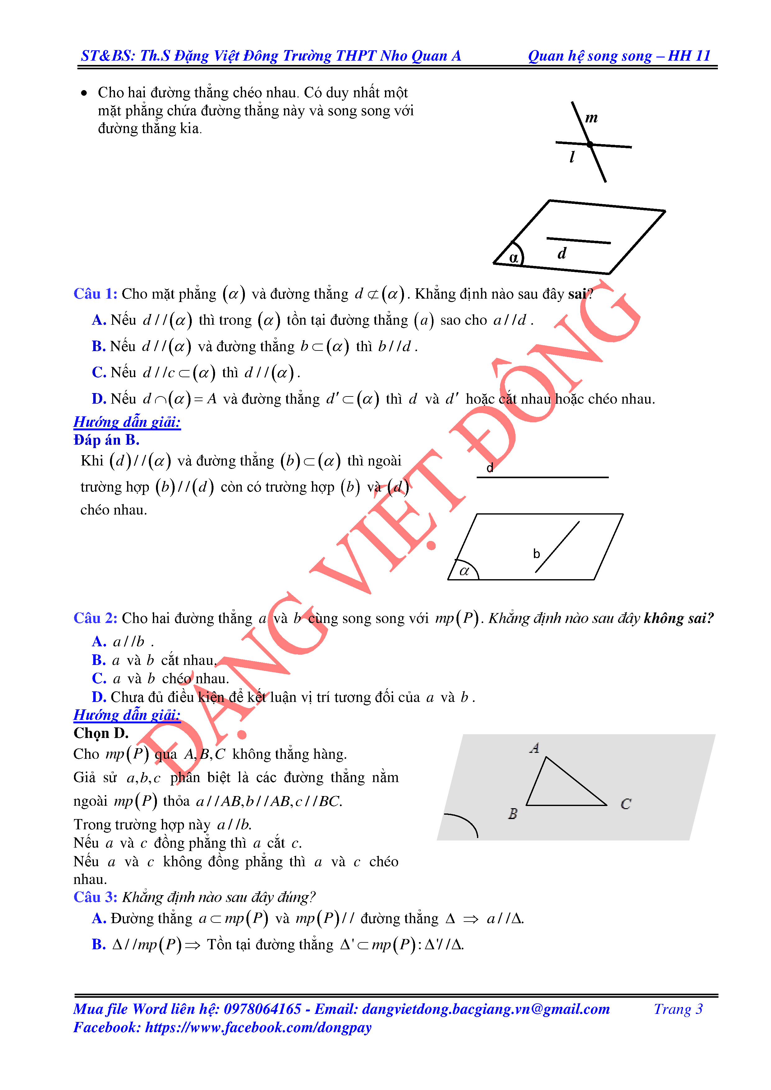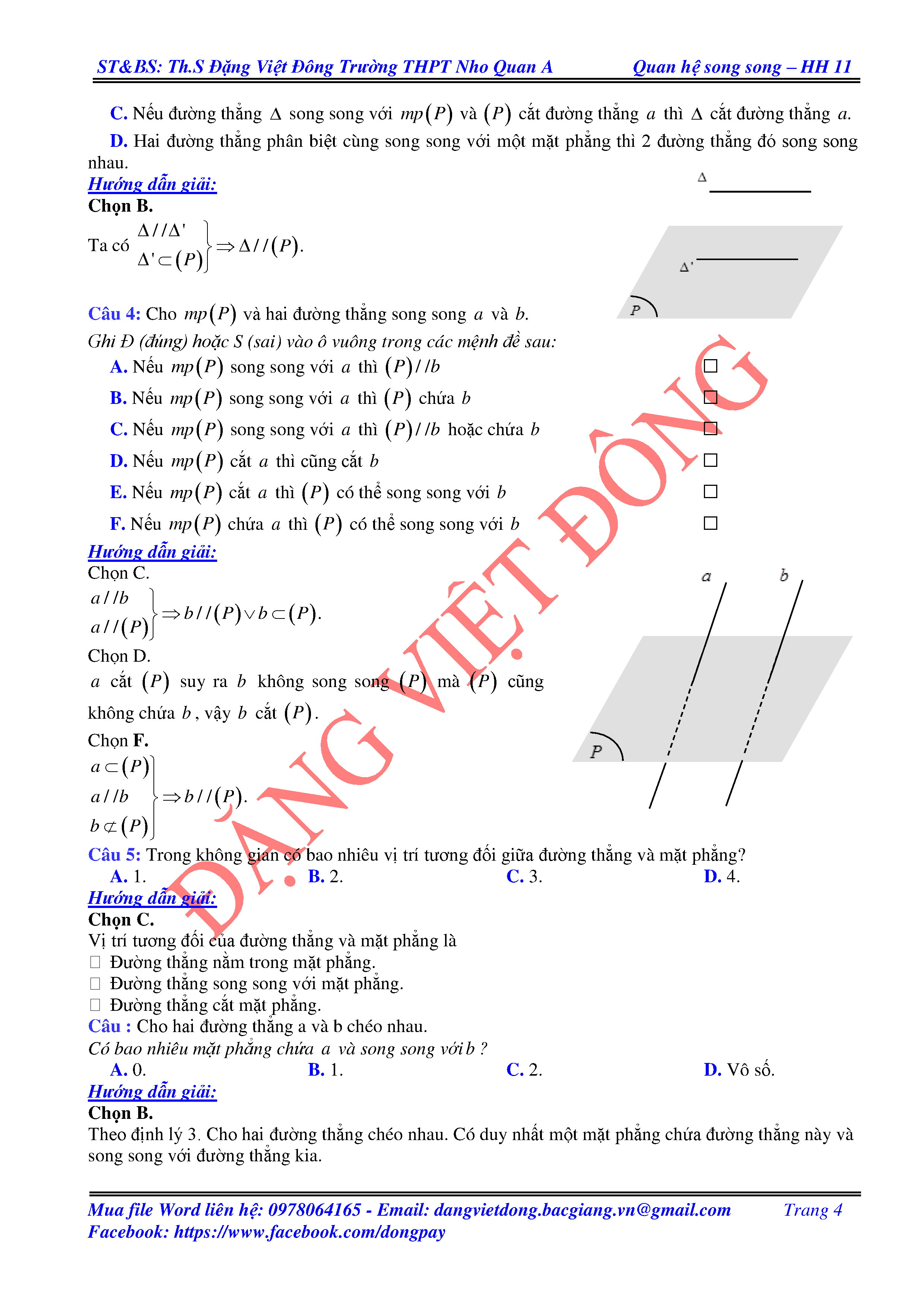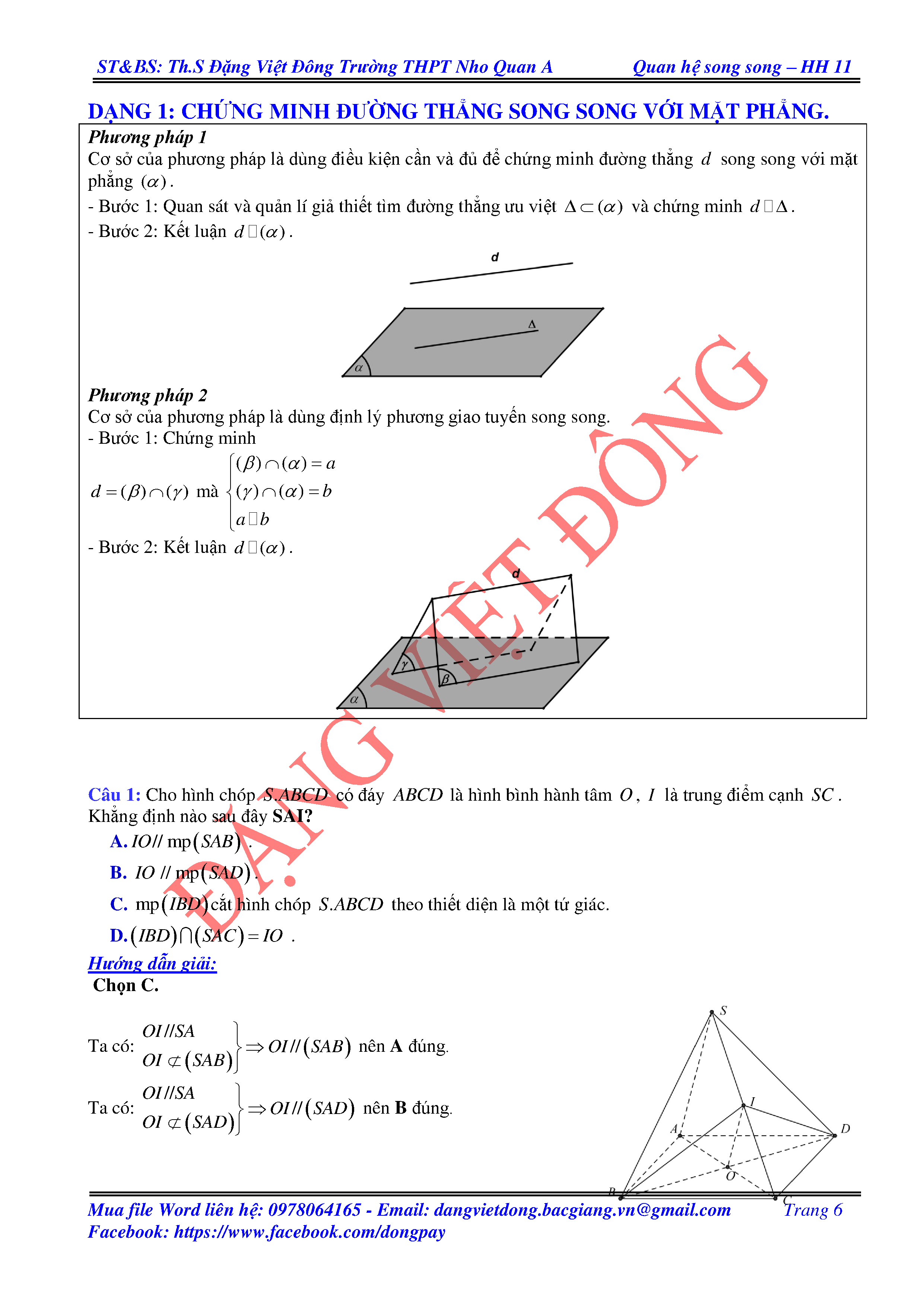 ĐƯỜNG THẲNG SONG SONG VỚI MẶT PHẲNG - HÌNH HỌC 11