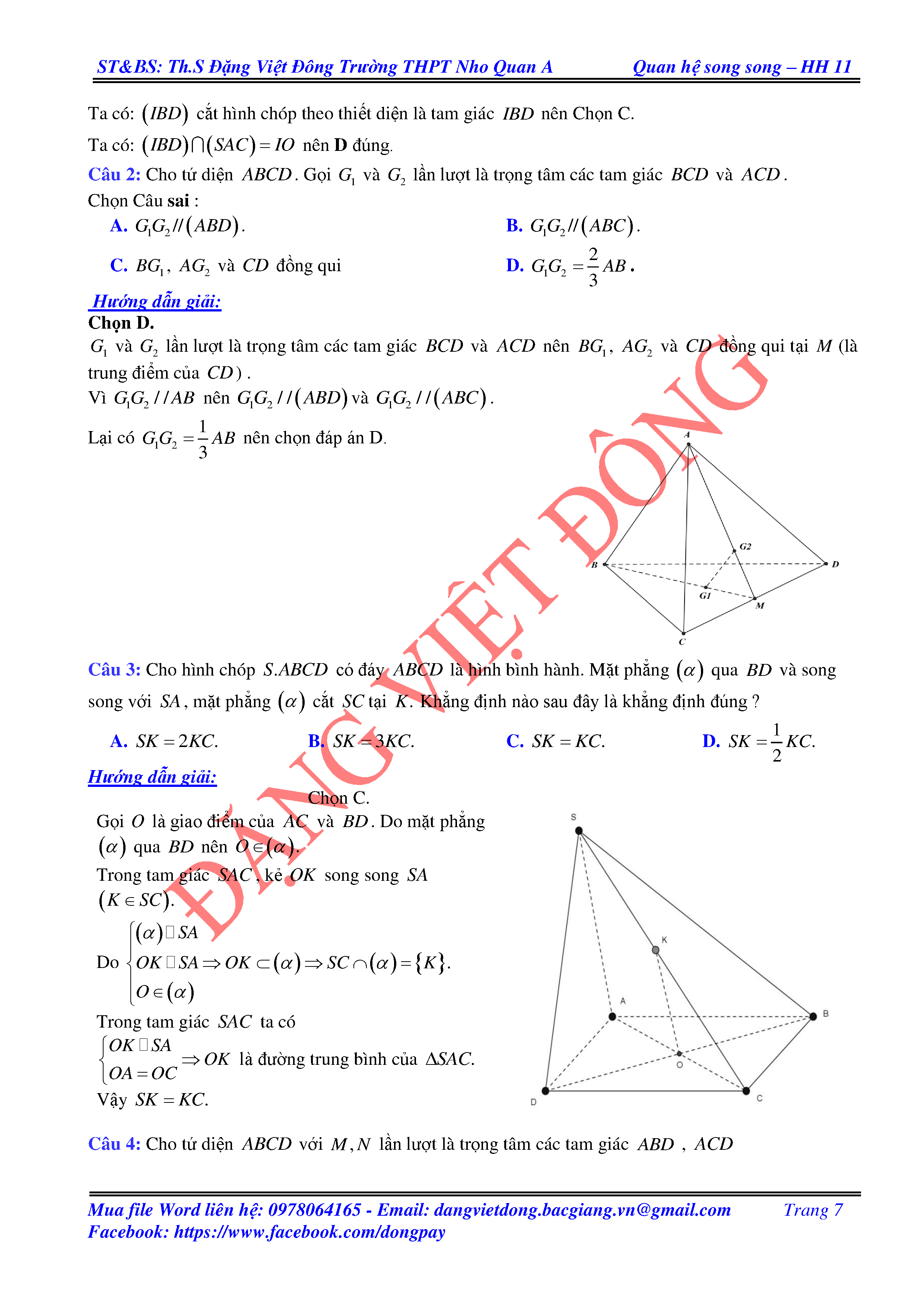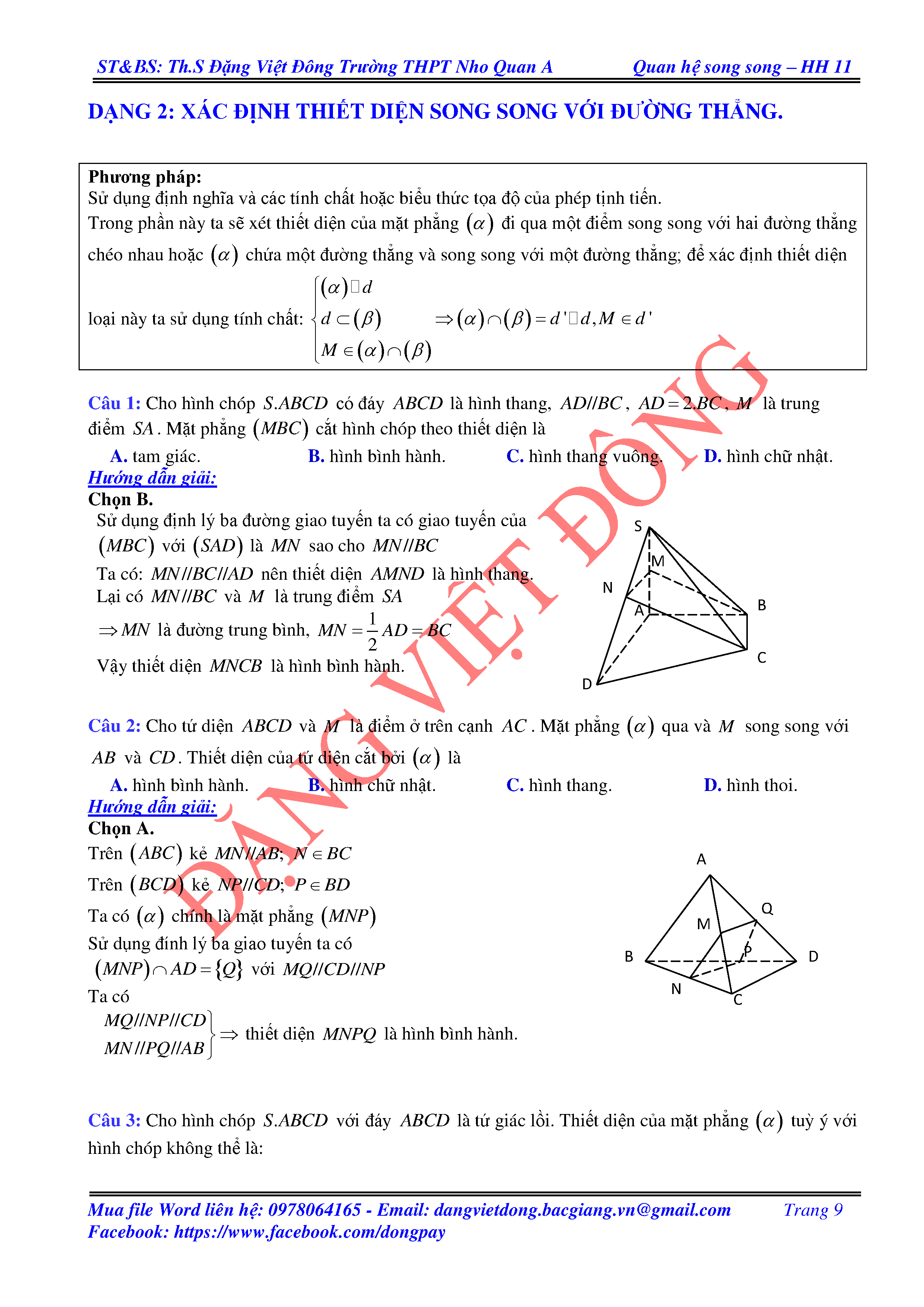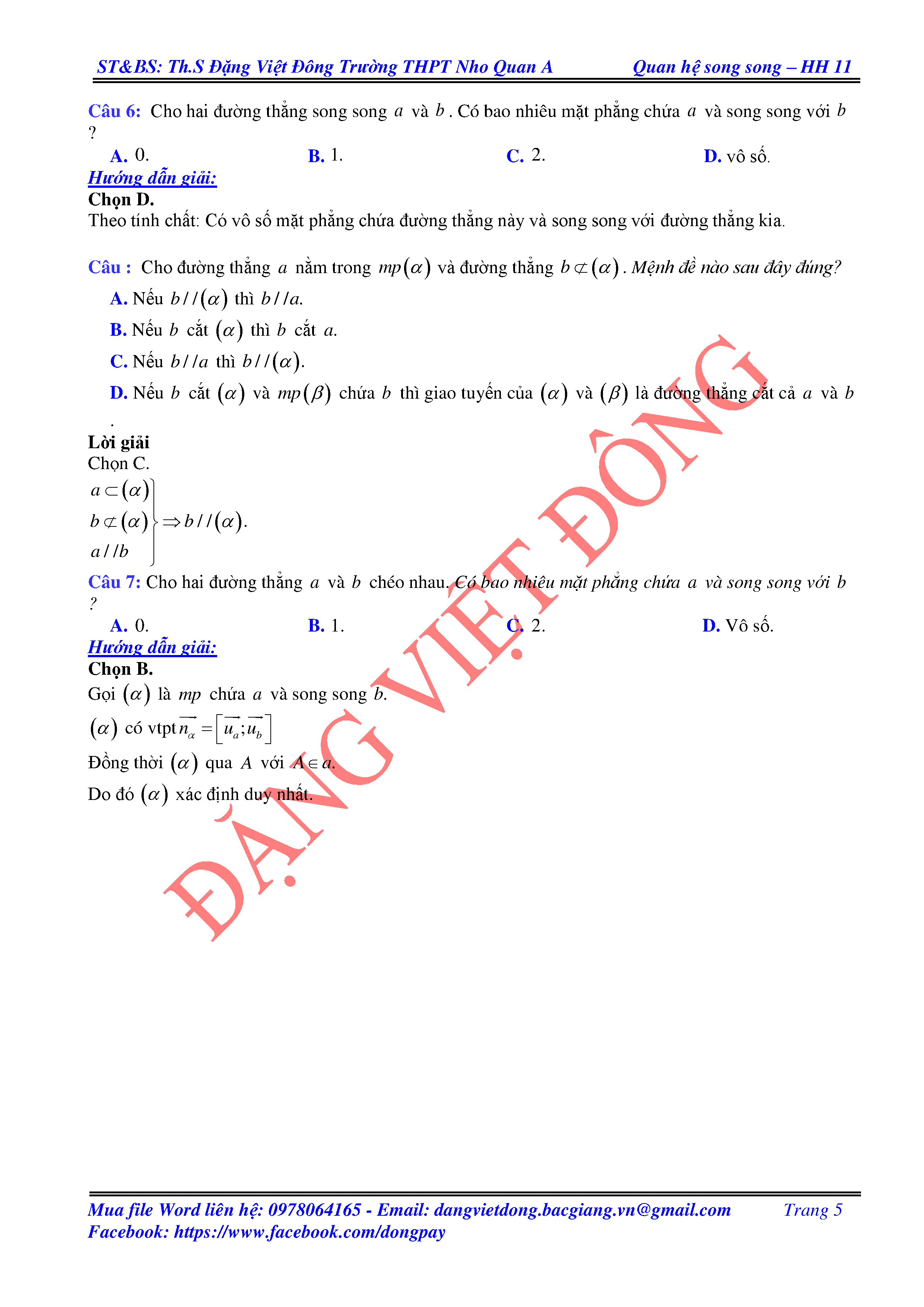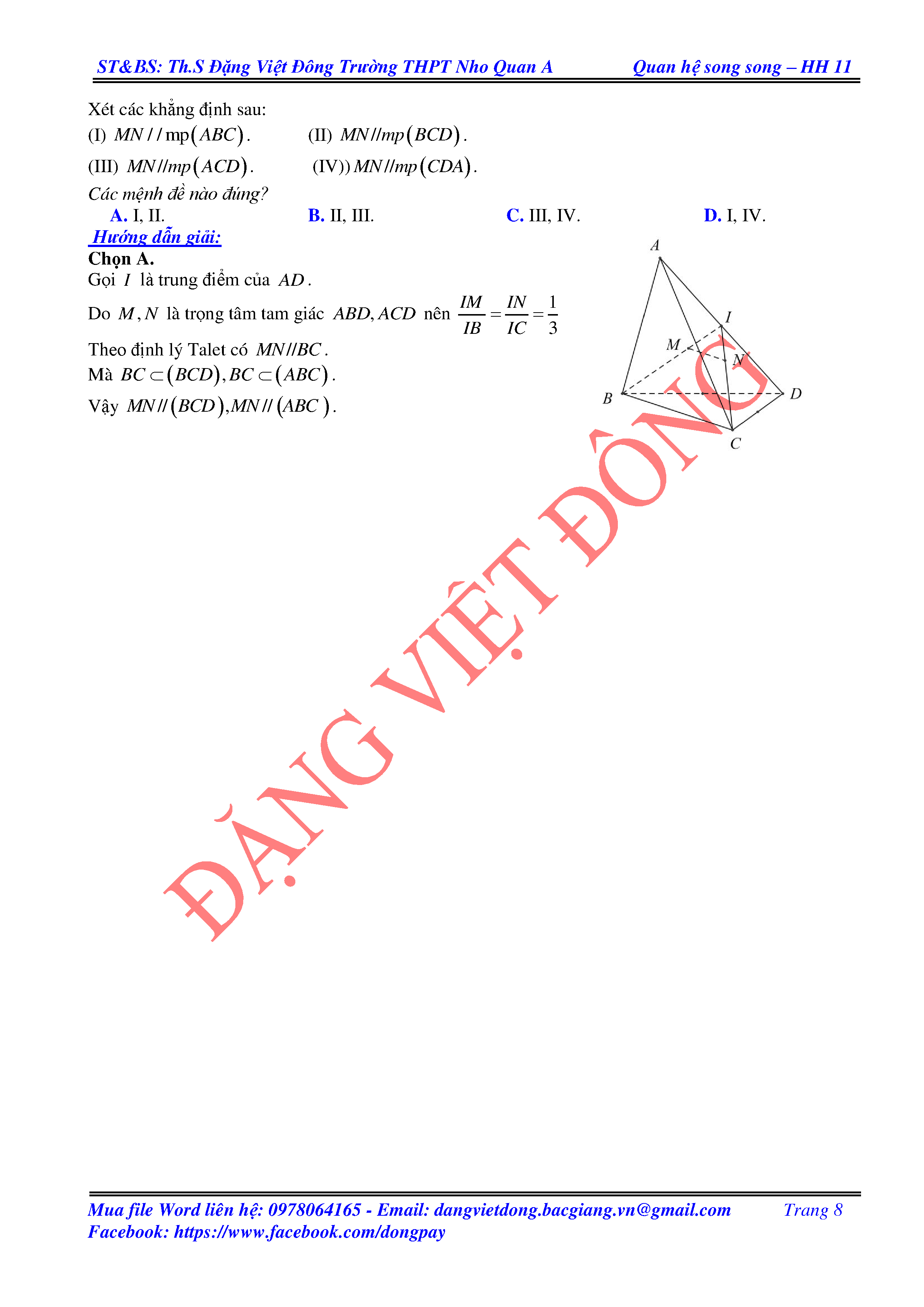 ĐƯỜNG THẲNG SONG SONG VỚI MẶT PHẲNG - HÌNH HỌC 11