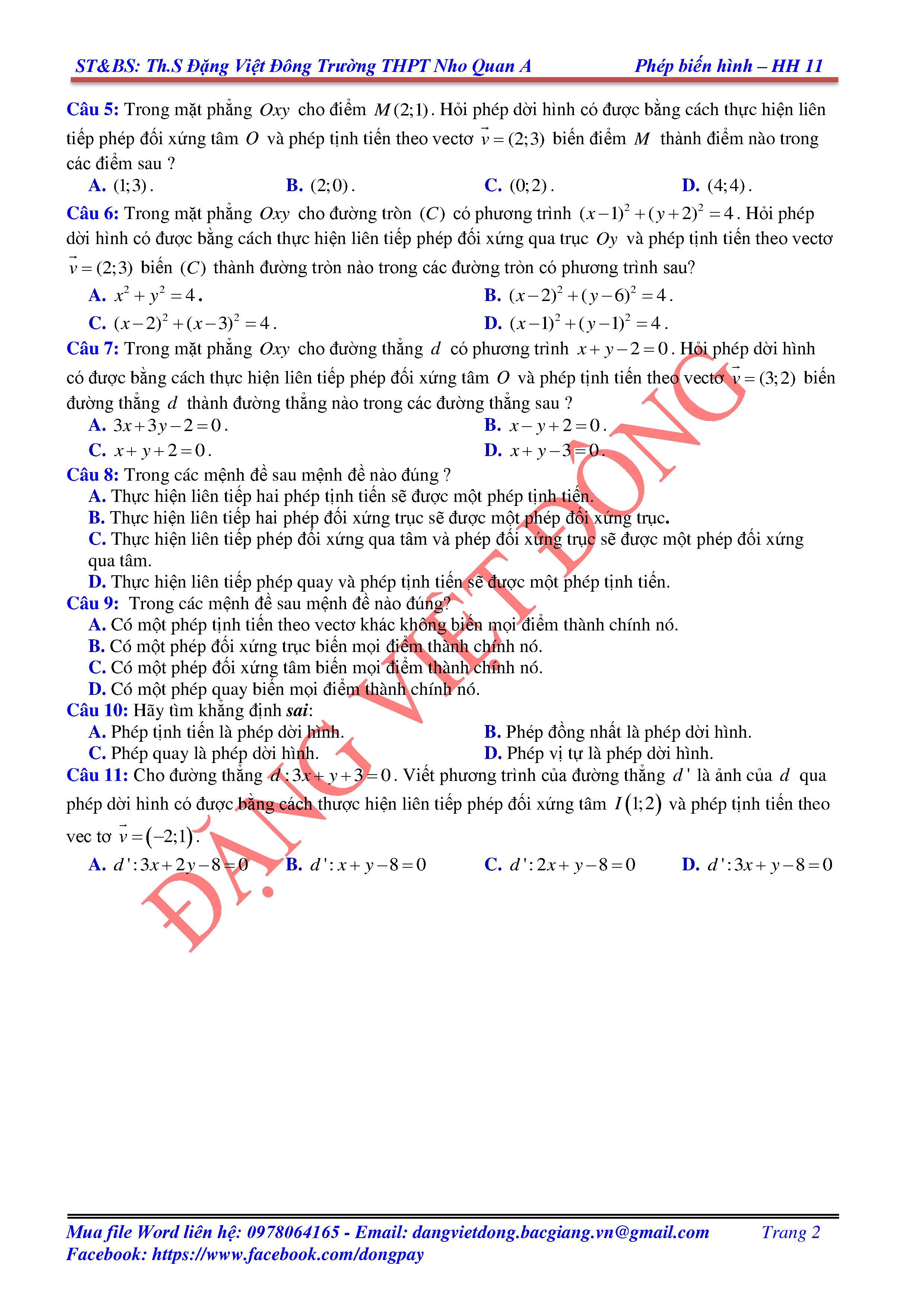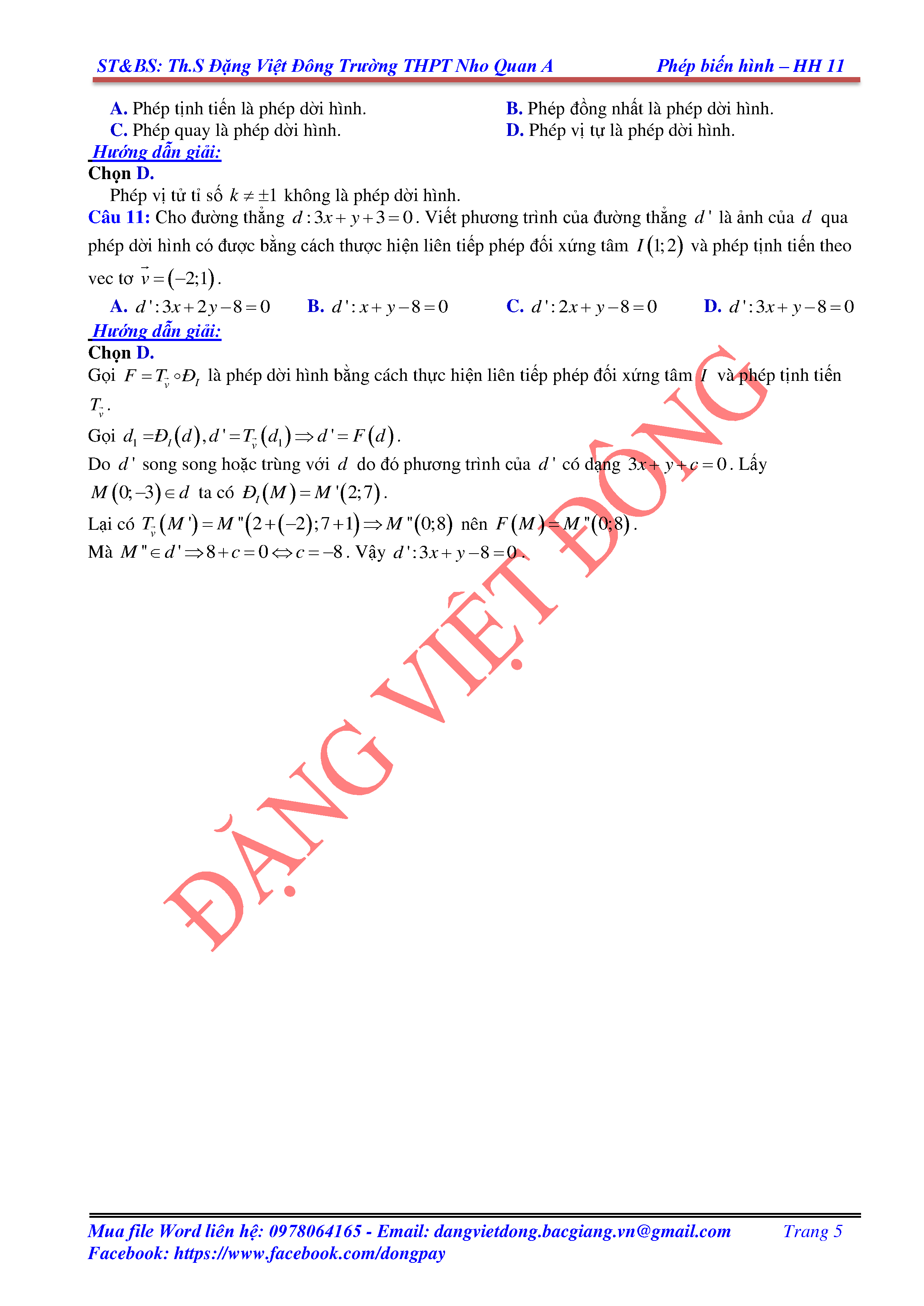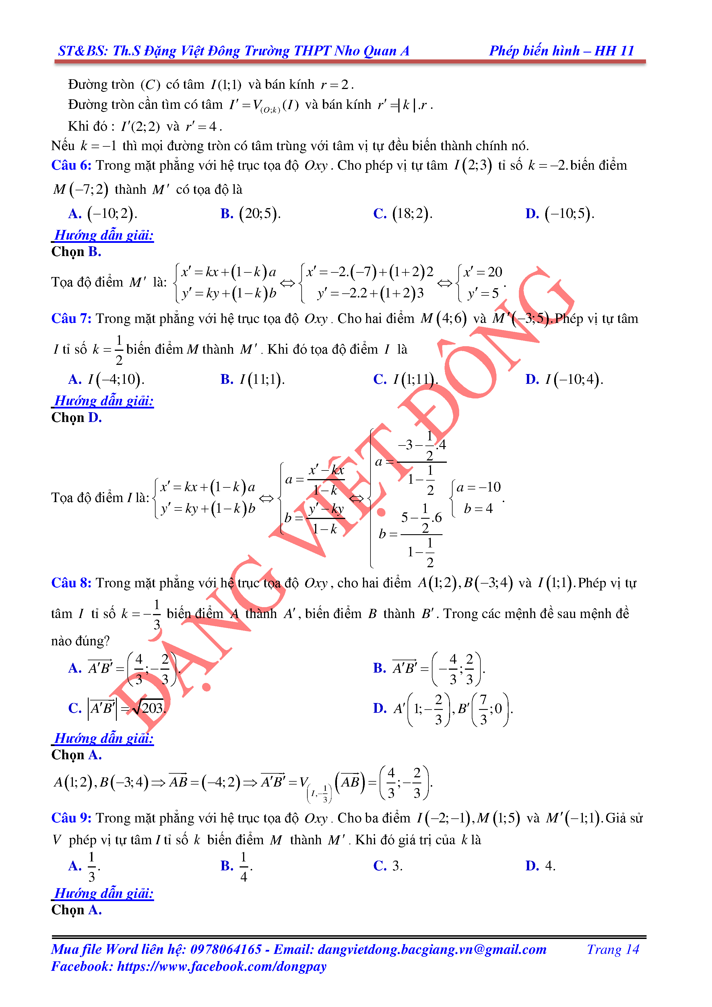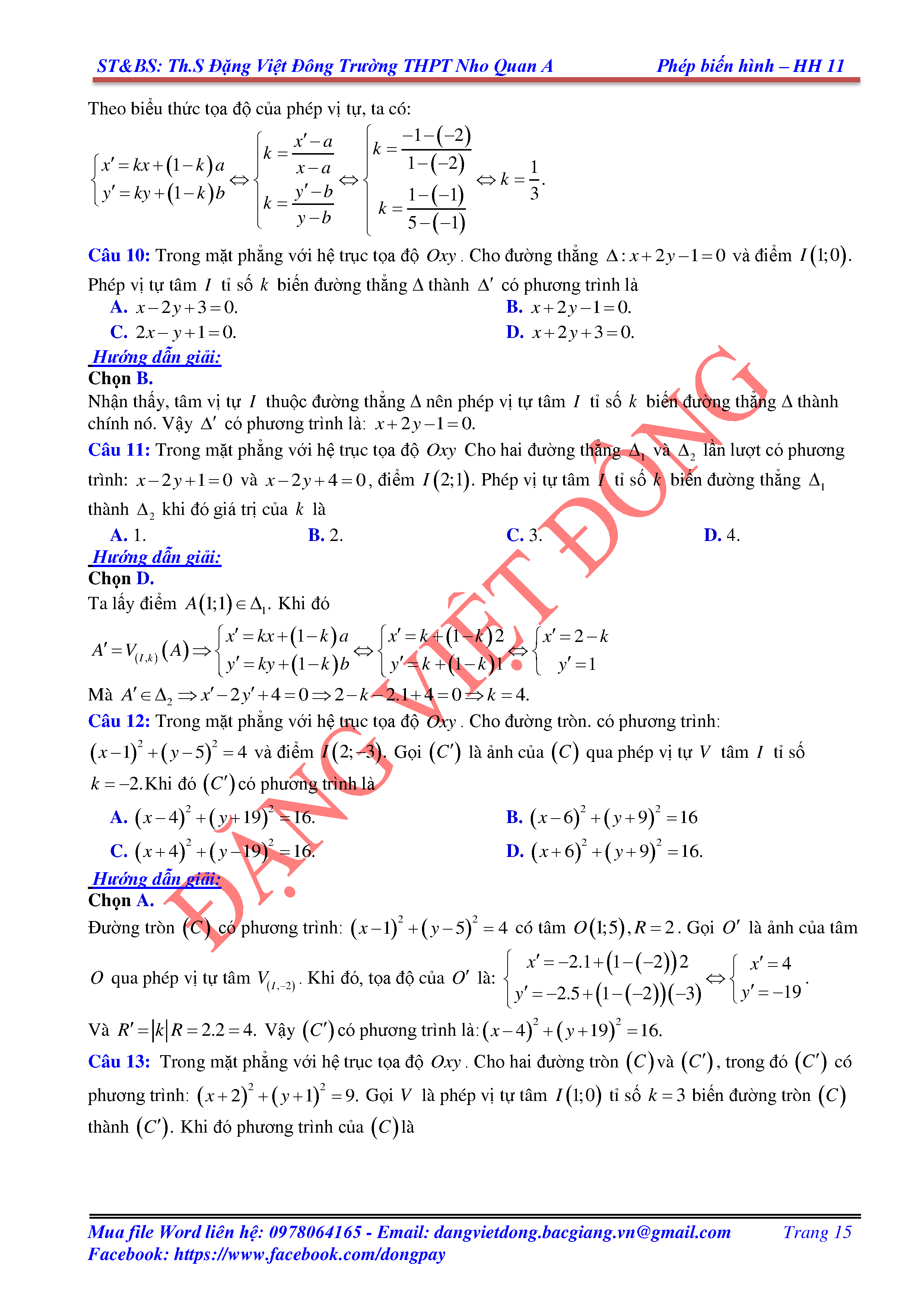 PHÉP DỜI HÌNH, PHÉP VỊ TỰ - HÌNH HỌC 11