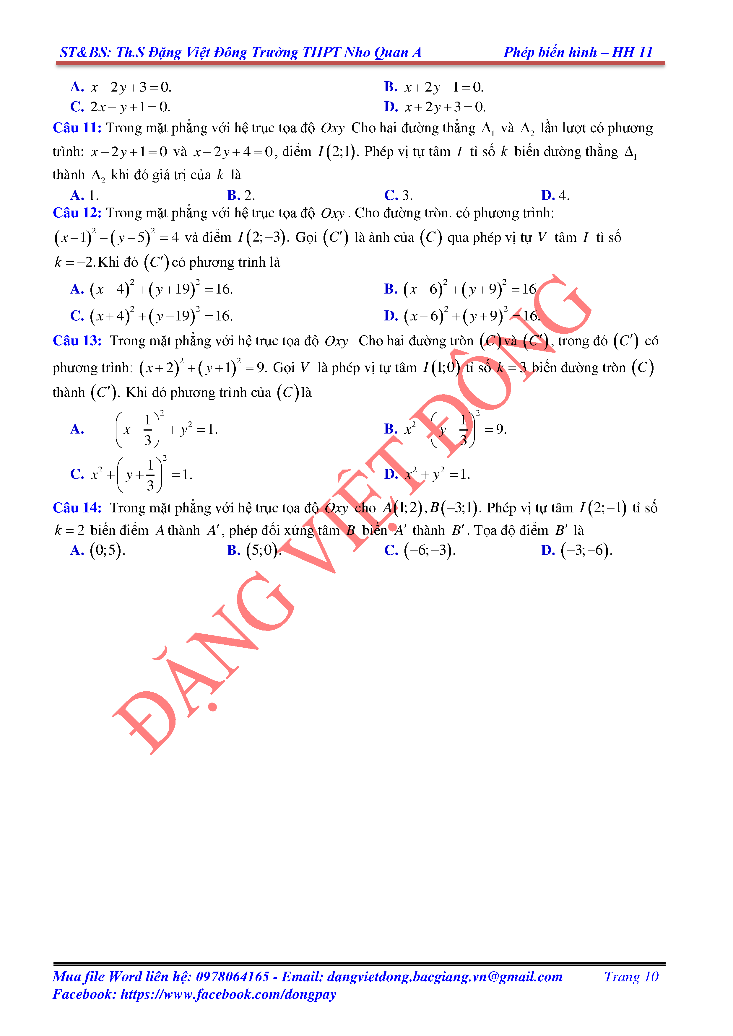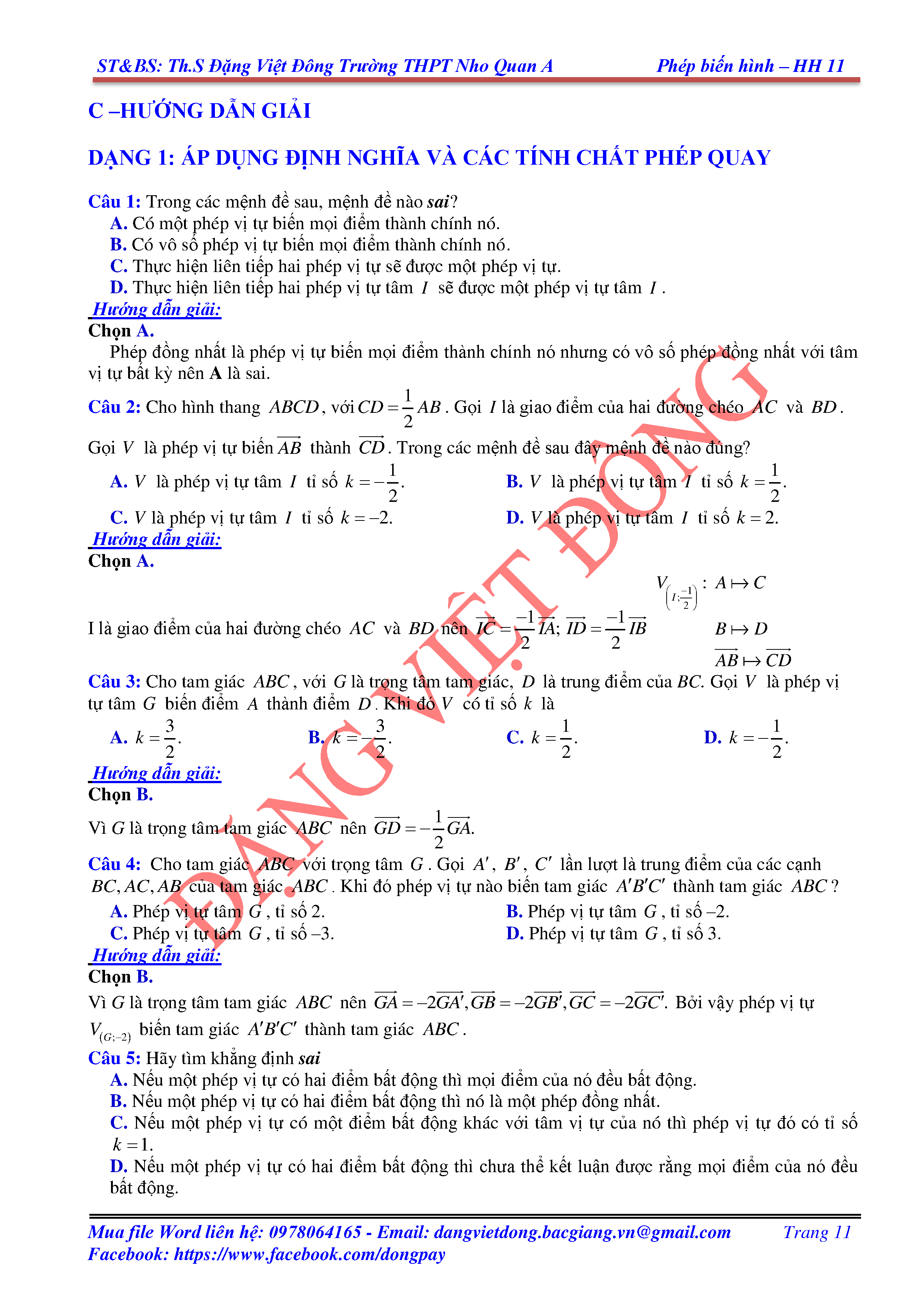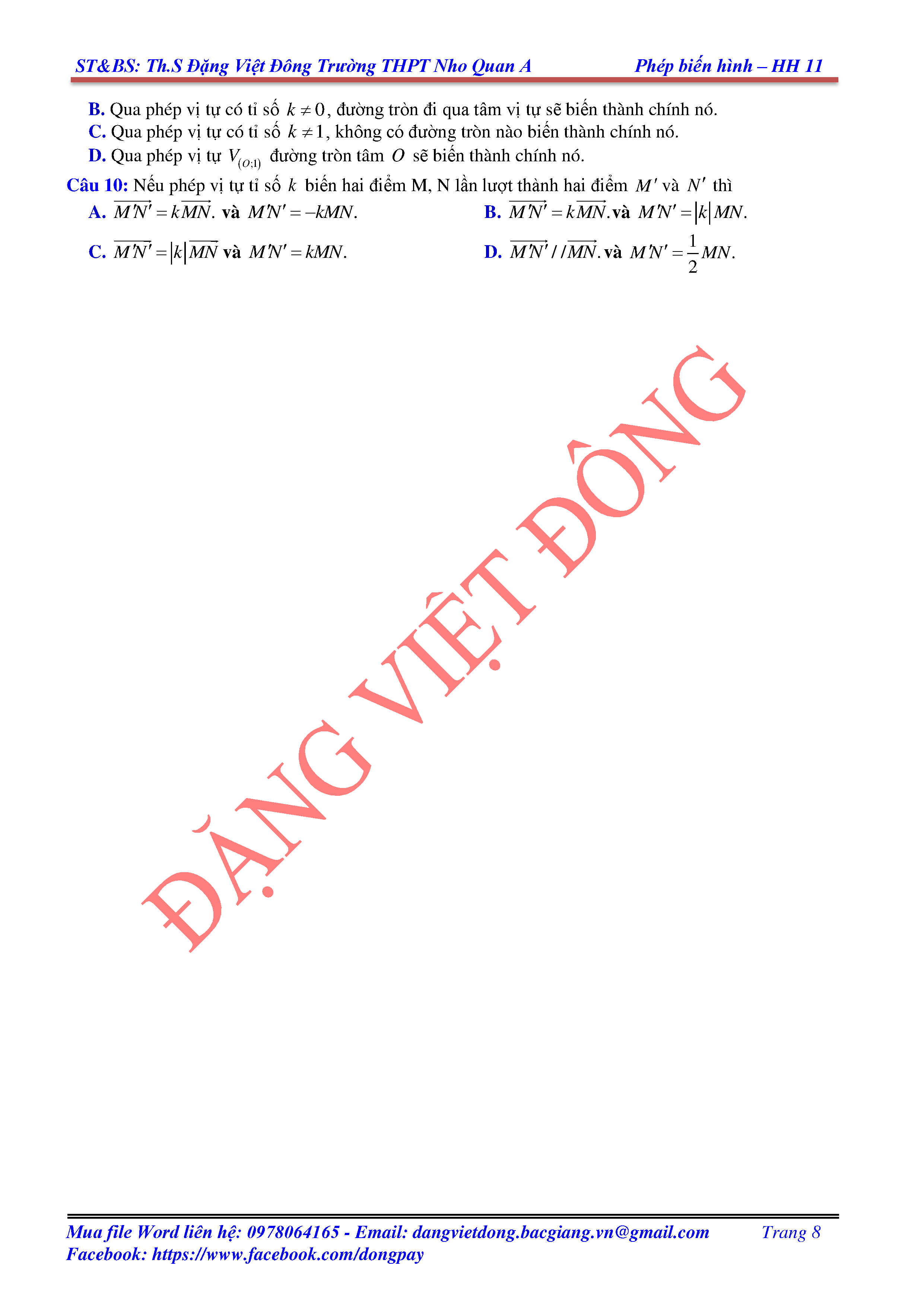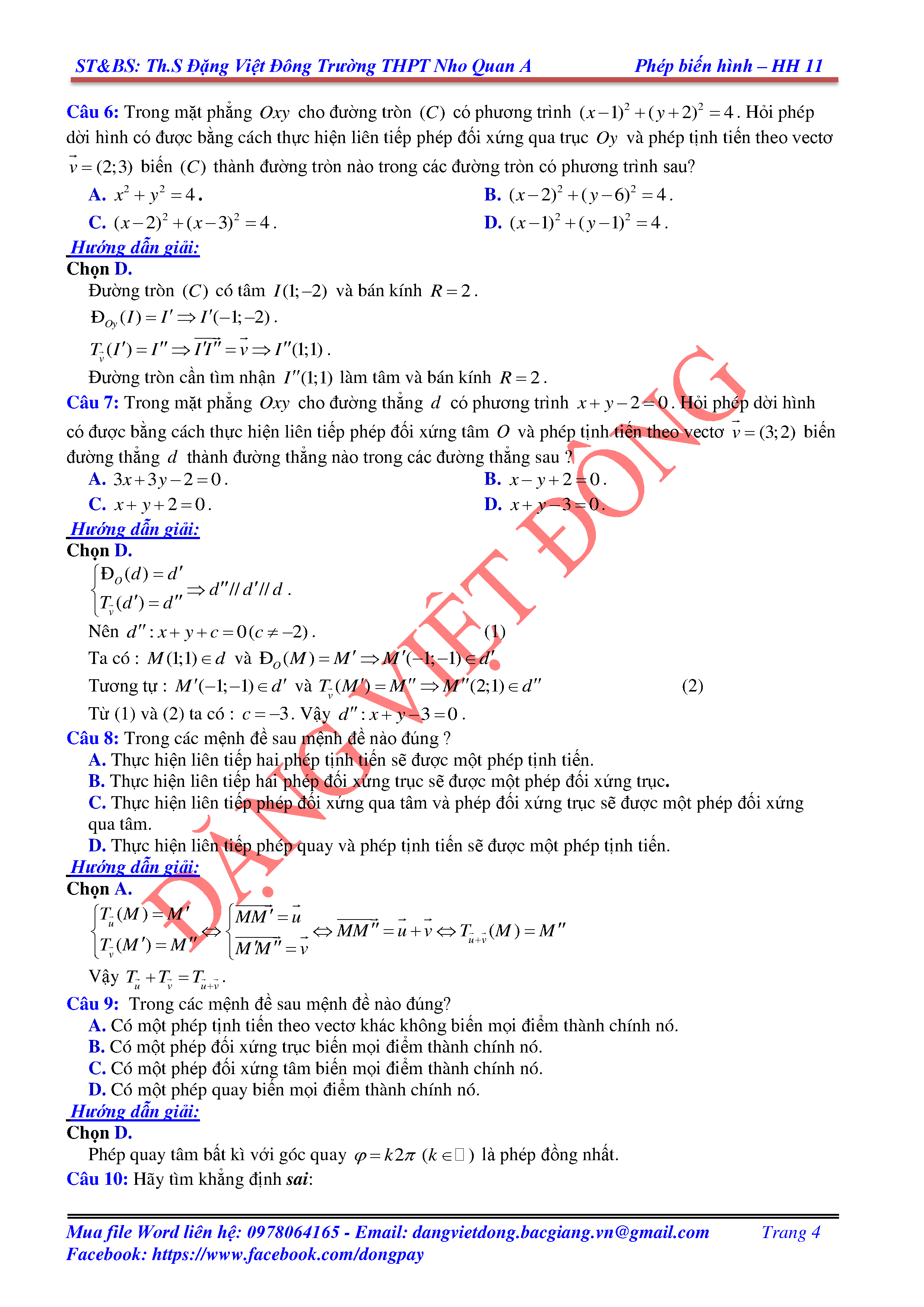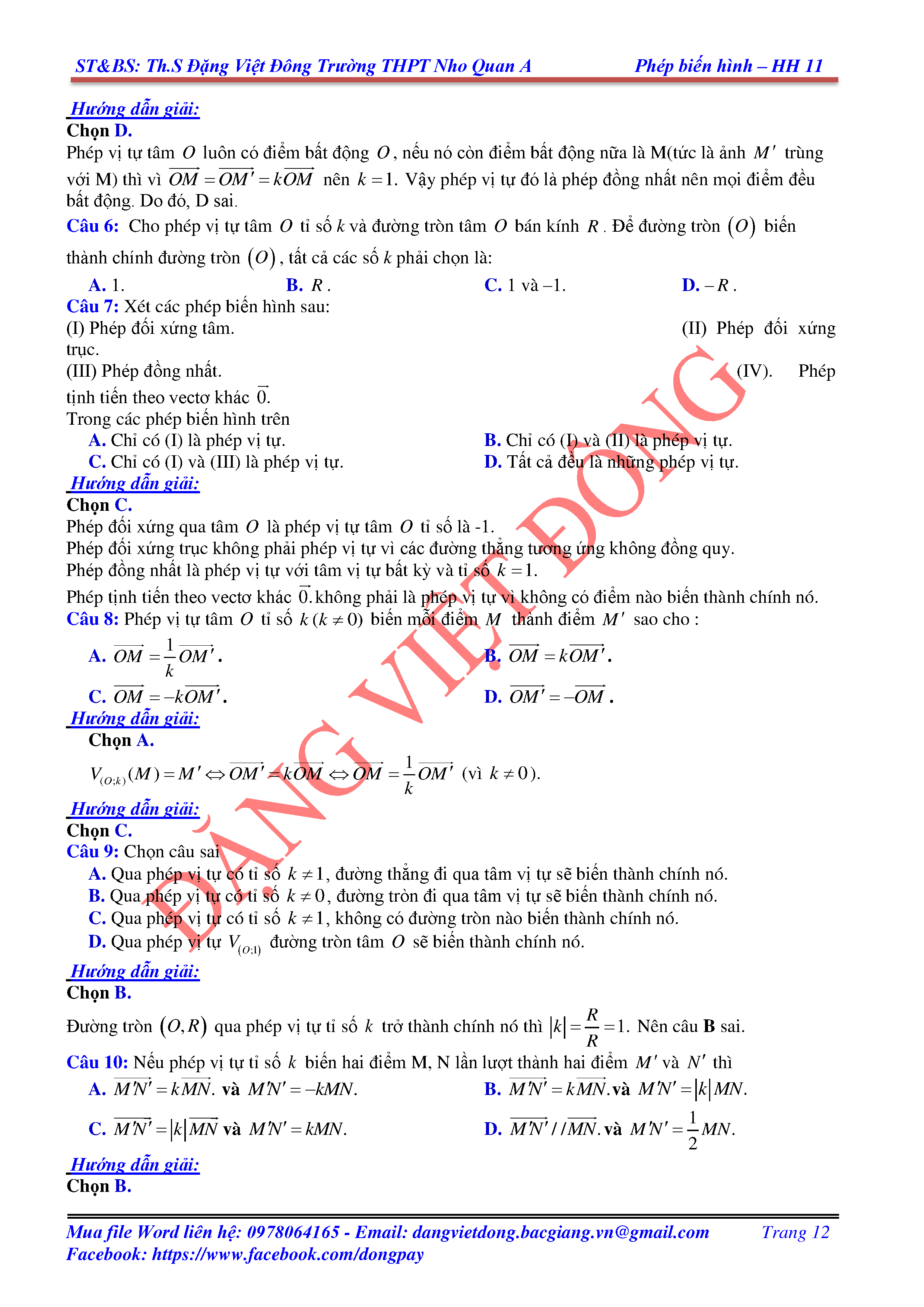 PHÉP DỜI HÌNH, PHÉP VỊ TỰ - HÌNH HỌC 11