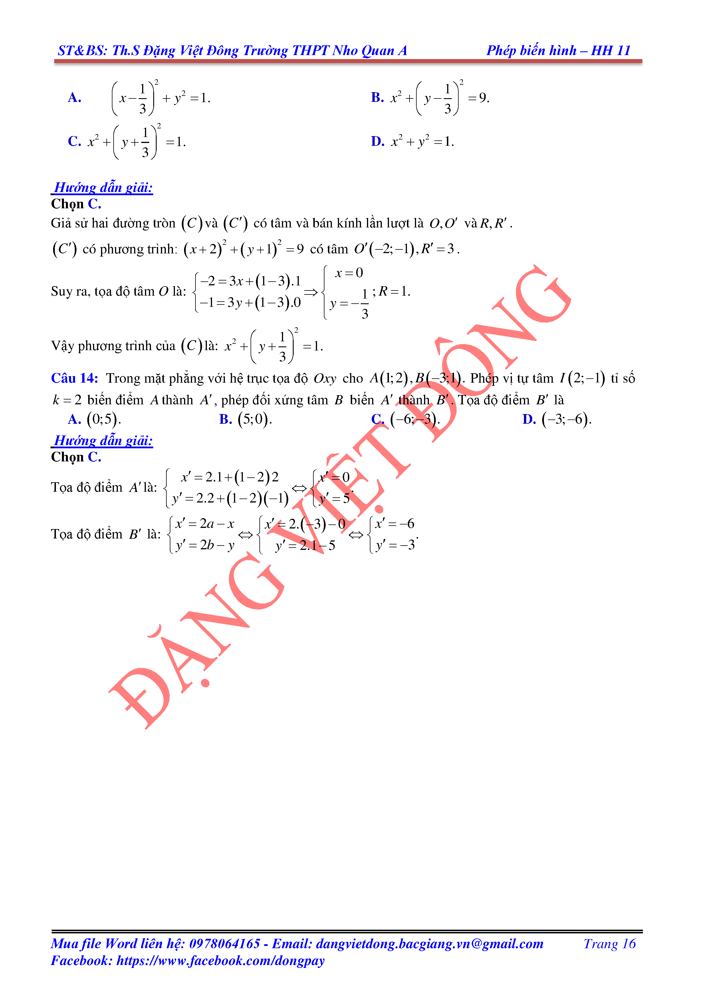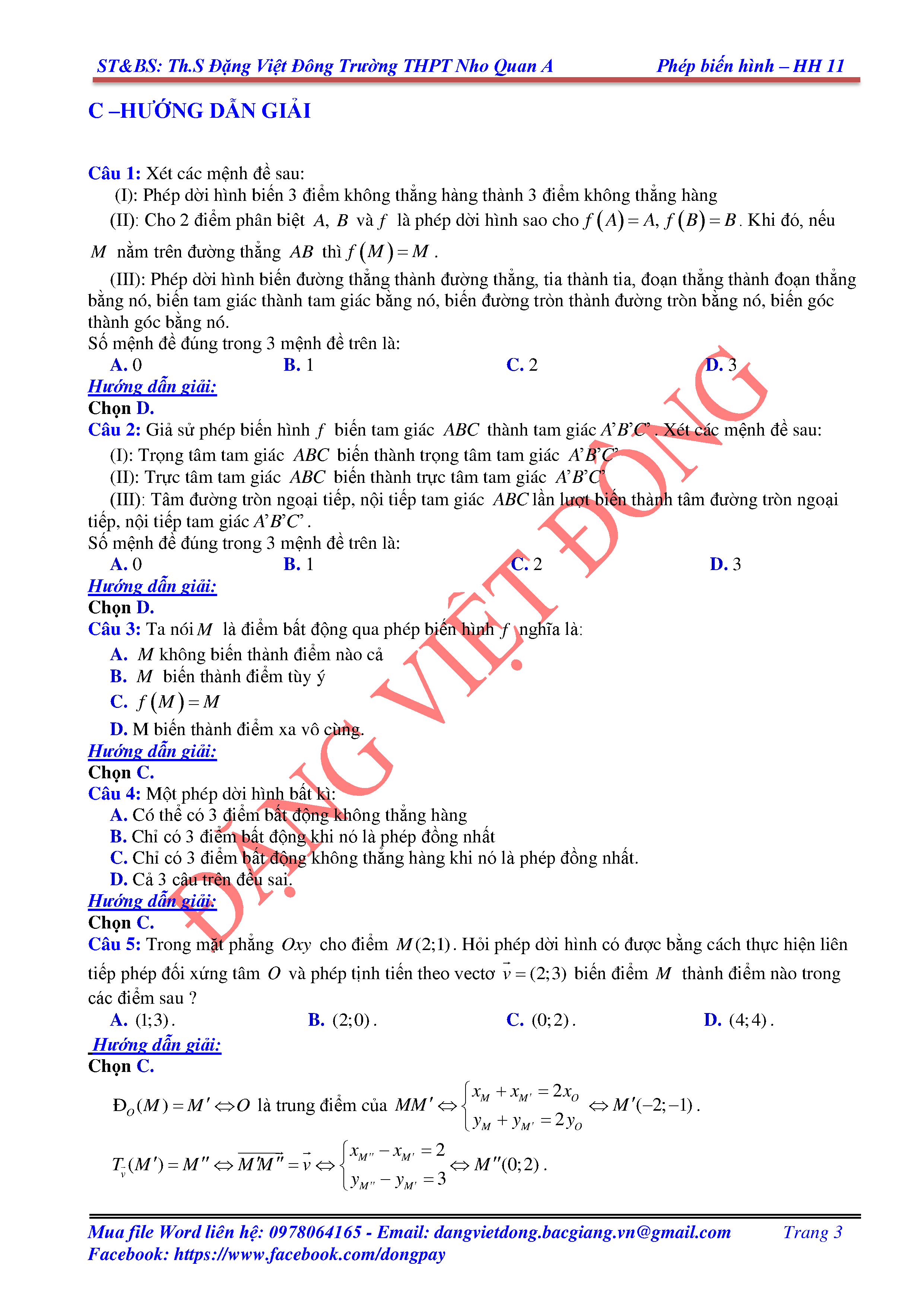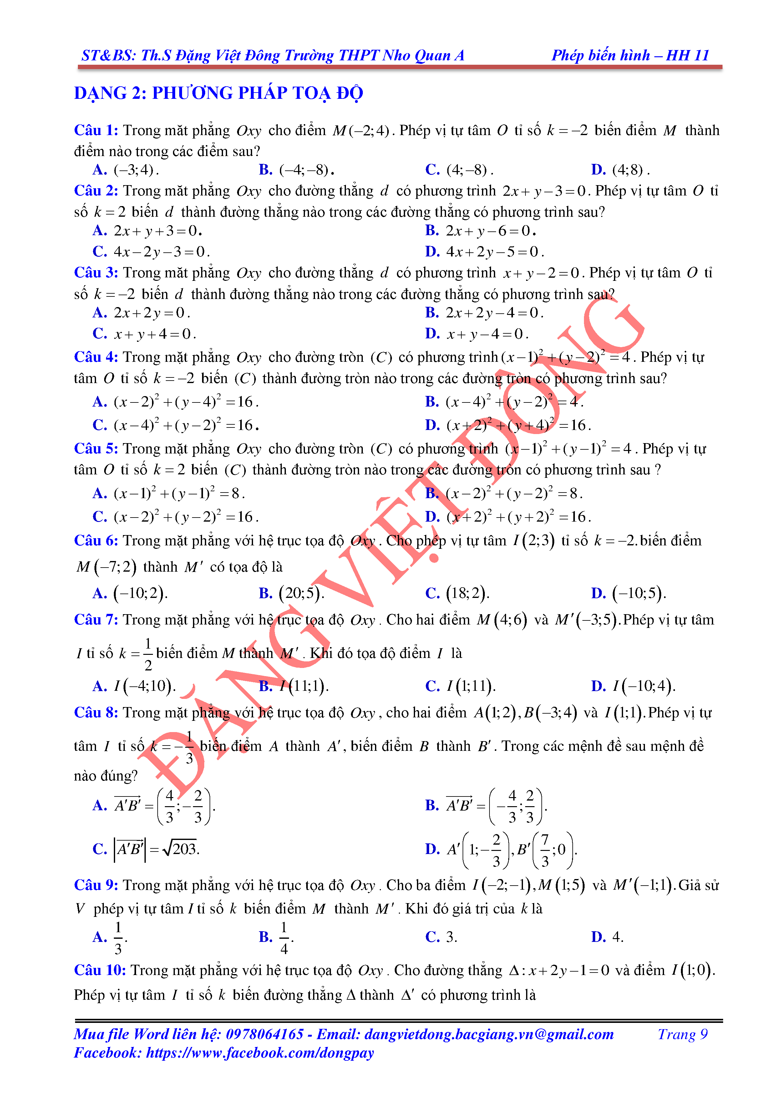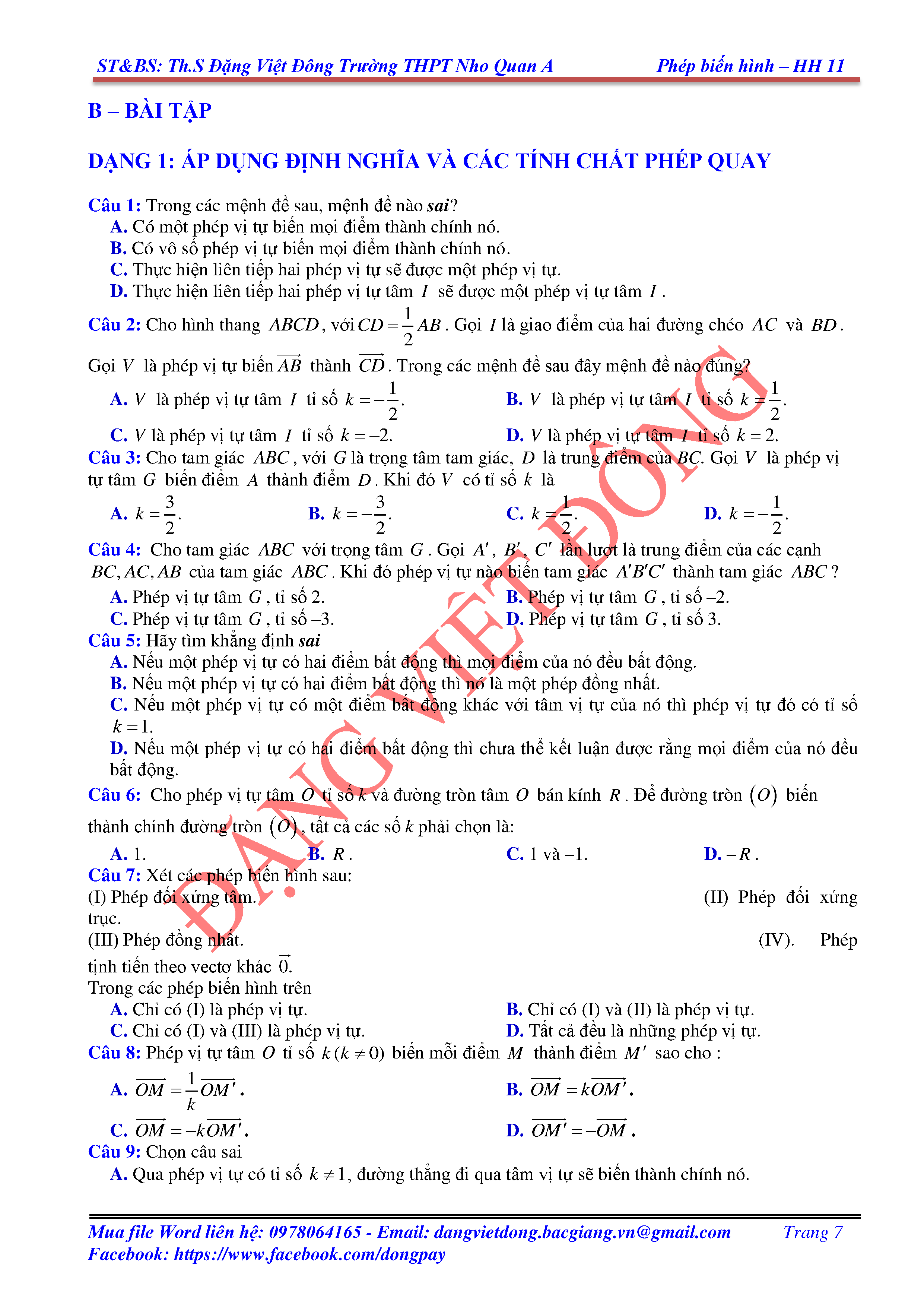 PHÉP DỜI HÌNH, PHÉP VỊ TỰ - HÌNH HỌC 11