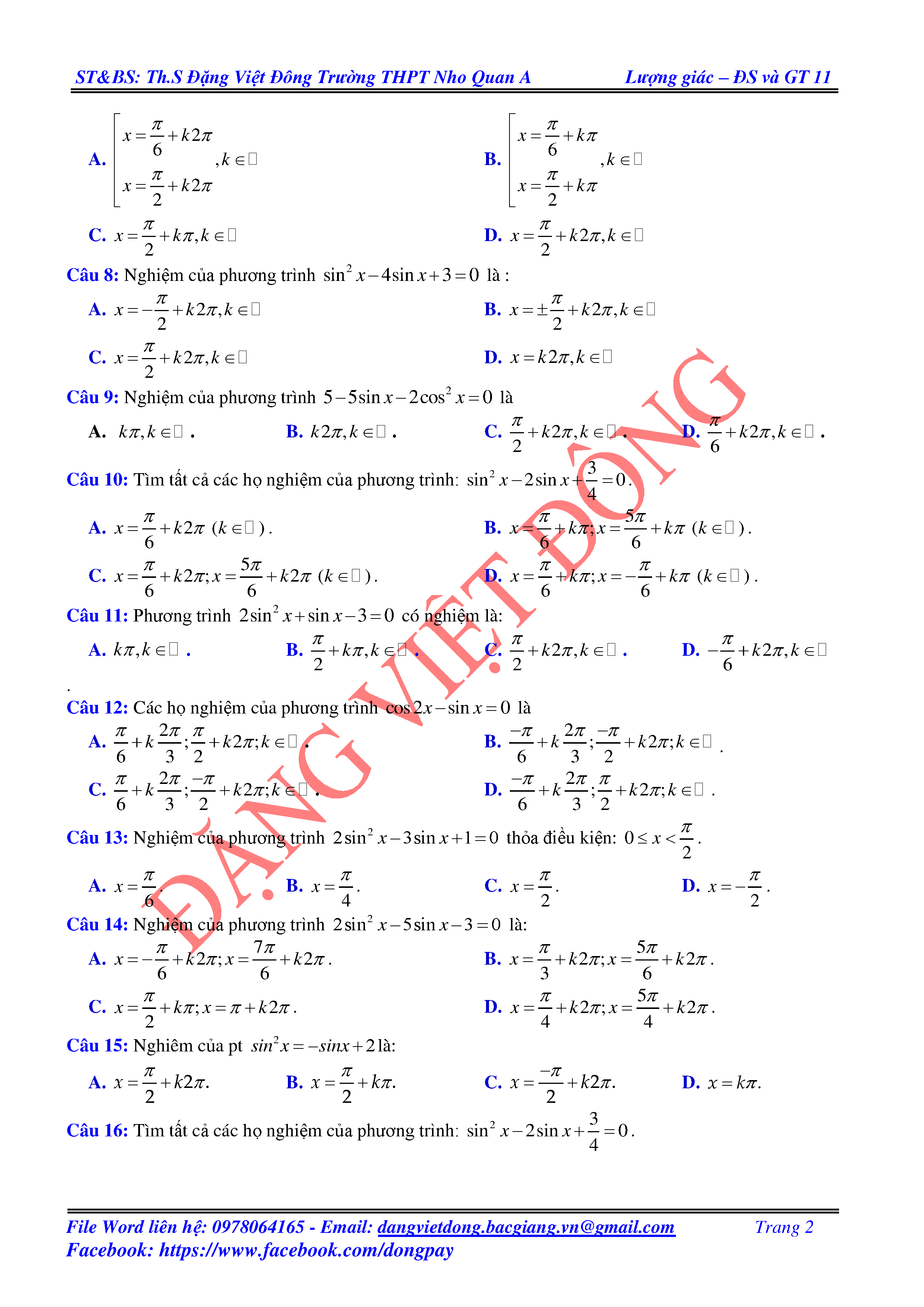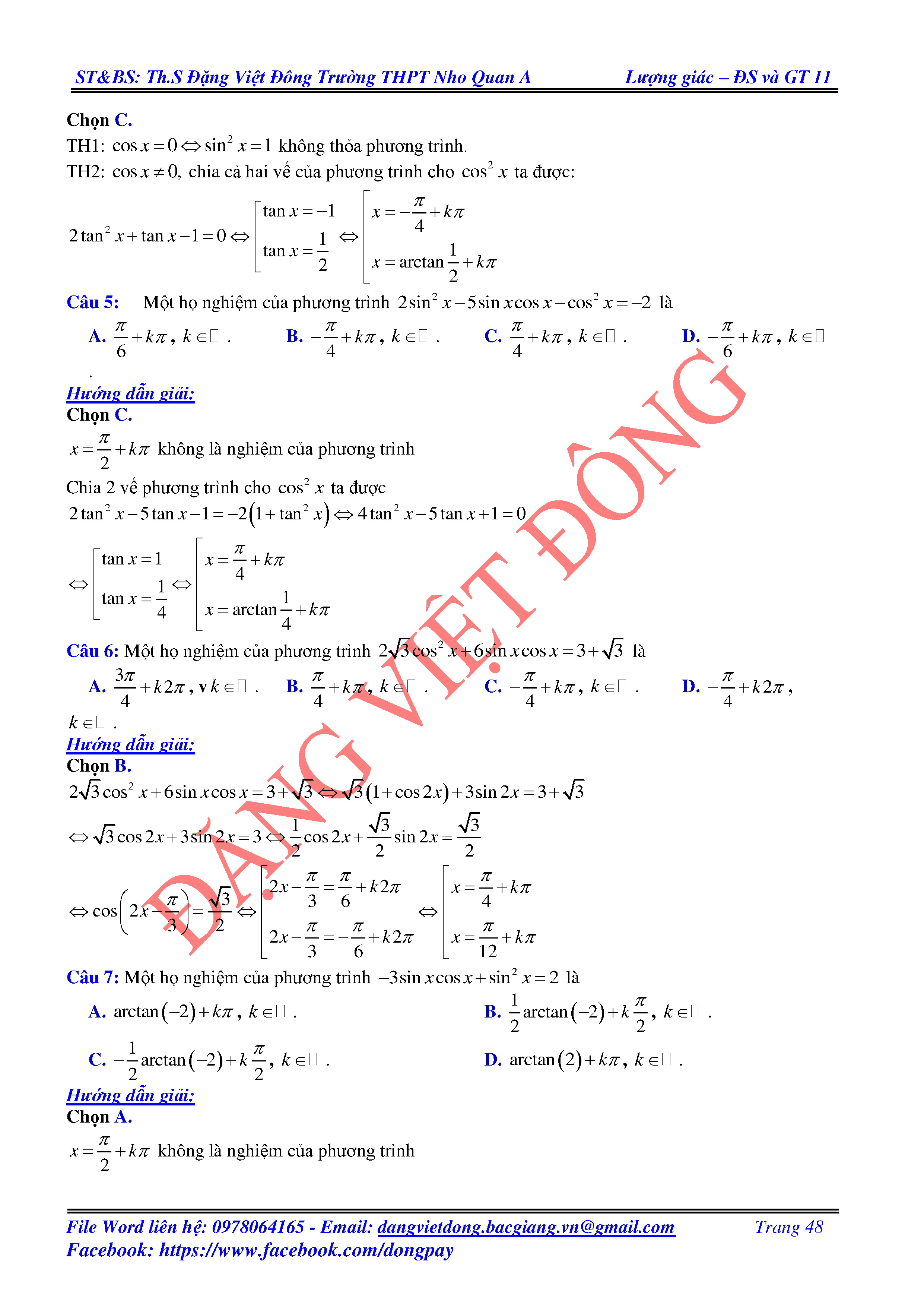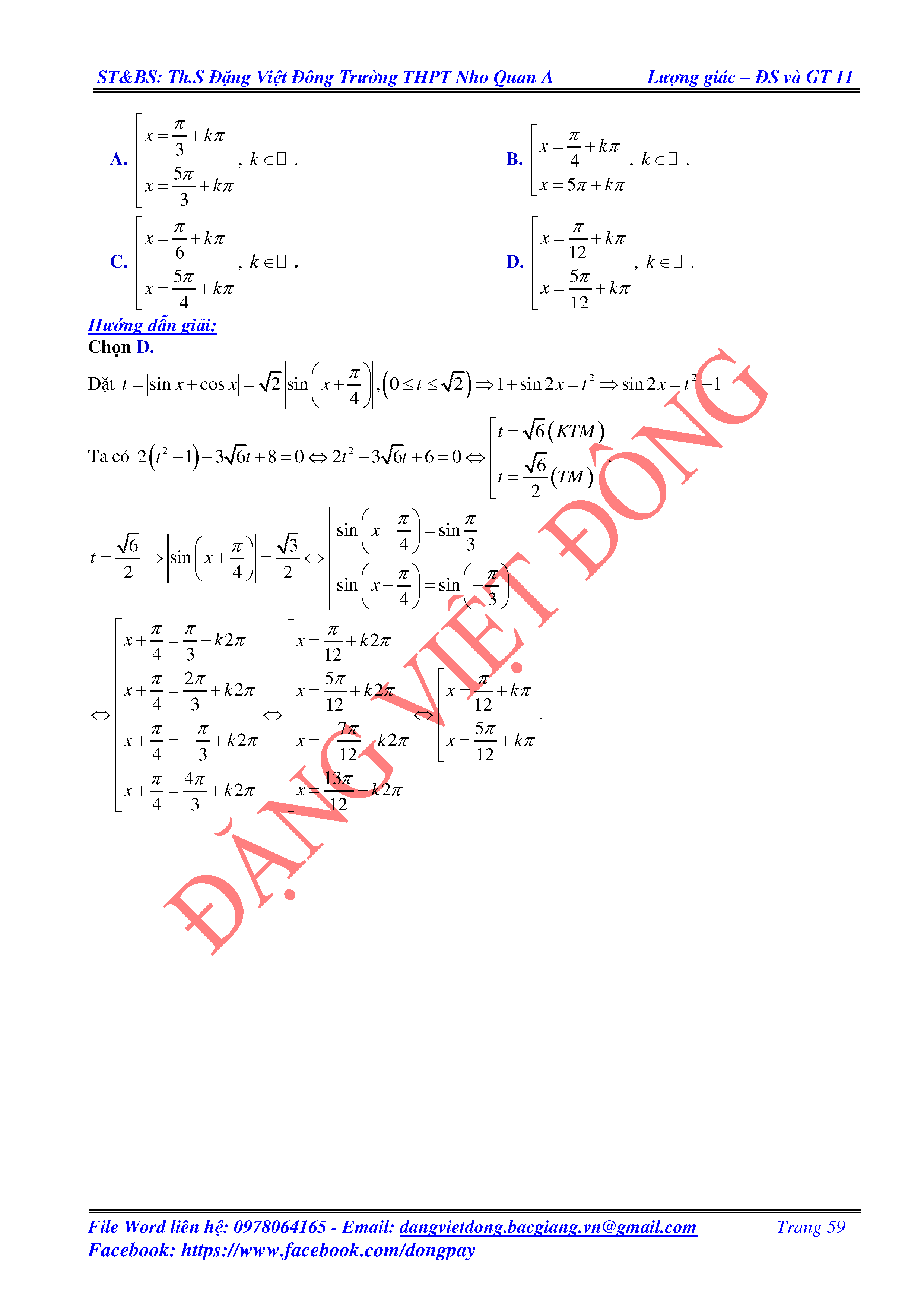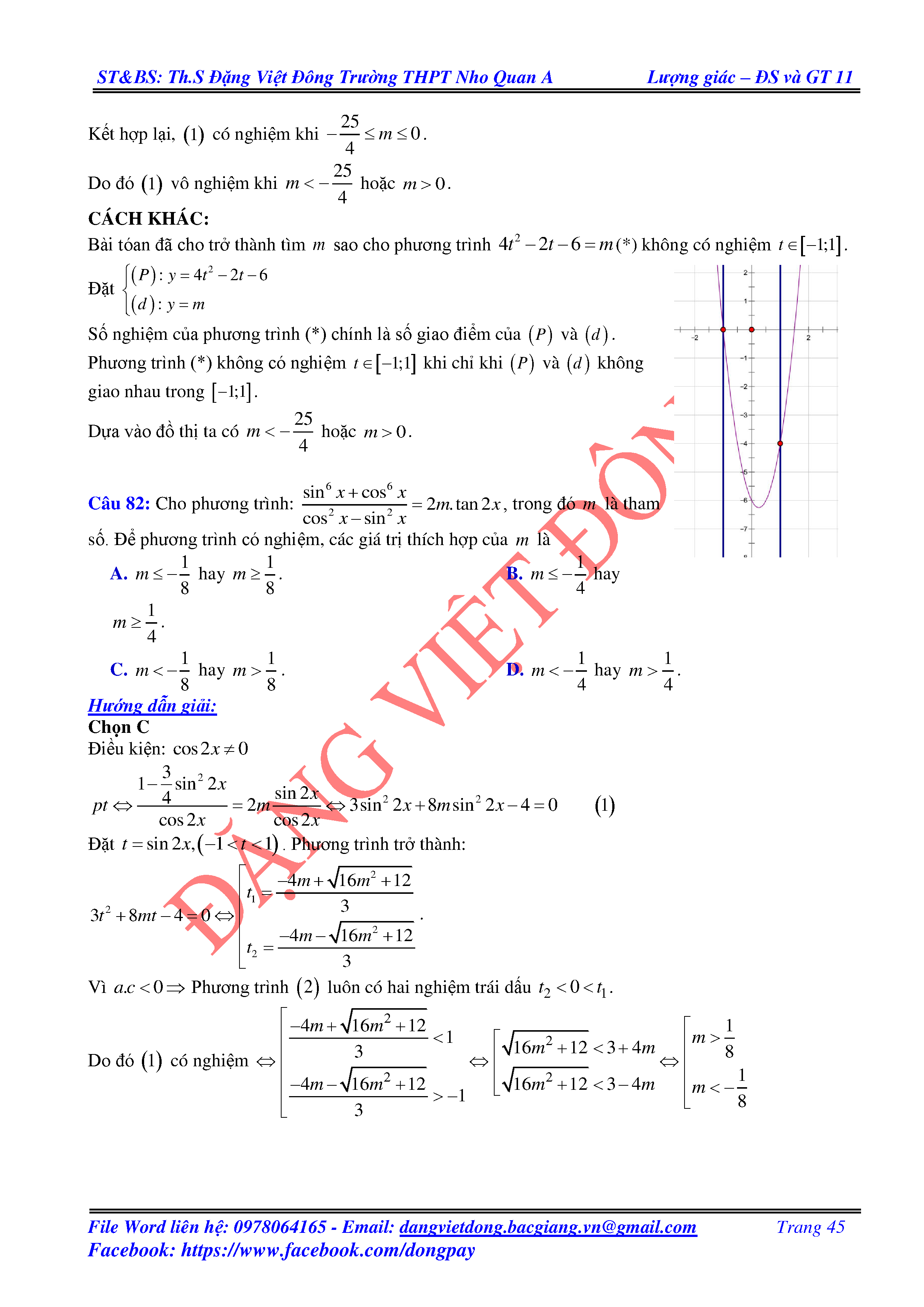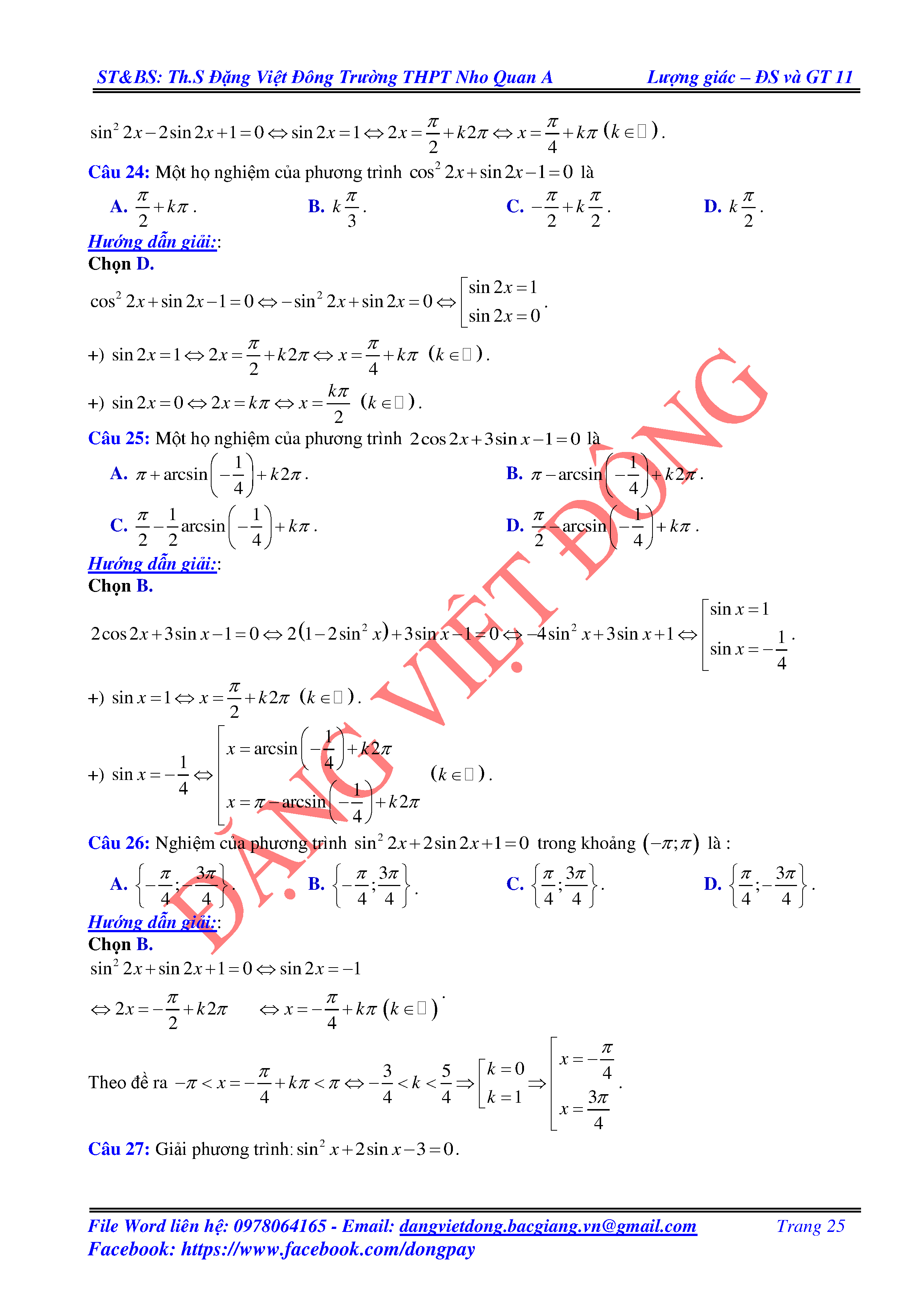 PHƯƠNG TRÌNH BẬC HAI VÀ QUY VỀ BẬC HAI VỚI MỘT HÀM SỐ LƯỢNG GIÁC - ĐẠI SỐ, GIẢI TÍCH 11