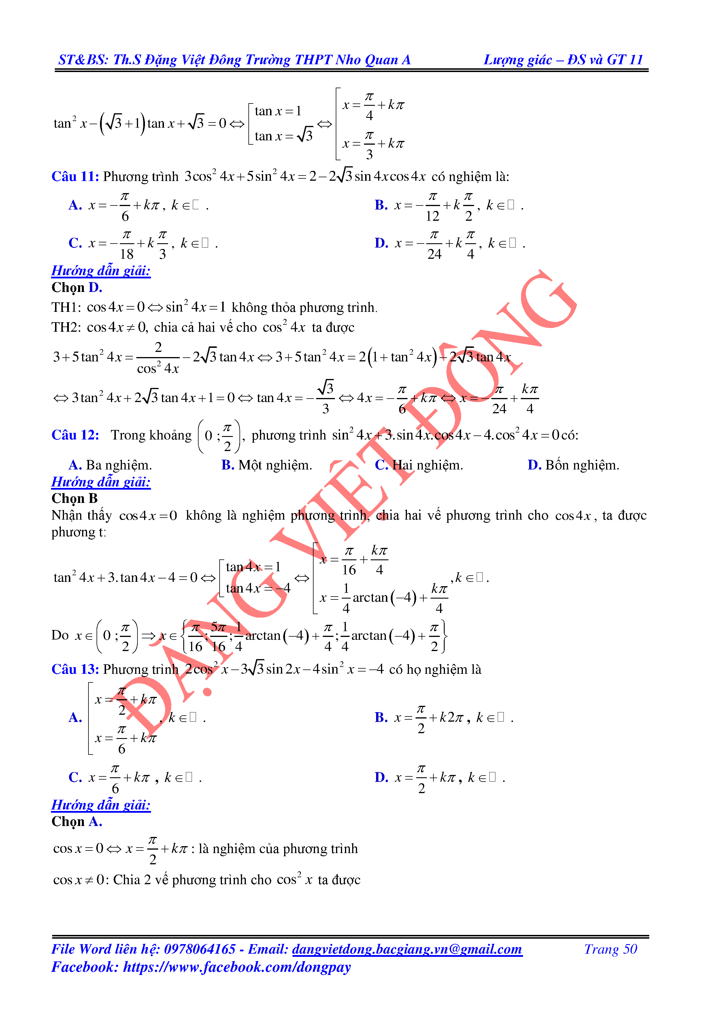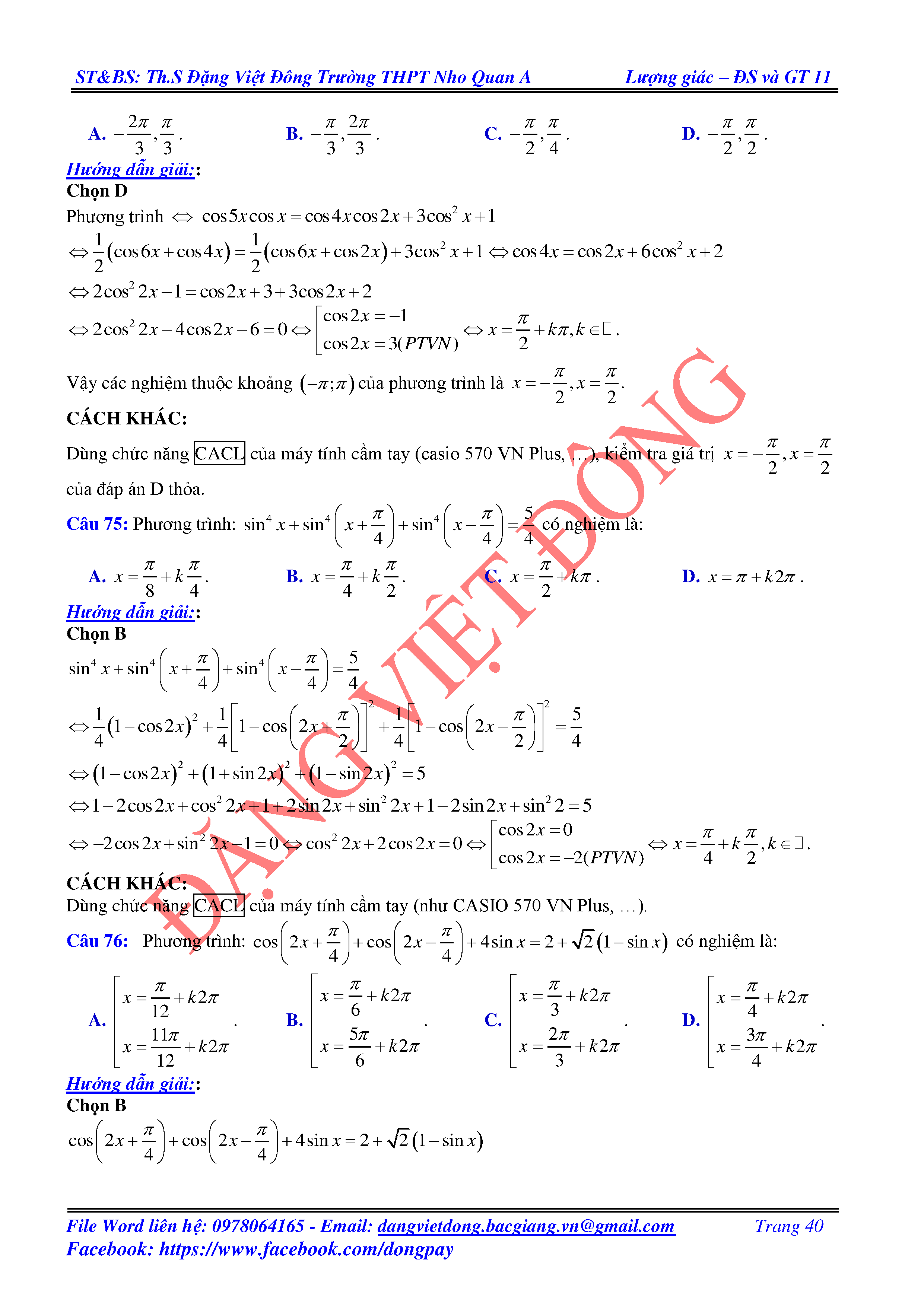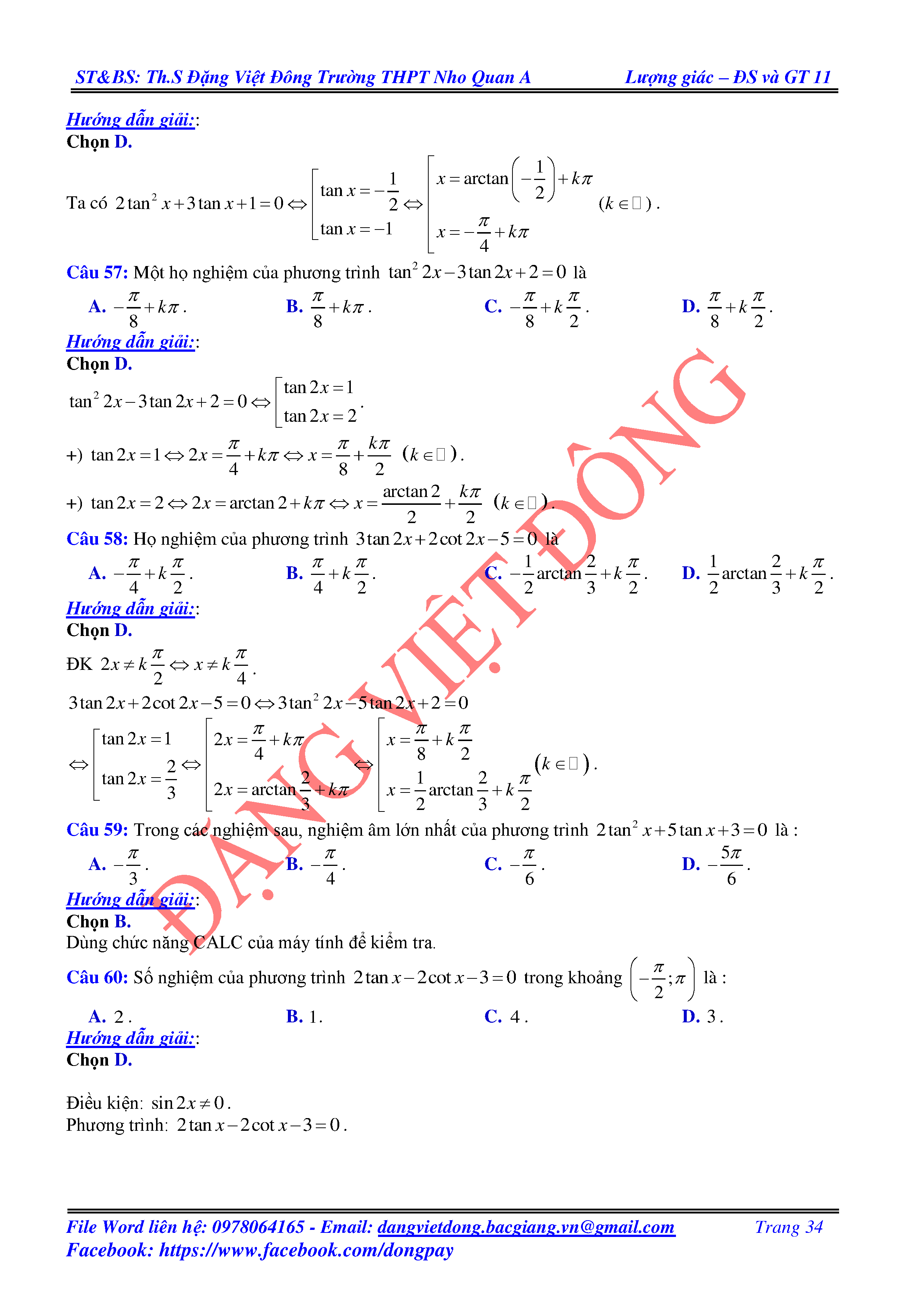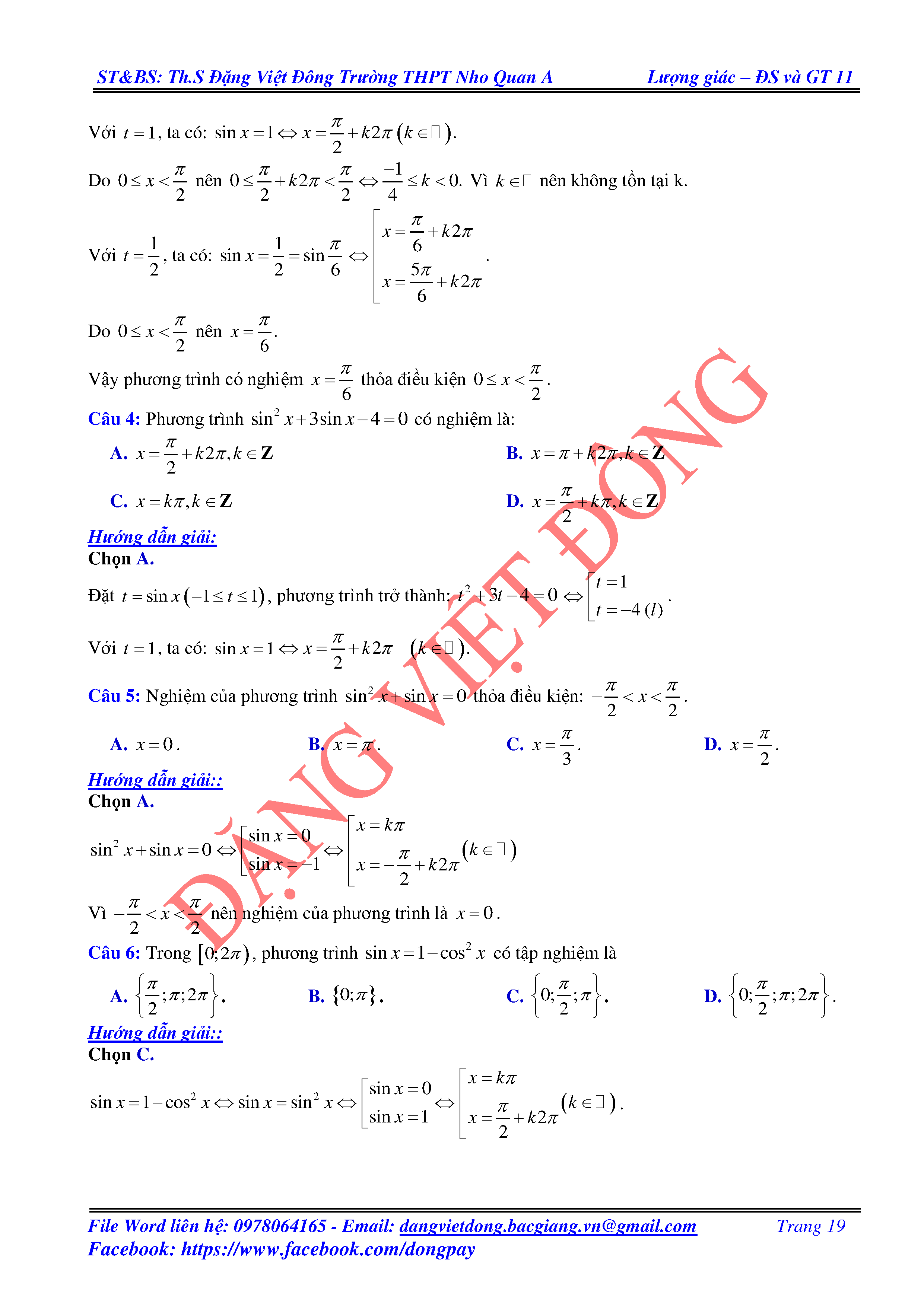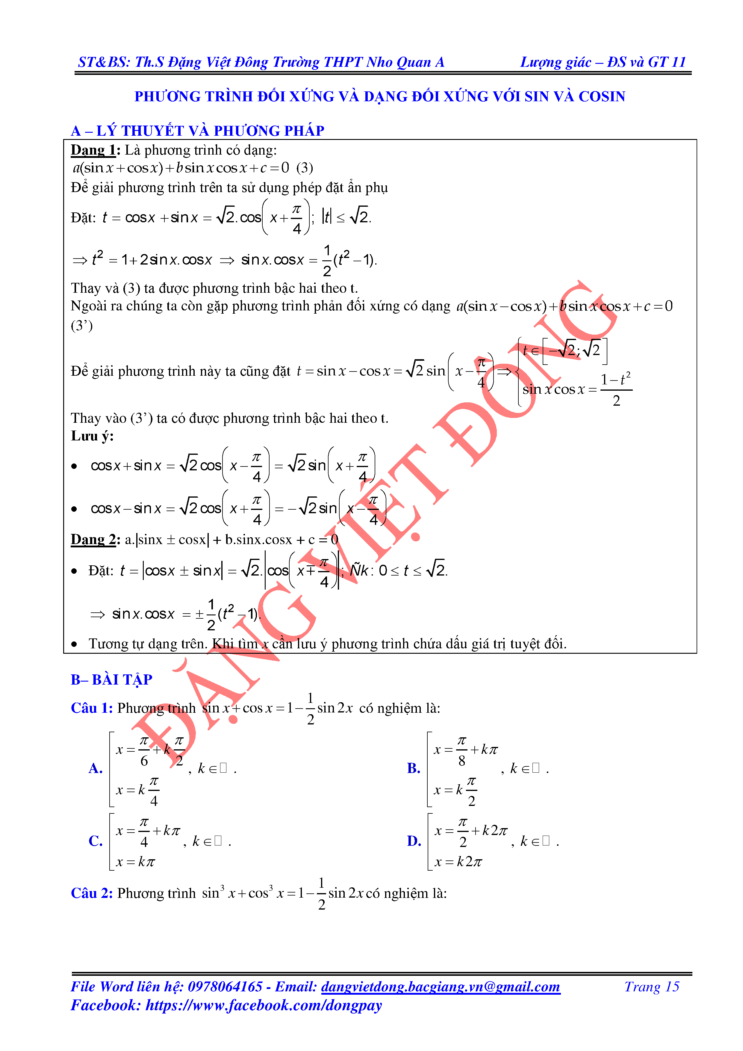 PHƯƠNG TRÌNH BẬC HAI VÀ QUY VỀ BẬC HAI VỚI MỘT HÀM SỐ LƯỢNG GIÁC - ĐẠI SỐ, GIẢI TÍCH 11