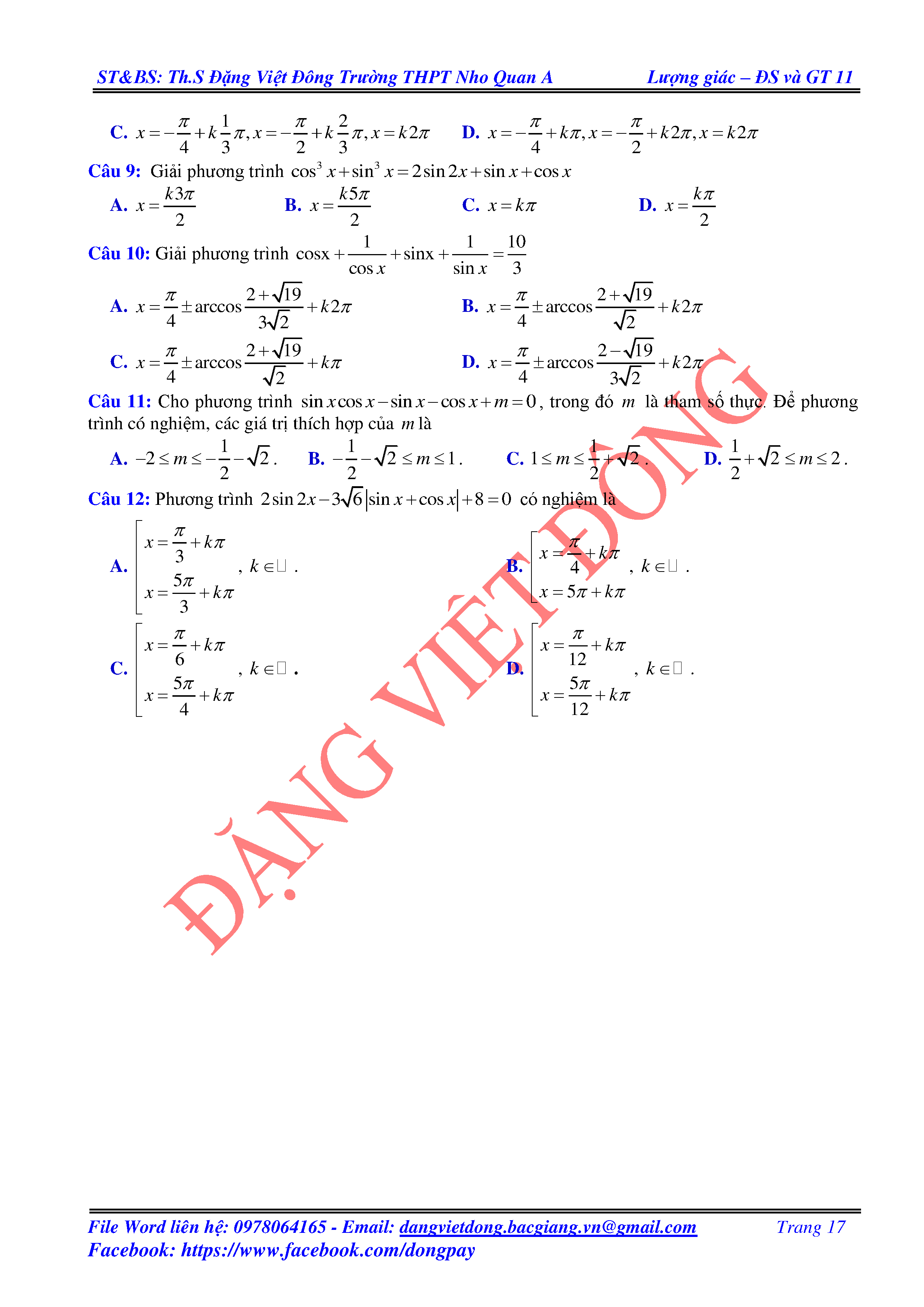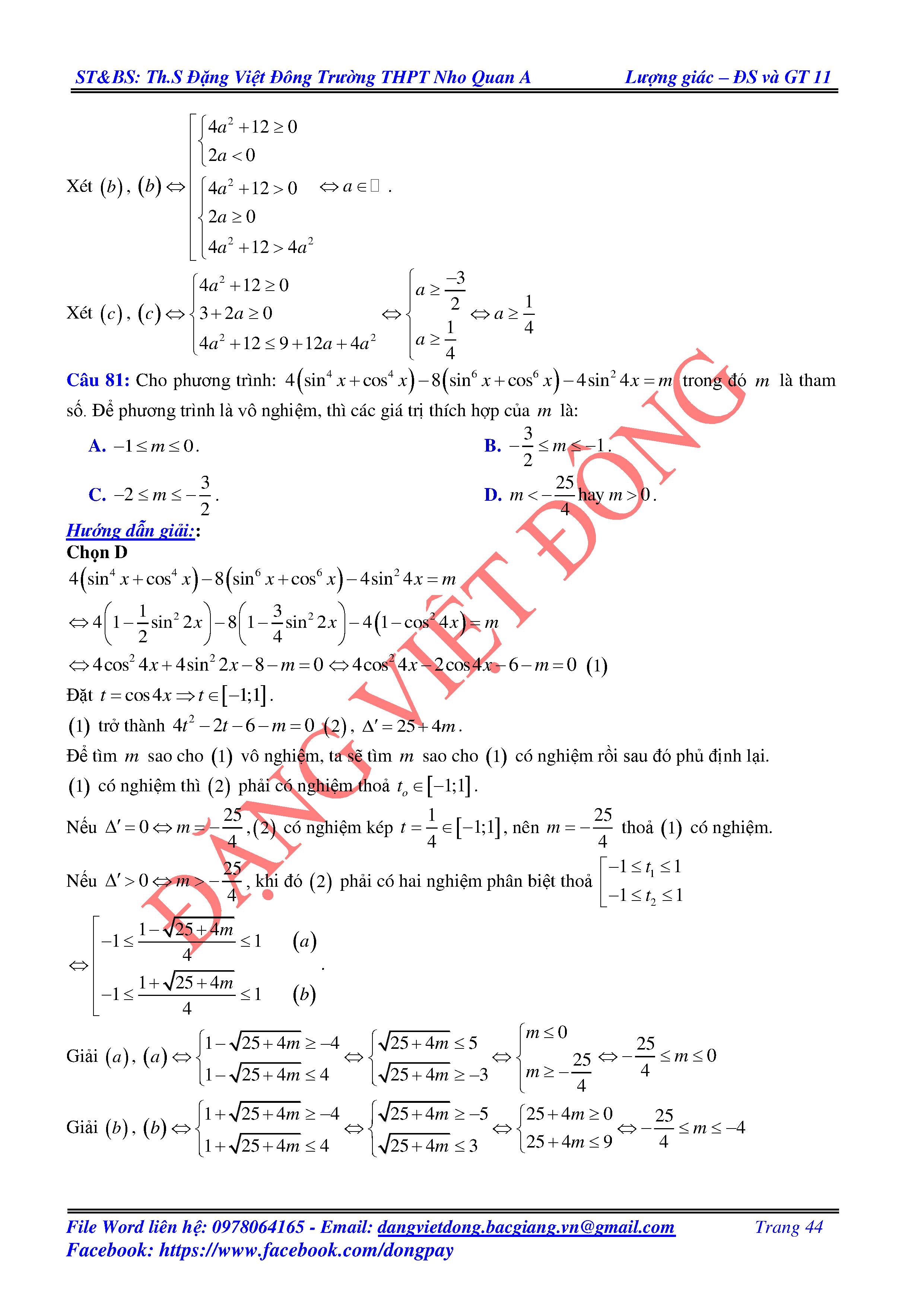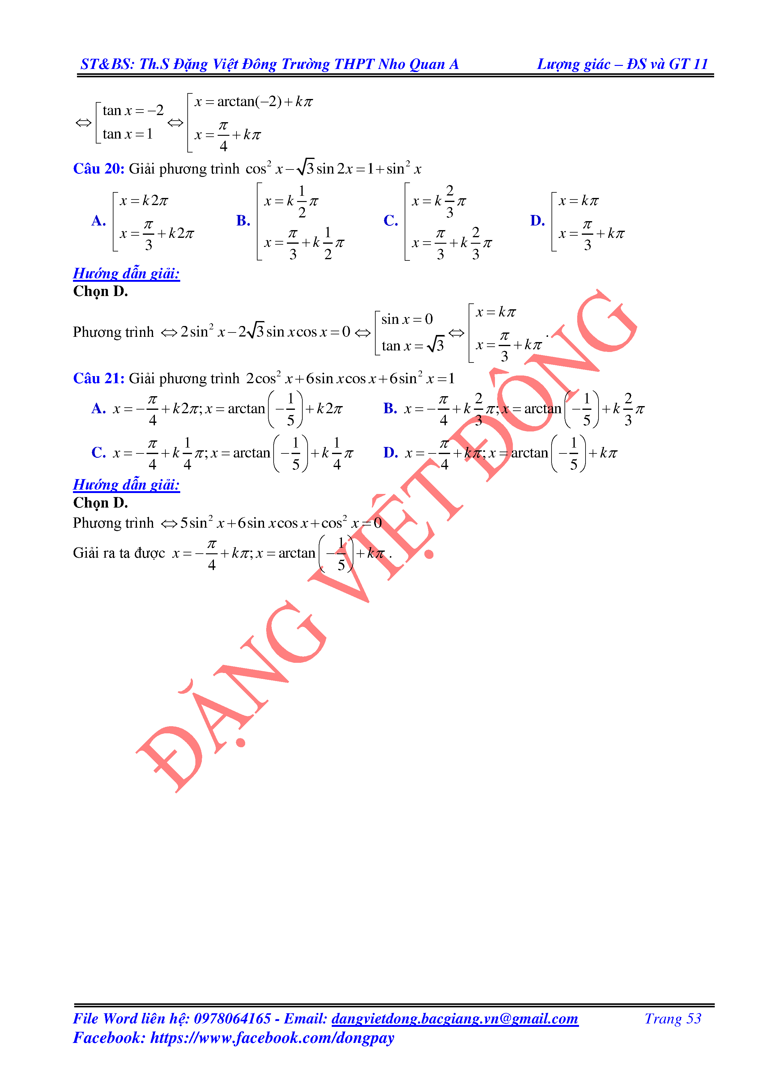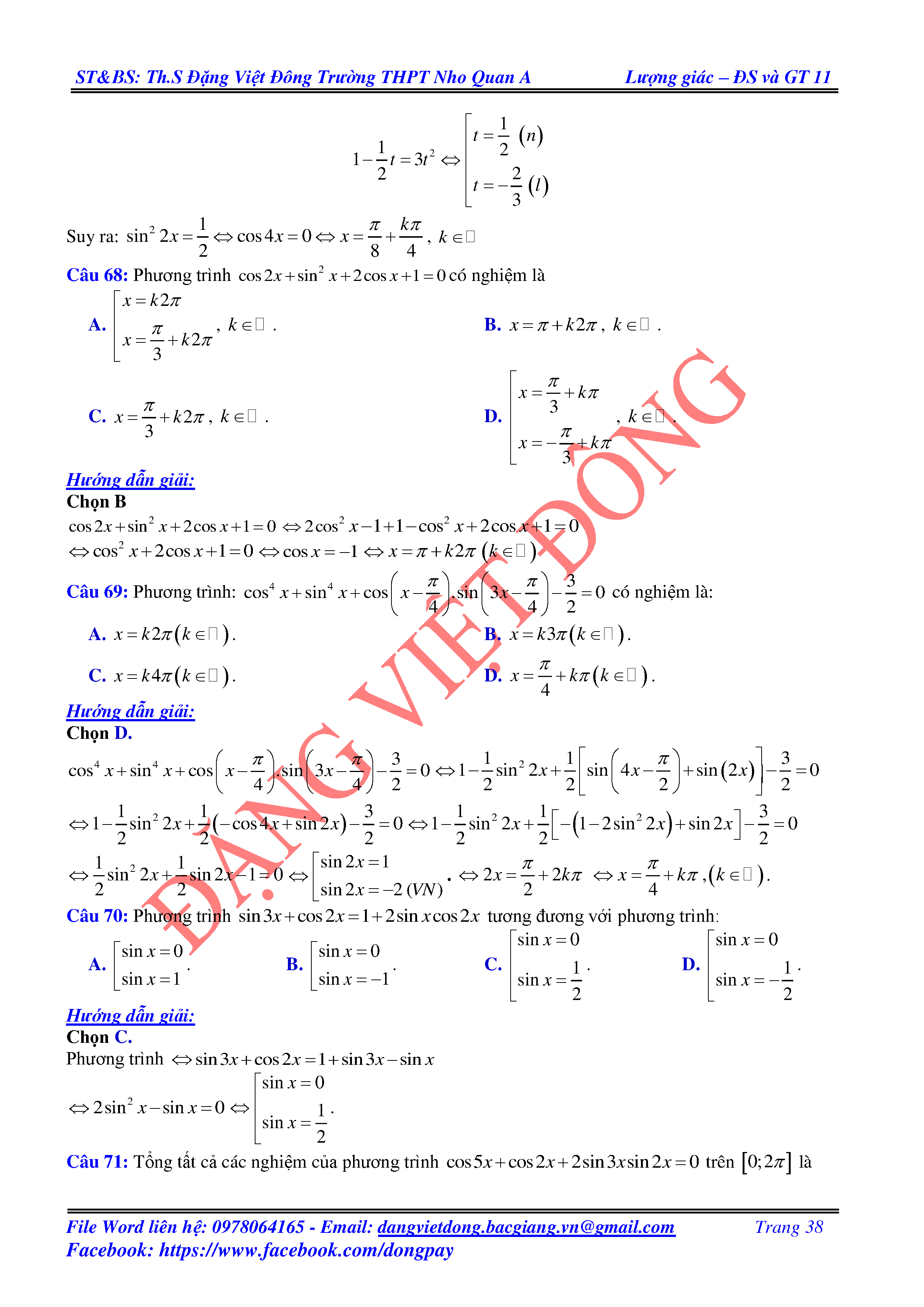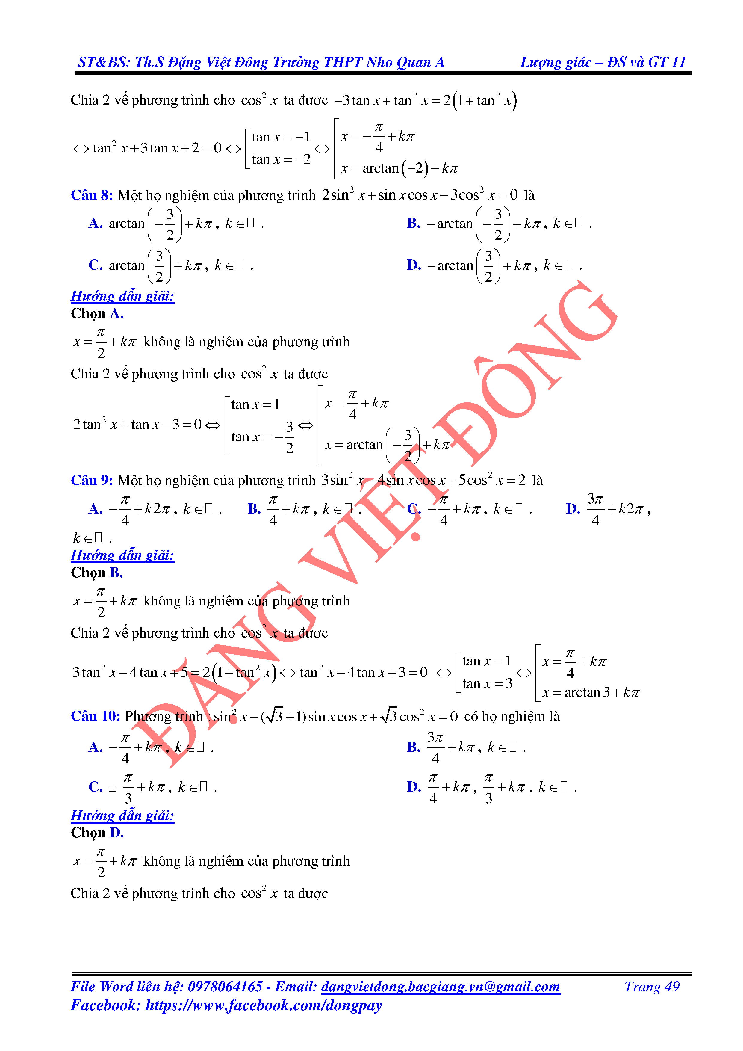 PHƯƠNG TRÌNH BẬC HAI VÀ QUY VỀ BẬC HAI VỚI MỘT HÀM SỐ LƯỢNG GIÁC - ĐẠI SỐ, GIẢI TÍCH 11