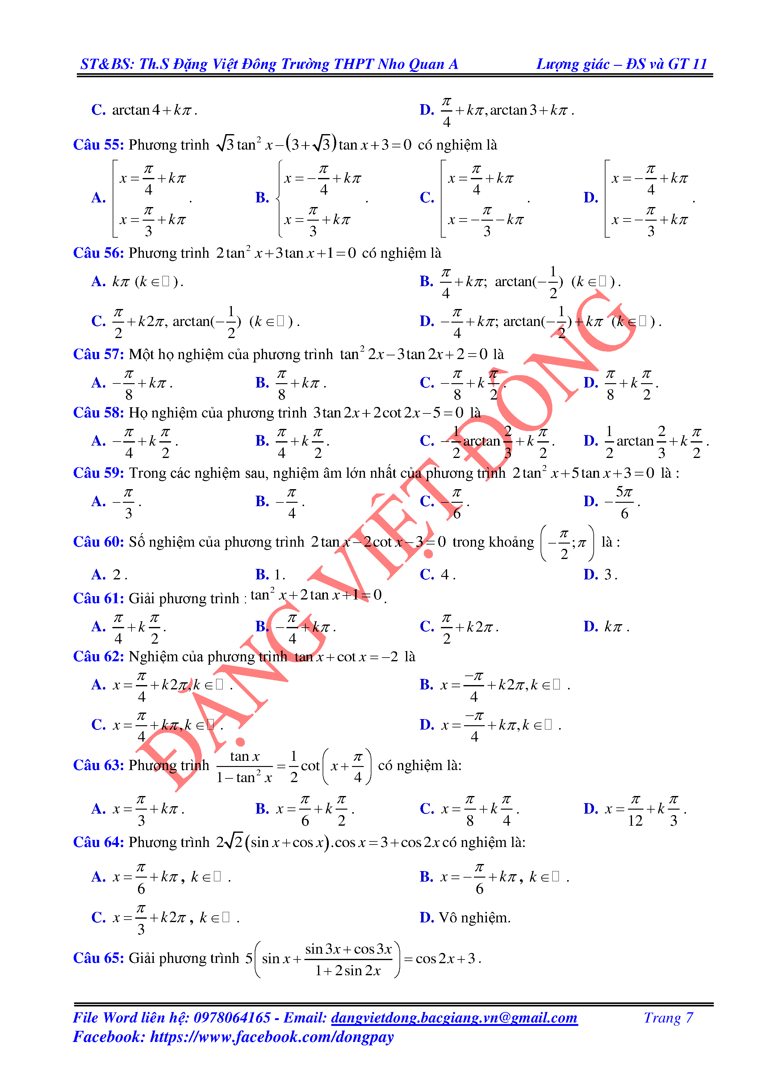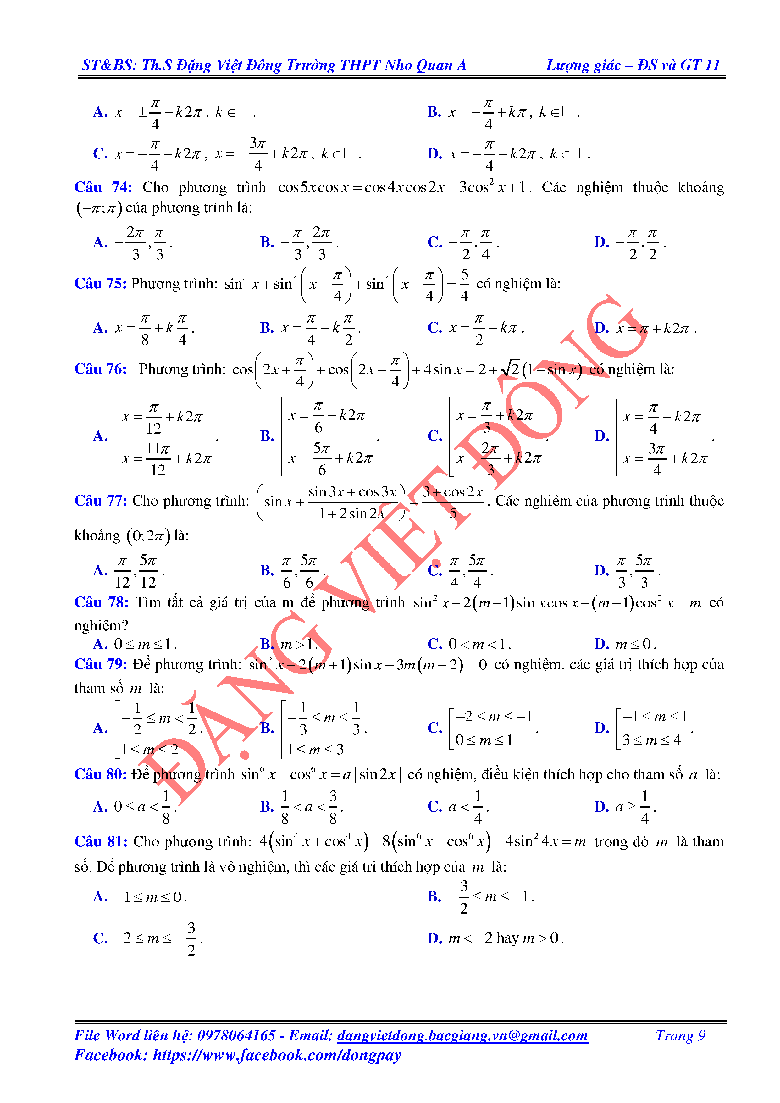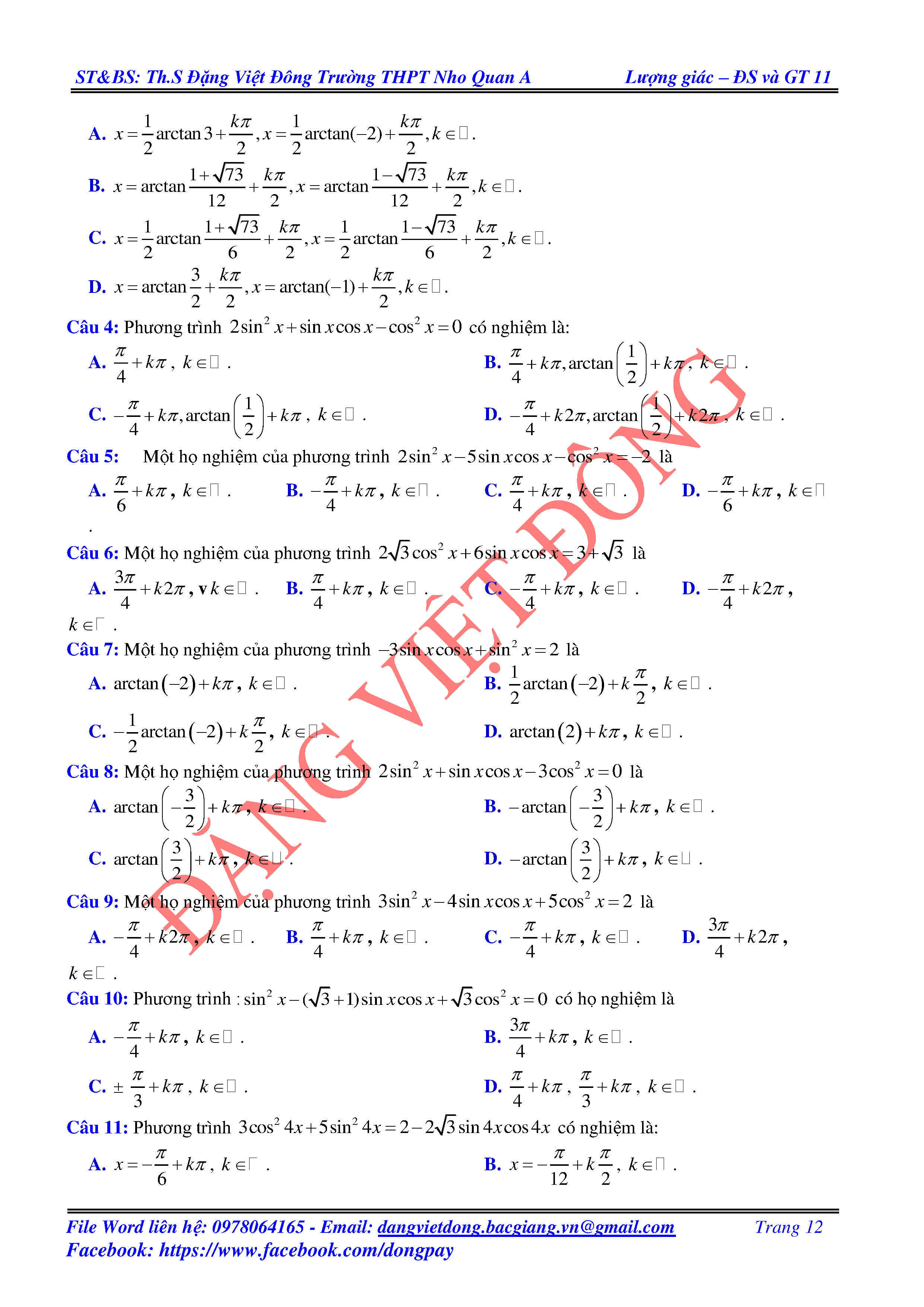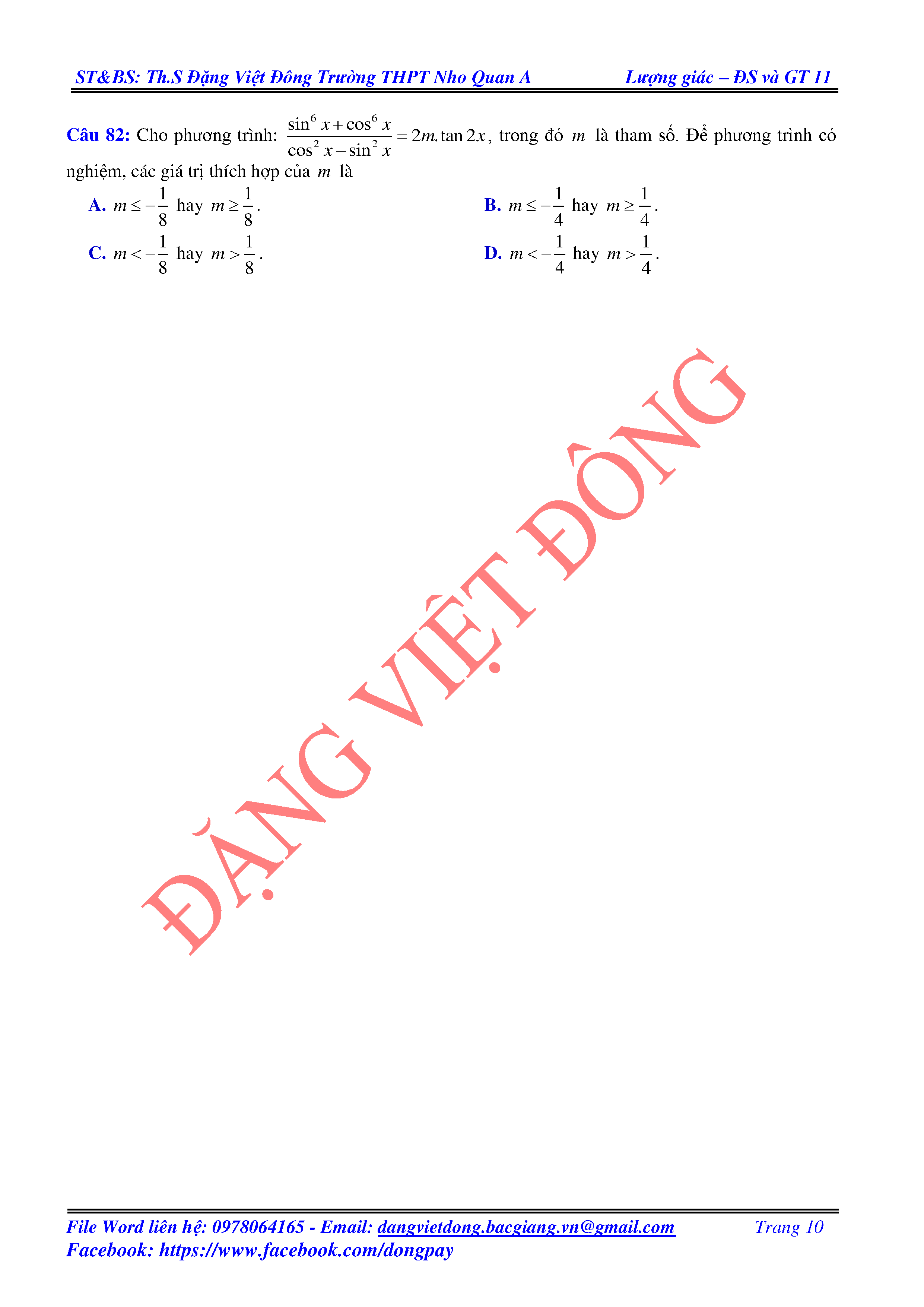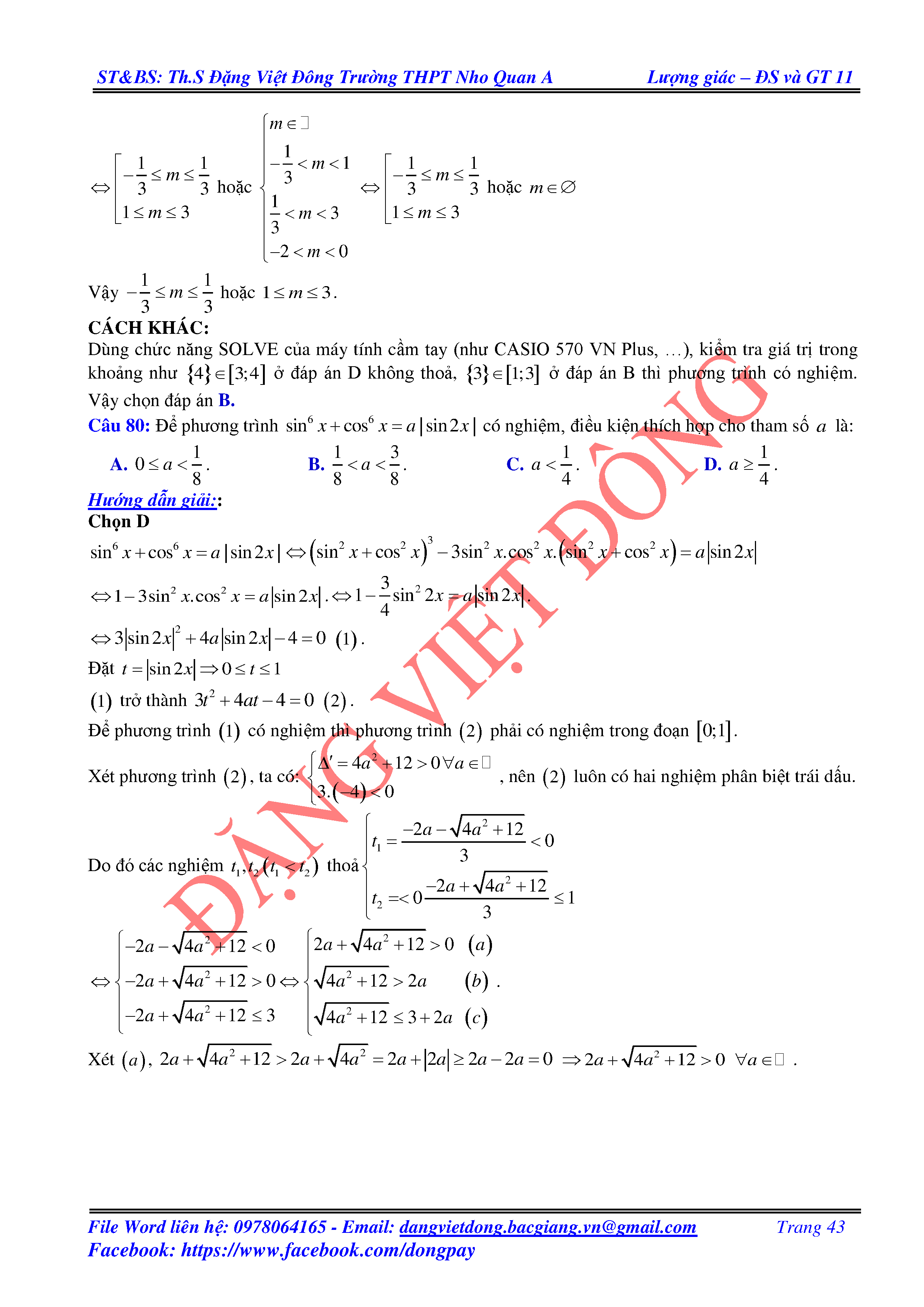 PHƯƠNG TRÌNH BẬC HAI VÀ QUY VỀ BẬC HAI VỚI MỘT HÀM SỐ LƯỢNG GIÁC - ĐẠI SỐ, GIẢI TÍCH 11
