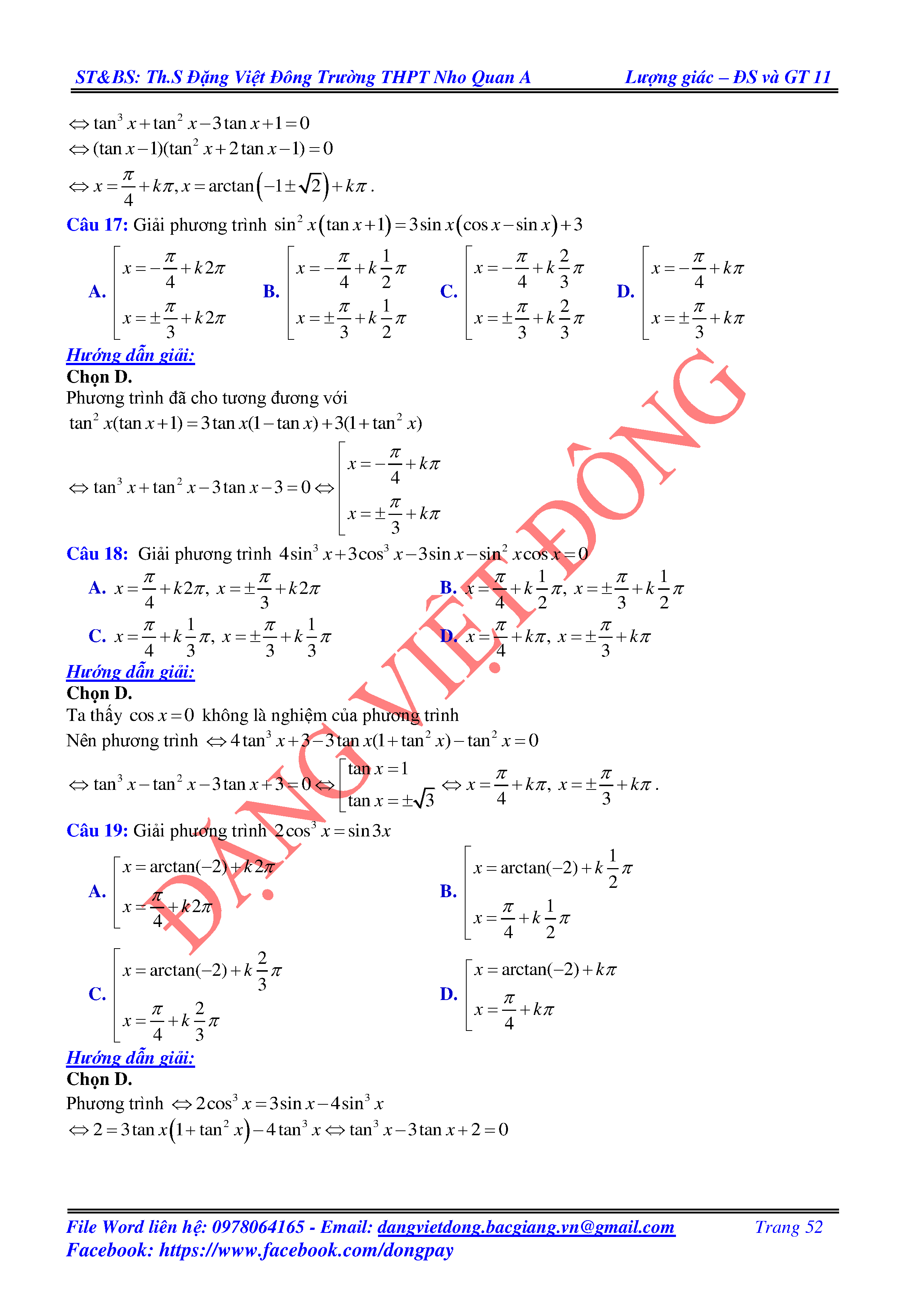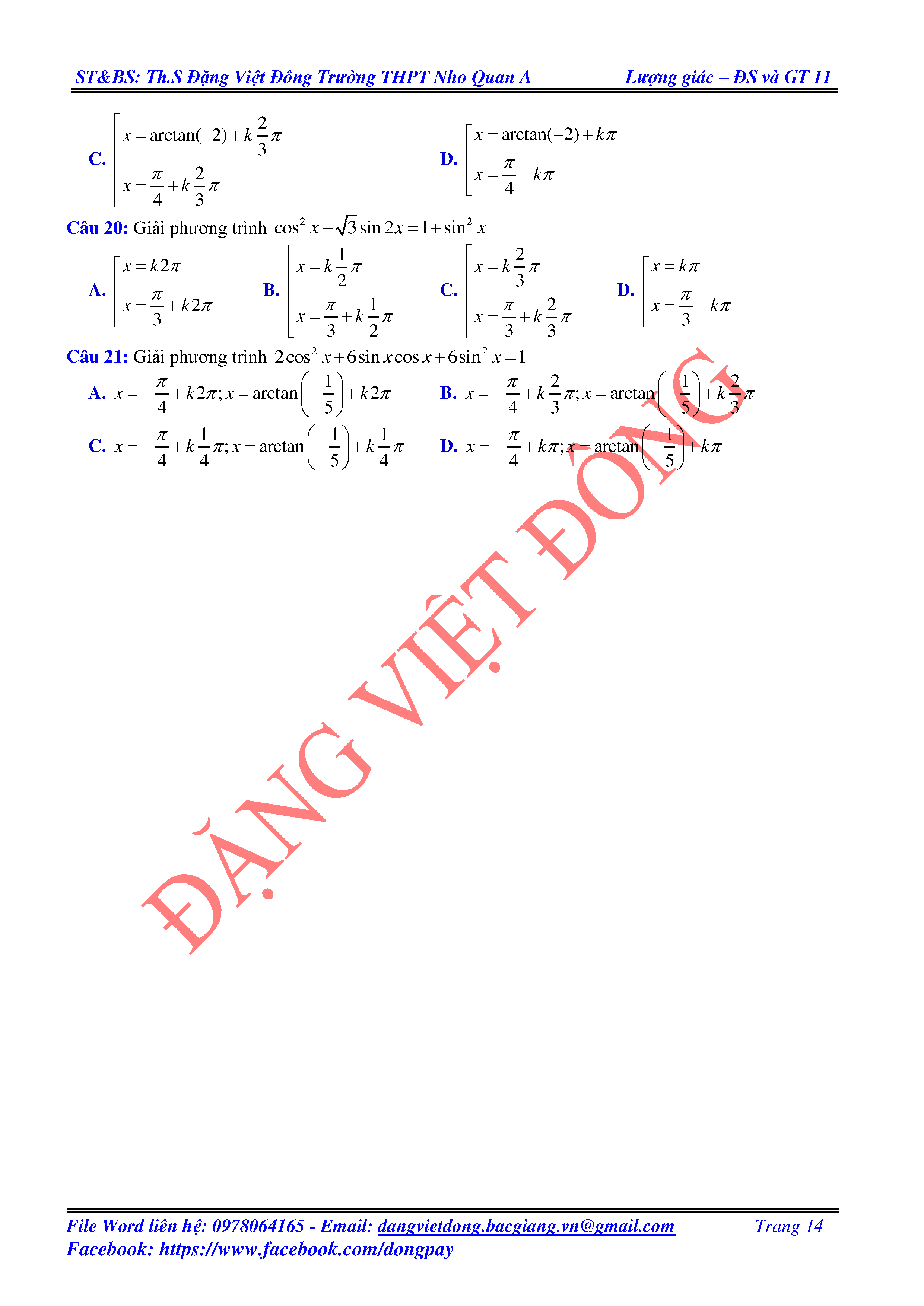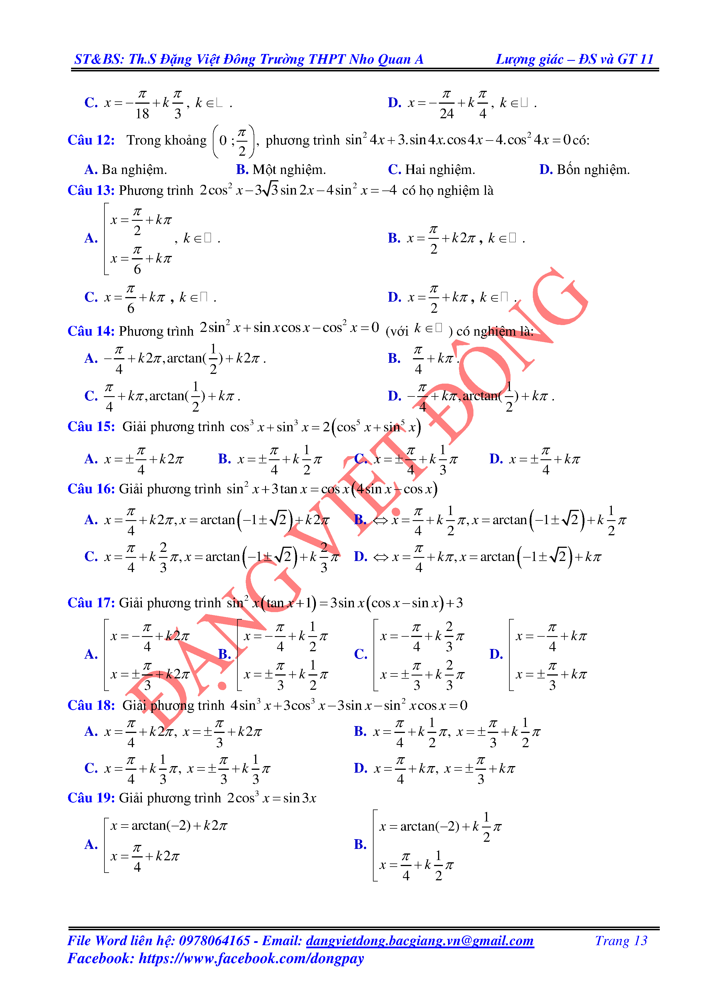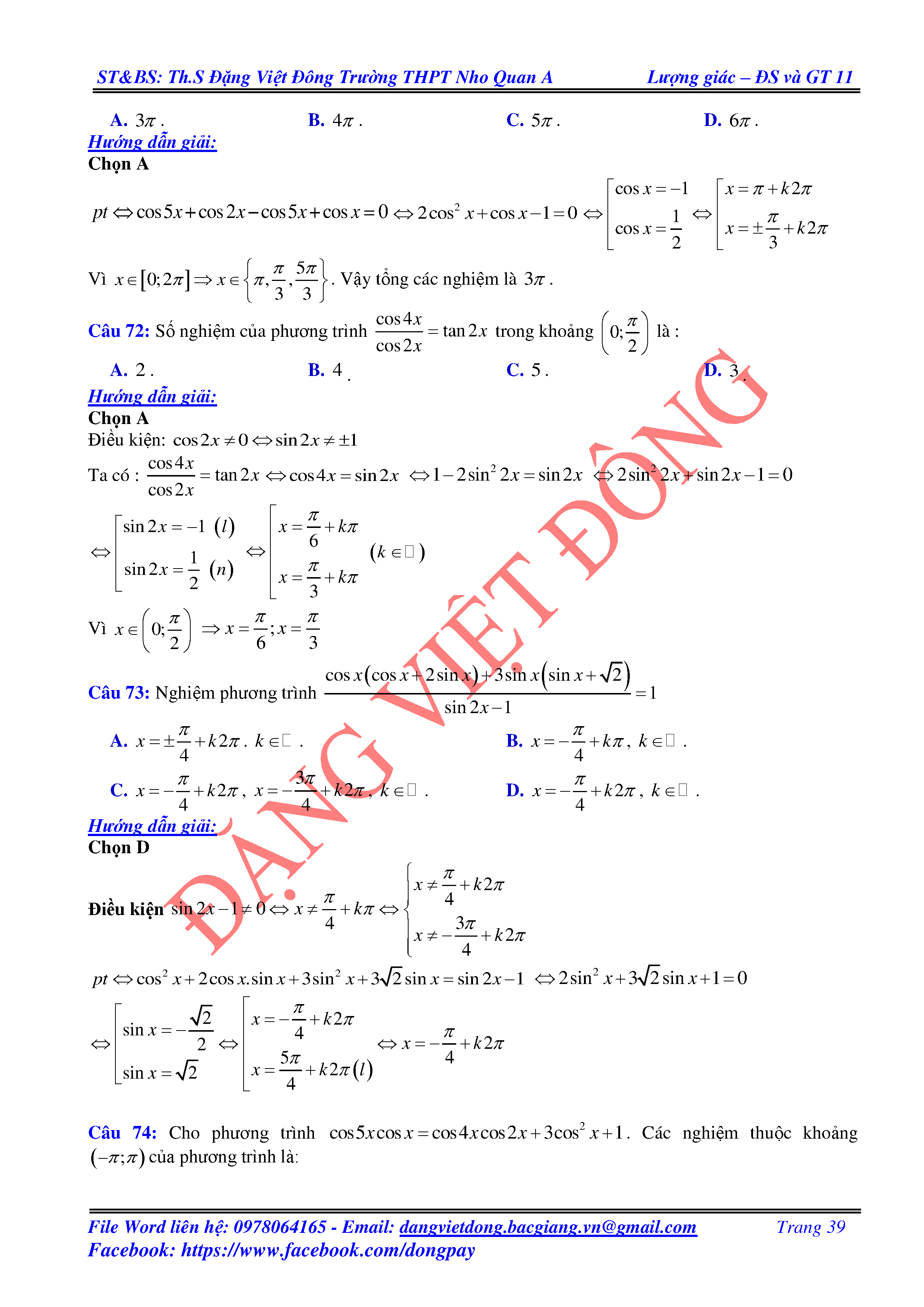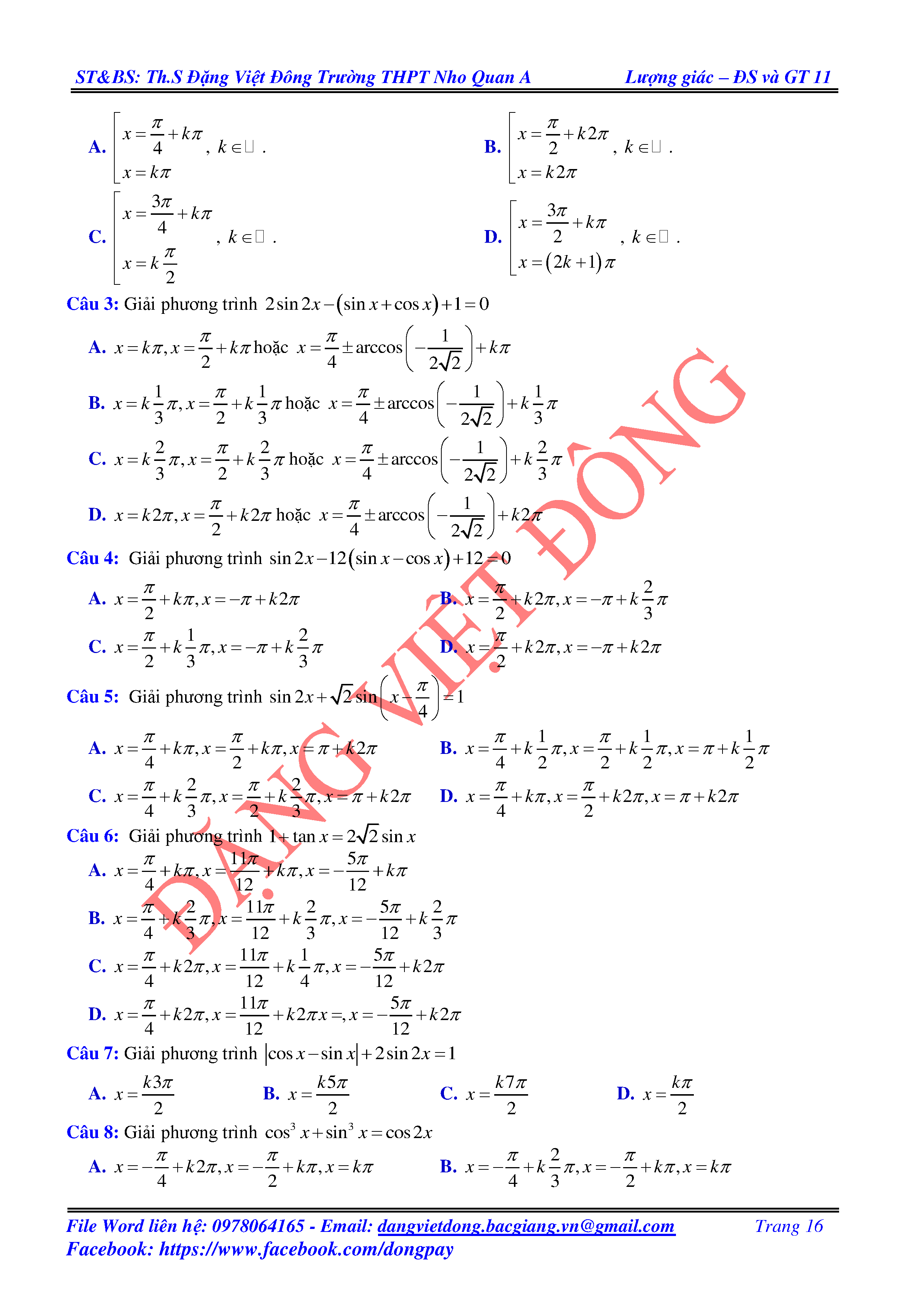 PHƯƠNG TRÌNH BẬC HAI VÀ QUY VỀ BẬC HAI VỚI MỘT HÀM SỐ LƯỢNG GIÁC - ĐẠI SỐ, GIẢI TÍCH 11
