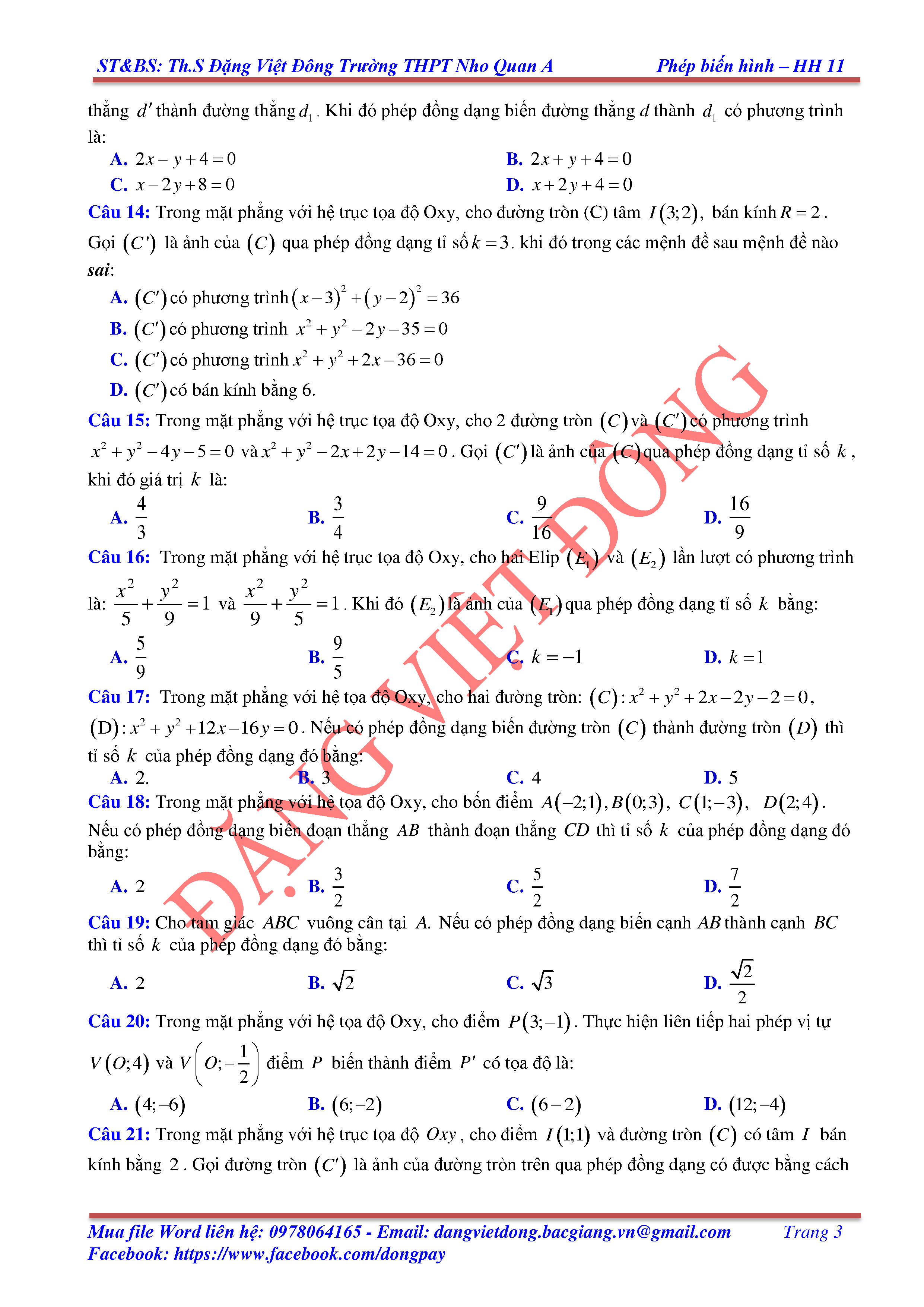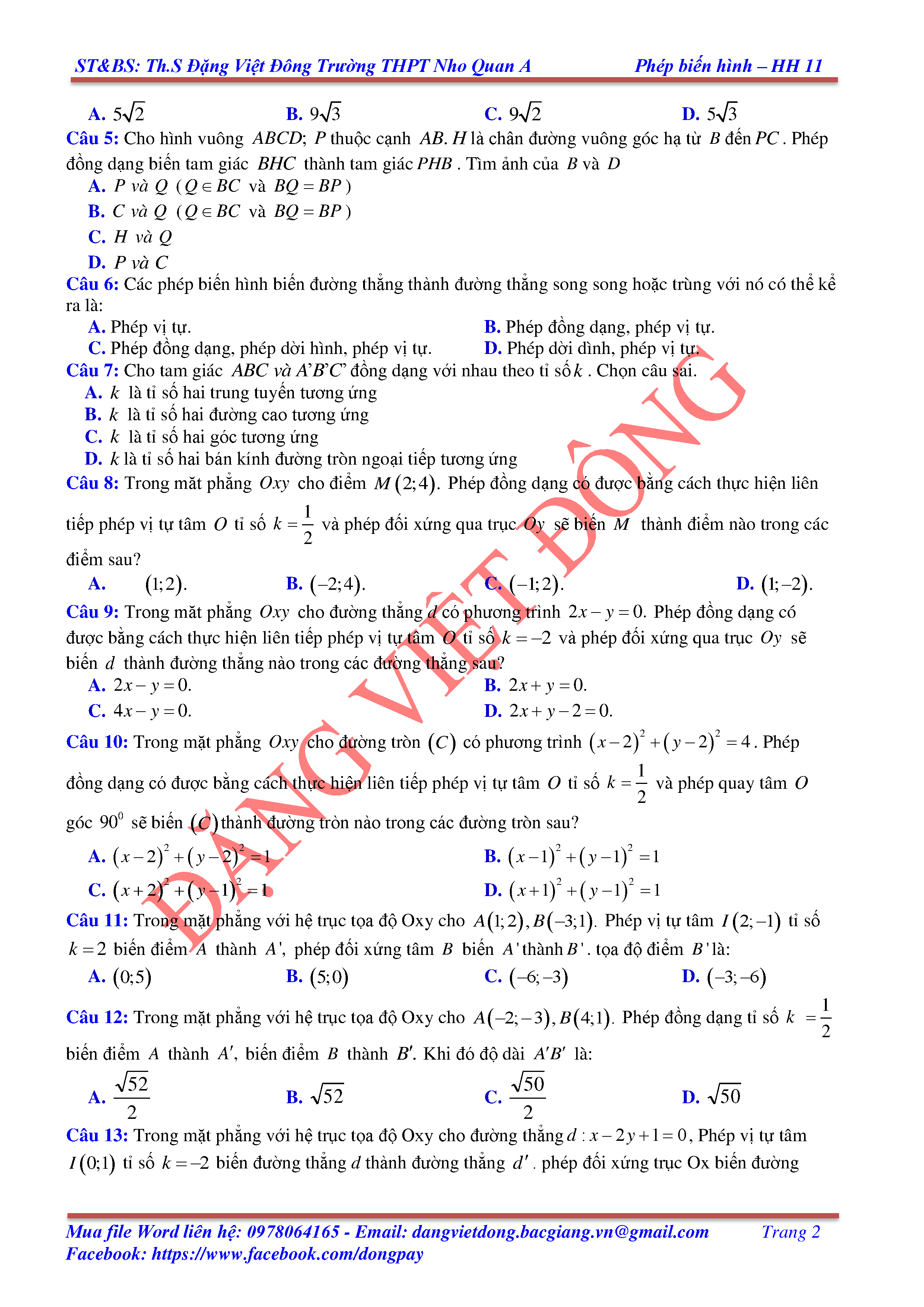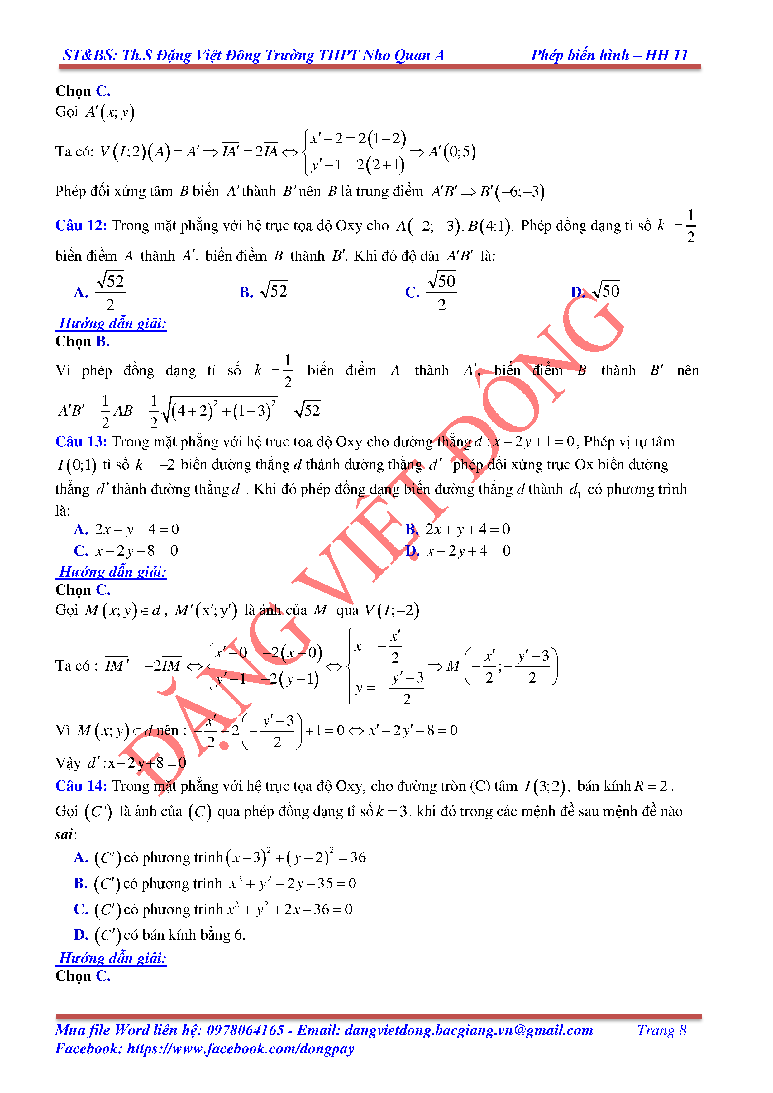PHÉP ĐỒNG DẠNG - HÌNH HỌC 11
