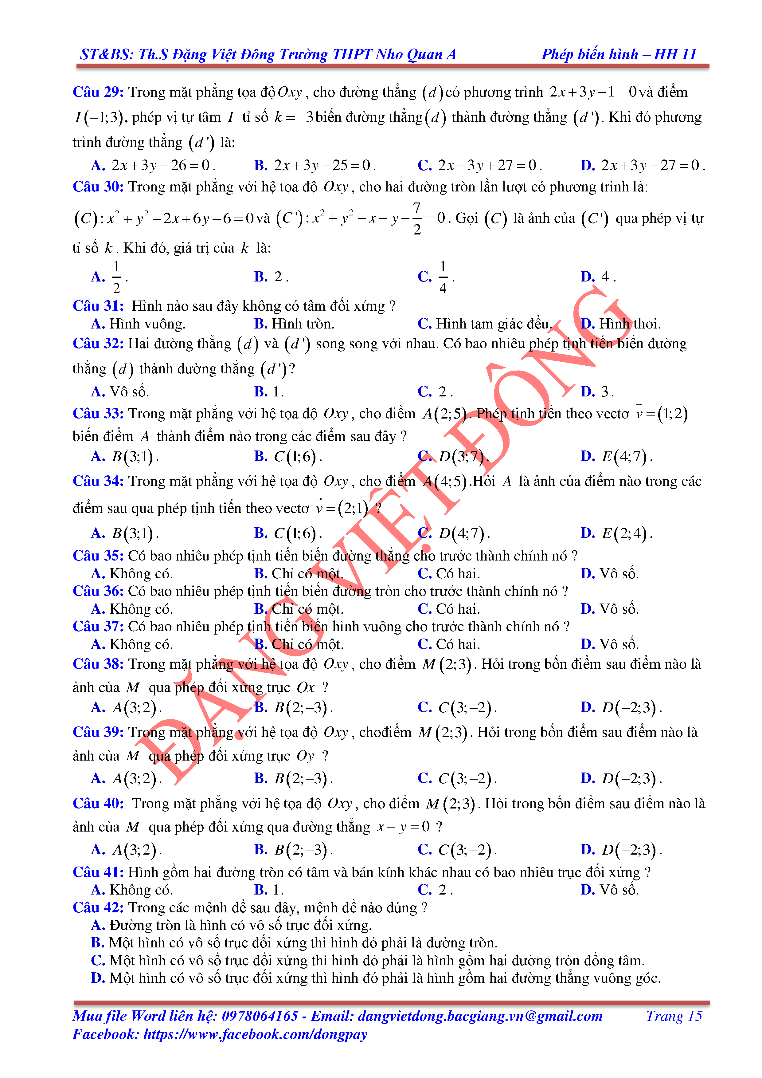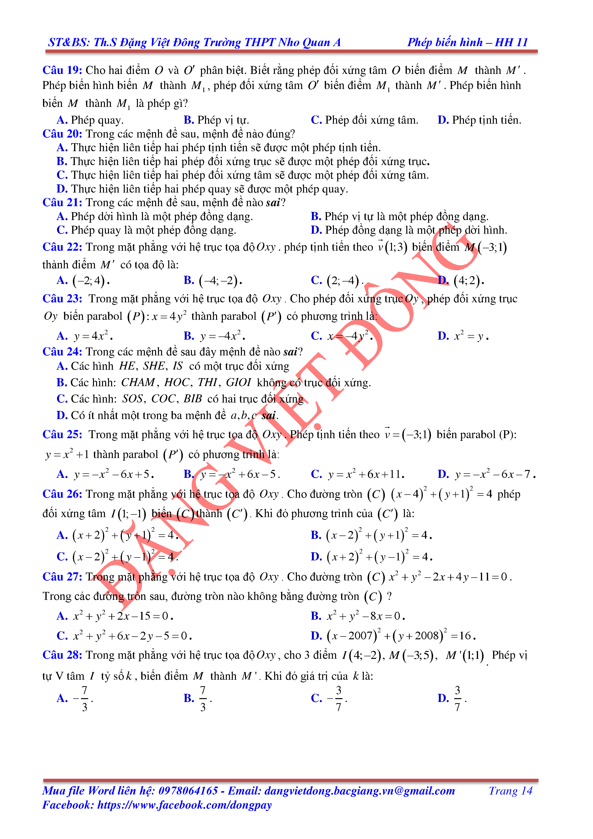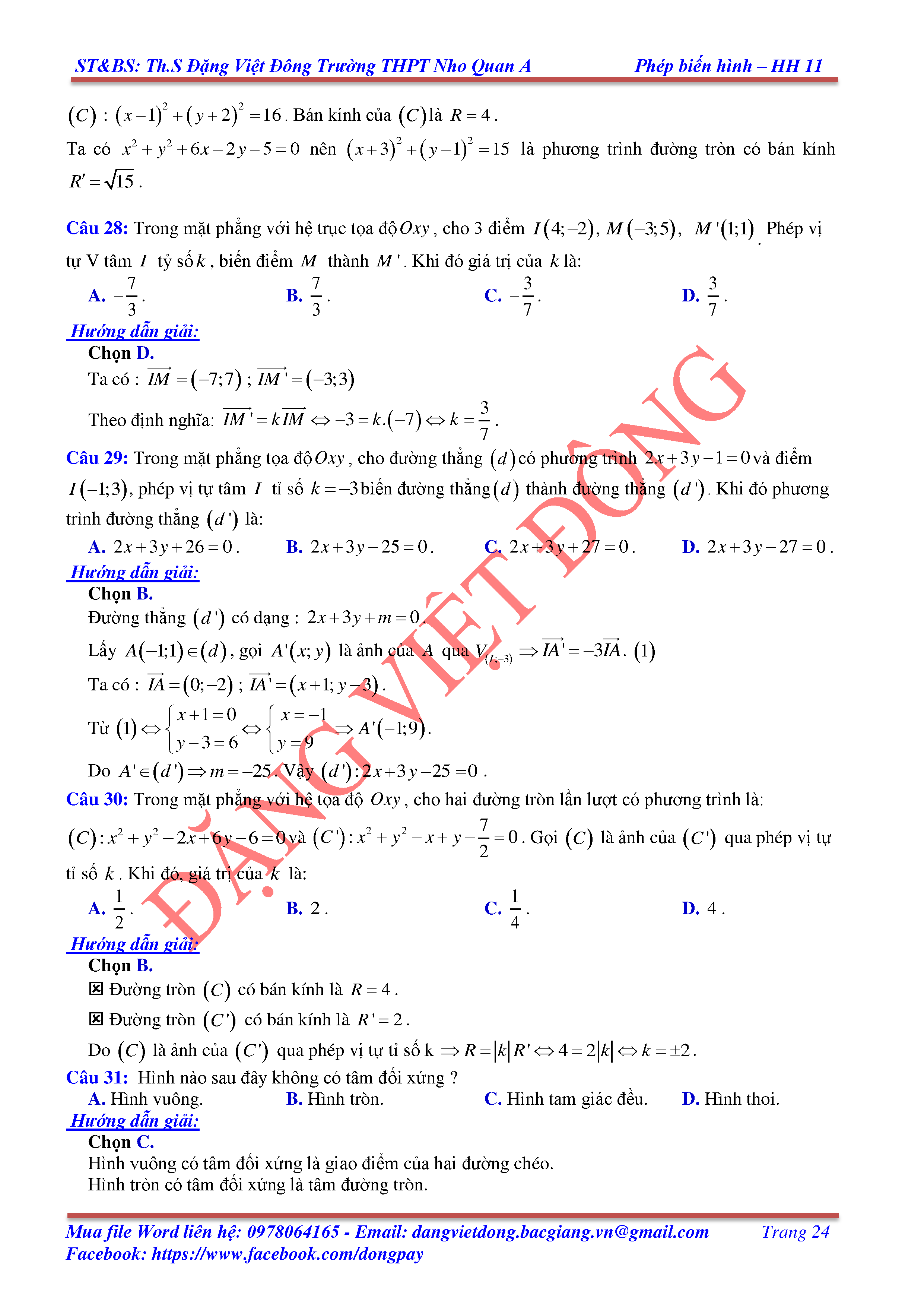 PHÉP ĐỒNG DẠNG - HÌNH HỌC 11