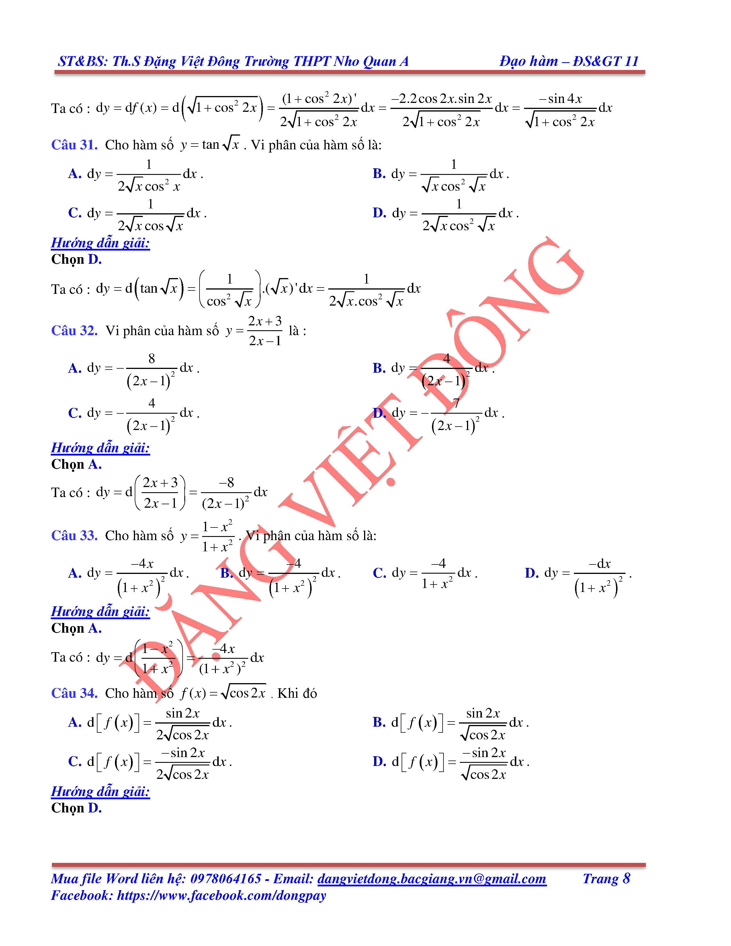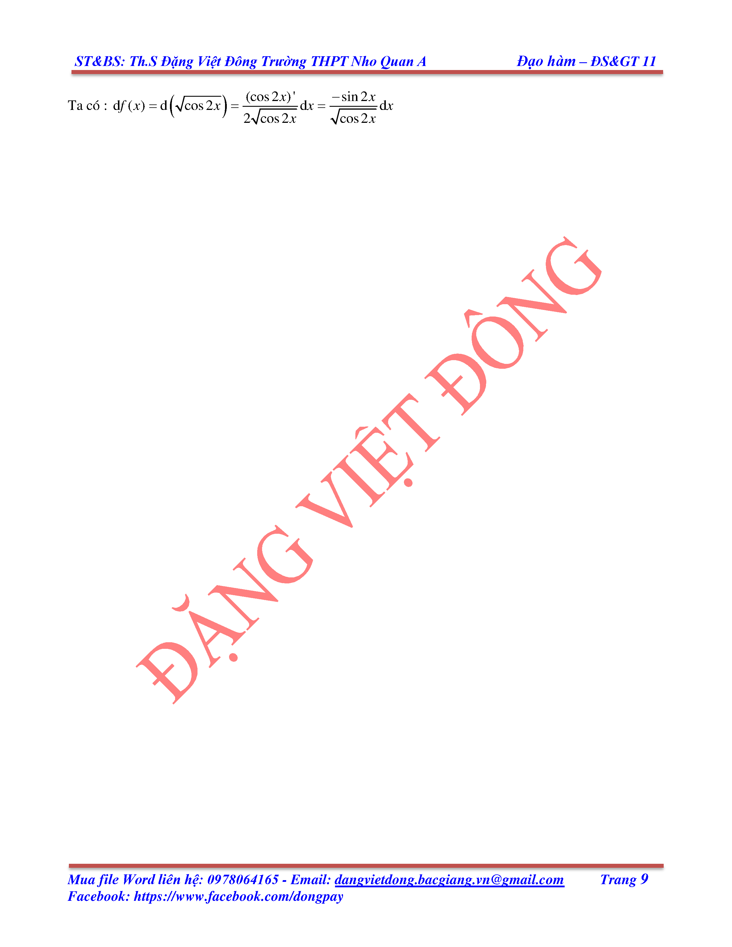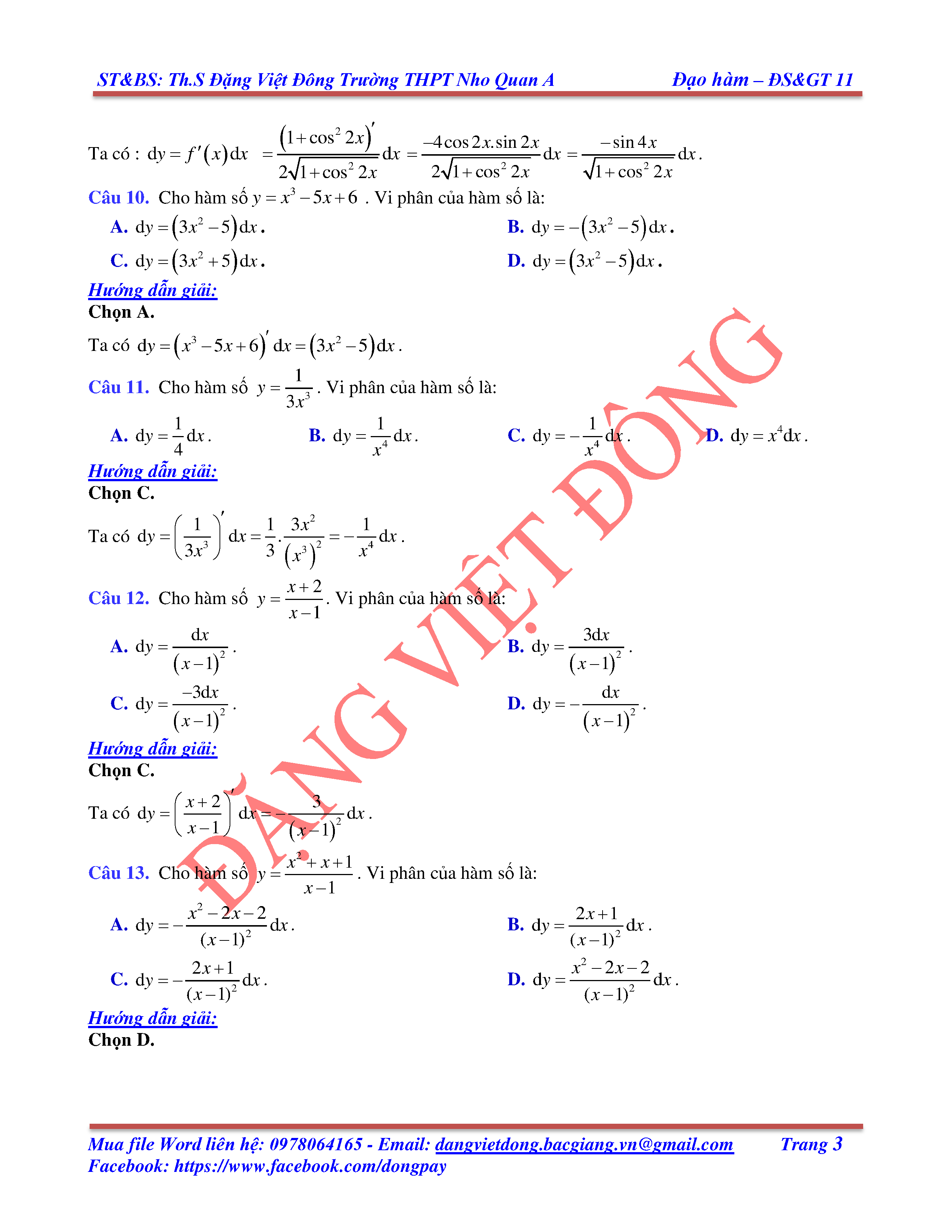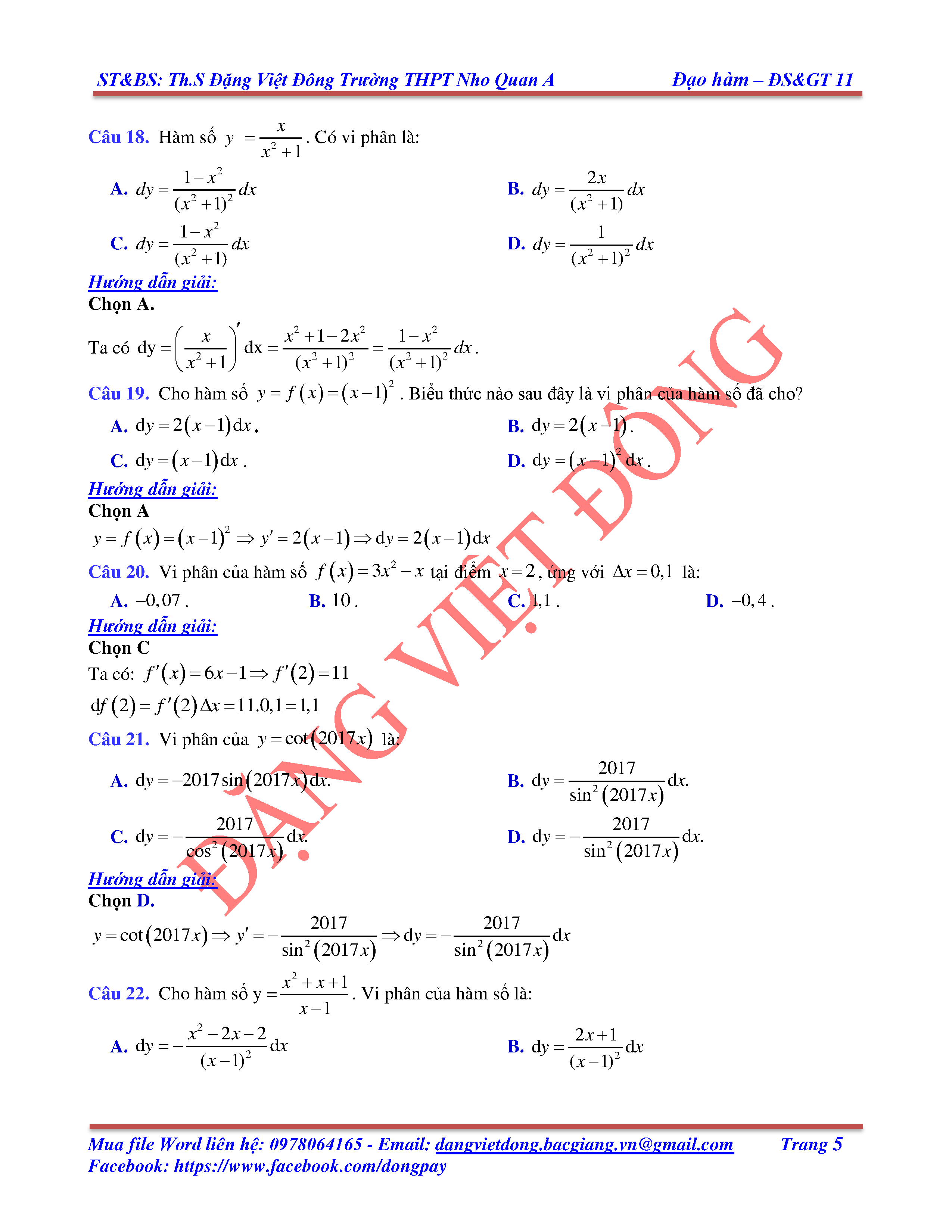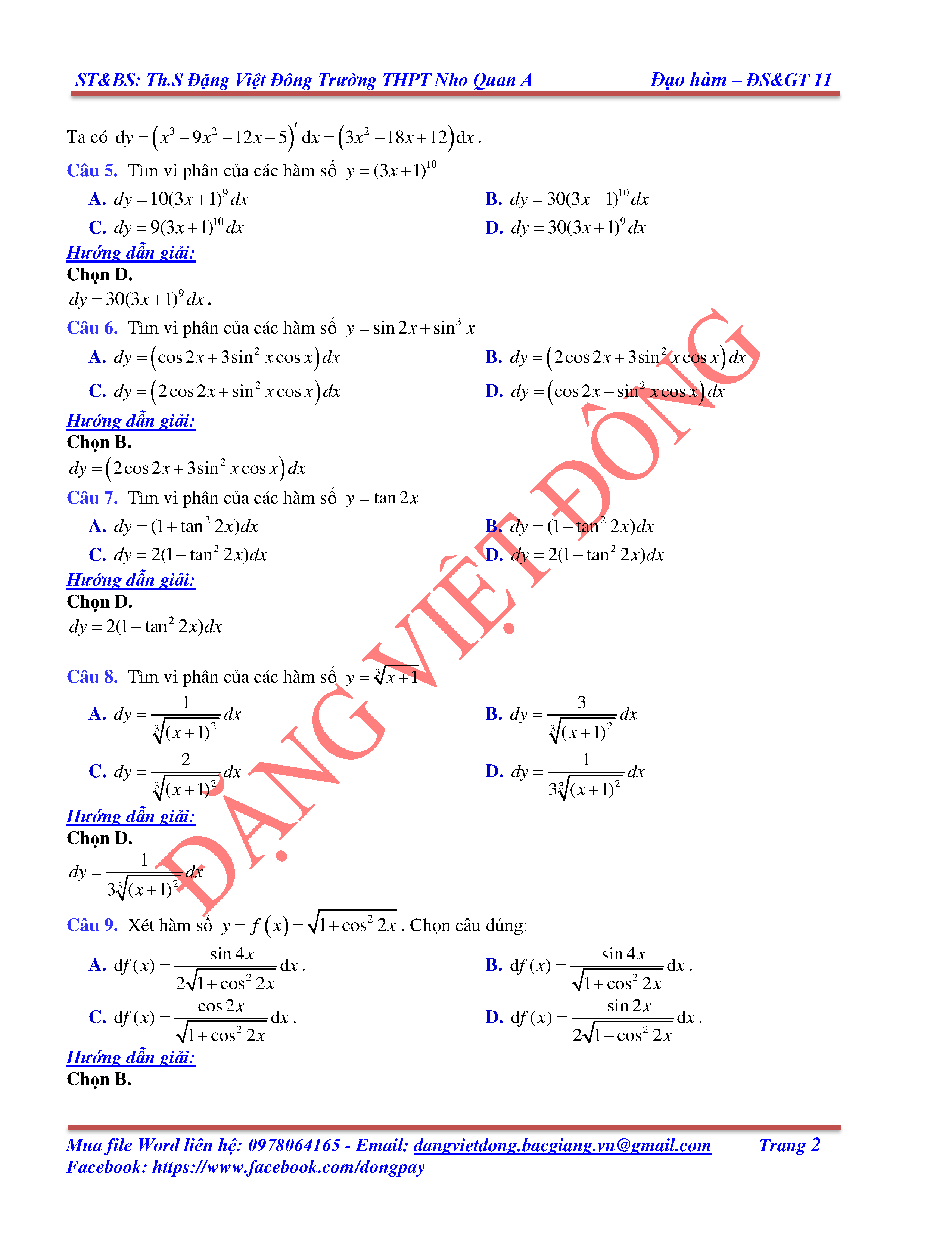 VI PHÂN CỦA HÀM SỐ - ĐẠI SỐ, GIẢI TÍCH 11
