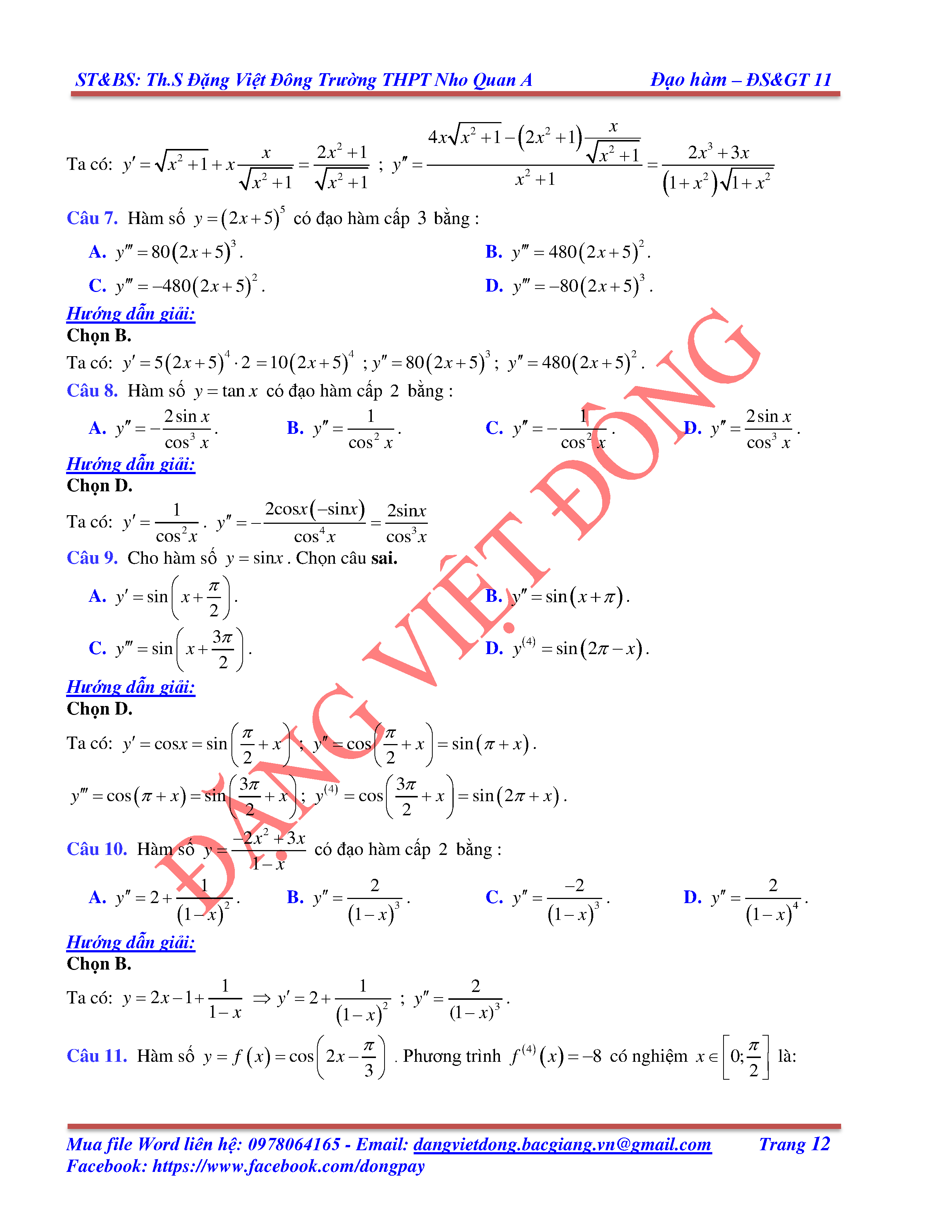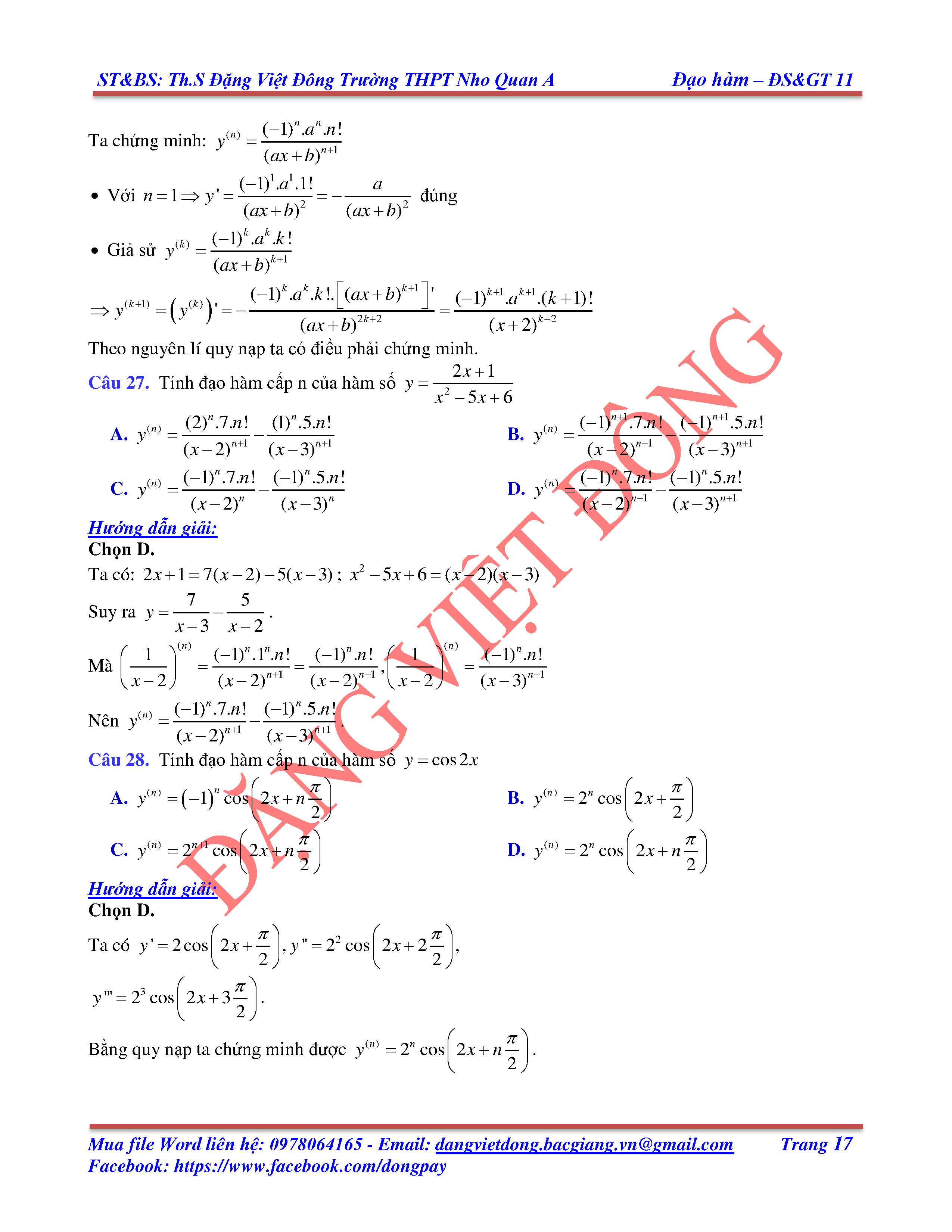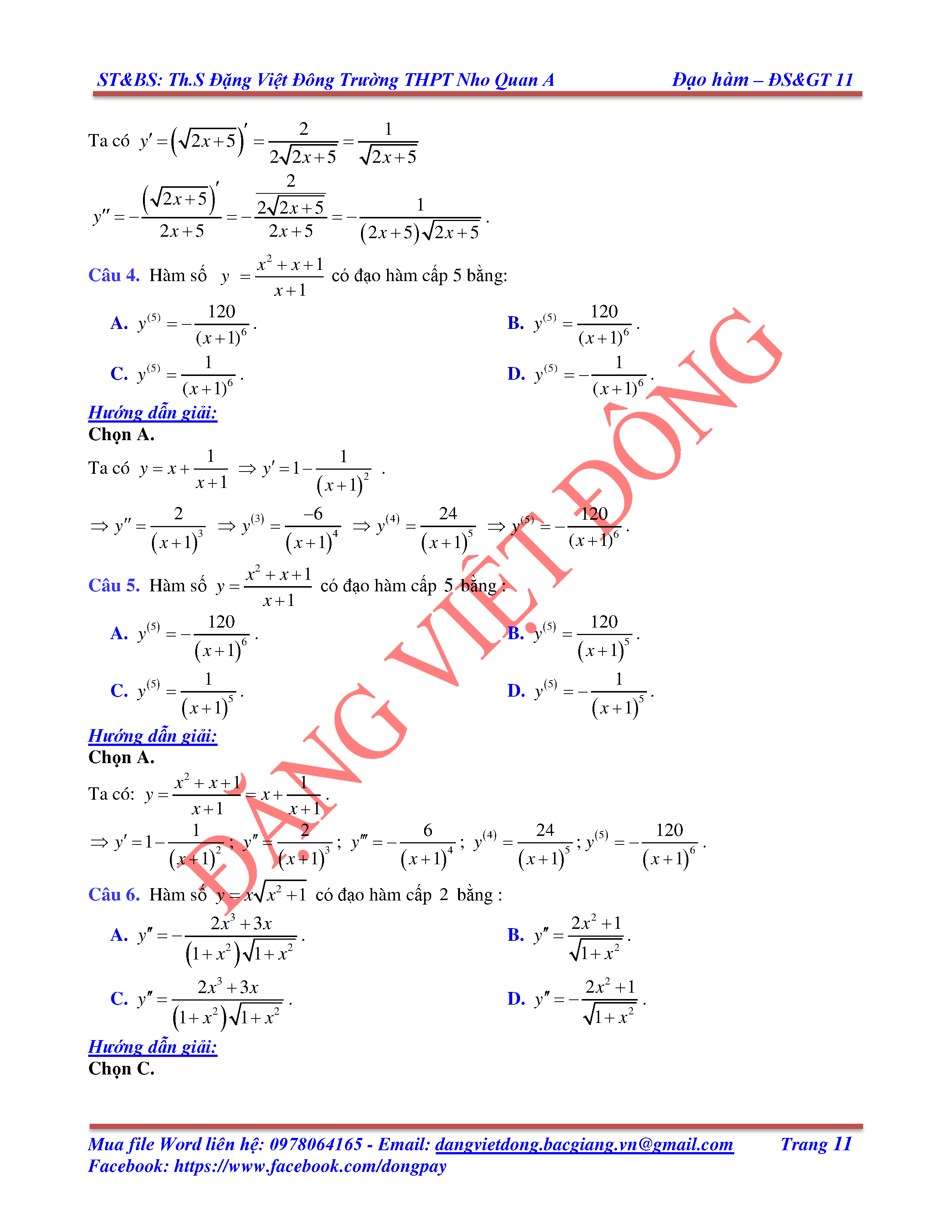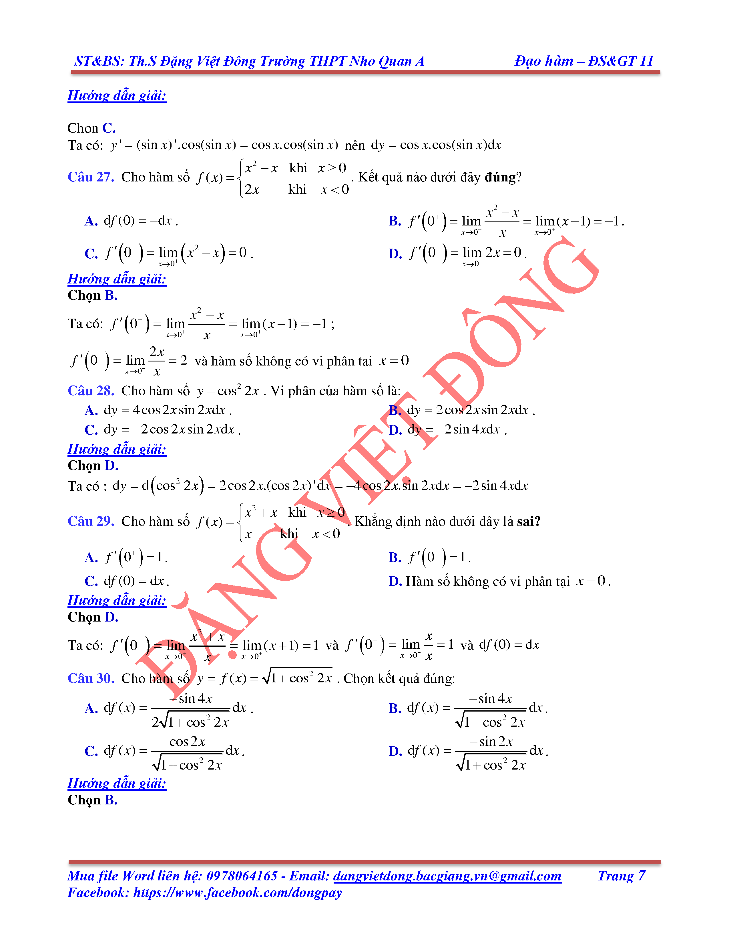 VI PHÂN CỦA HÀM SỐ - ĐẠI SỐ, GIẢI TÍCH 11