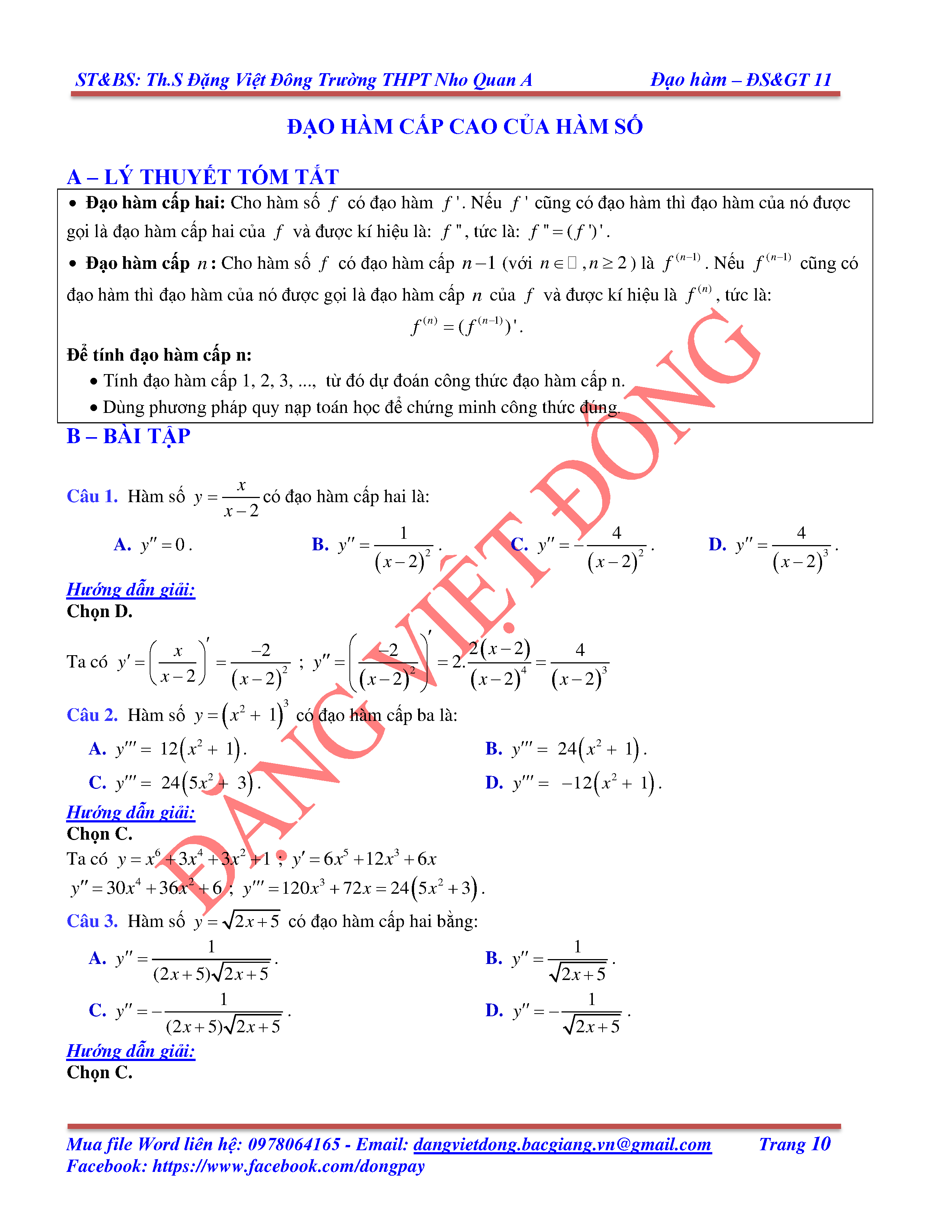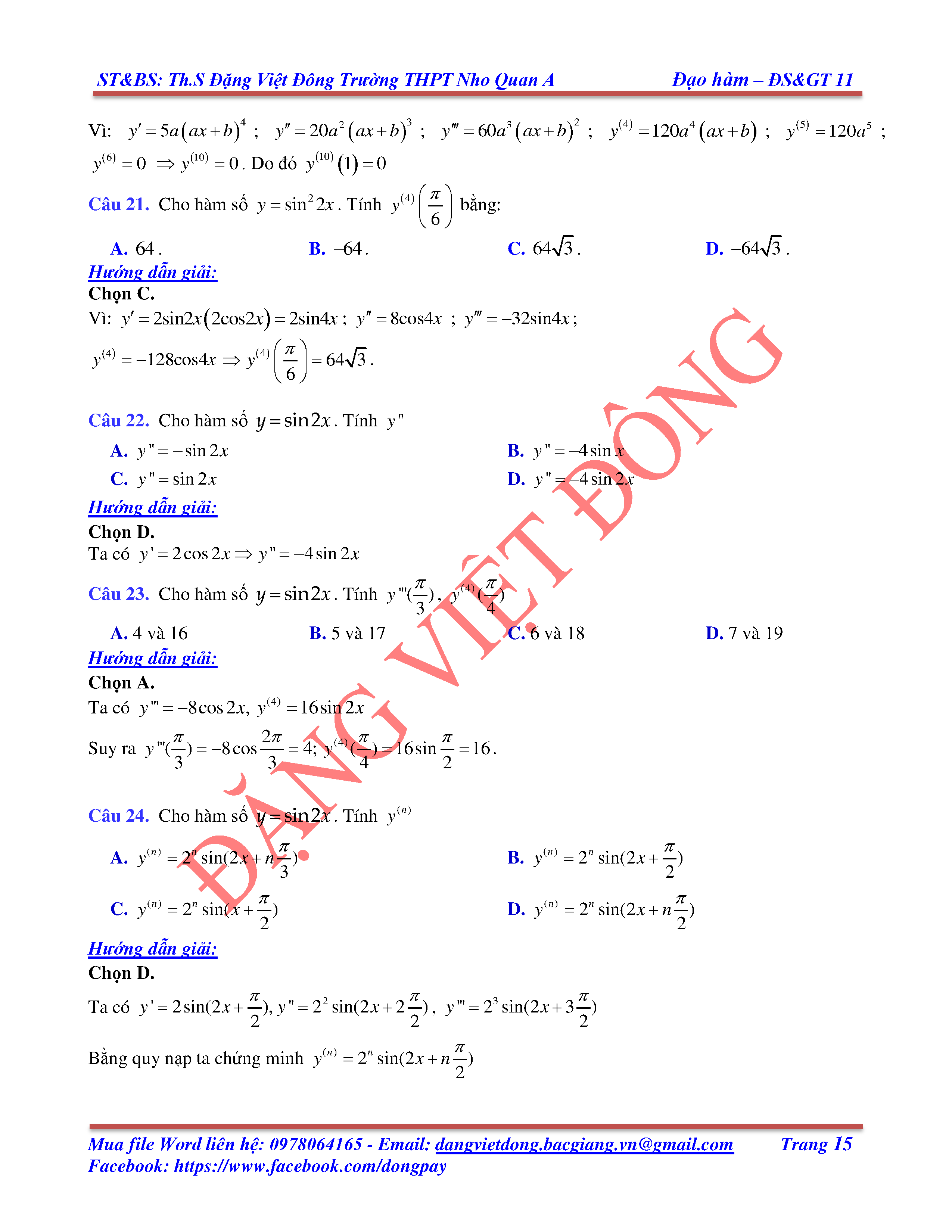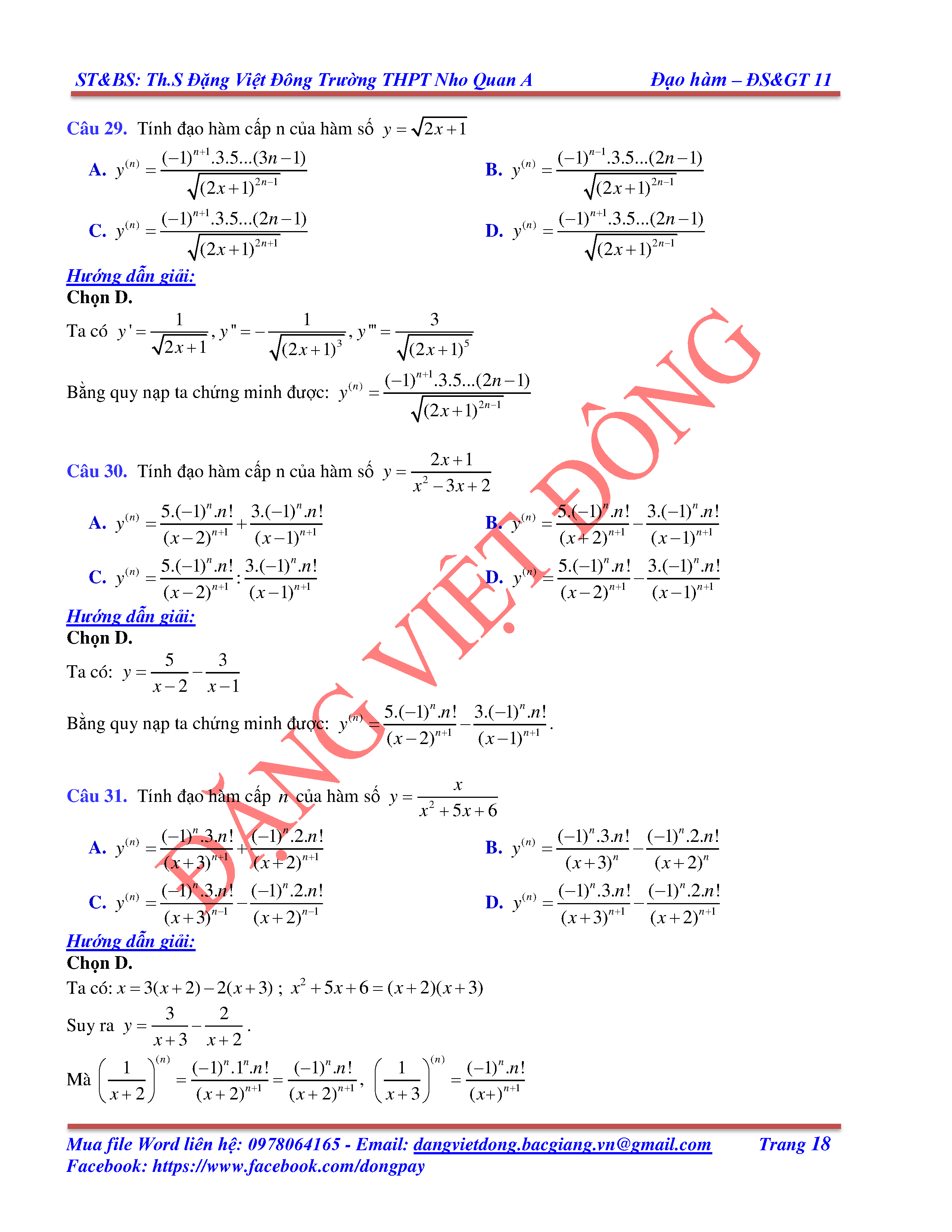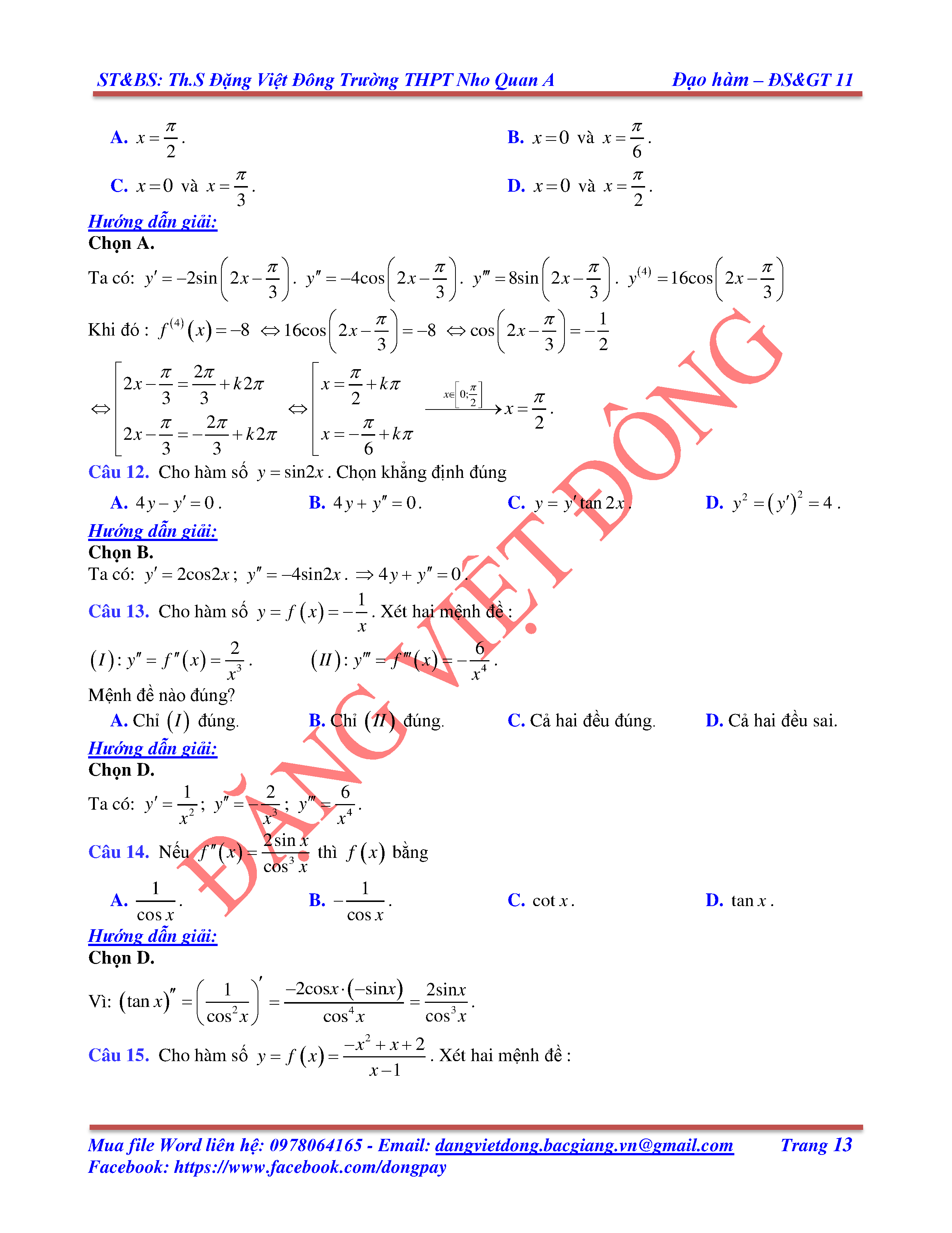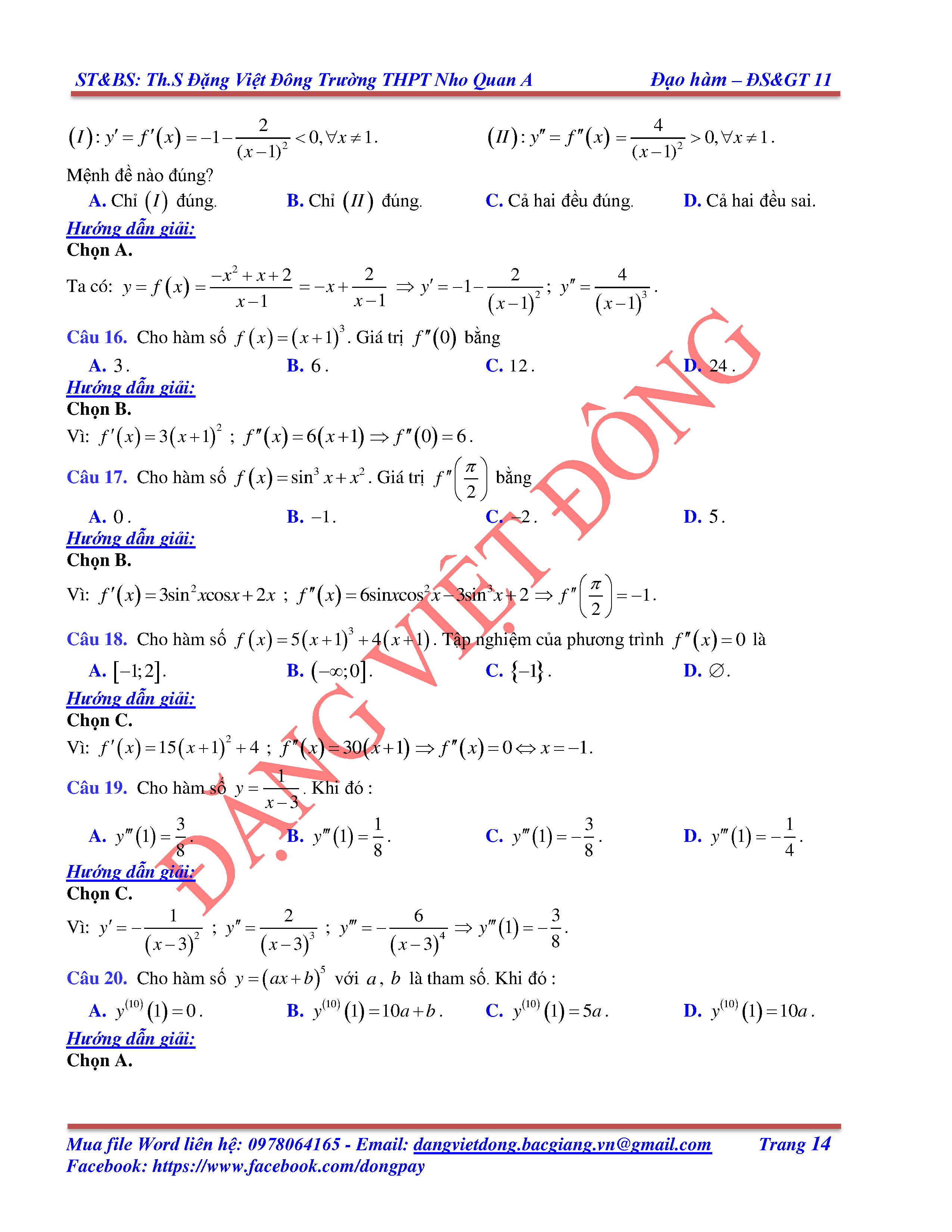 VI PHÂN CỦA HÀM SỐ - ĐẠI SỐ, GIẢI TÍCH 11