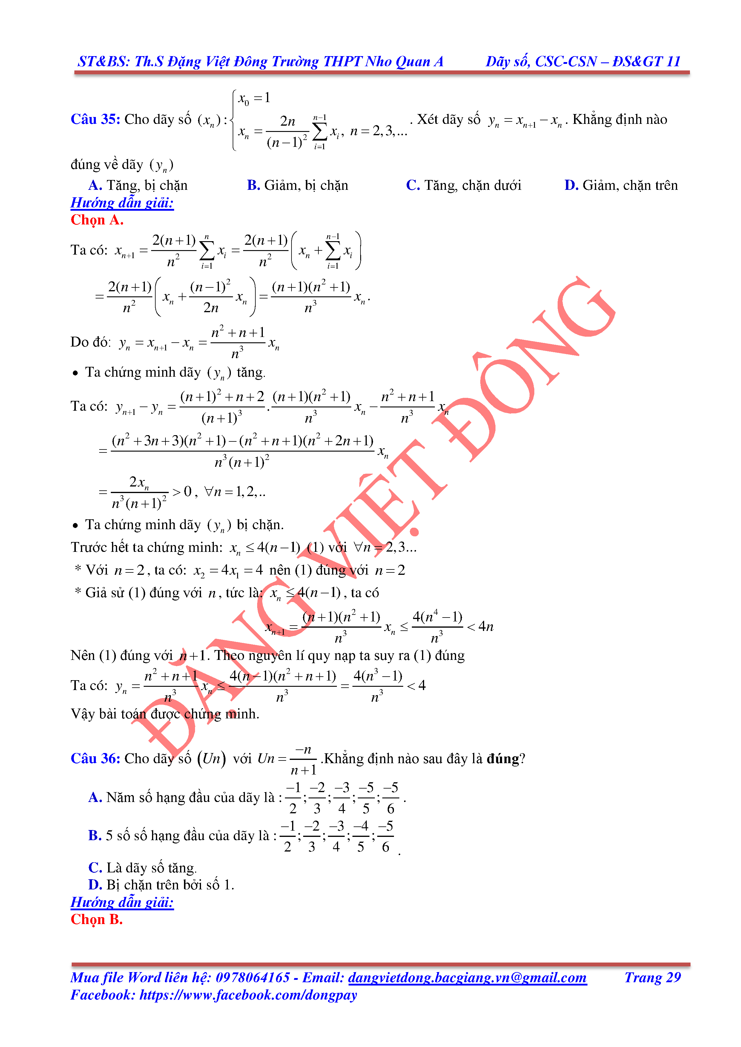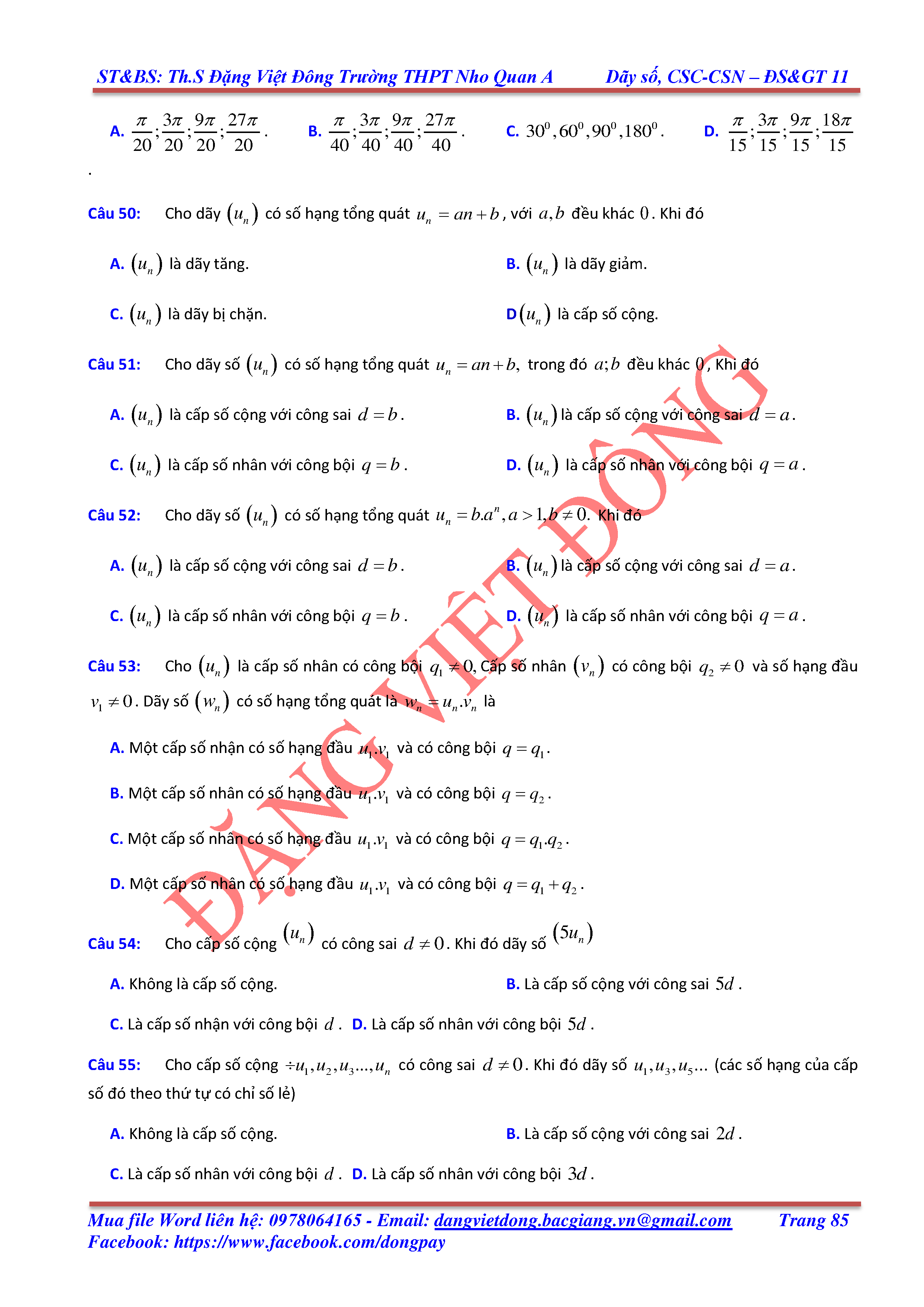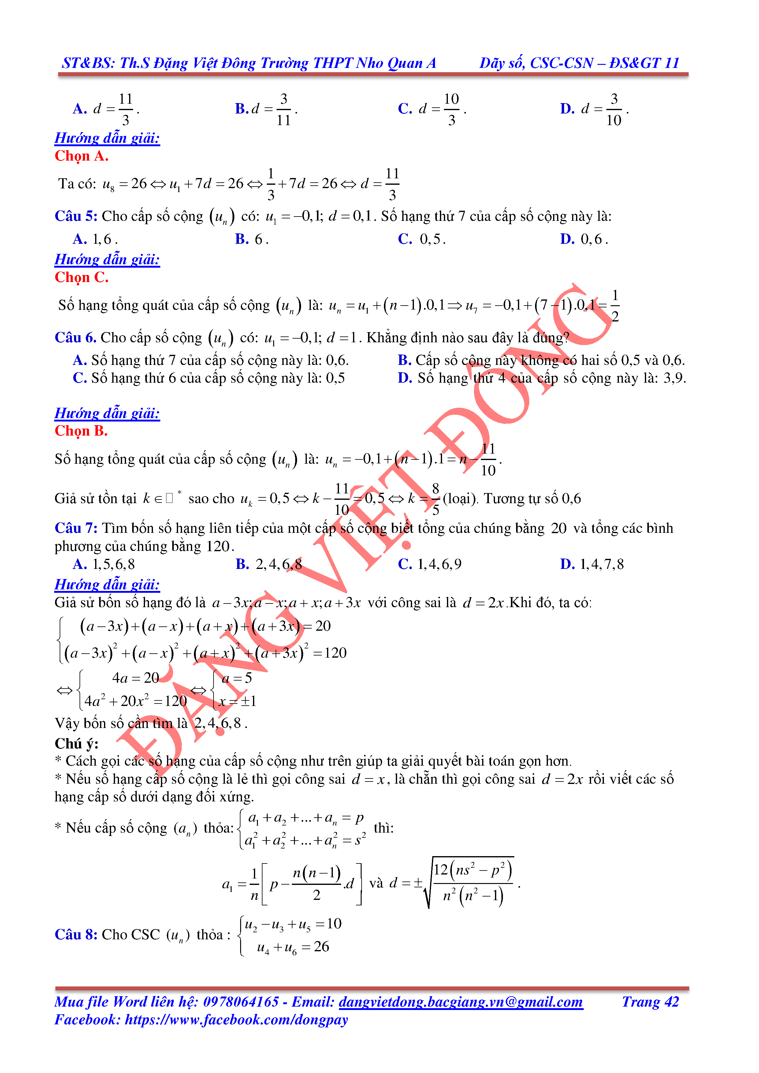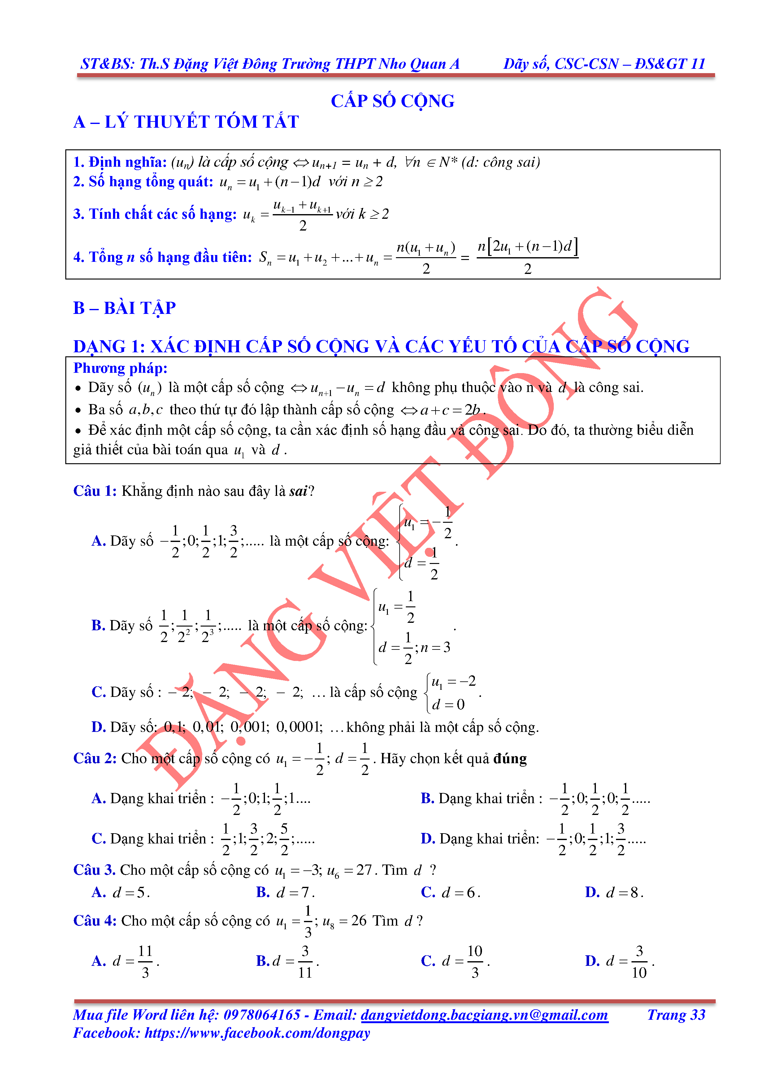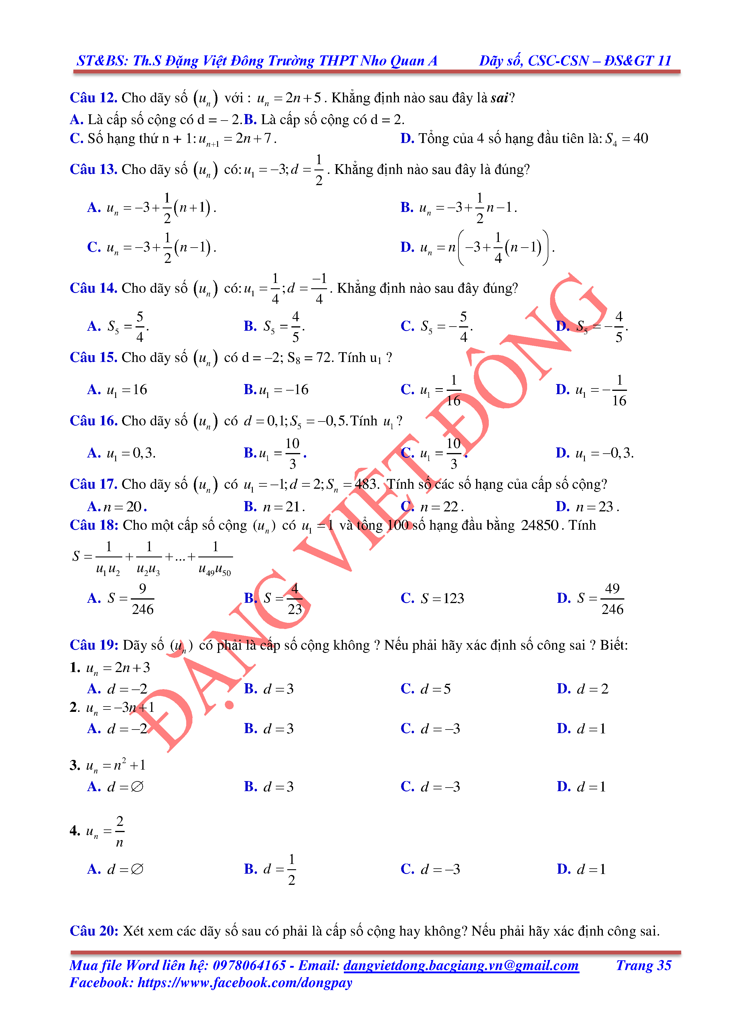 DÃY SỐ, CẤP SỐ CỘNG, CẤP SỐ NHÂN - ĐẠI SỐ, GIẢI TÍCH 11