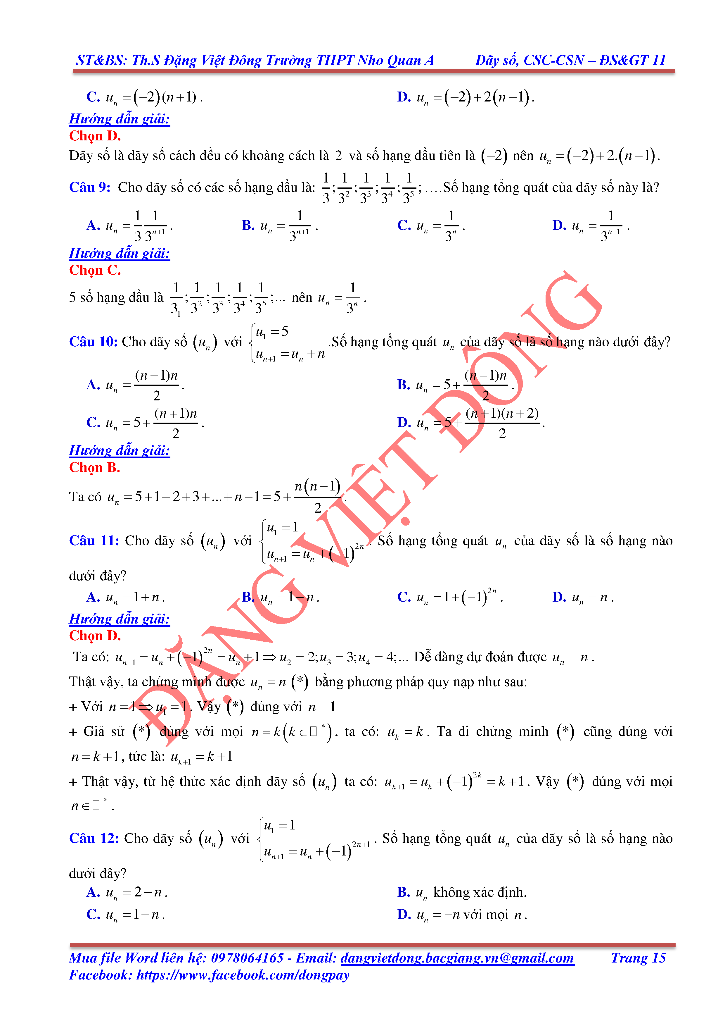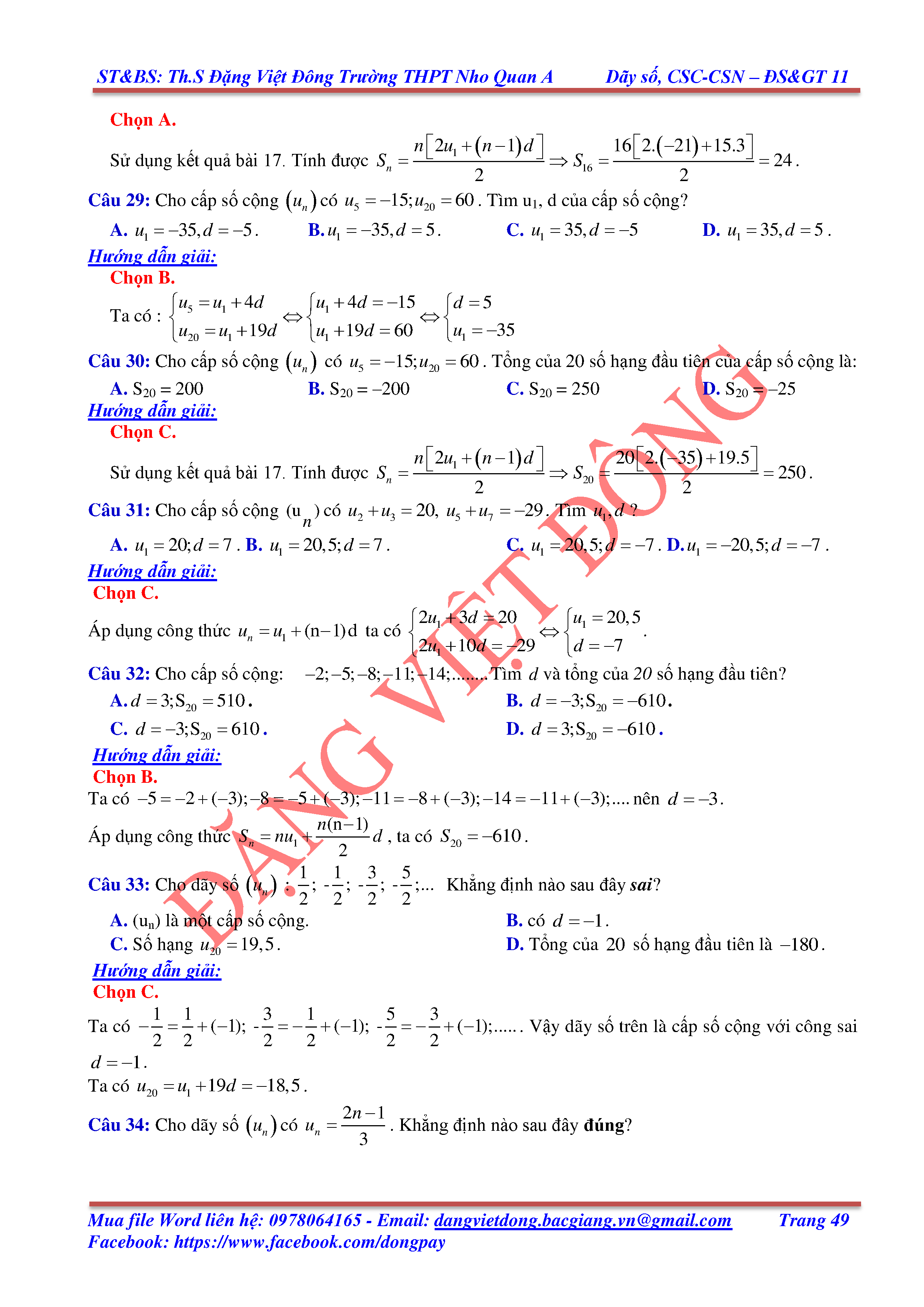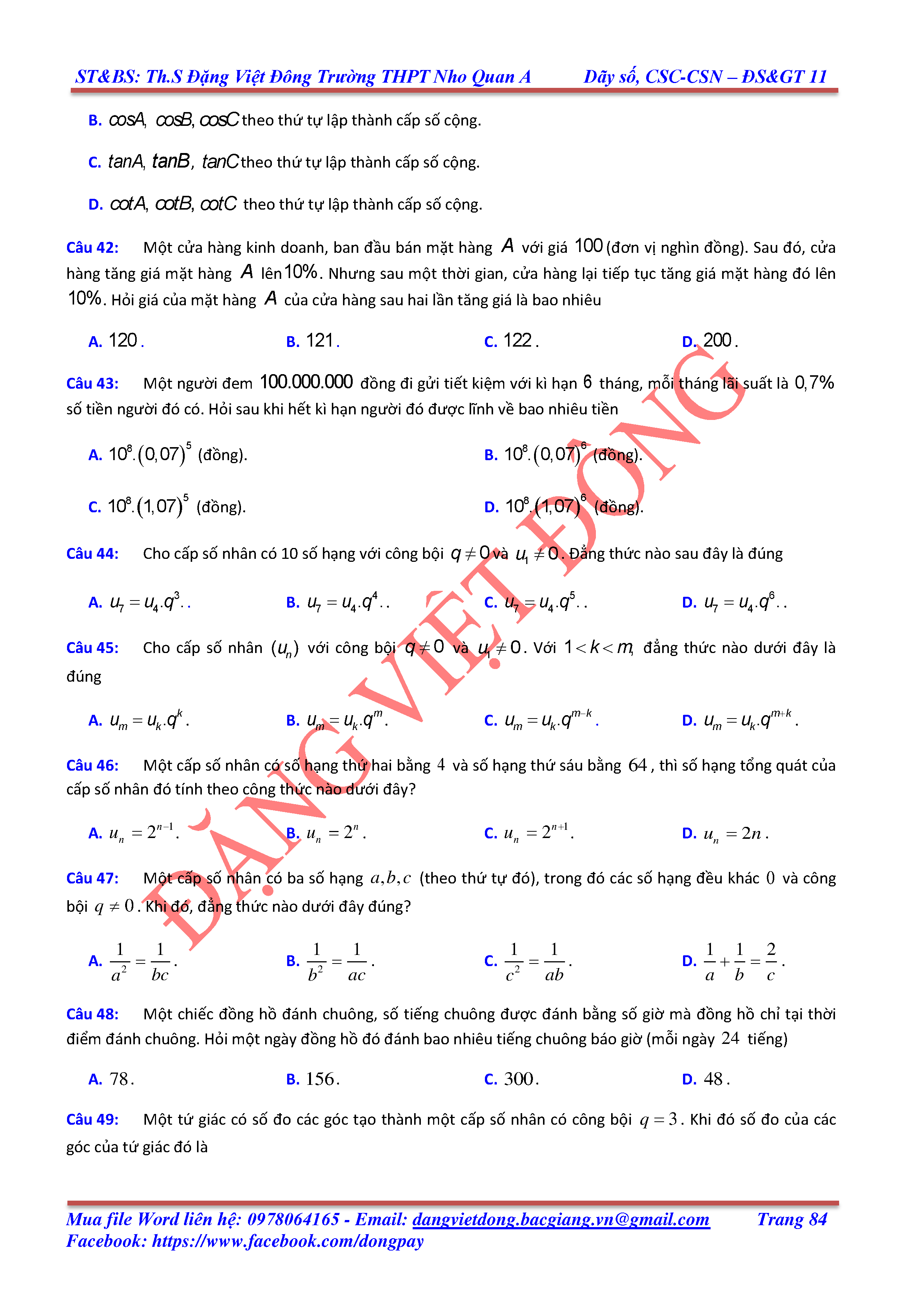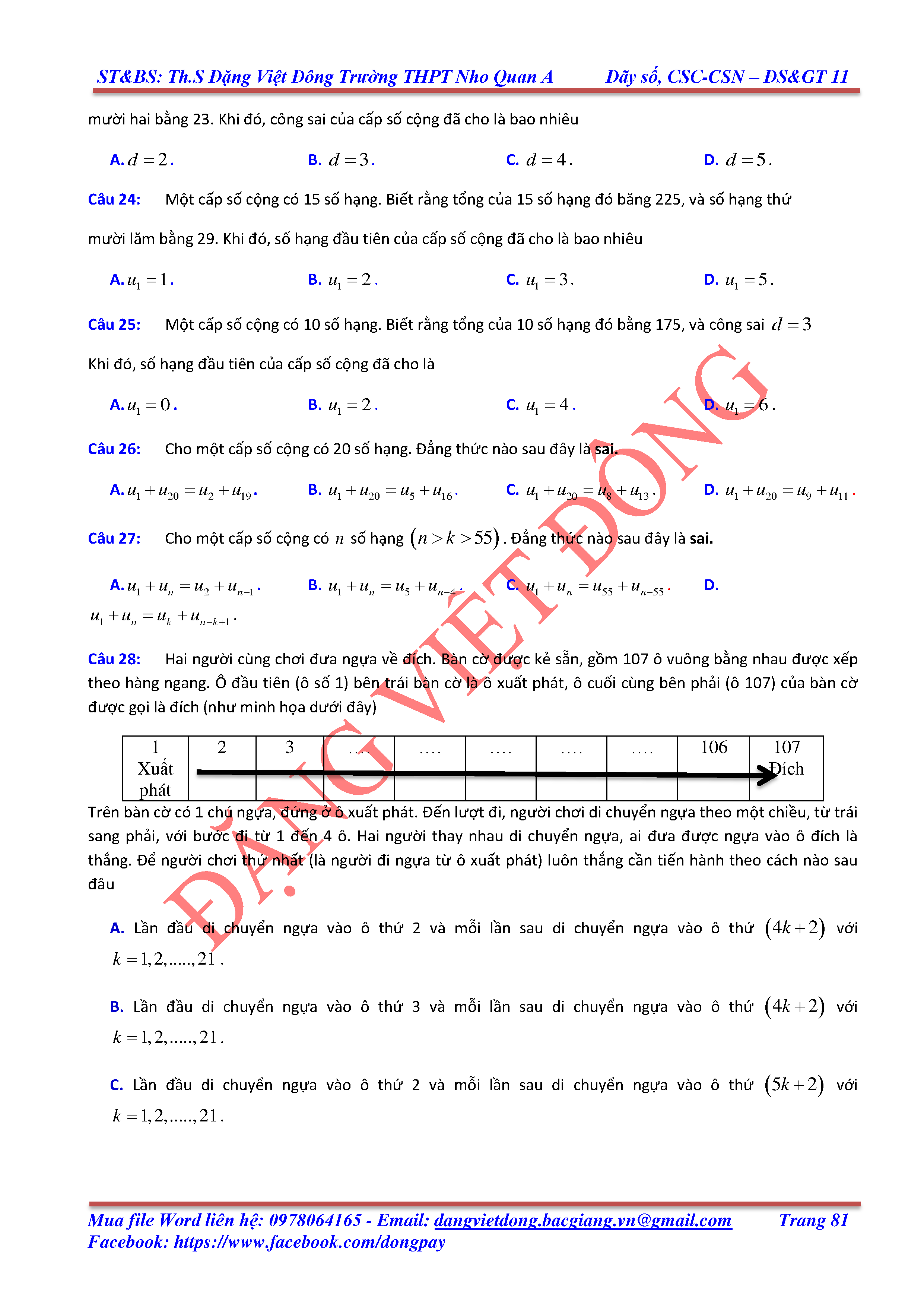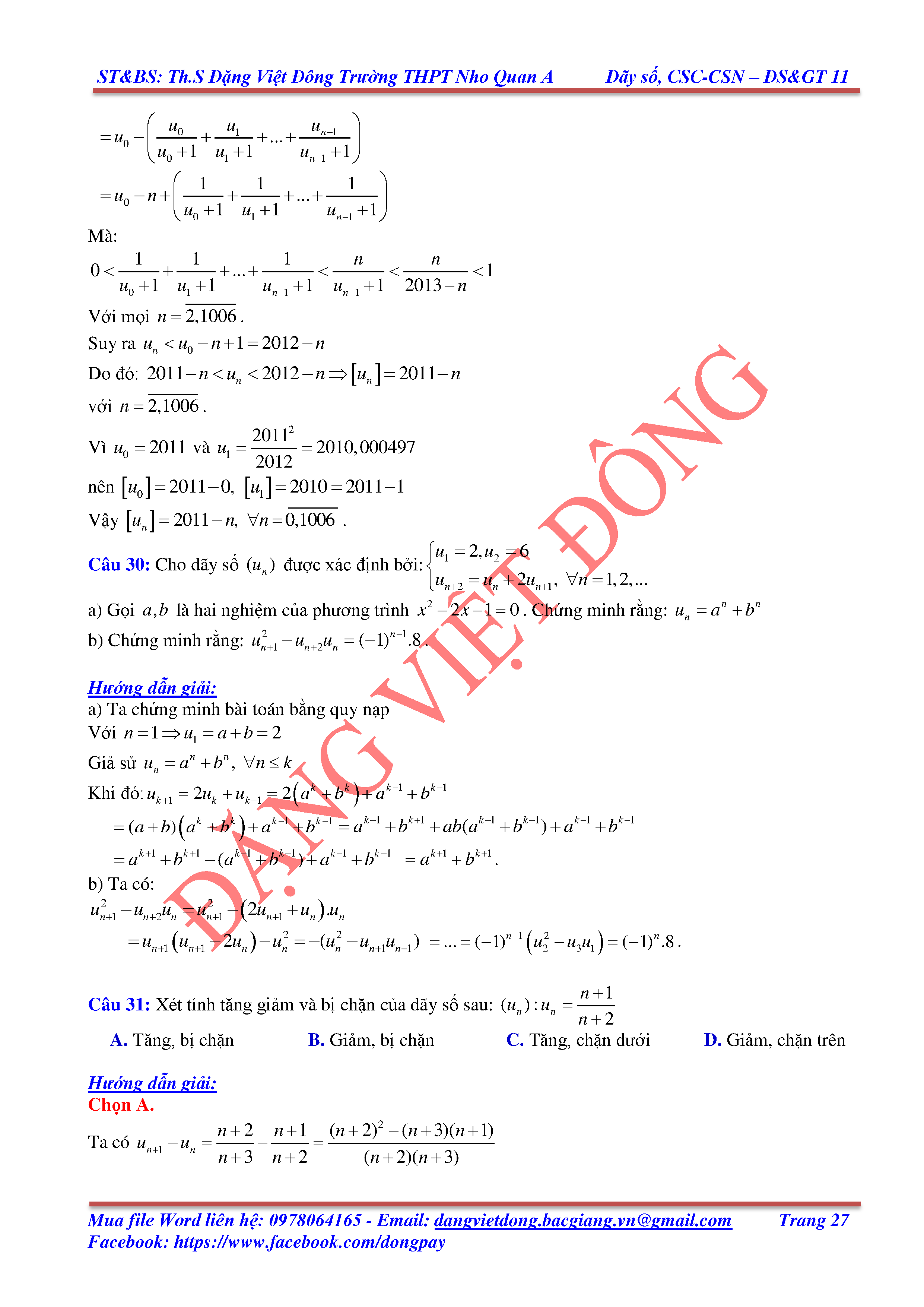 DÃY SỐ, CẤP SỐ CỘNG, CẤP SỐ NHÂN - ĐẠI SỐ, GIẢI TÍCH 11