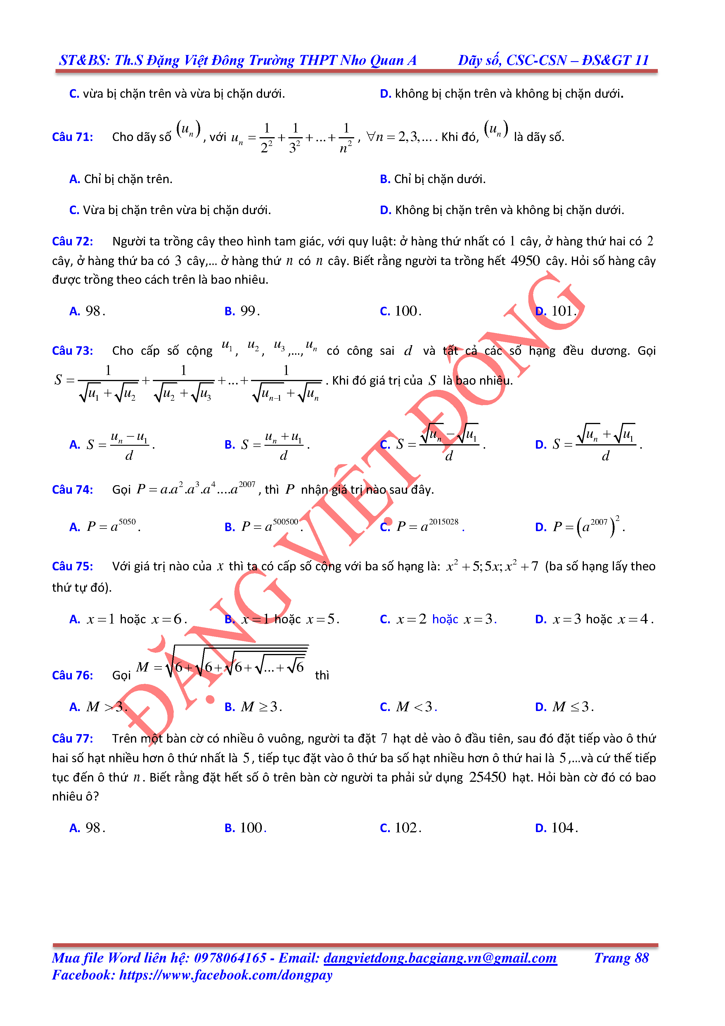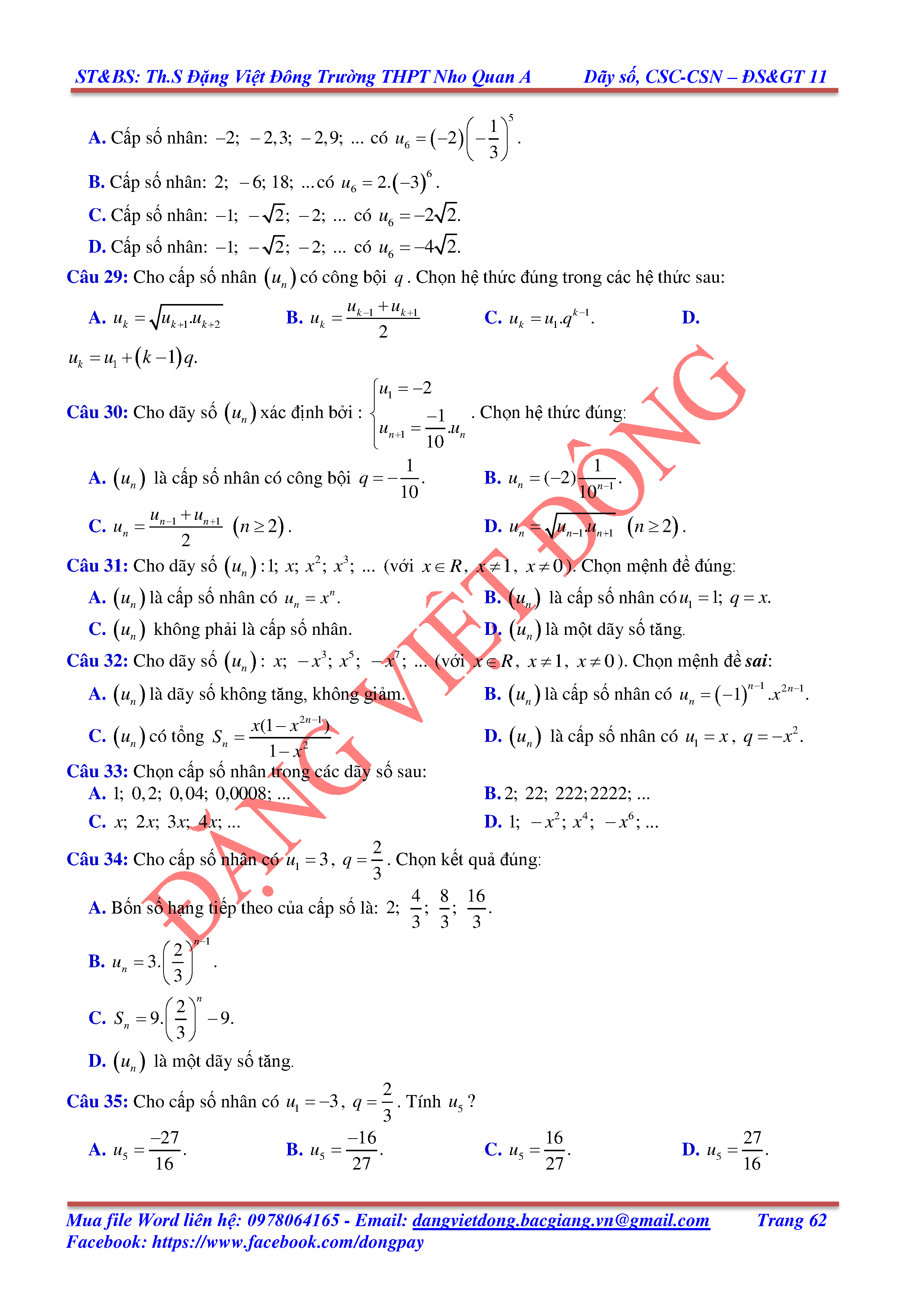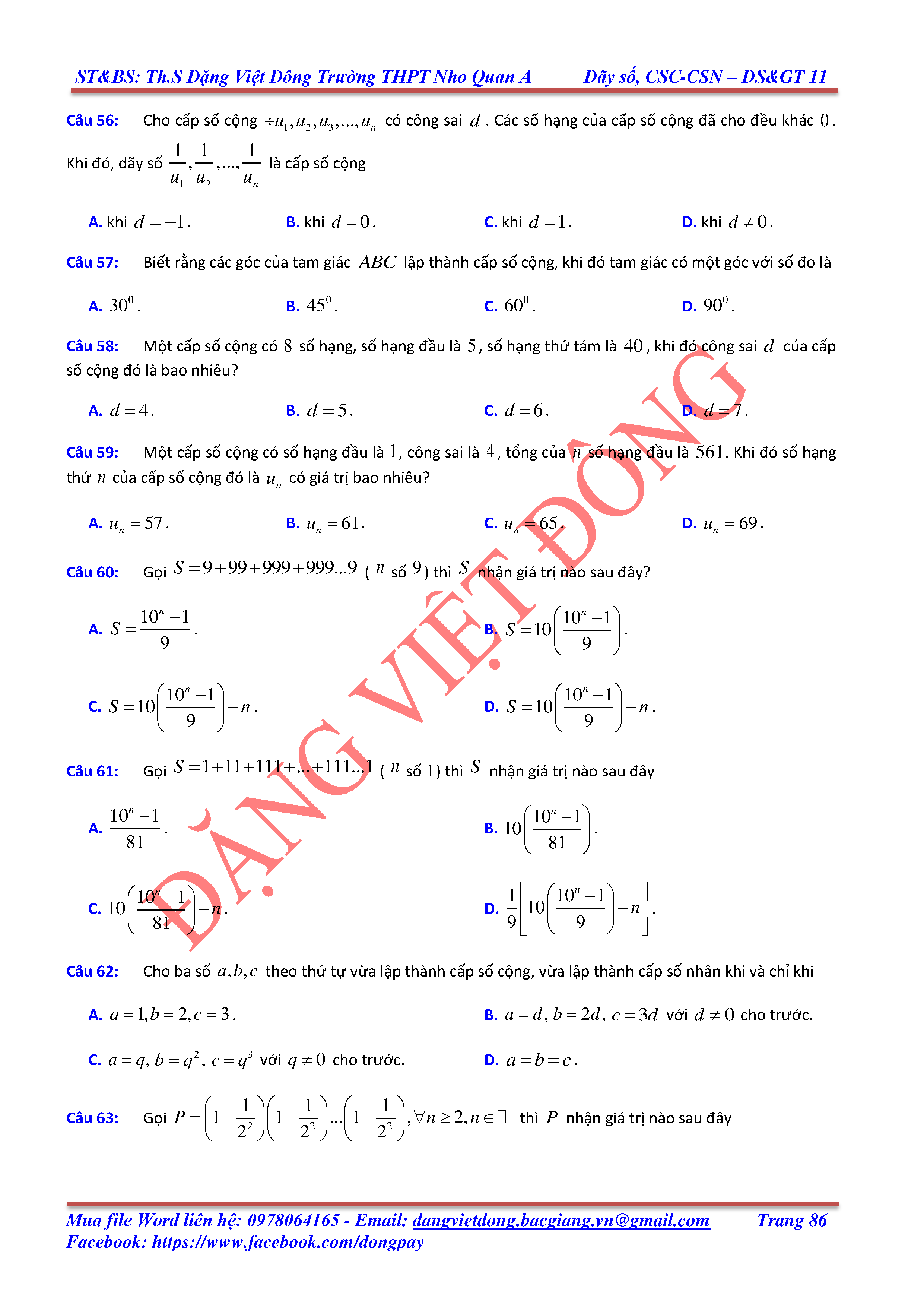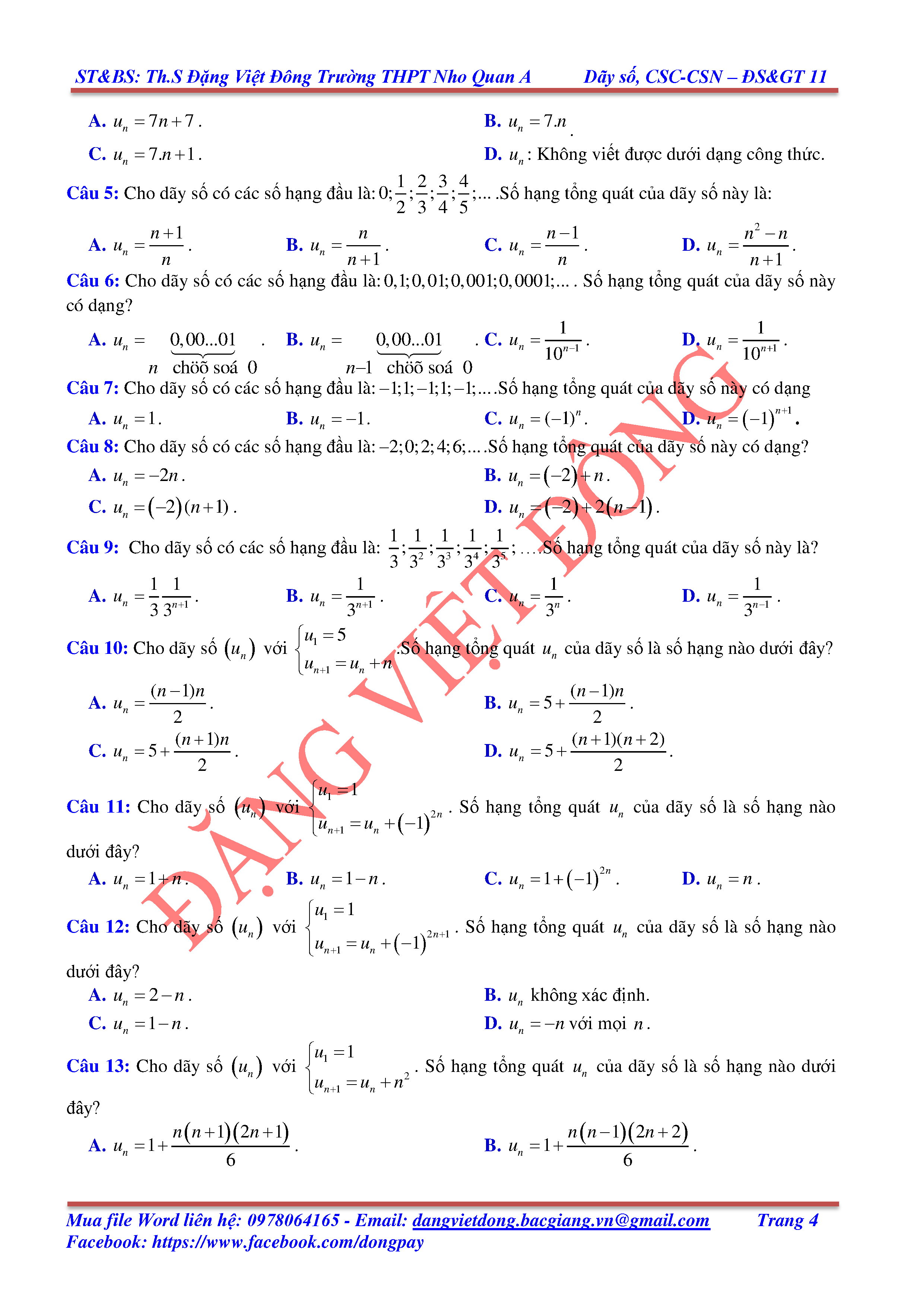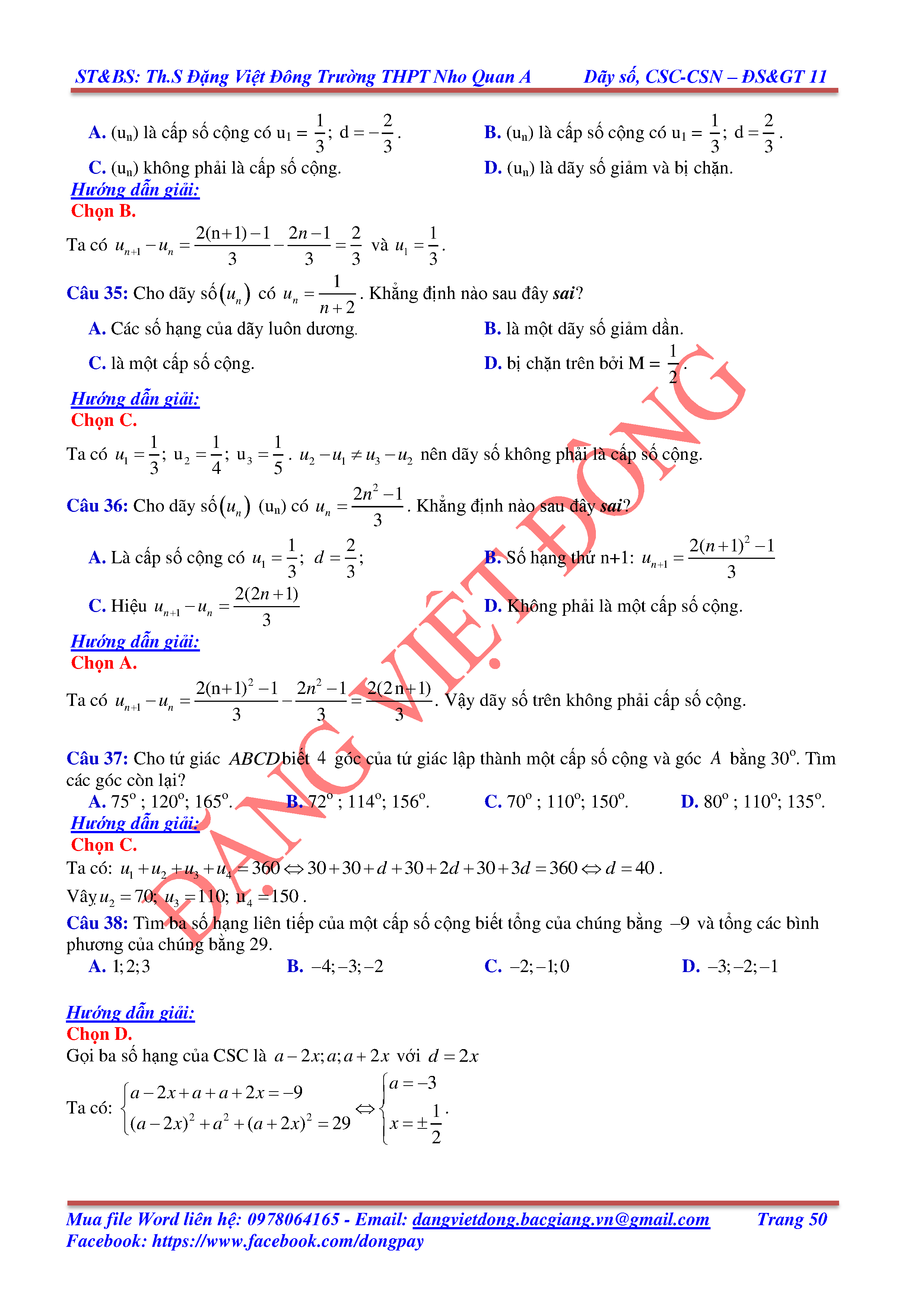 DÃY SỐ, CẤP SỐ CỘNG, CẤP SỐ NHÂN - ĐẠI SỐ, GIẢI TÍCH 11