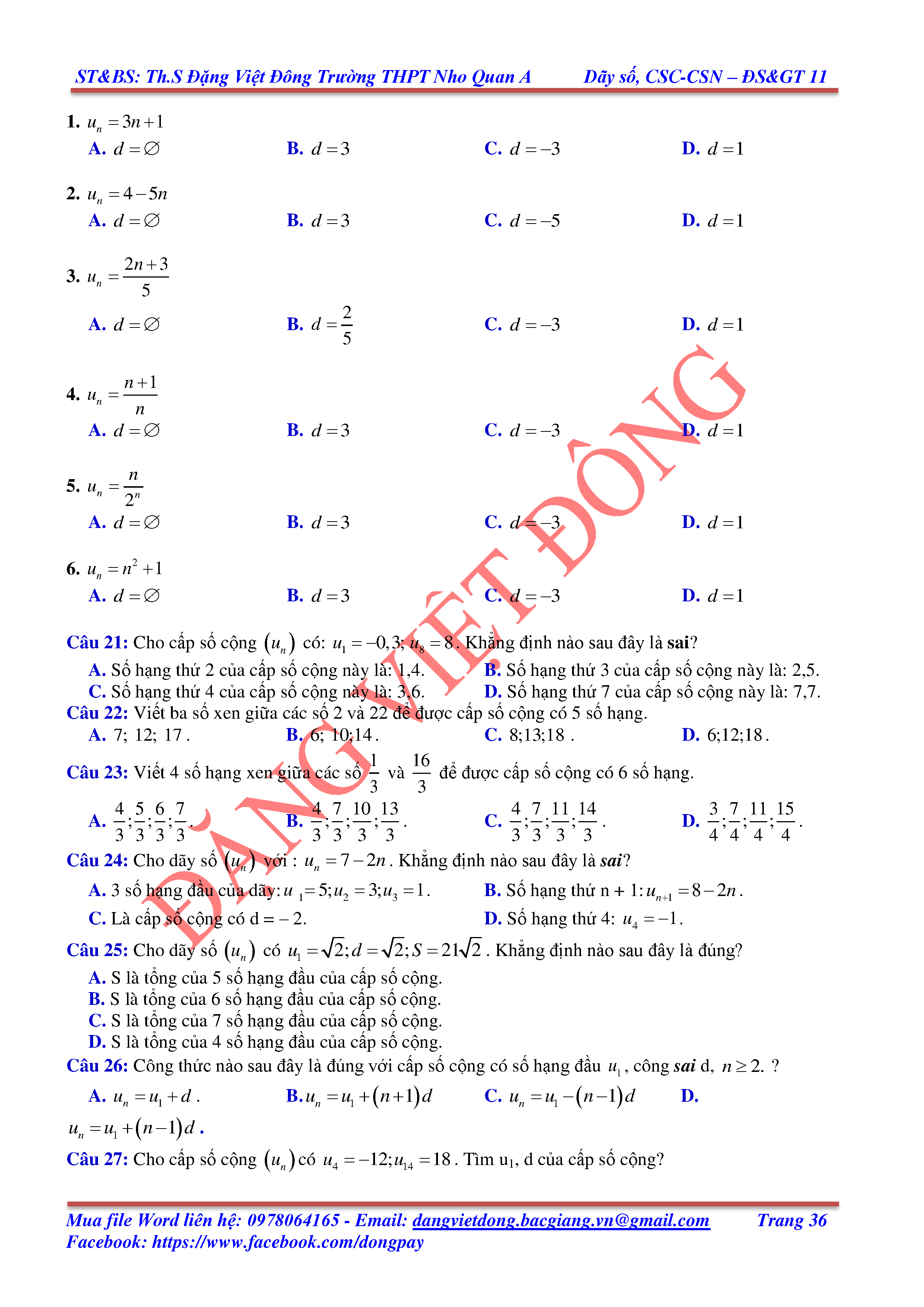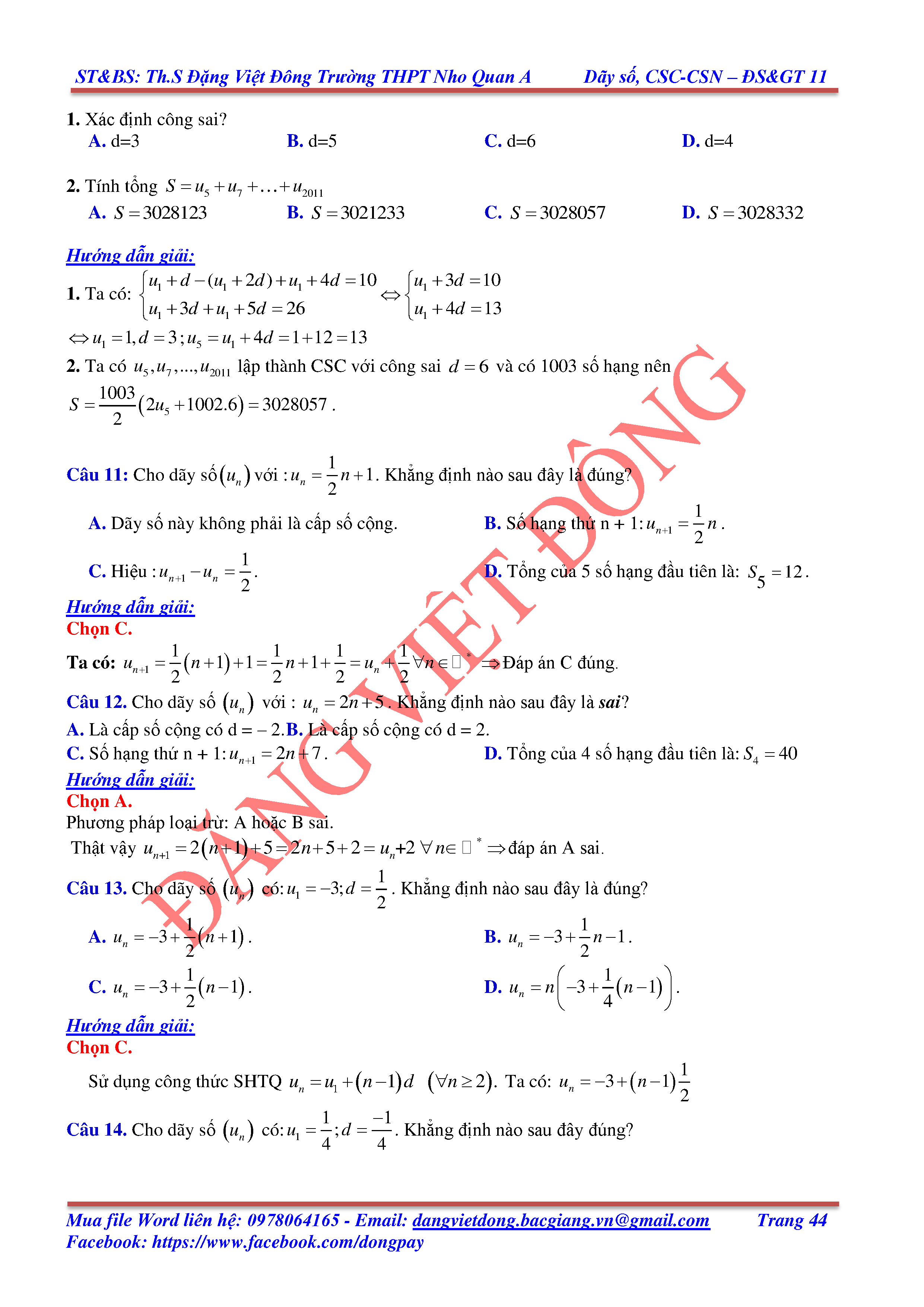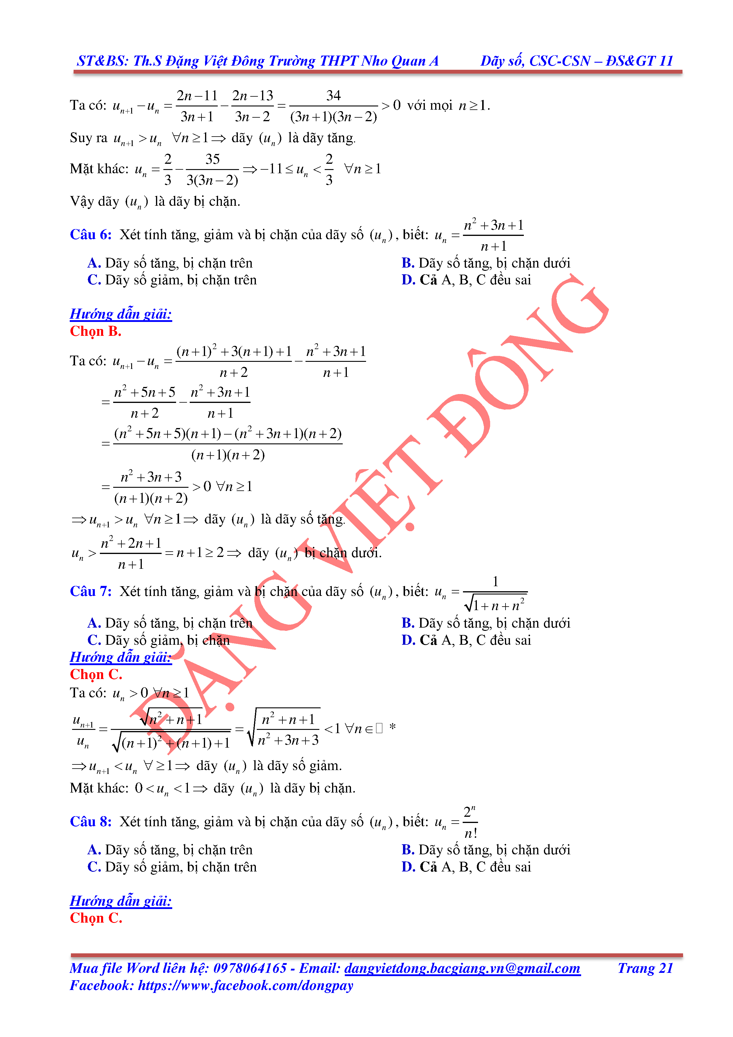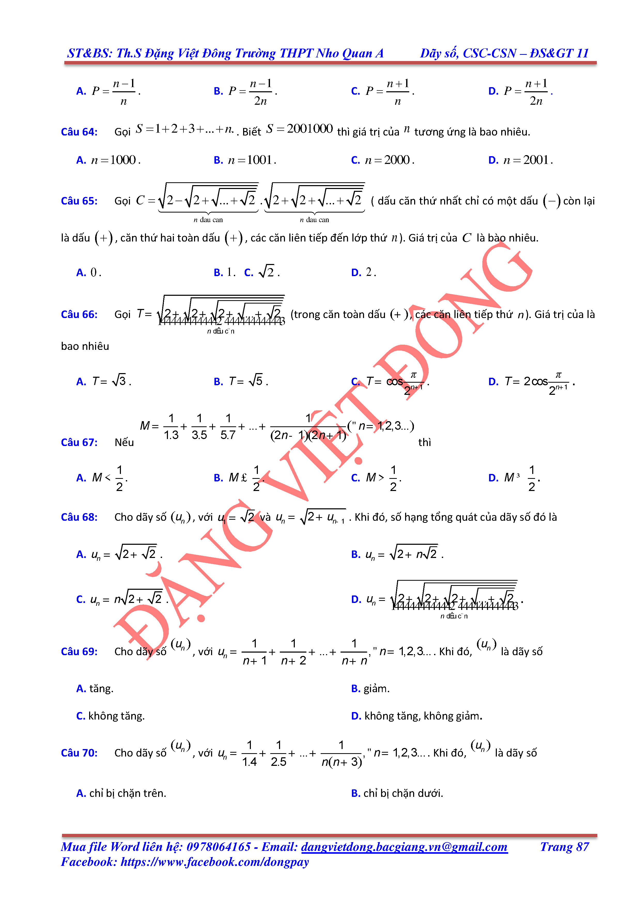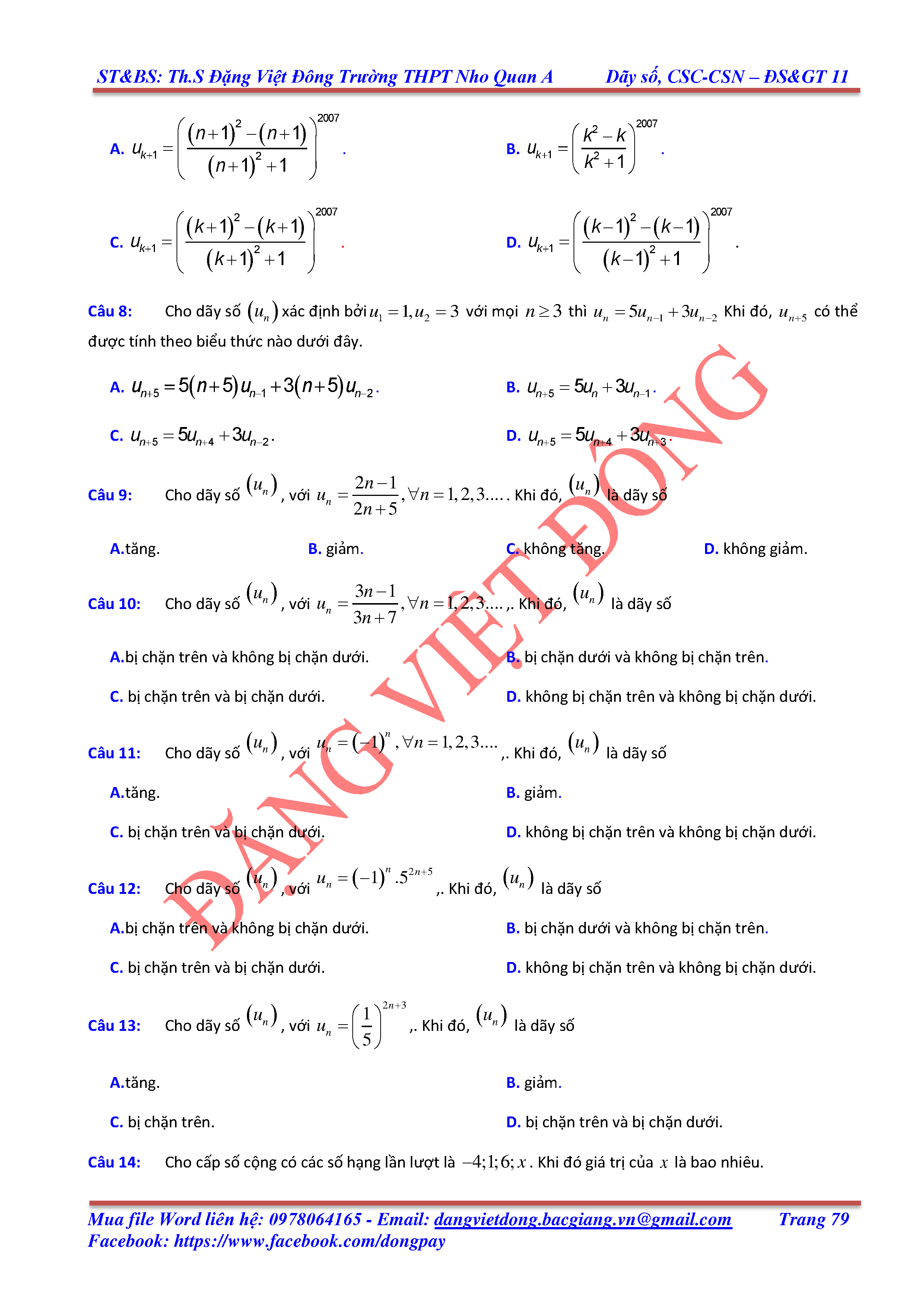 DÃY SỐ, CẤP SỐ CỘNG, CẤP SỐ NHÂN - ĐẠI SỐ, GIẢI TÍCH 11