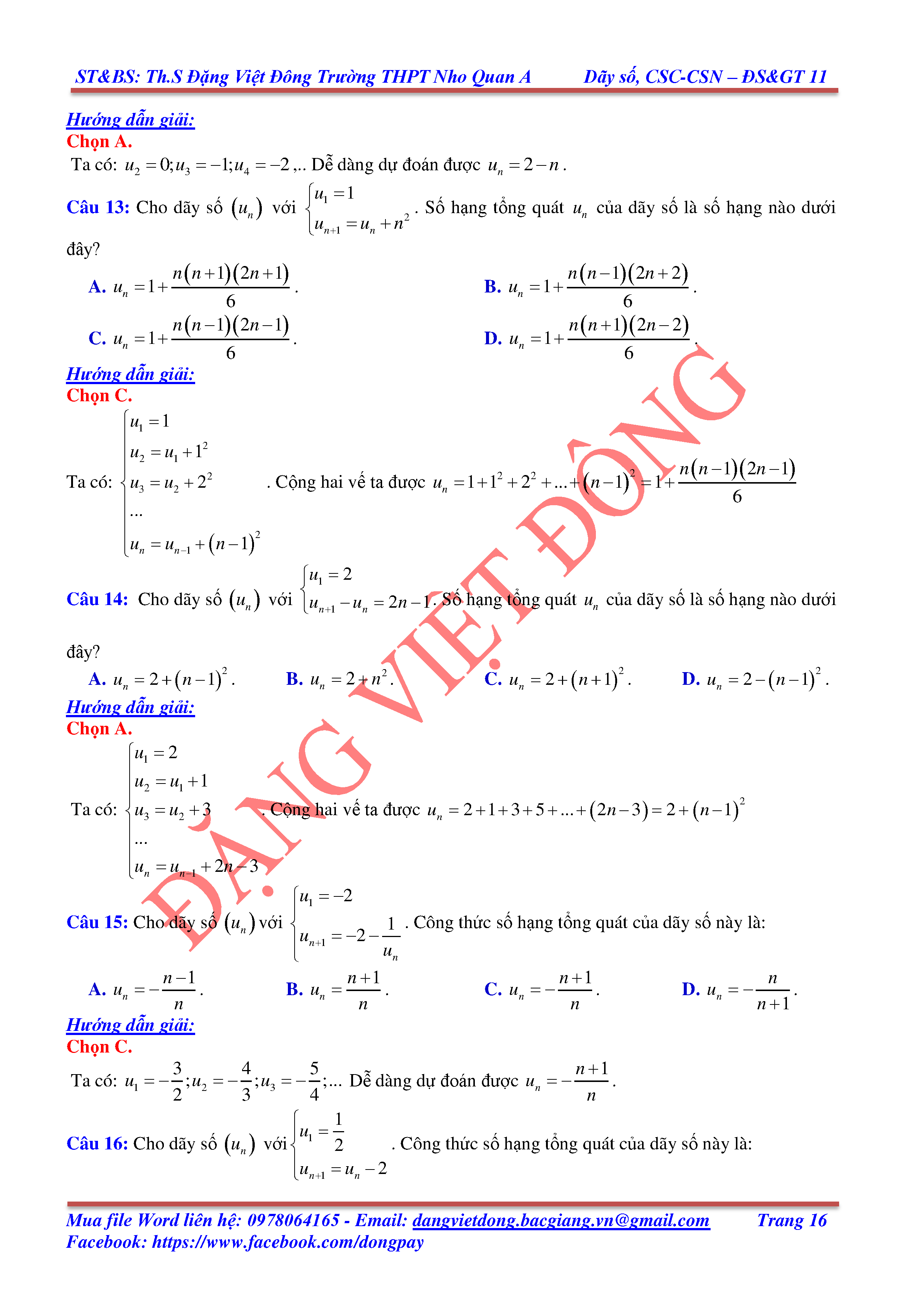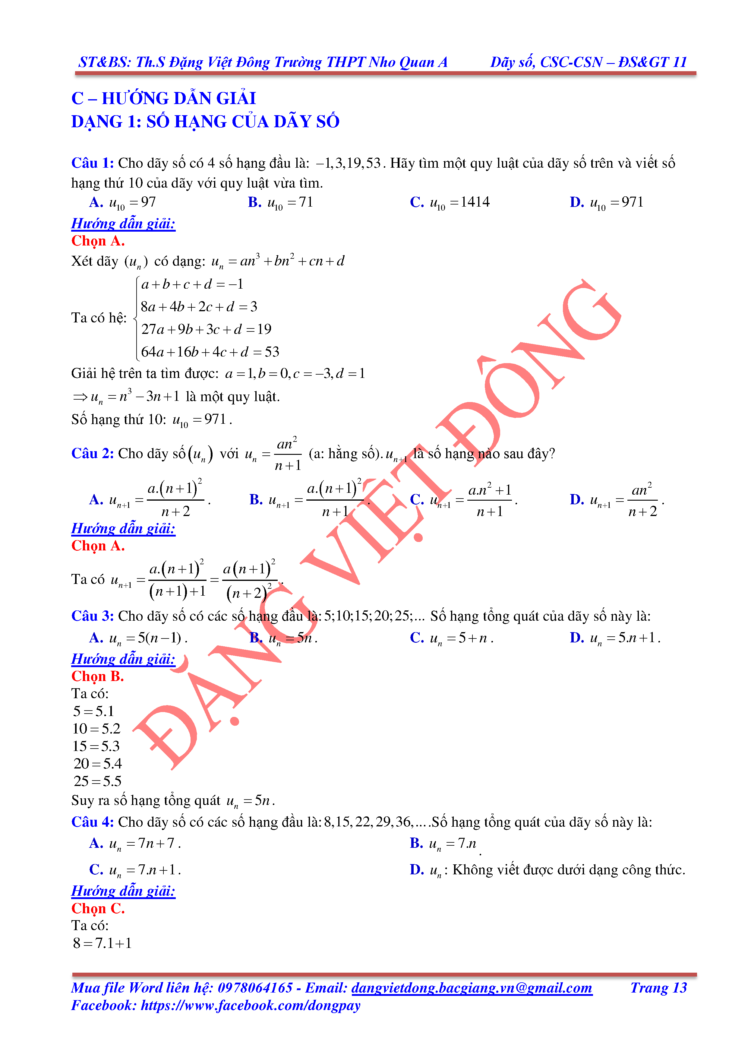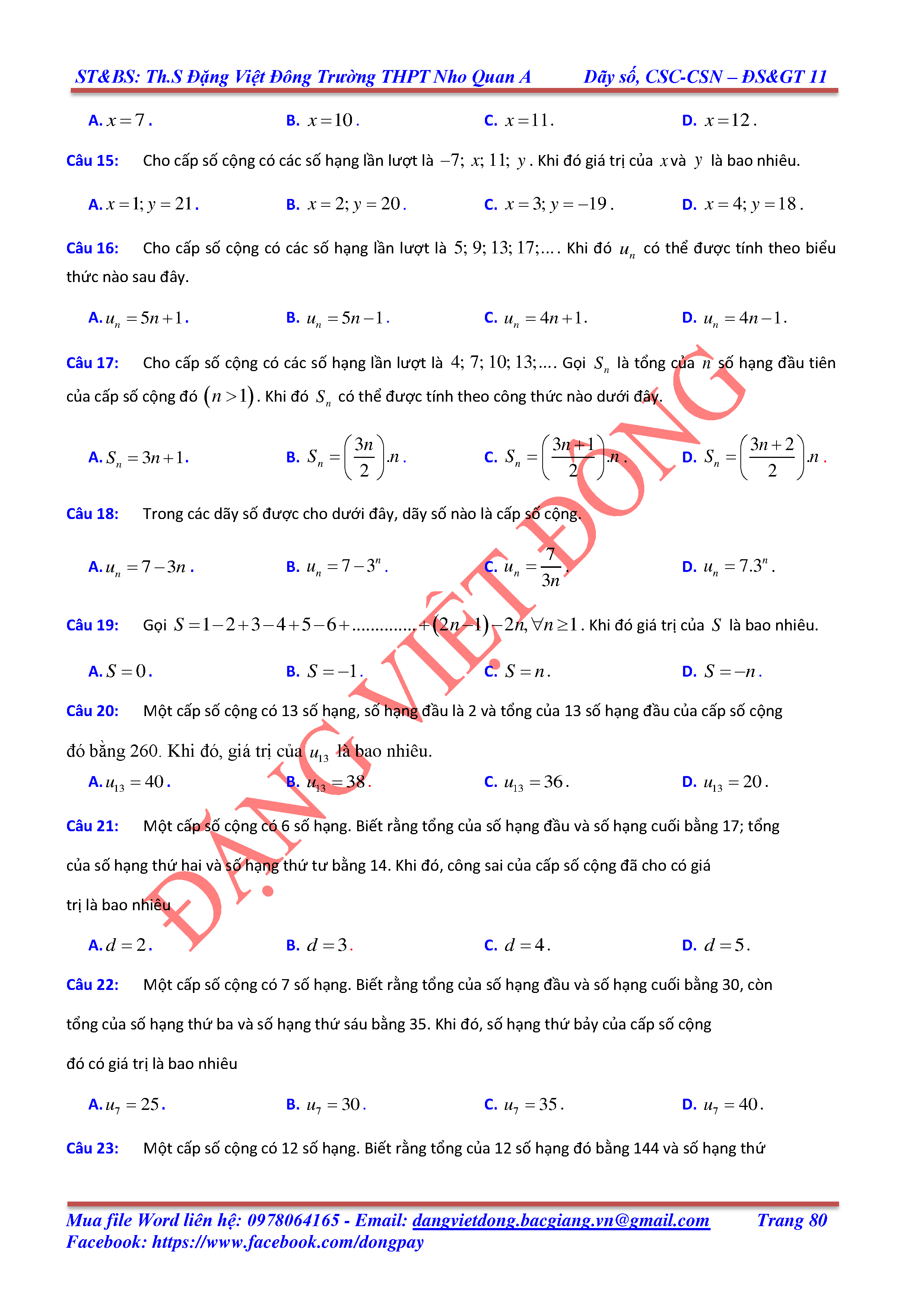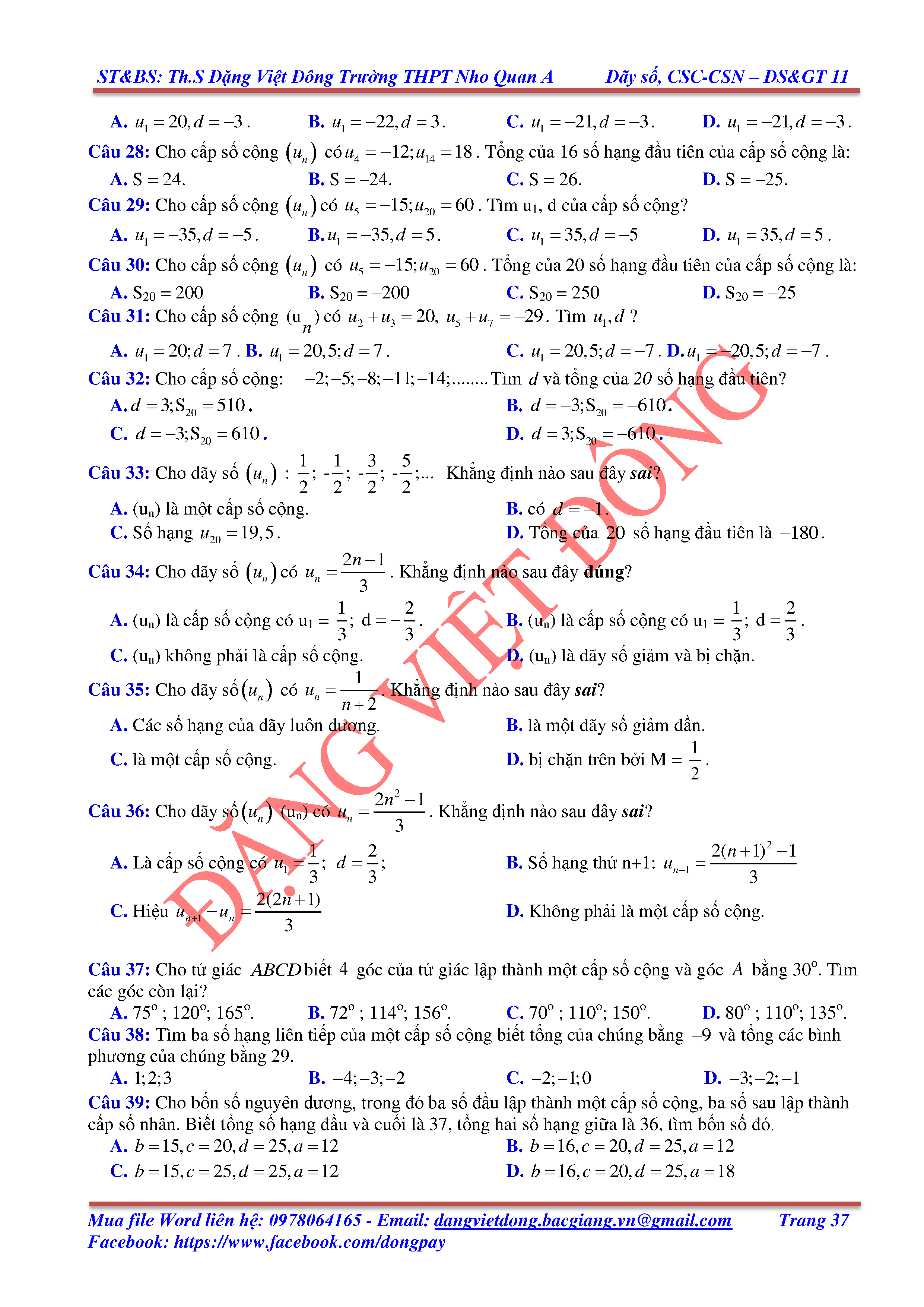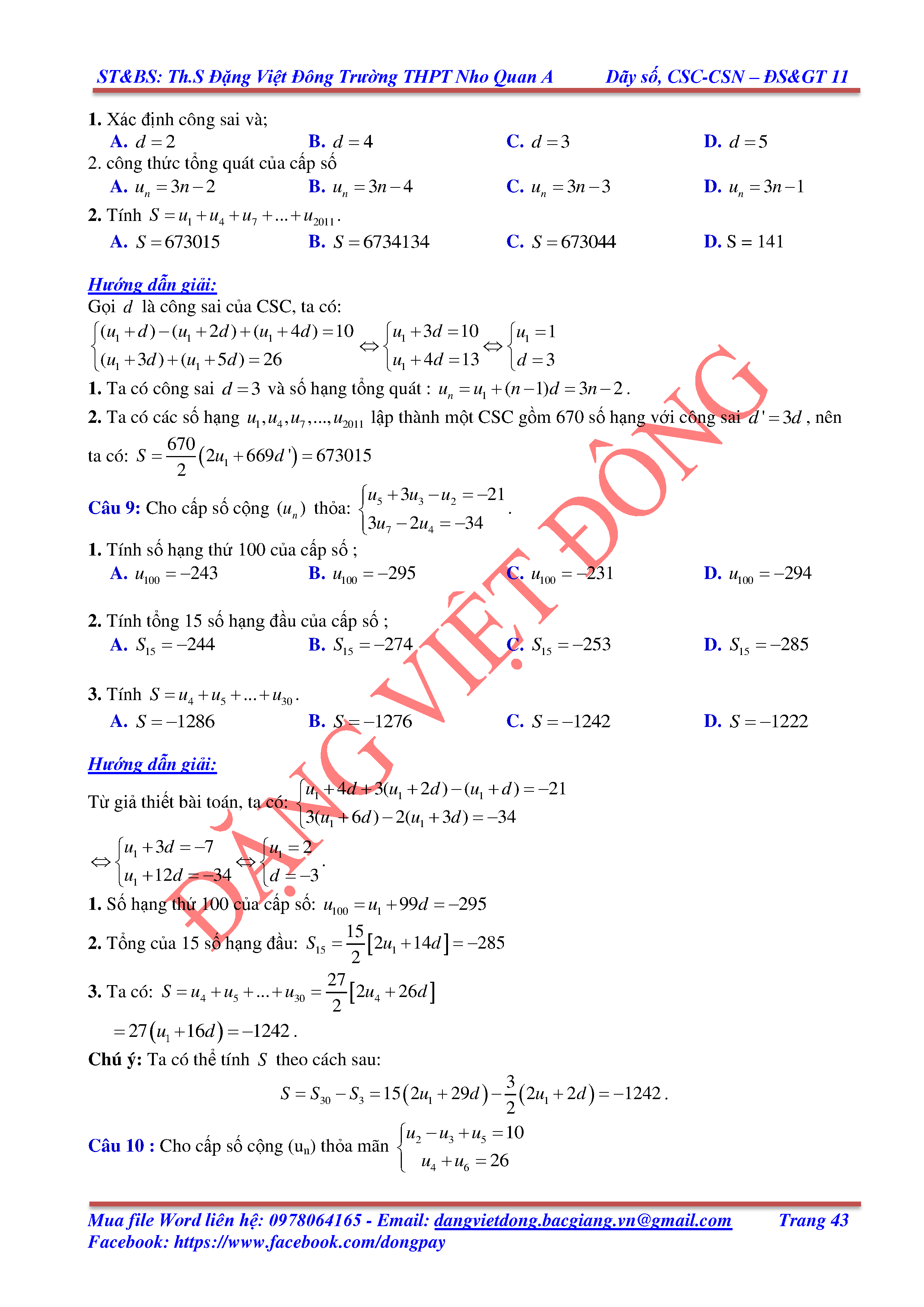 DÃY SỐ, CẤP SỐ CỘNG, CẤP SỐ NHÂN - ĐẠI SỐ, GIẢI TÍCH 11