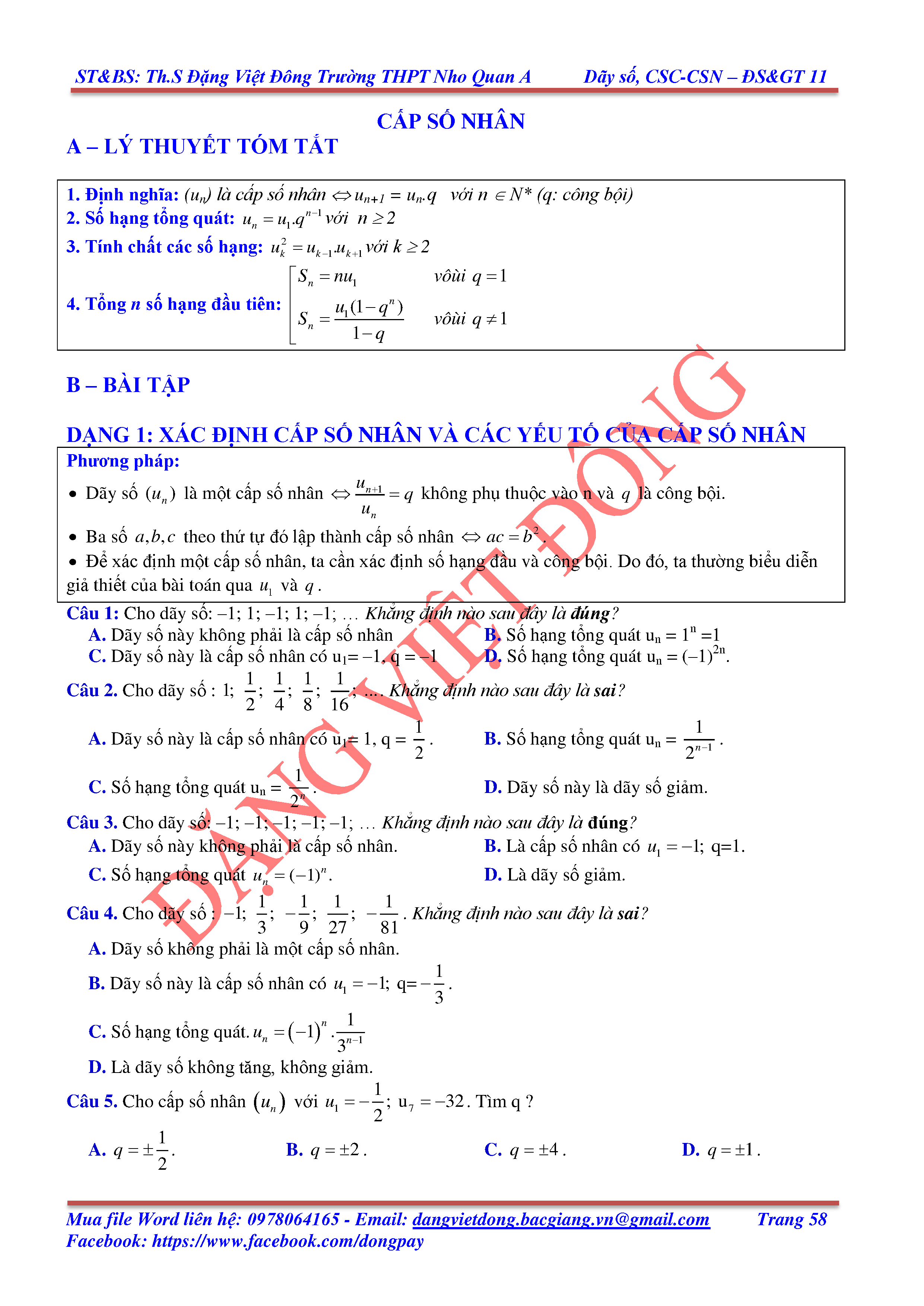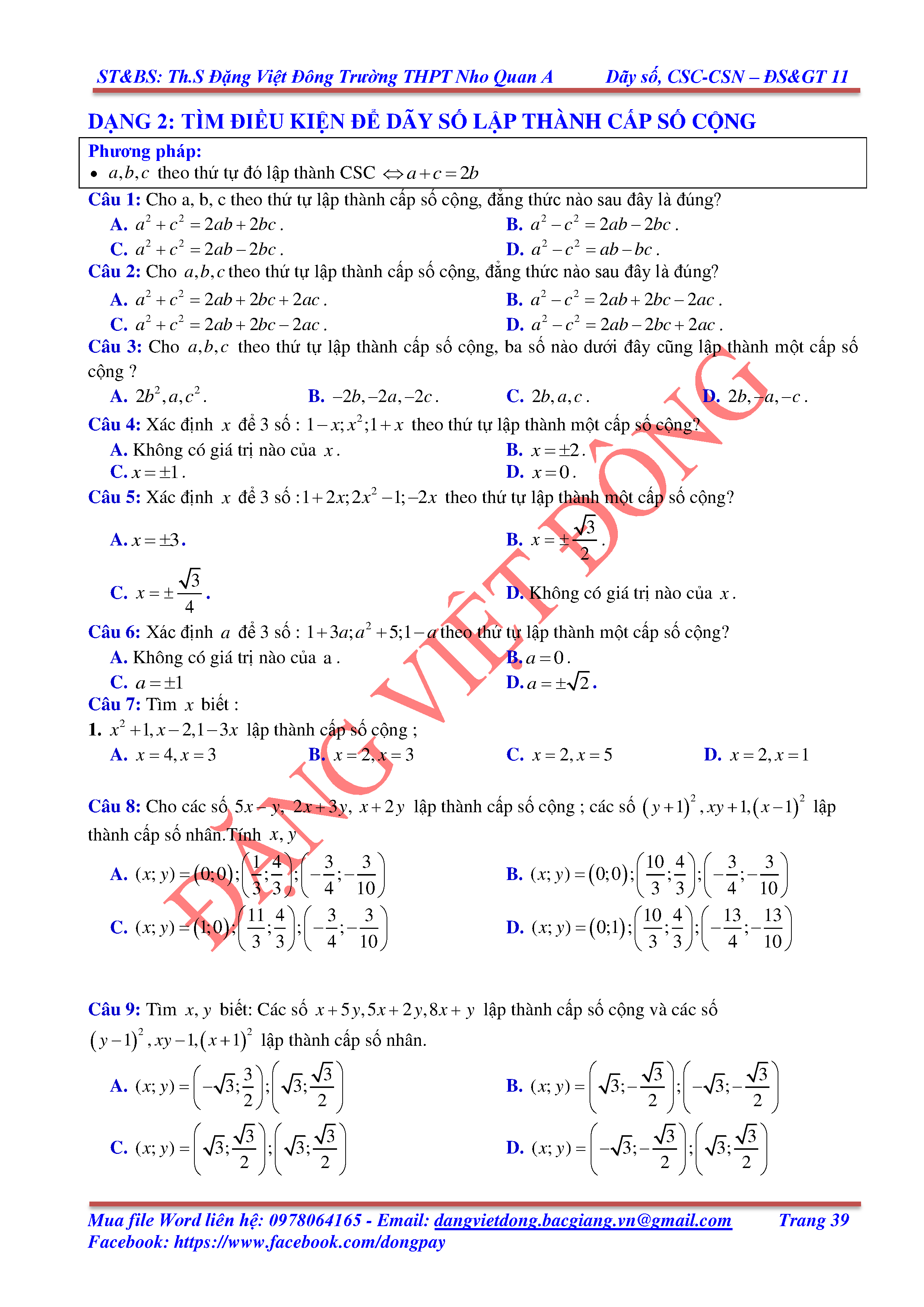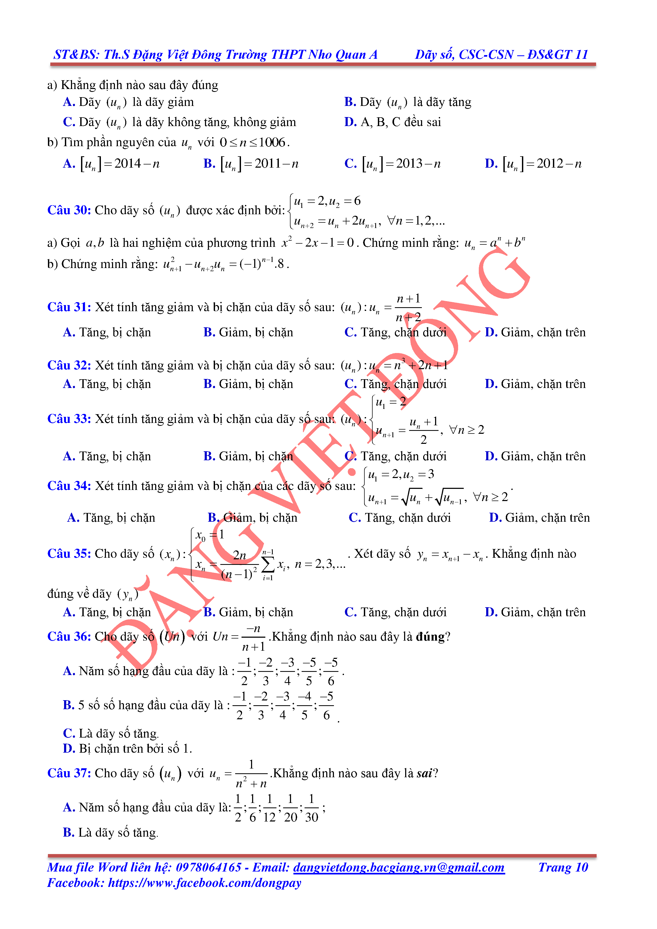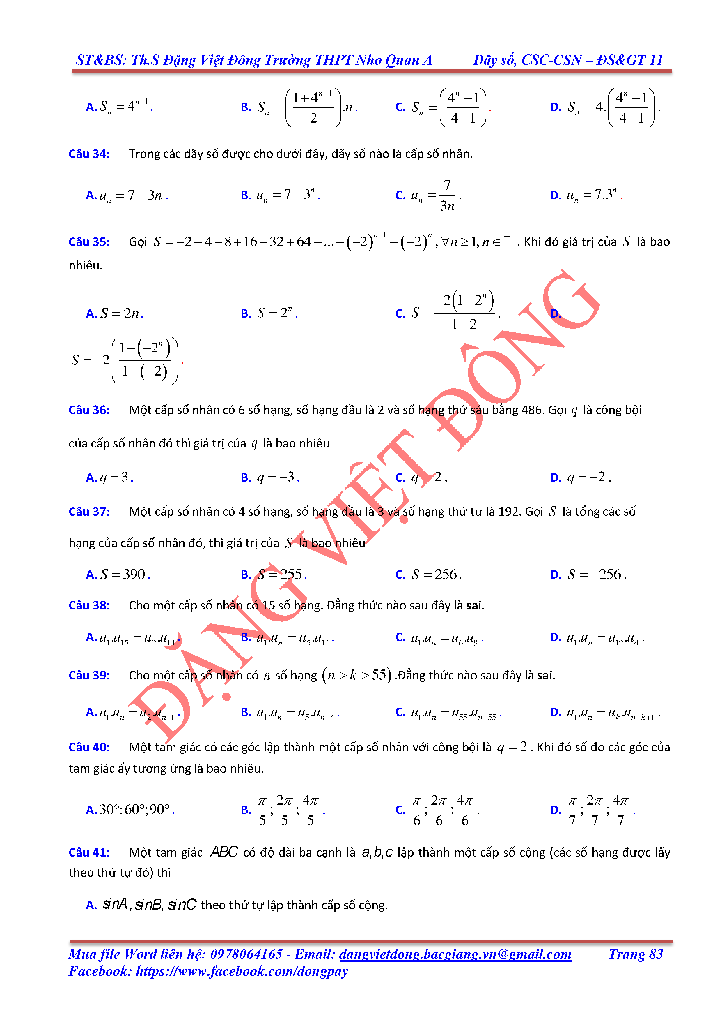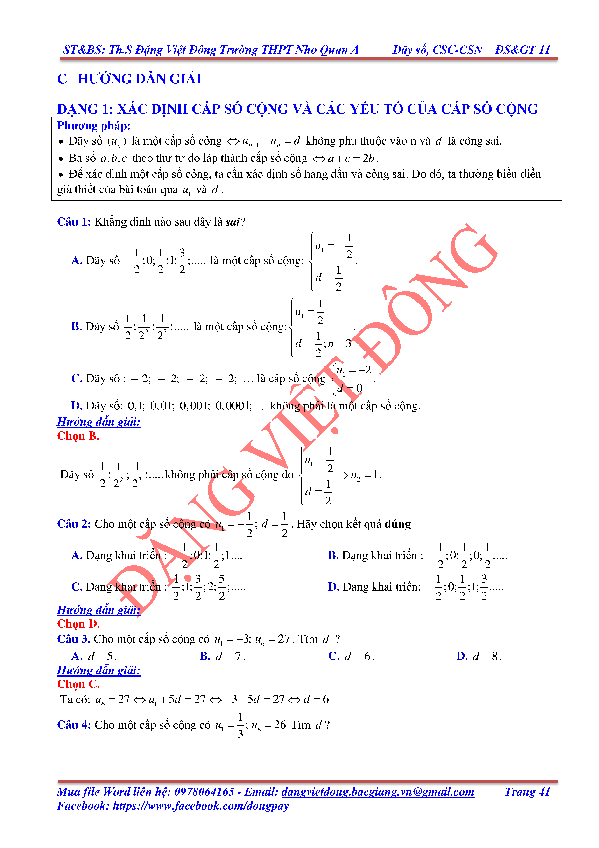 DÃY SỐ, CẤP SỐ CỘNG, CẤP SỐ NHÂN - ĐẠI SỐ, GIẢI TÍCH 11