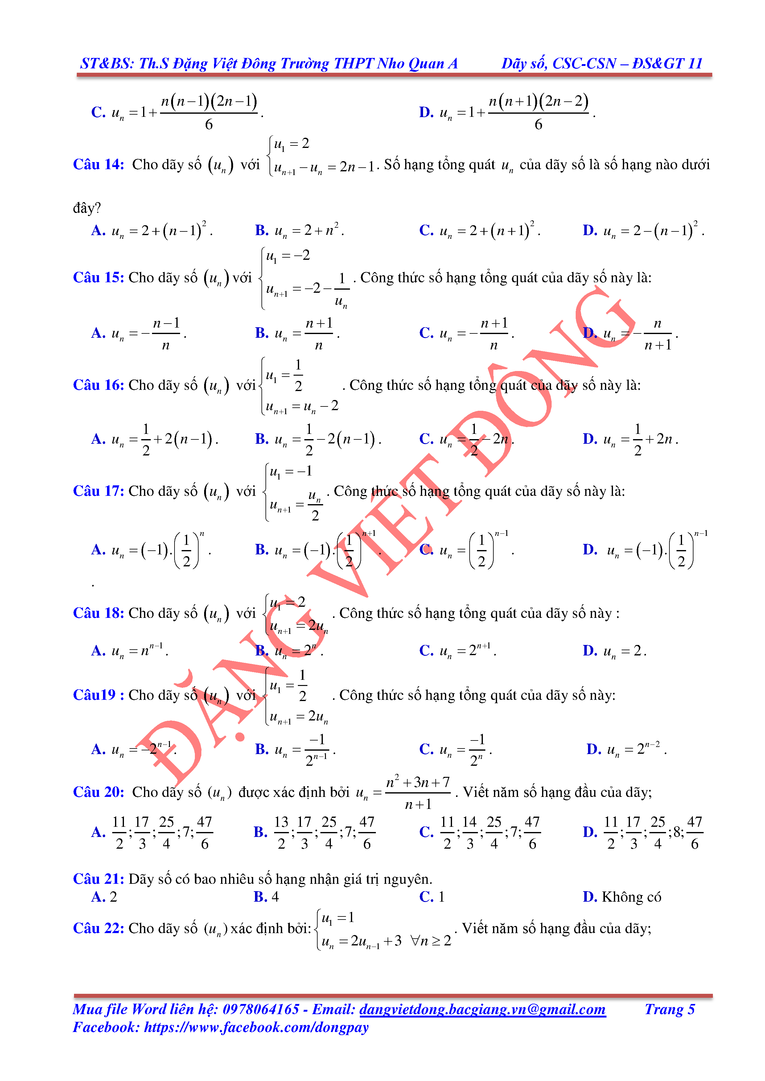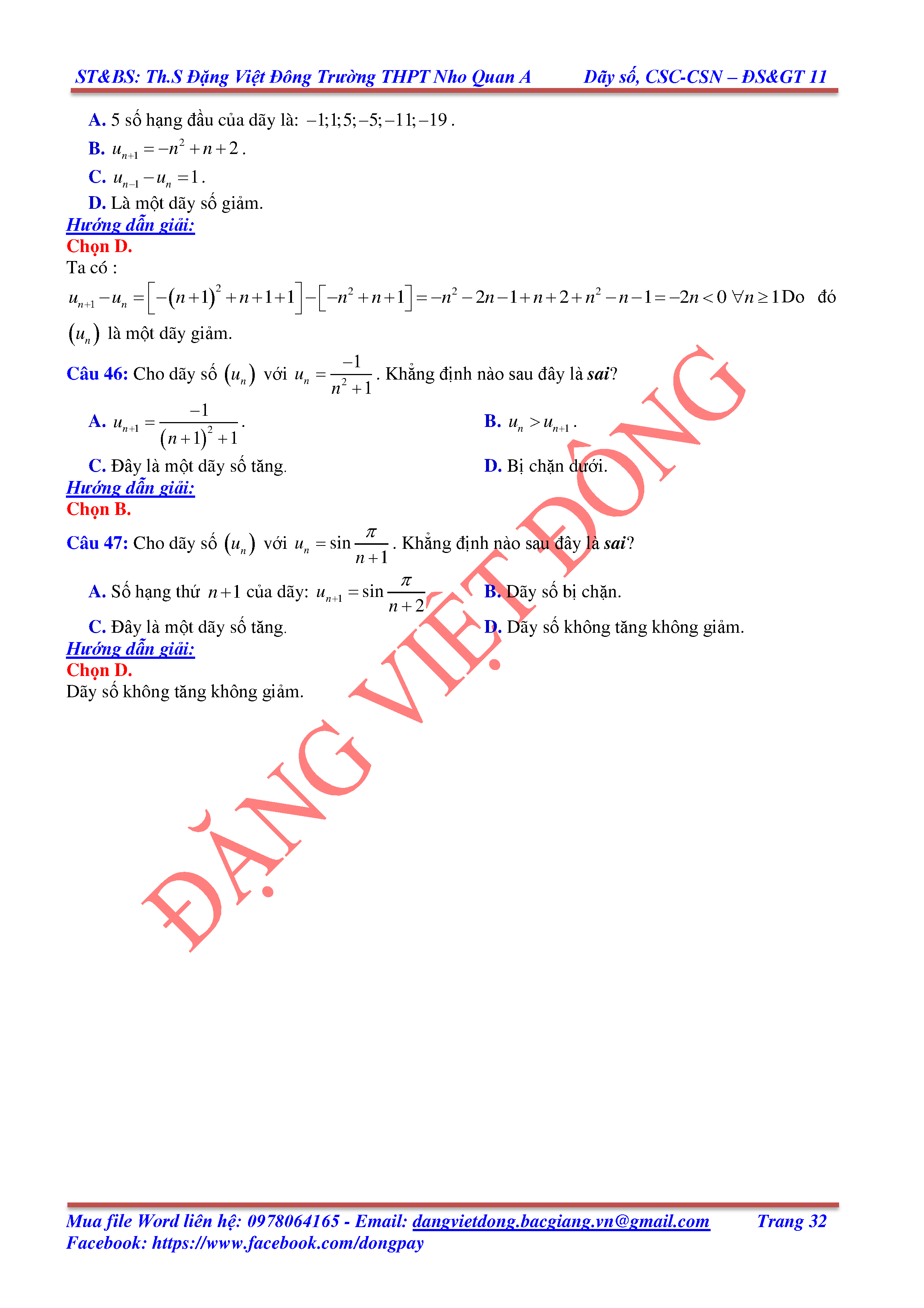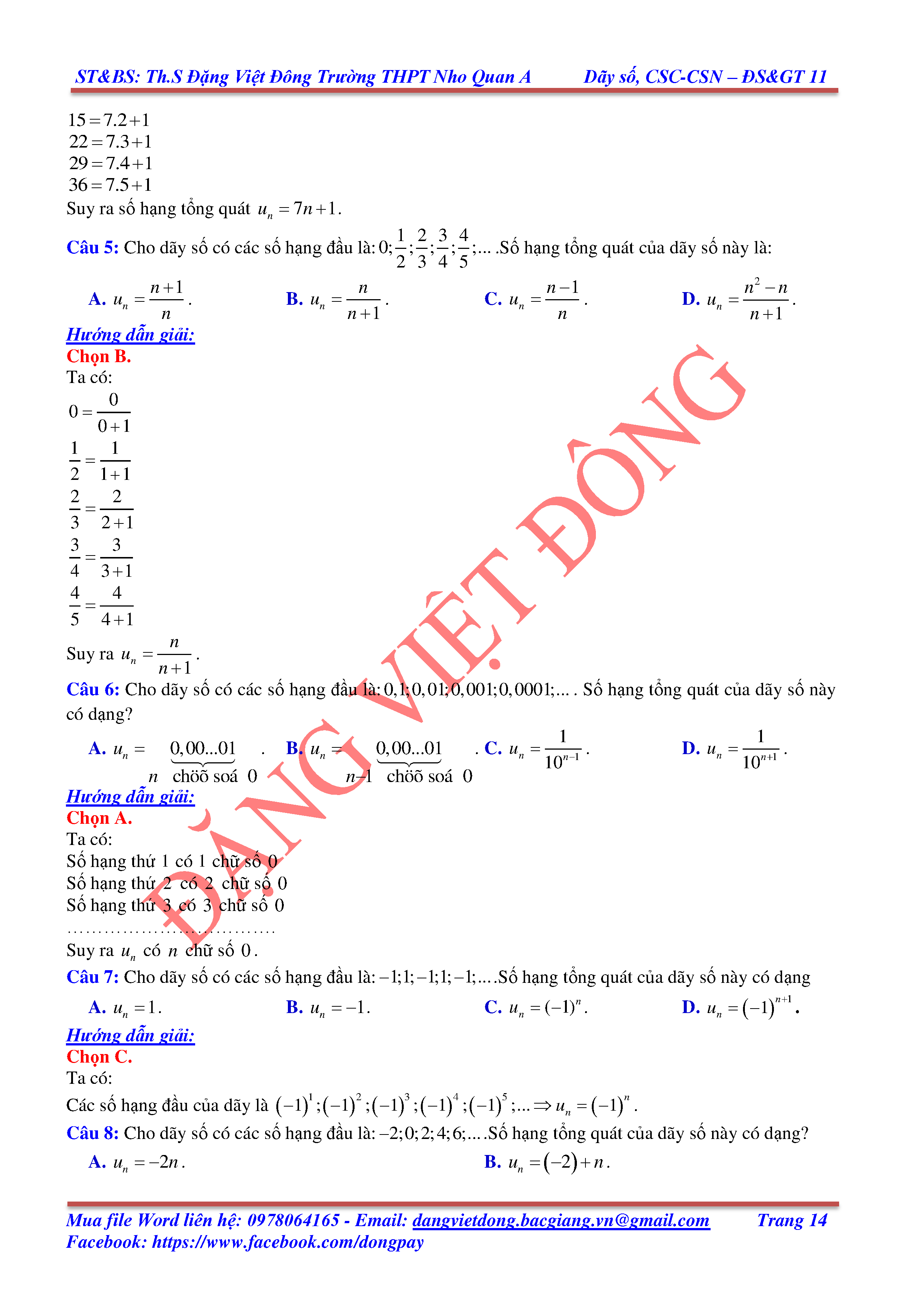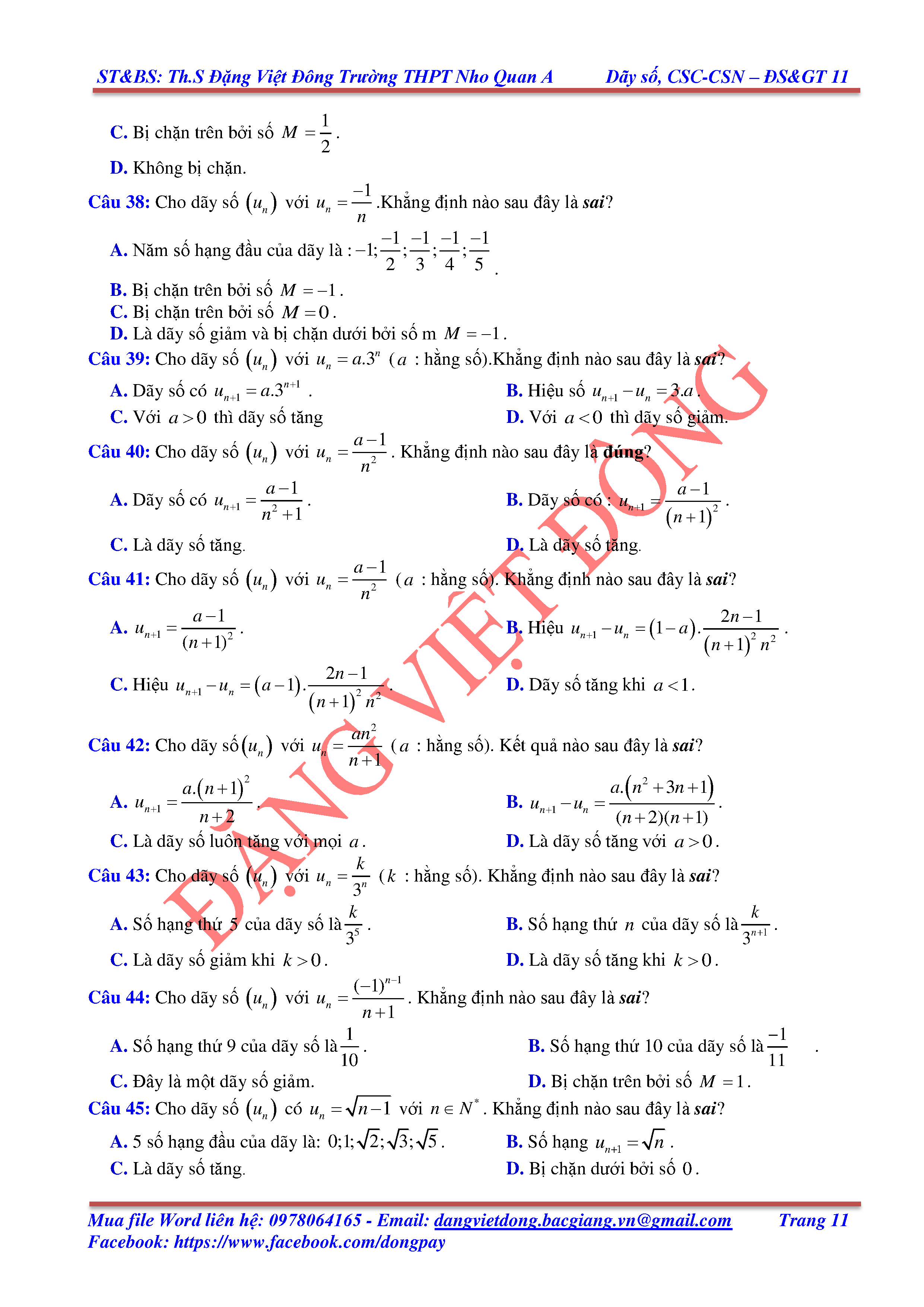 DÃY SỐ, CẤP SỐ CỘNG, CẤP SỐ NHÂN - ĐẠI SỐ, GIẢI TÍCH 11