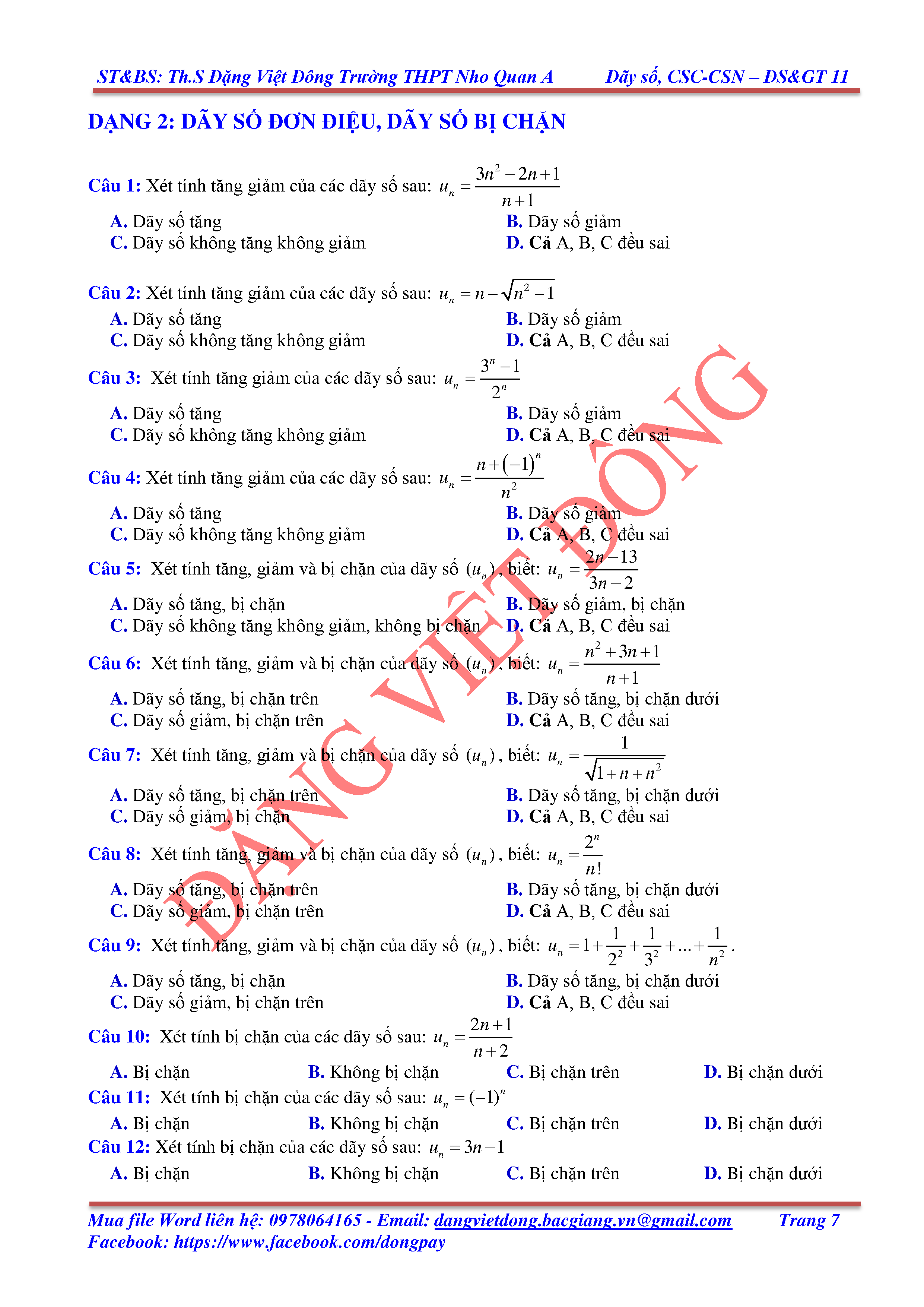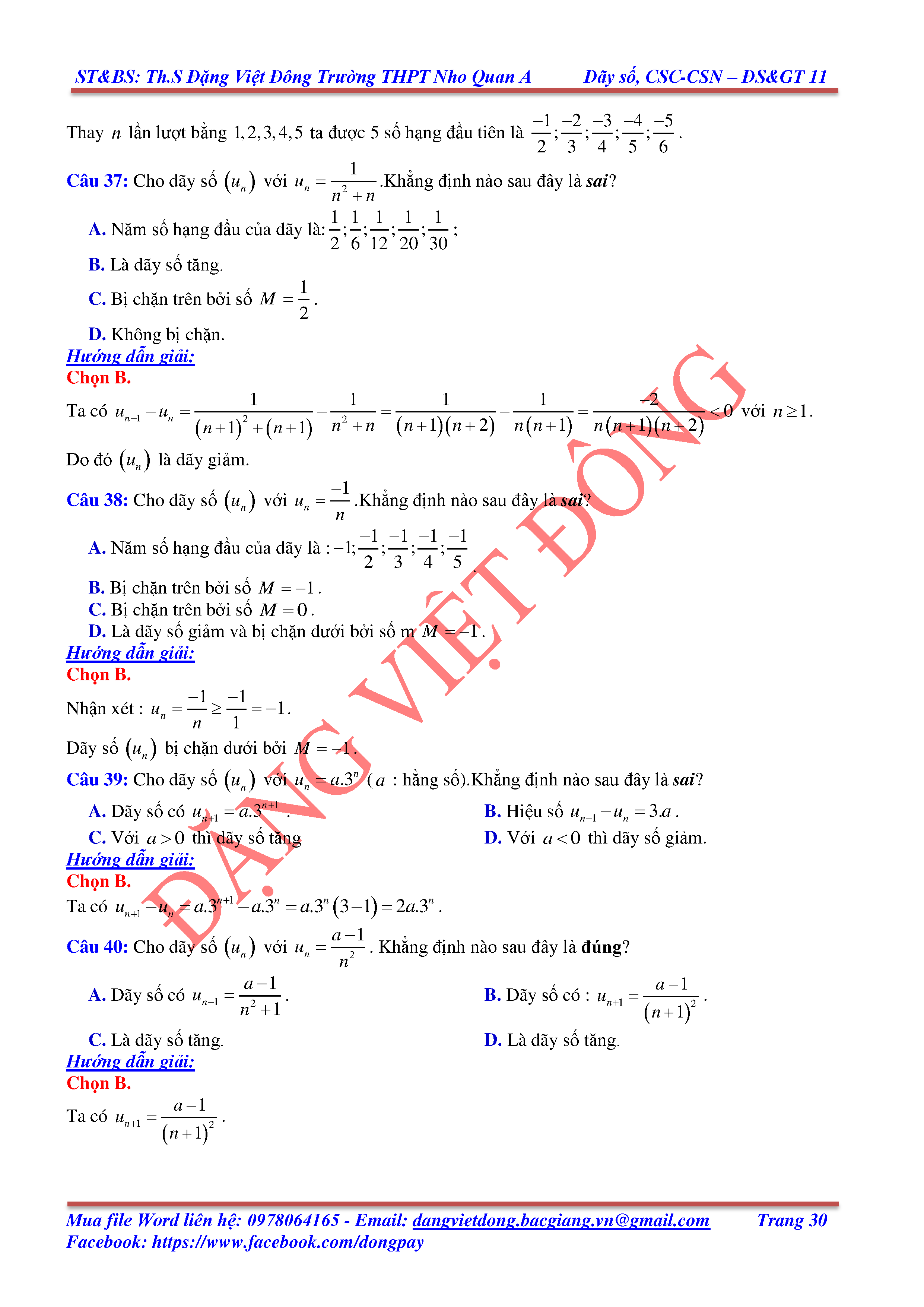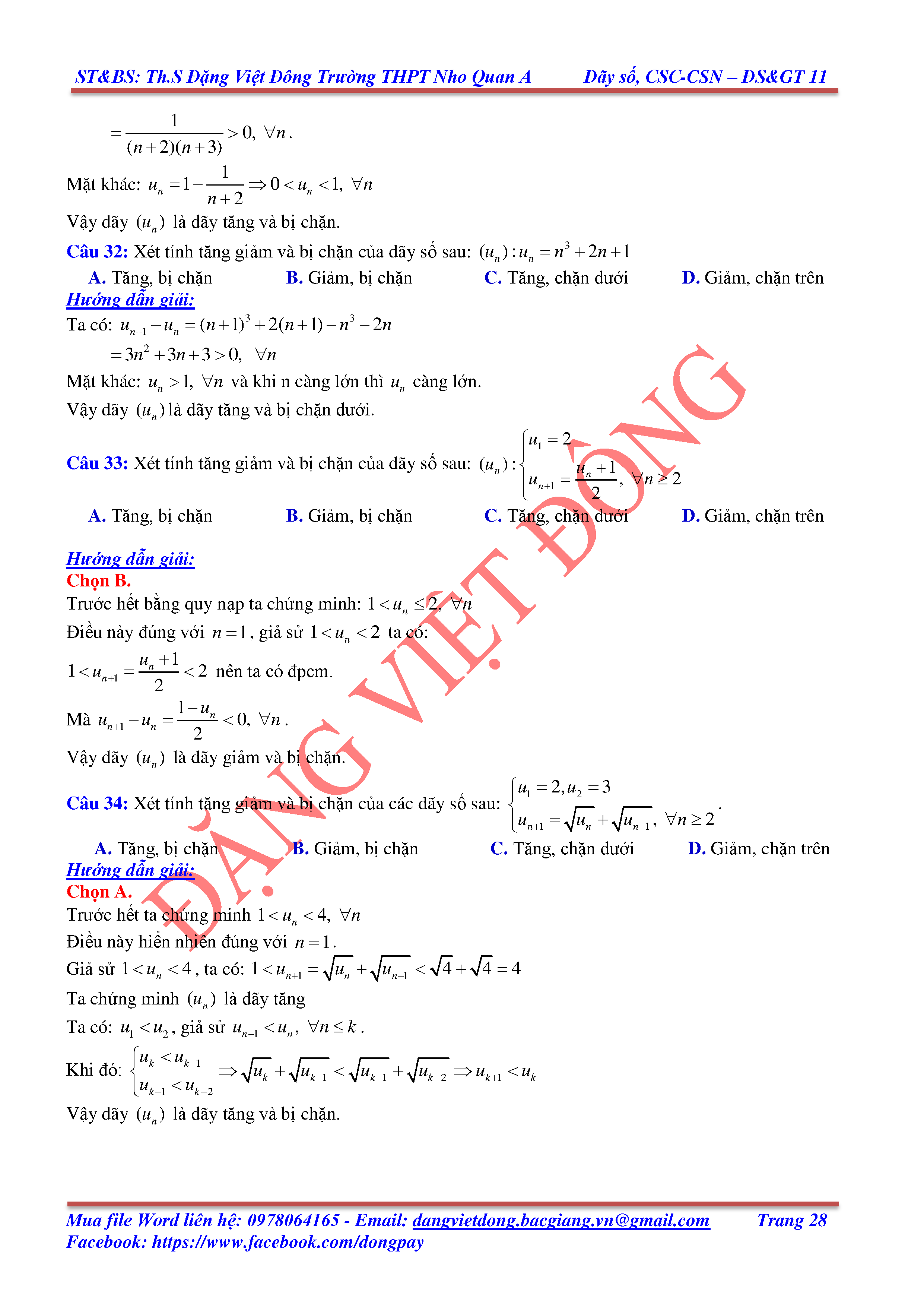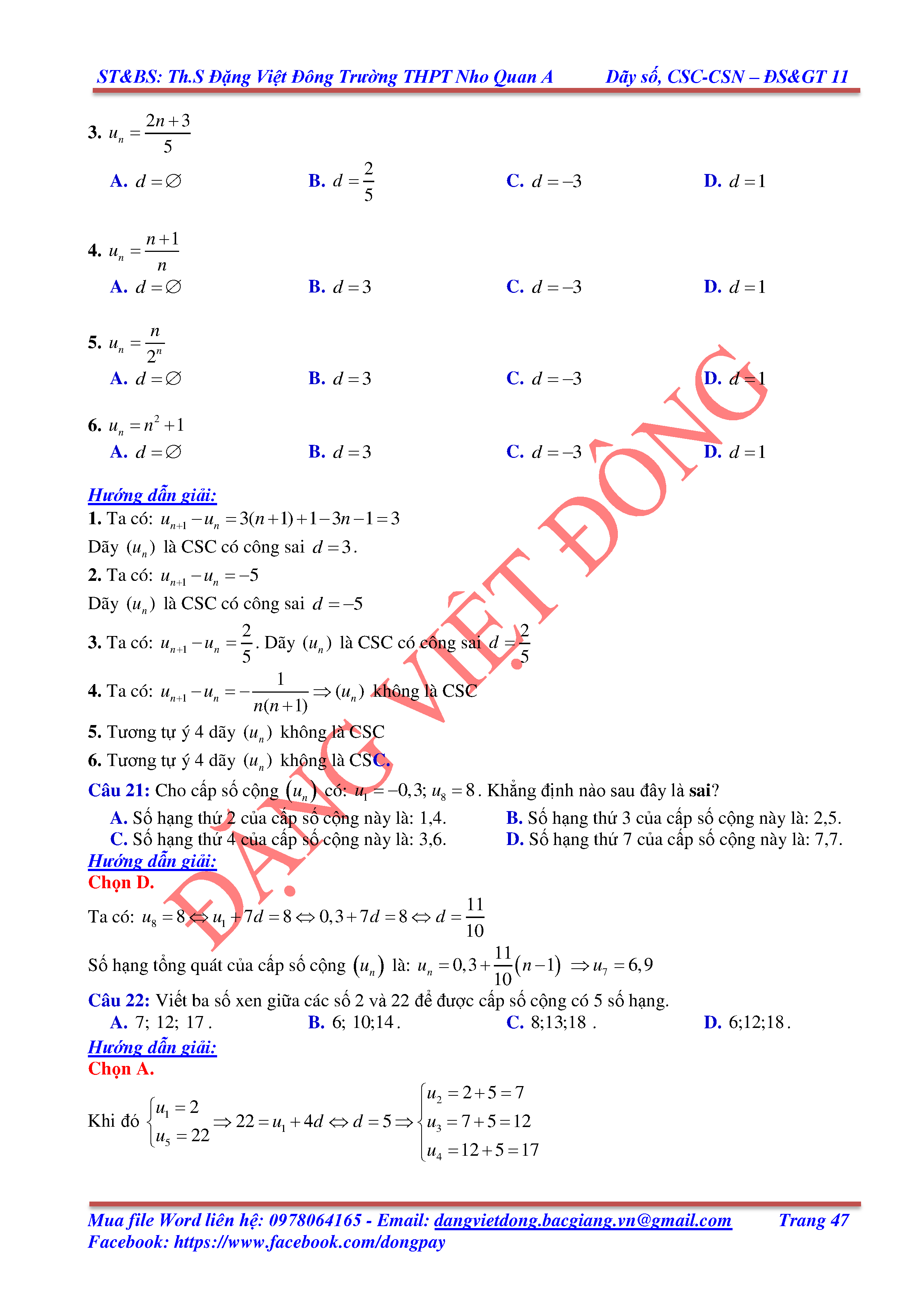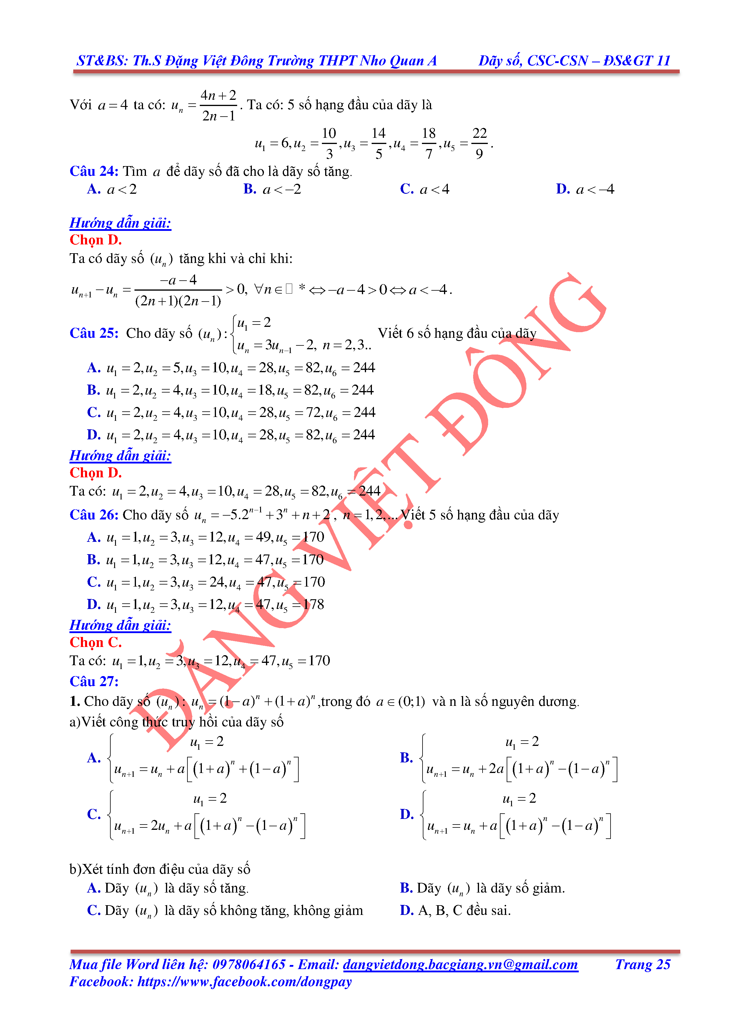 DÃY SỐ, CẤP SỐ CỘNG, CẤP SỐ NHÂN - ĐẠI SỐ, GIẢI TÍCH 11