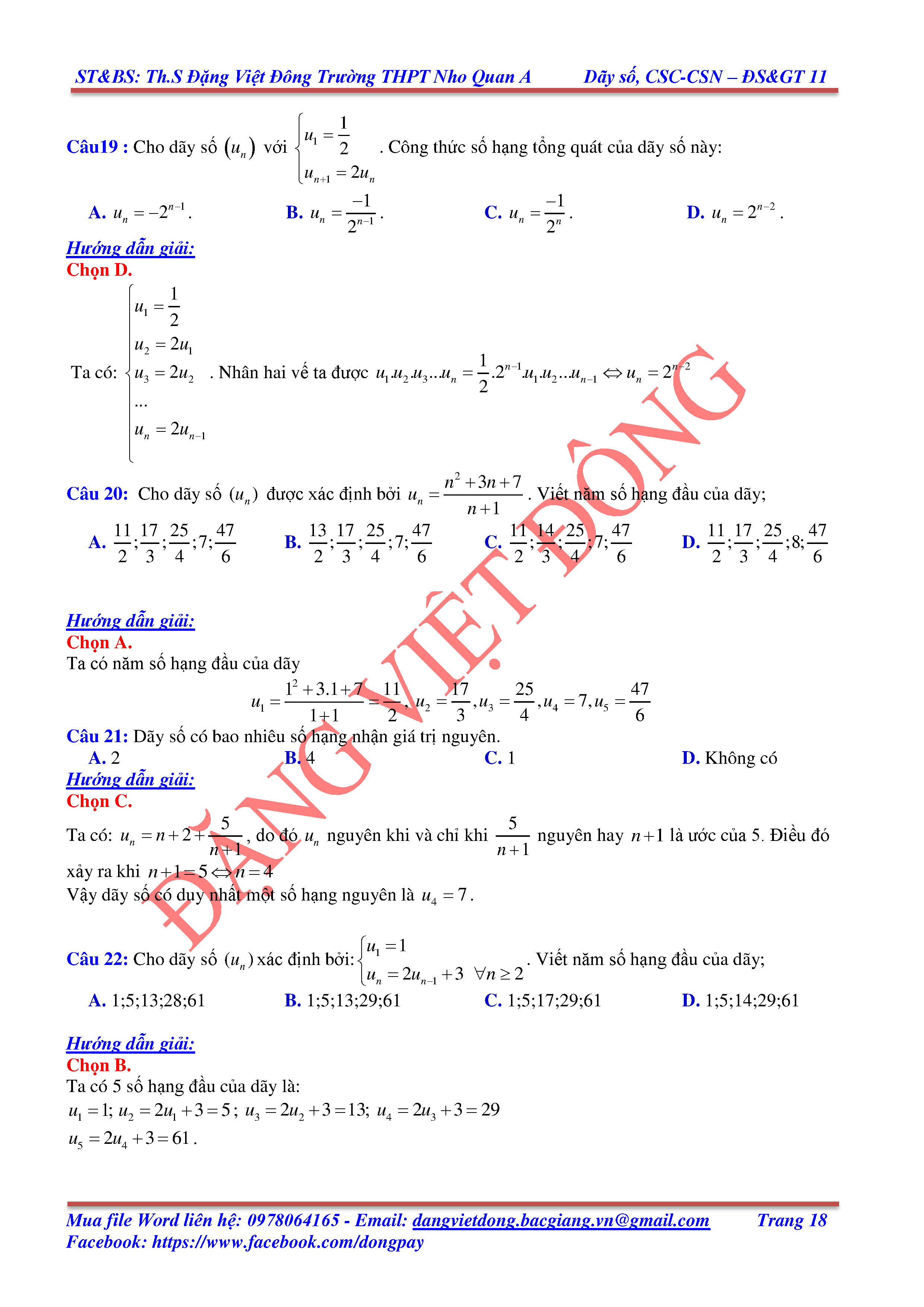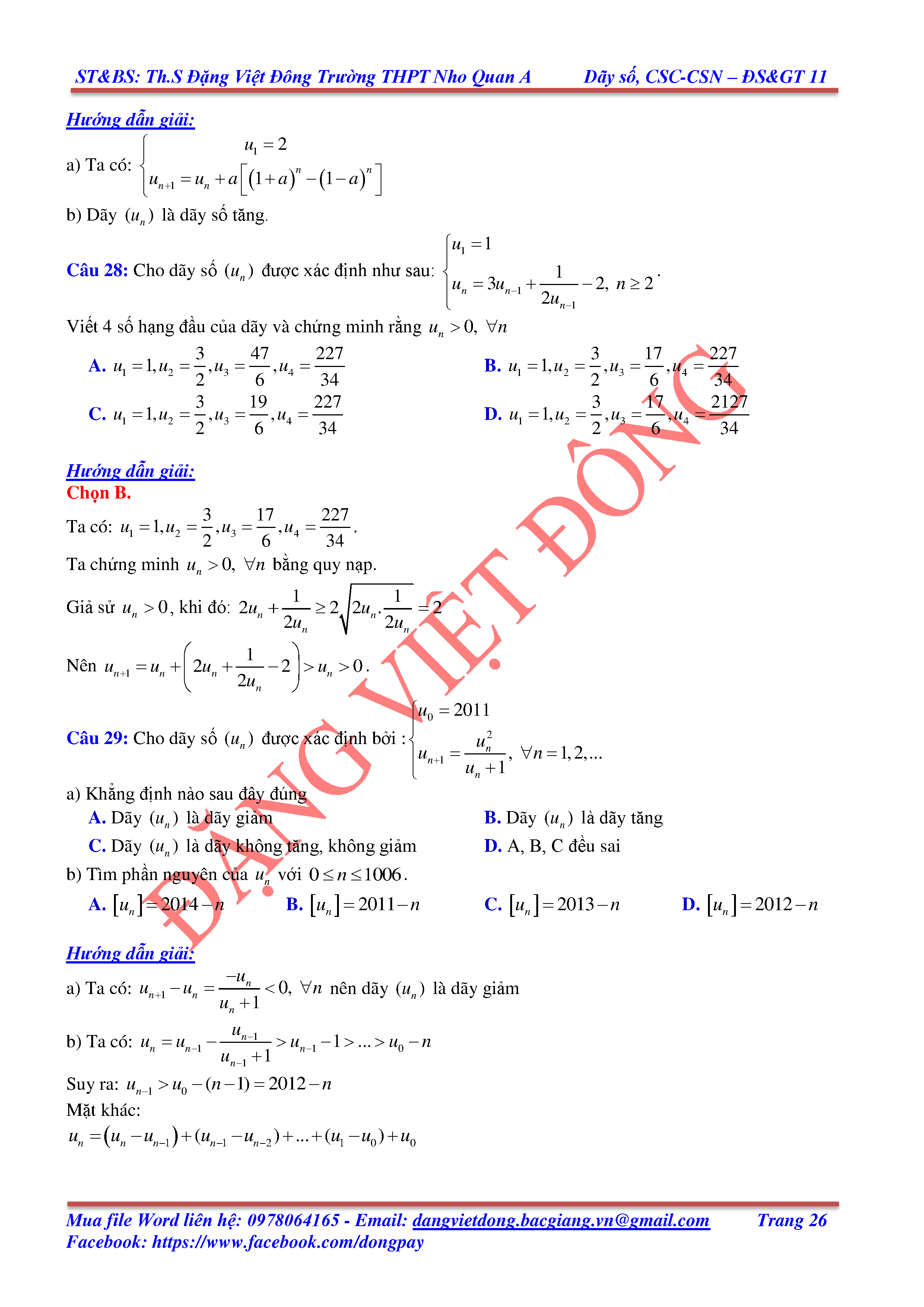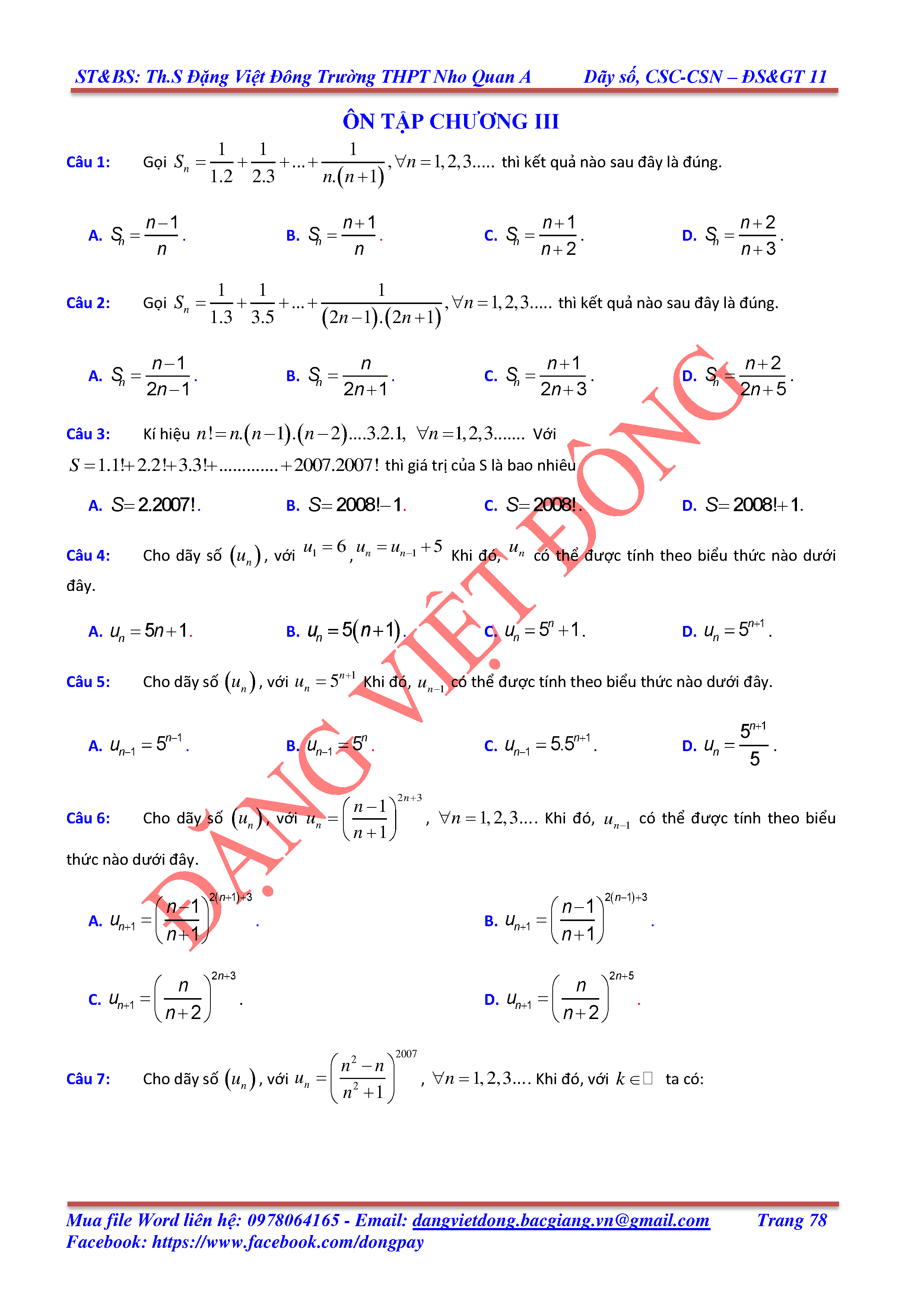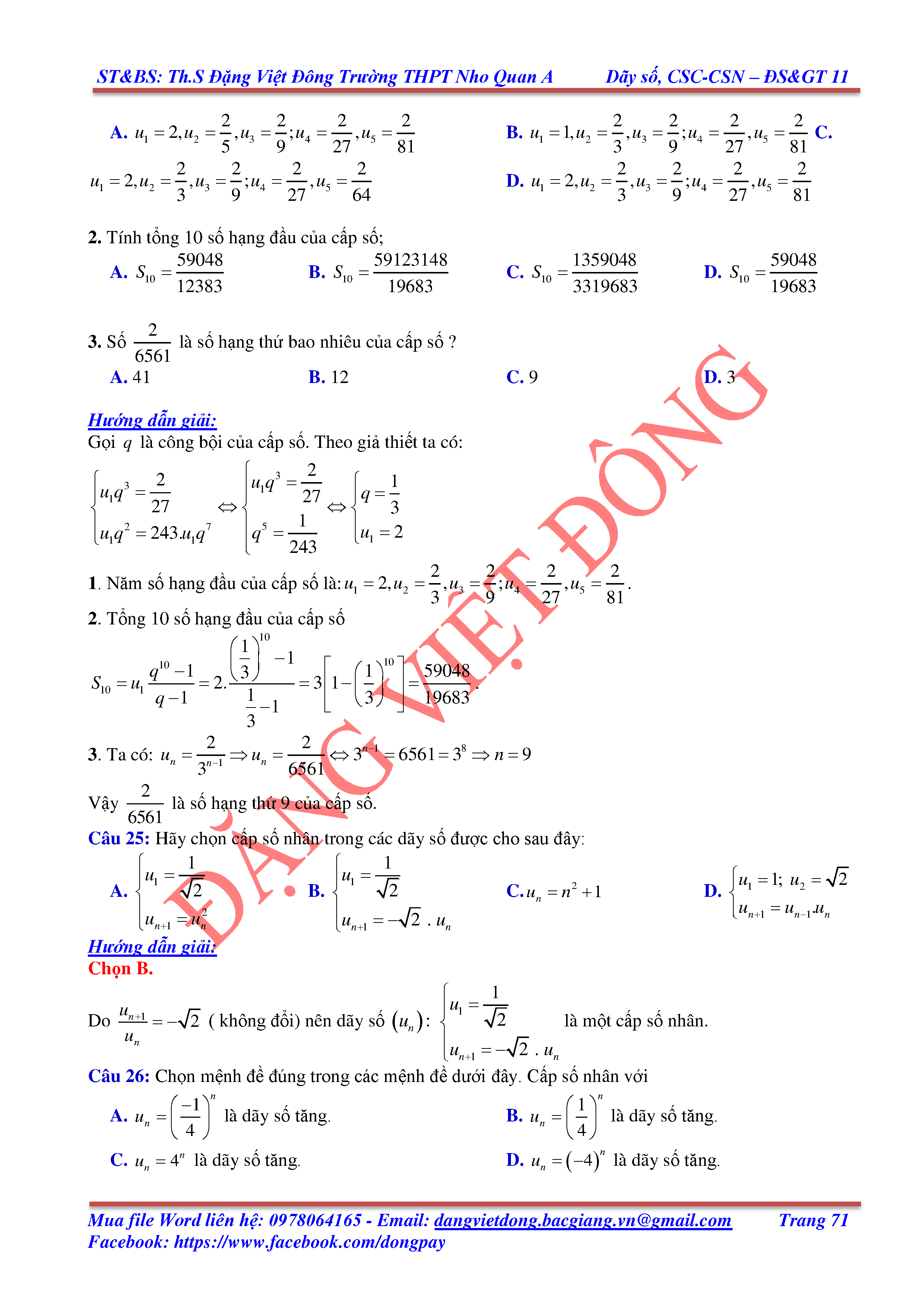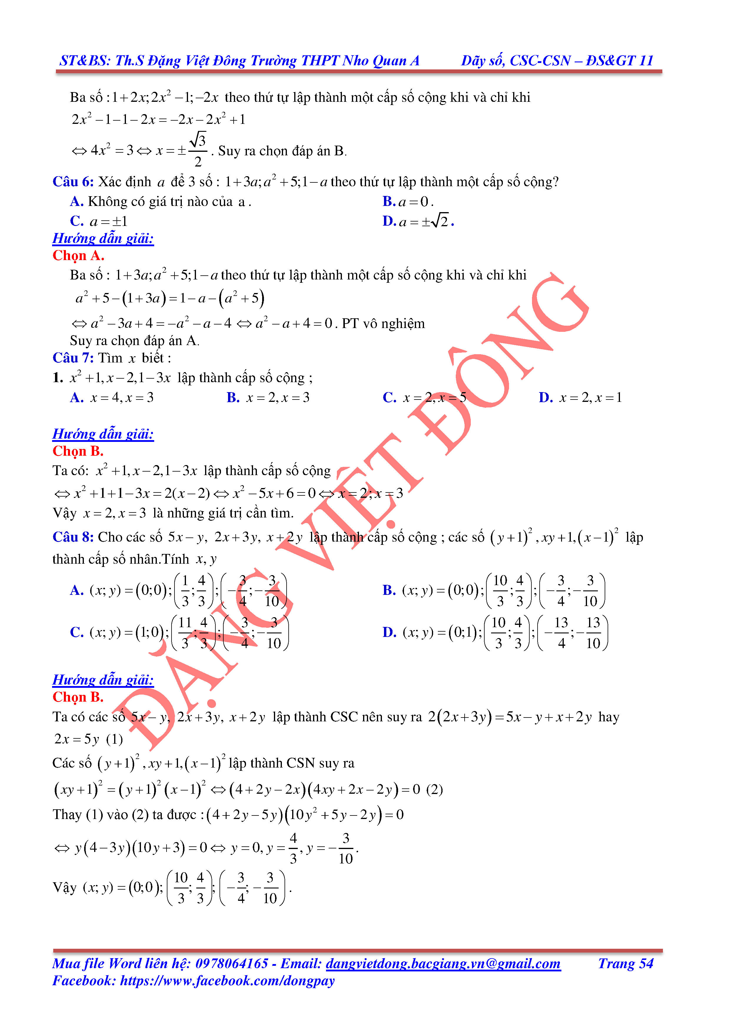 DÃY SỐ, CẤP SỐ CỘNG, CẤP SỐ NHÂN - ĐẠI SỐ, GIẢI TÍCH 11