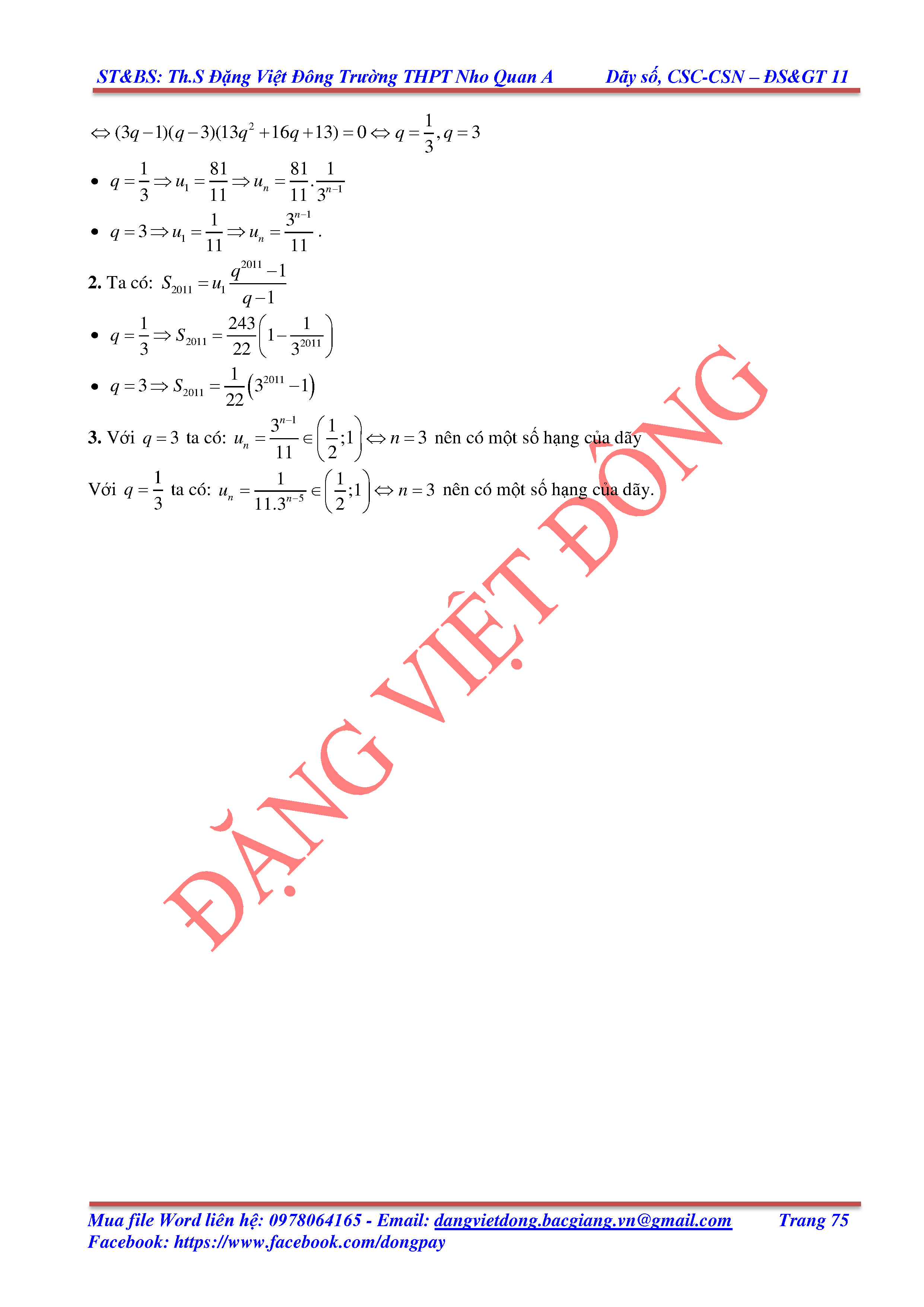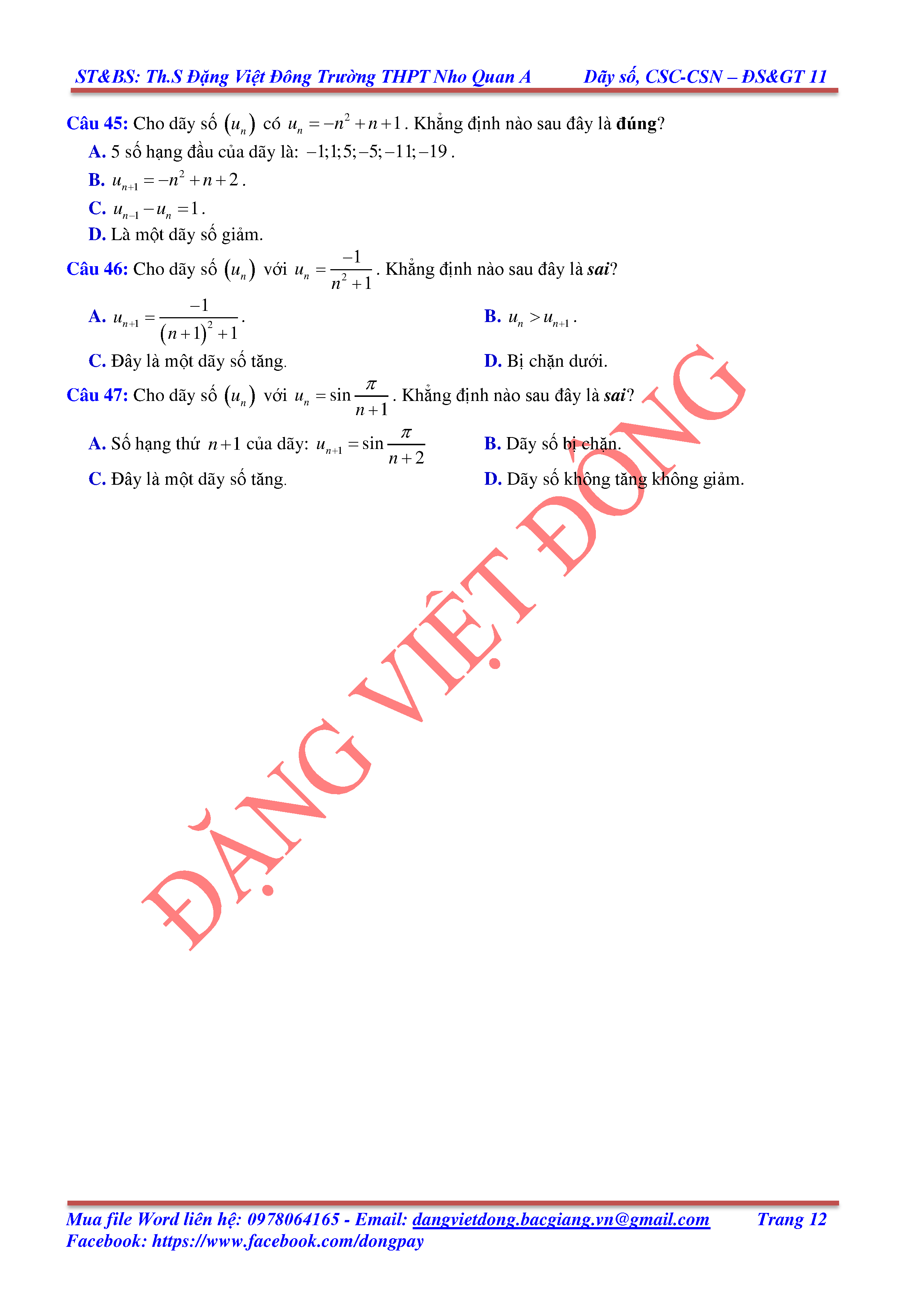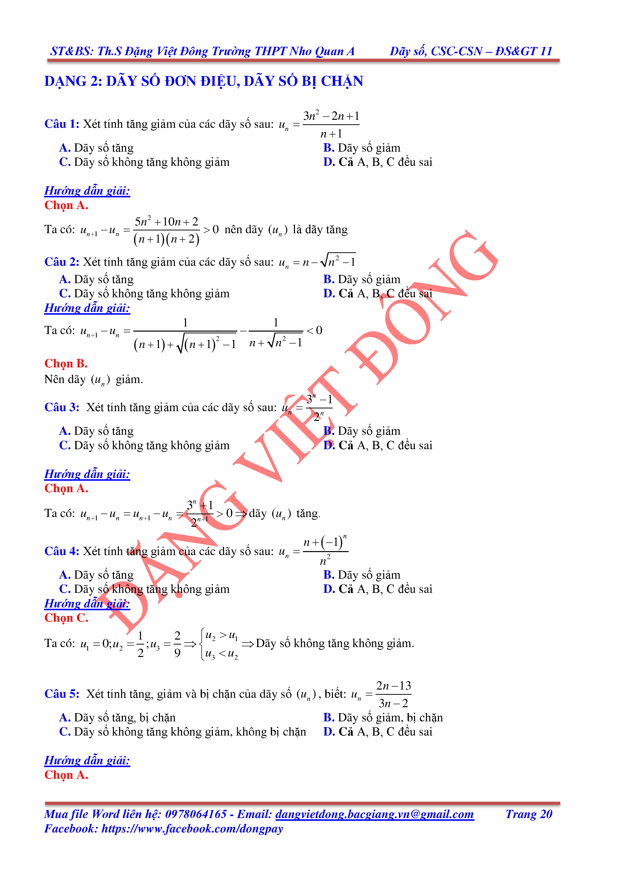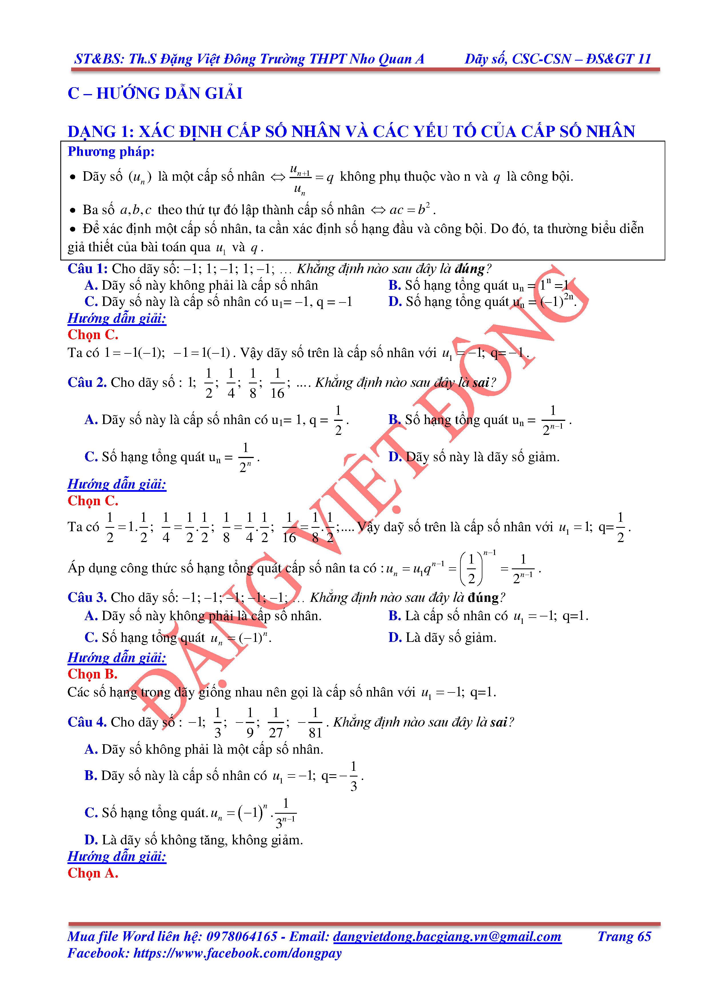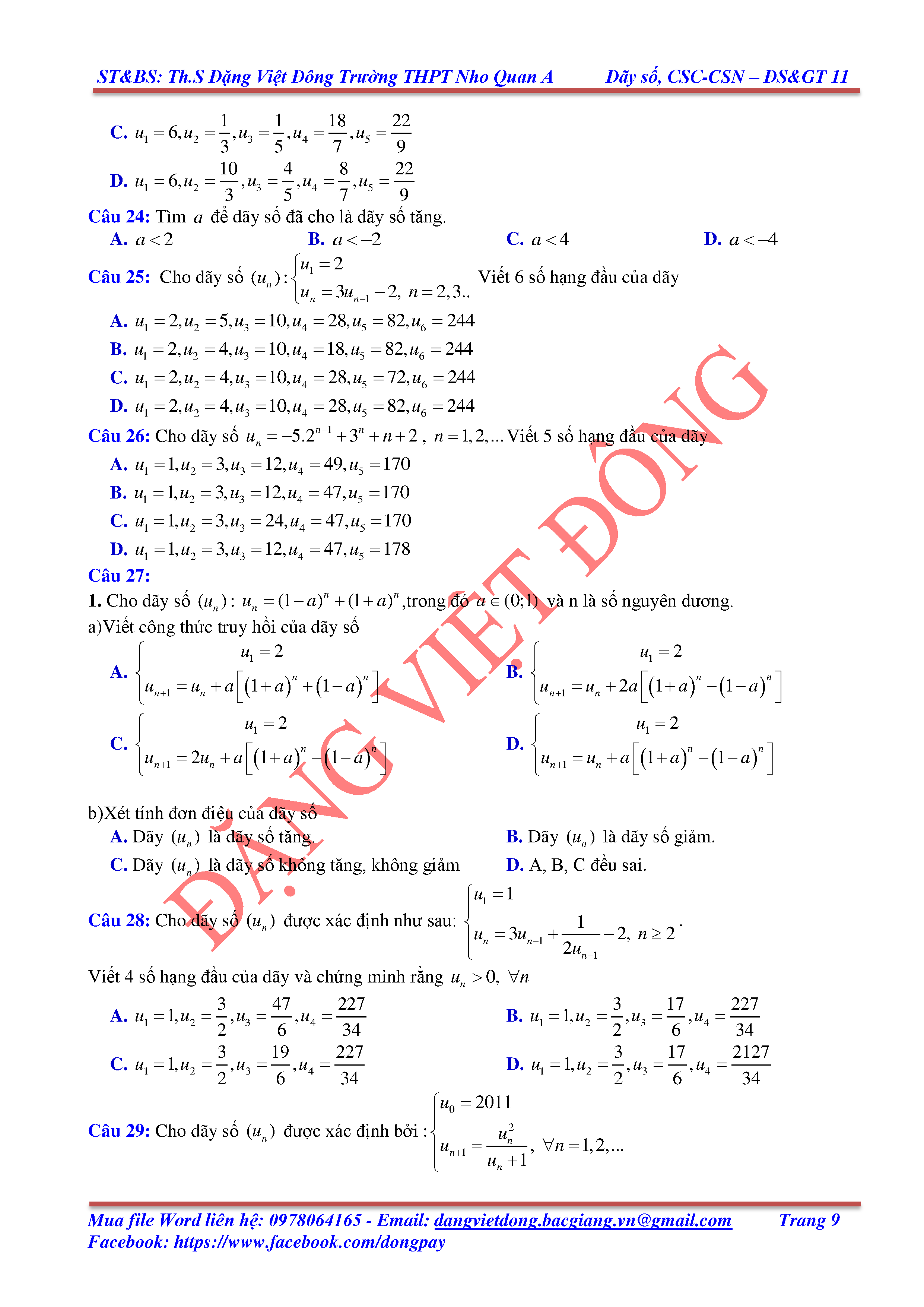 DÃY SỐ, CẤP SỐ CỘNG, CẤP SỐ NHÂN - ĐẠI SỐ, GIẢI TÍCH 11